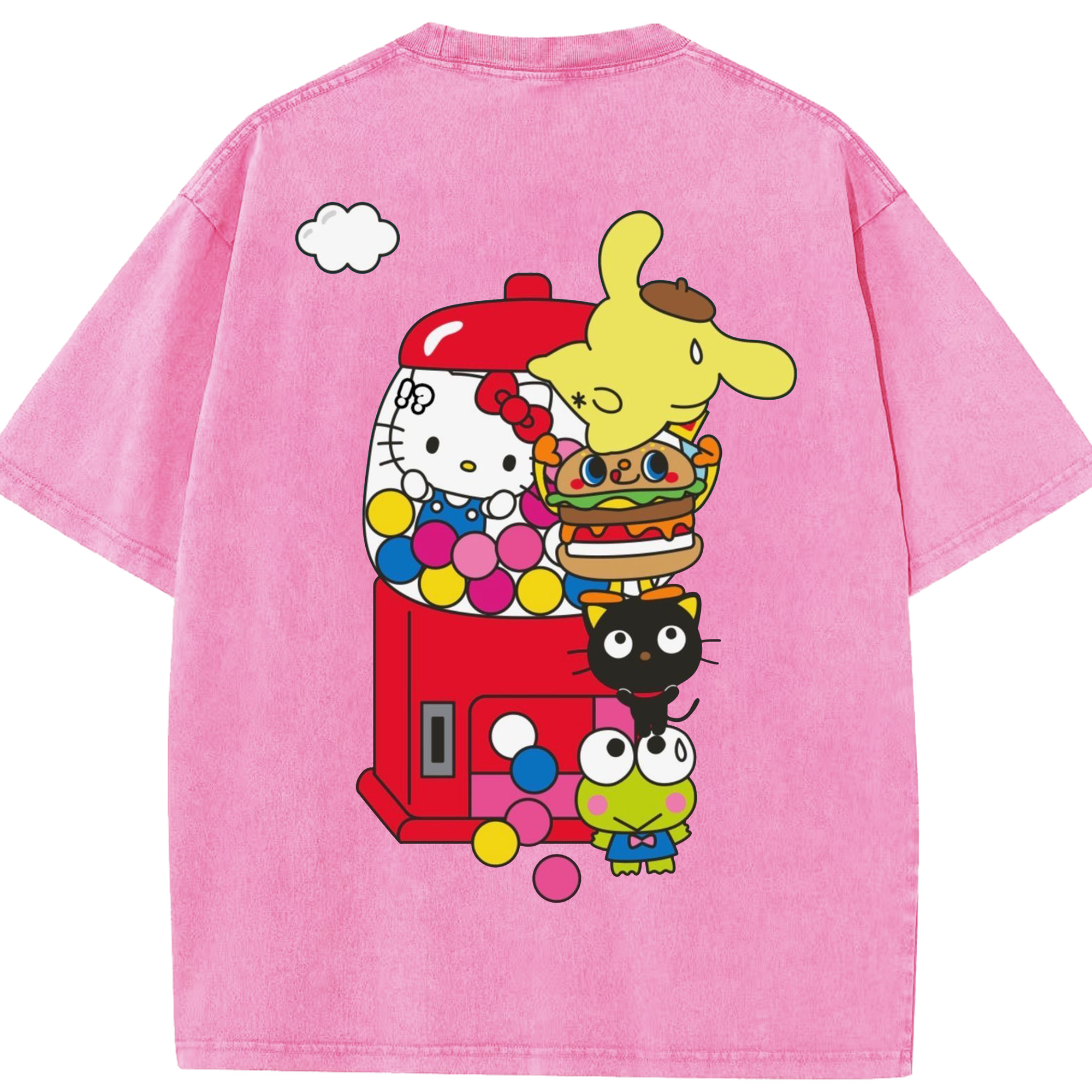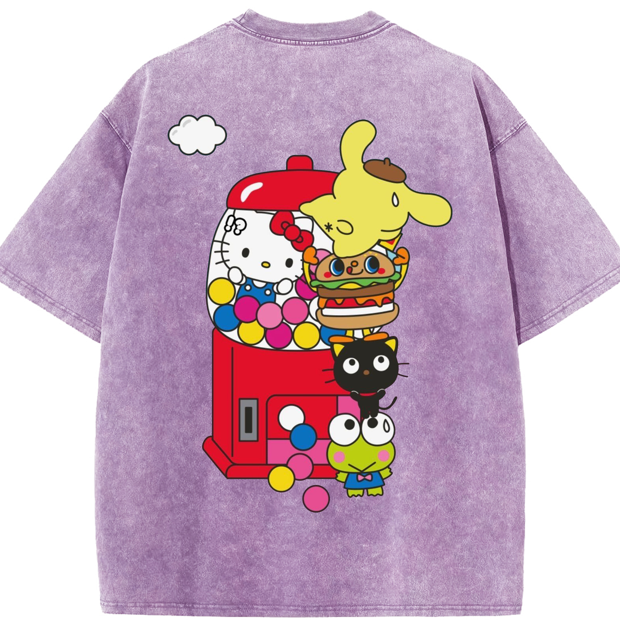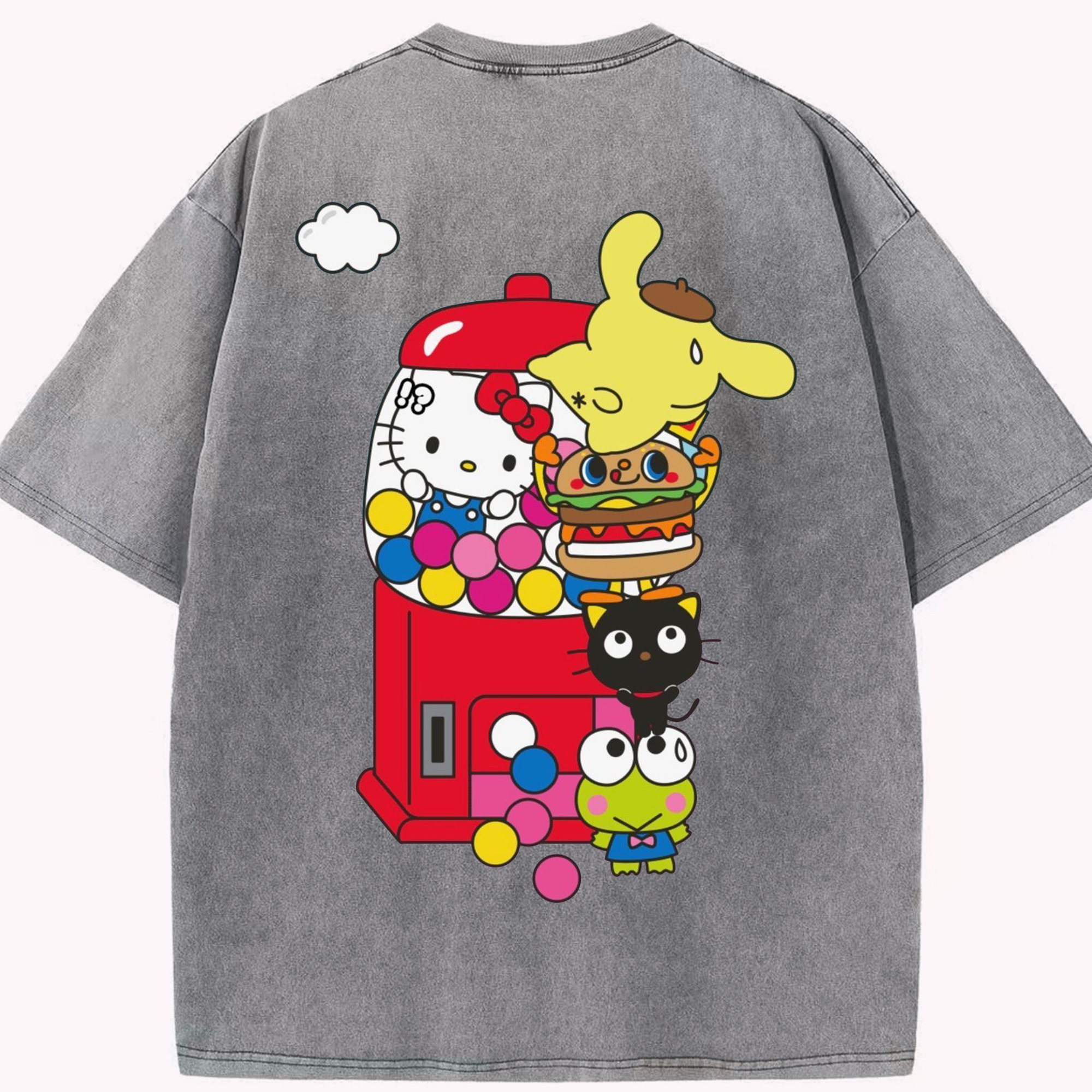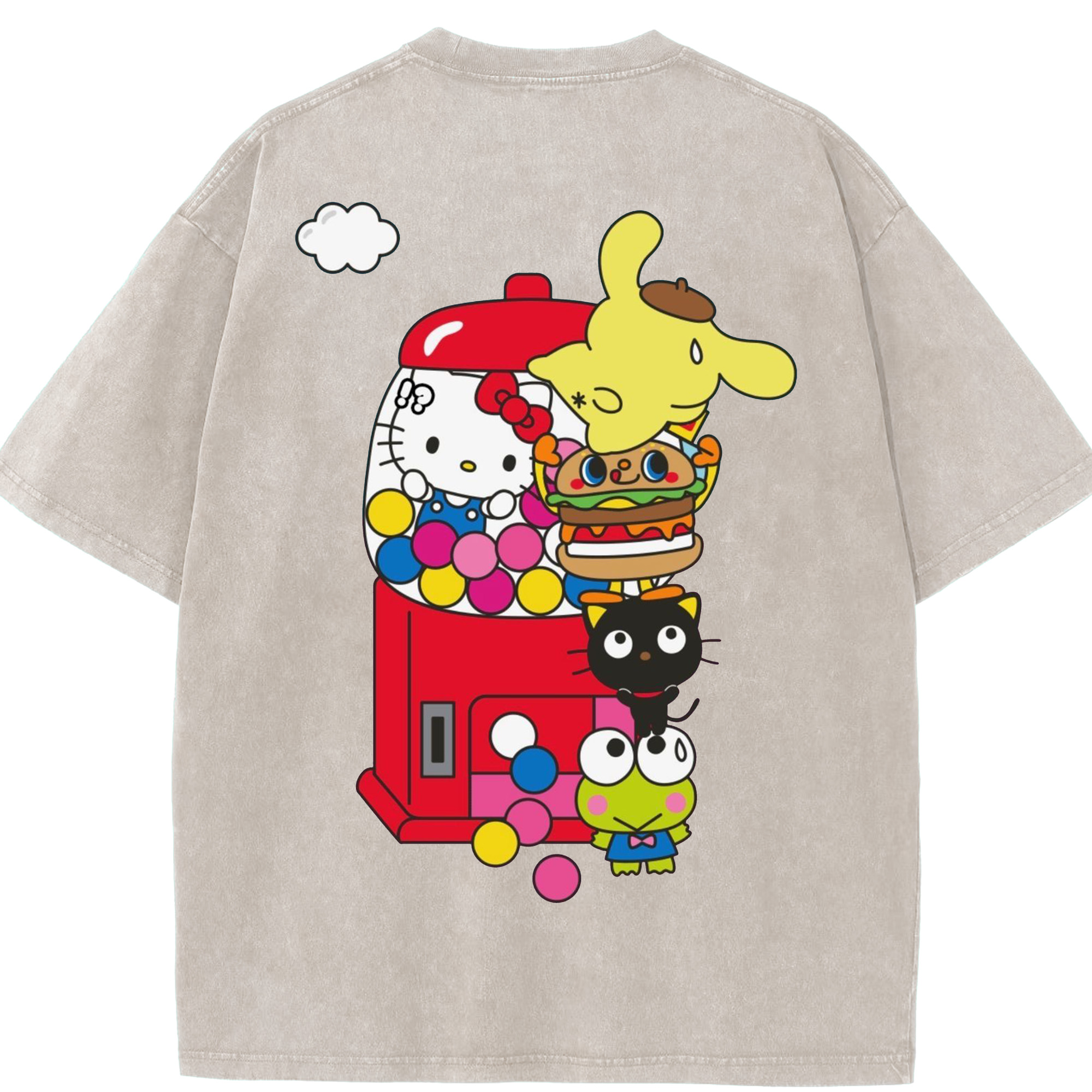 サンリオ - 綿100% ヴィンテージ風 半袖Tシャツ ・ 背面プリント ・ 柔らか肌触り ・ 通気性 快適 ・ スポーツ カジュアル 外出用