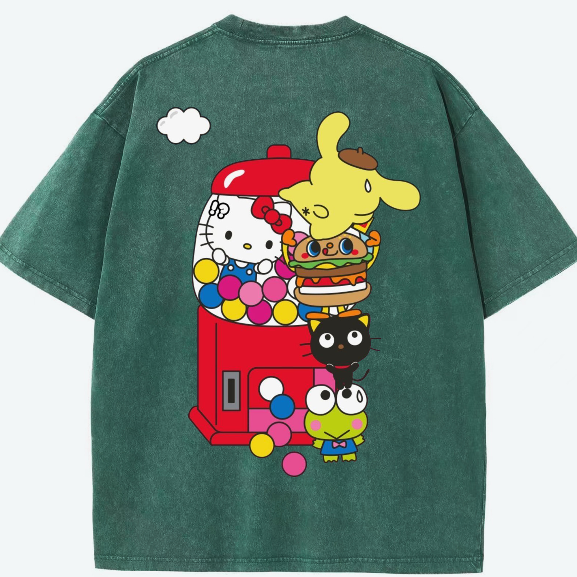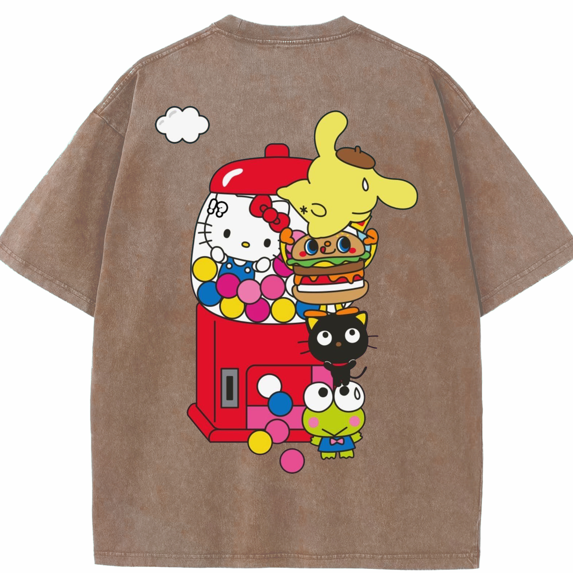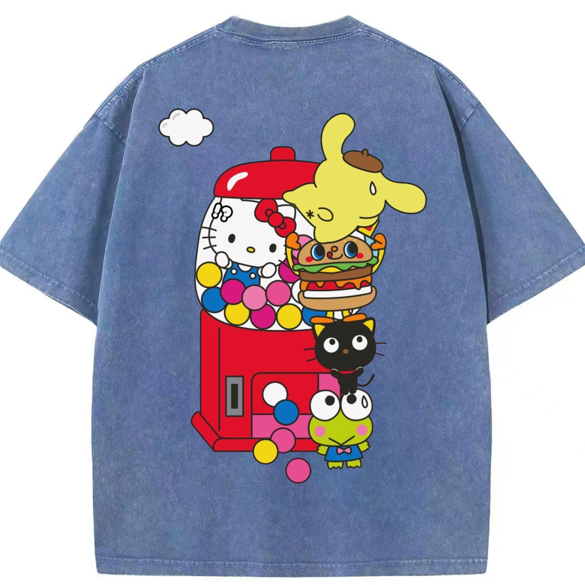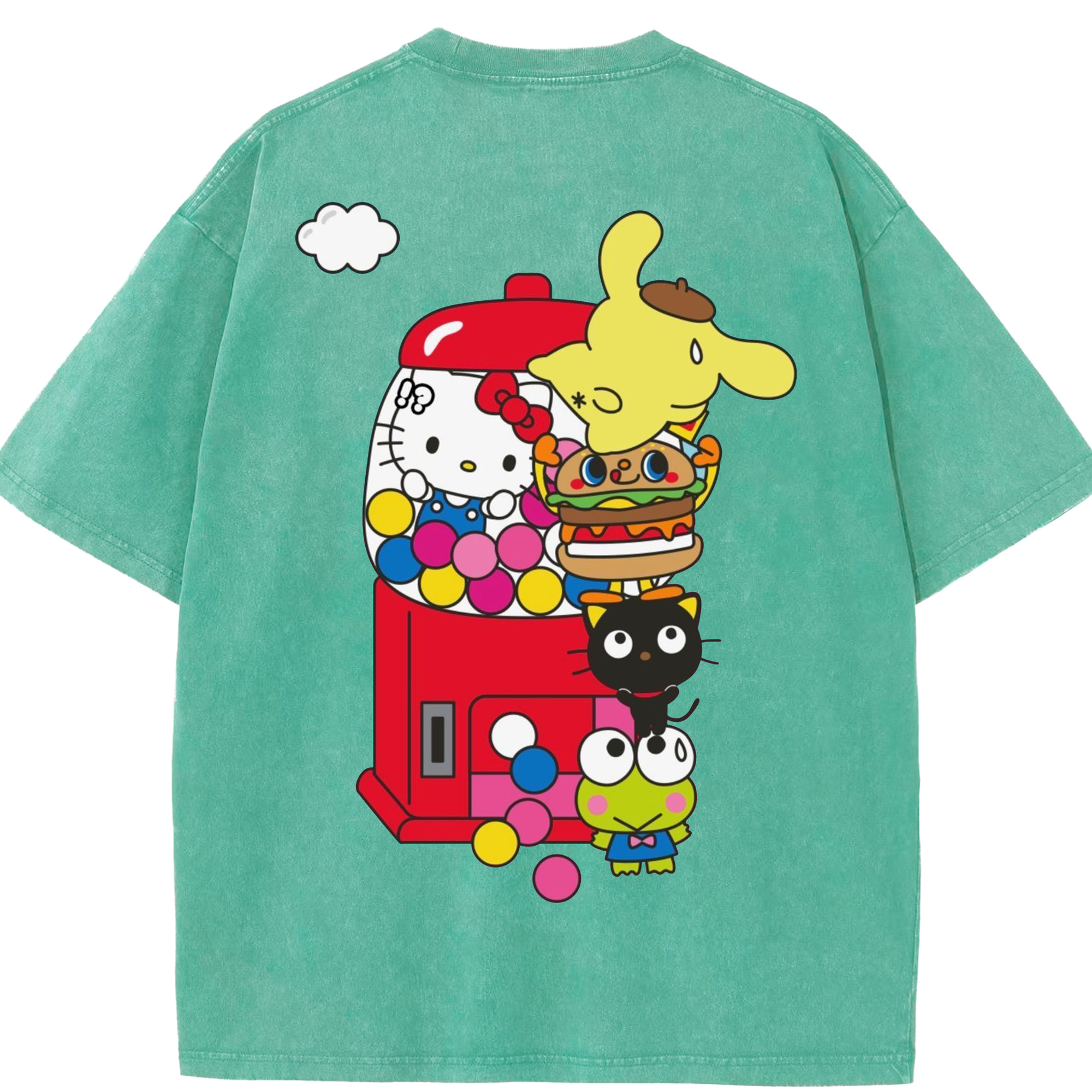 サンリオ - 綿100% ヴィンテージ風 半袖Tシャツ ・ 背面プリント ・ 柔らか肌触り ・ 通気性 快適 ・ スポーツ カジュアル 外出用