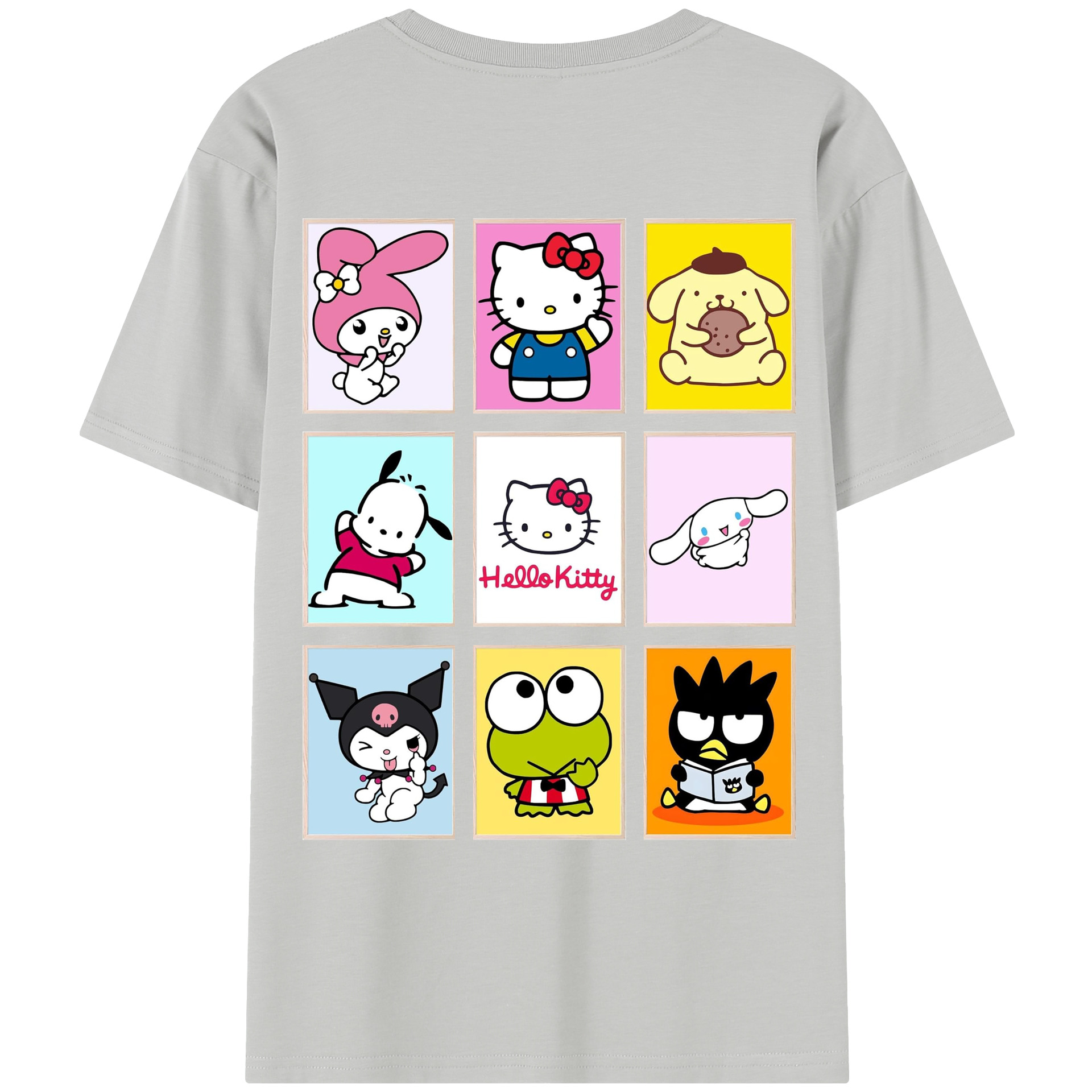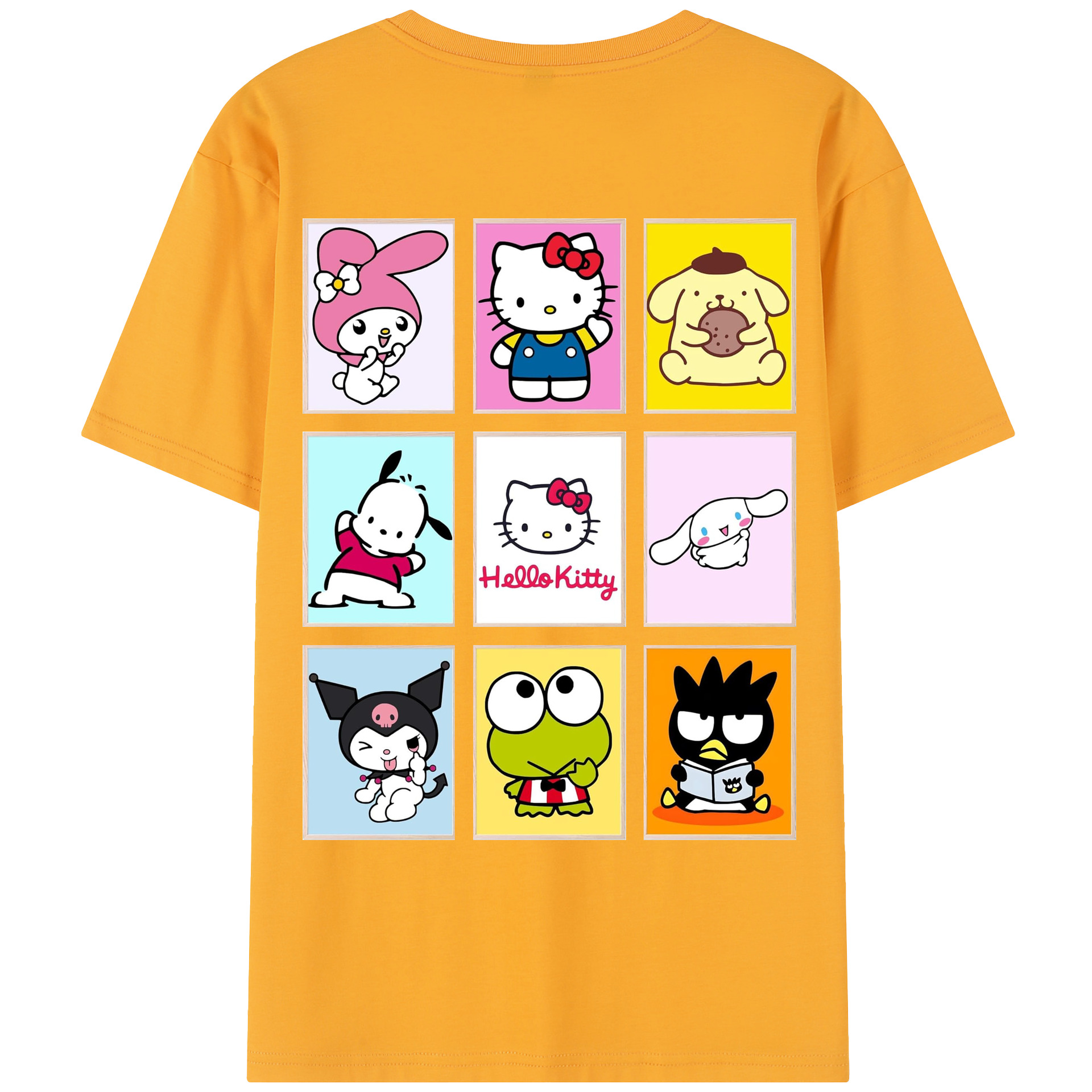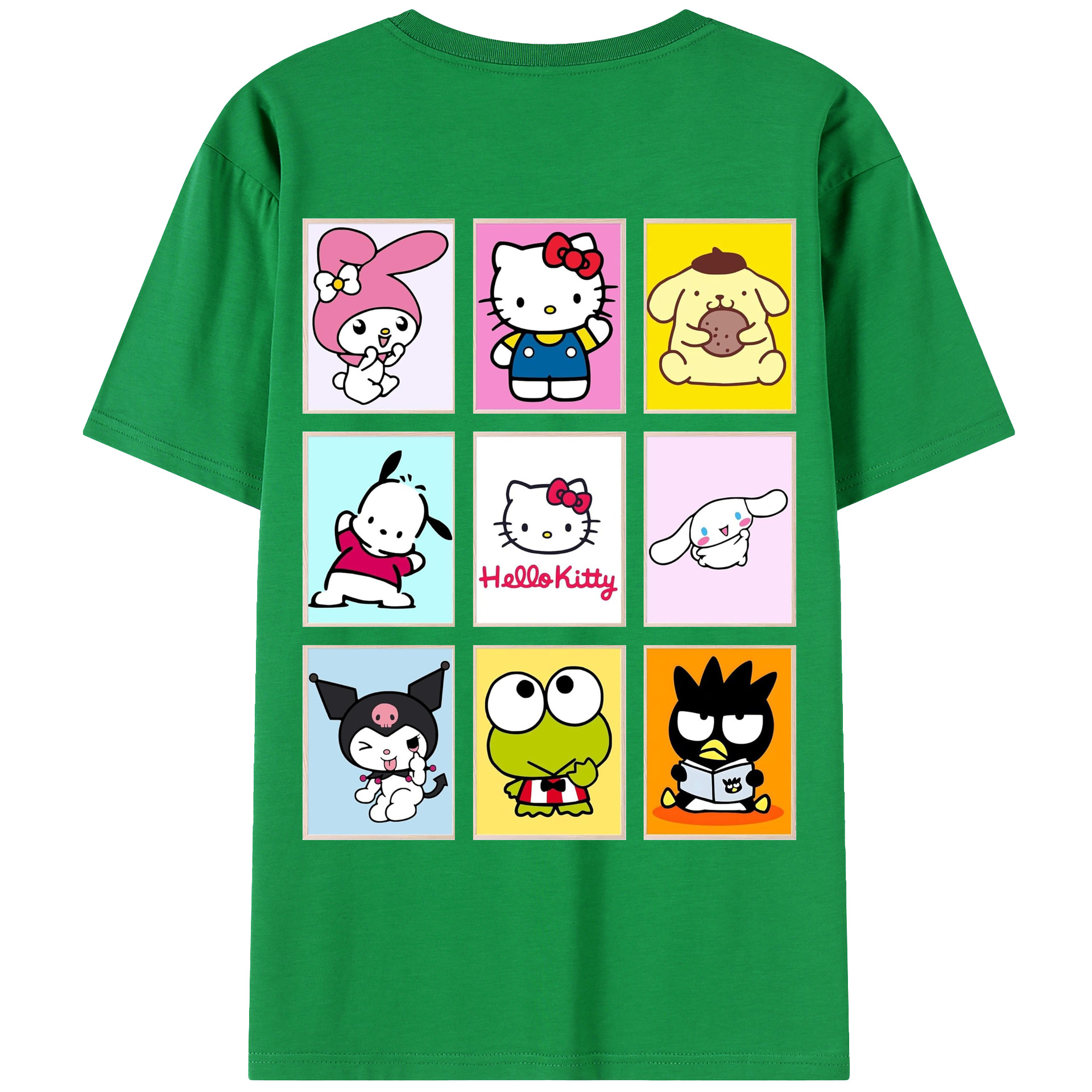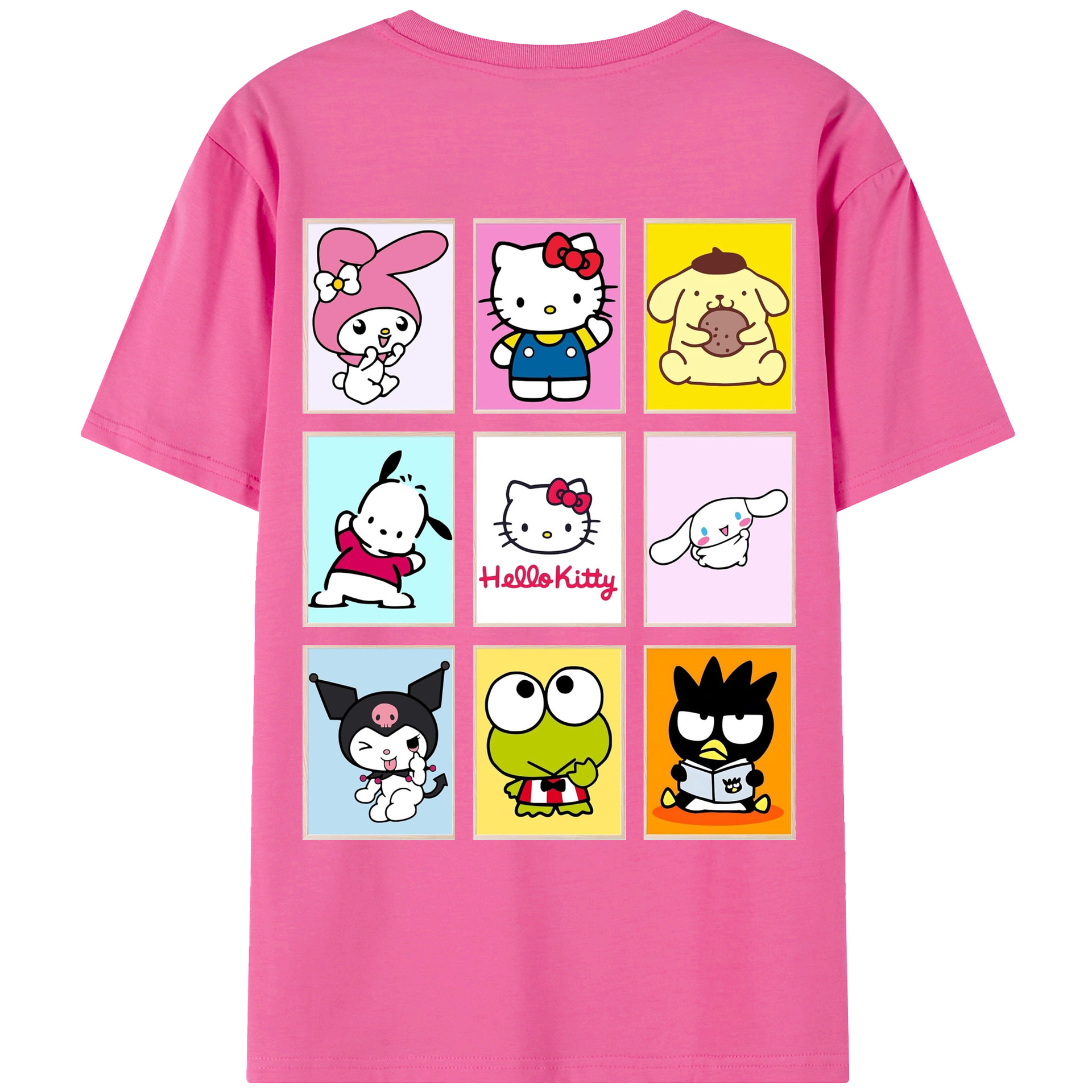 サンリオファミリー新作 - レディース半袖Tシャツ ・ 綿100% ・ バックプリント ・ 強化クルーネック ・ 二重折り袖口 ・ 快適 通気性 ・ フィットネス カジュアル 旅行用