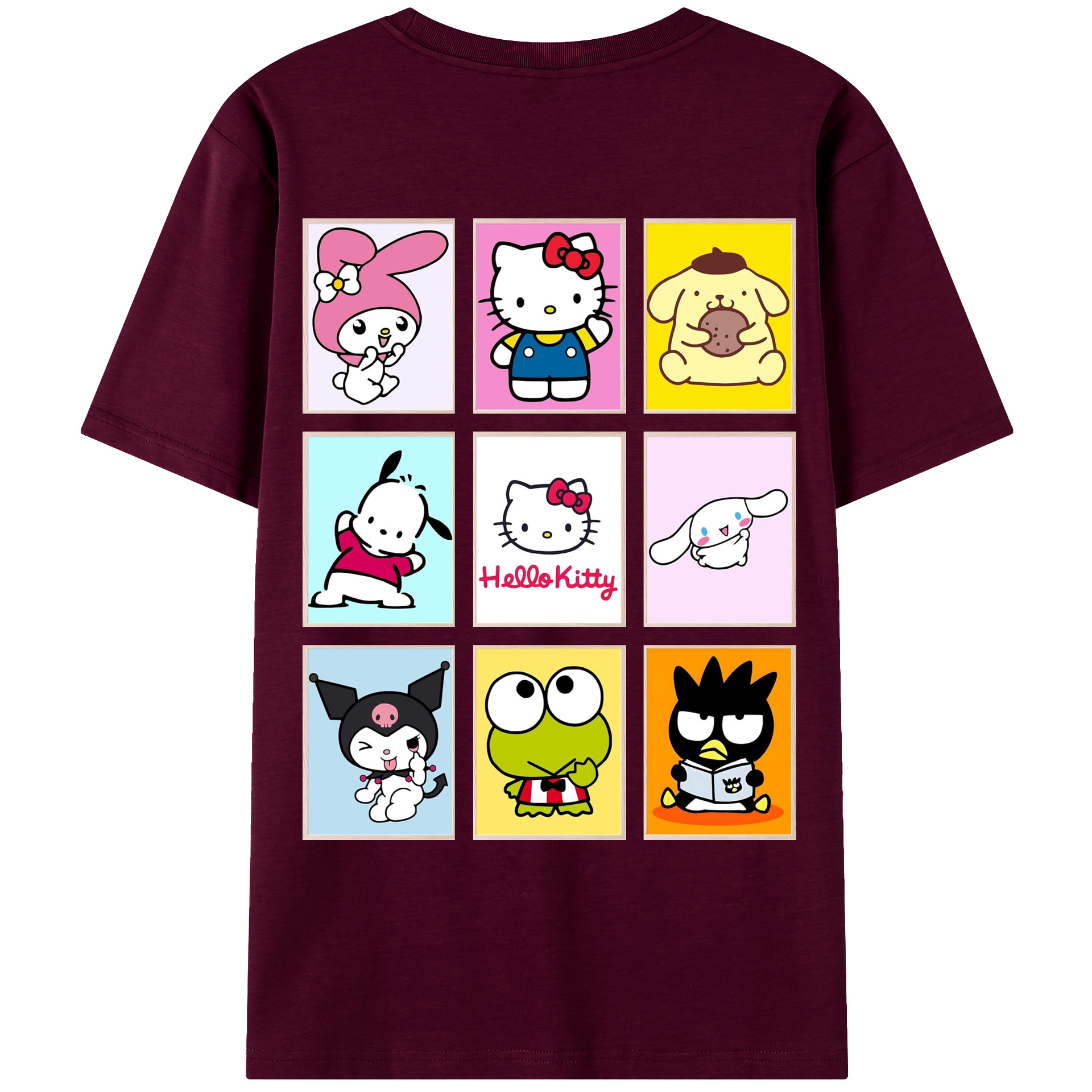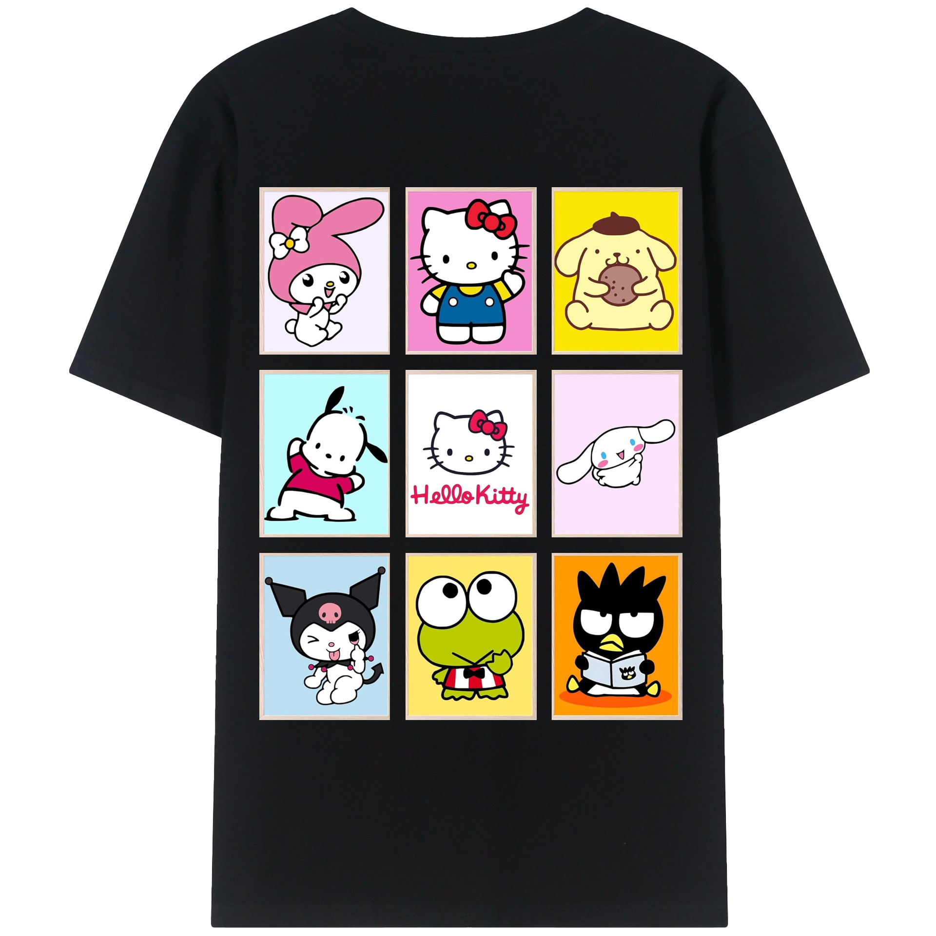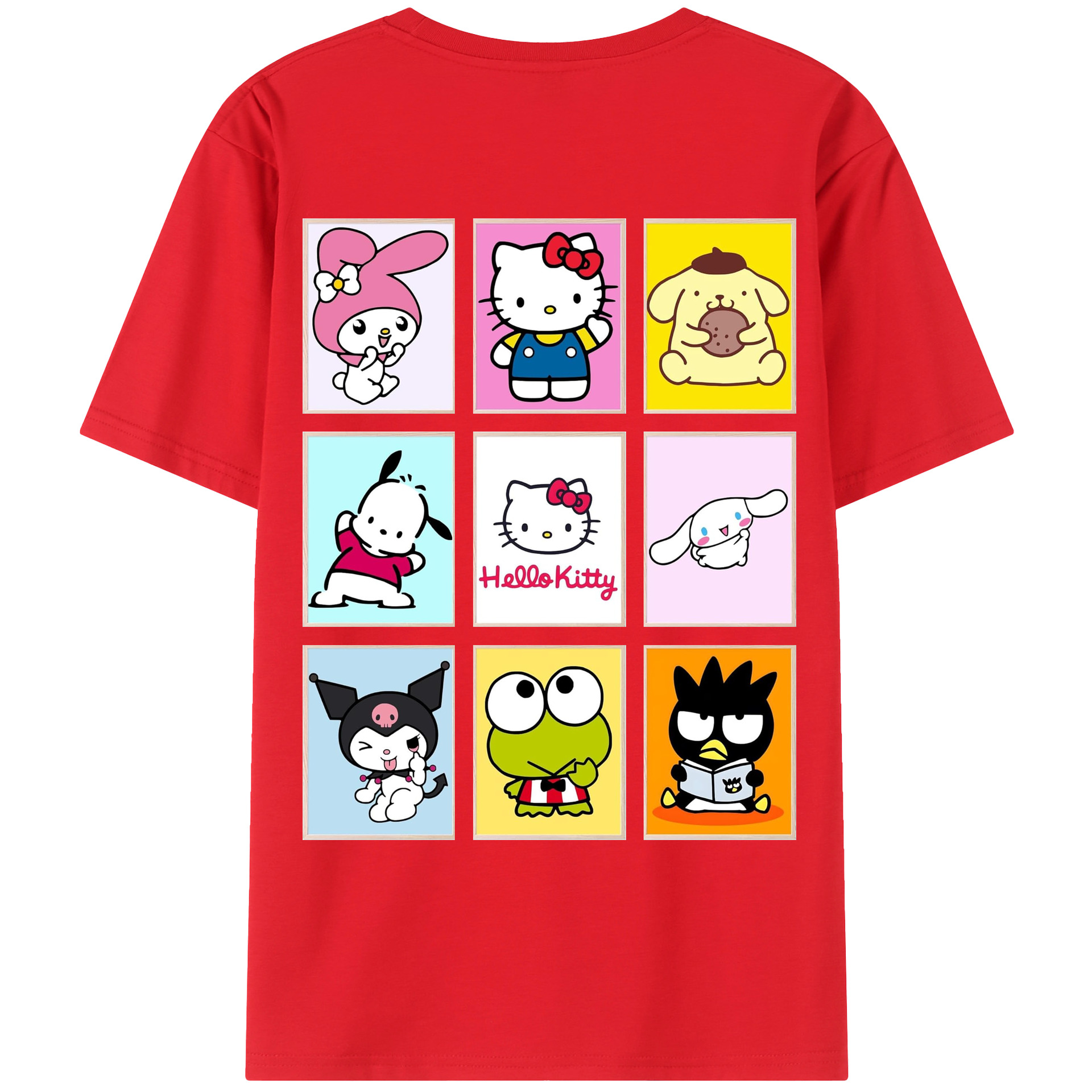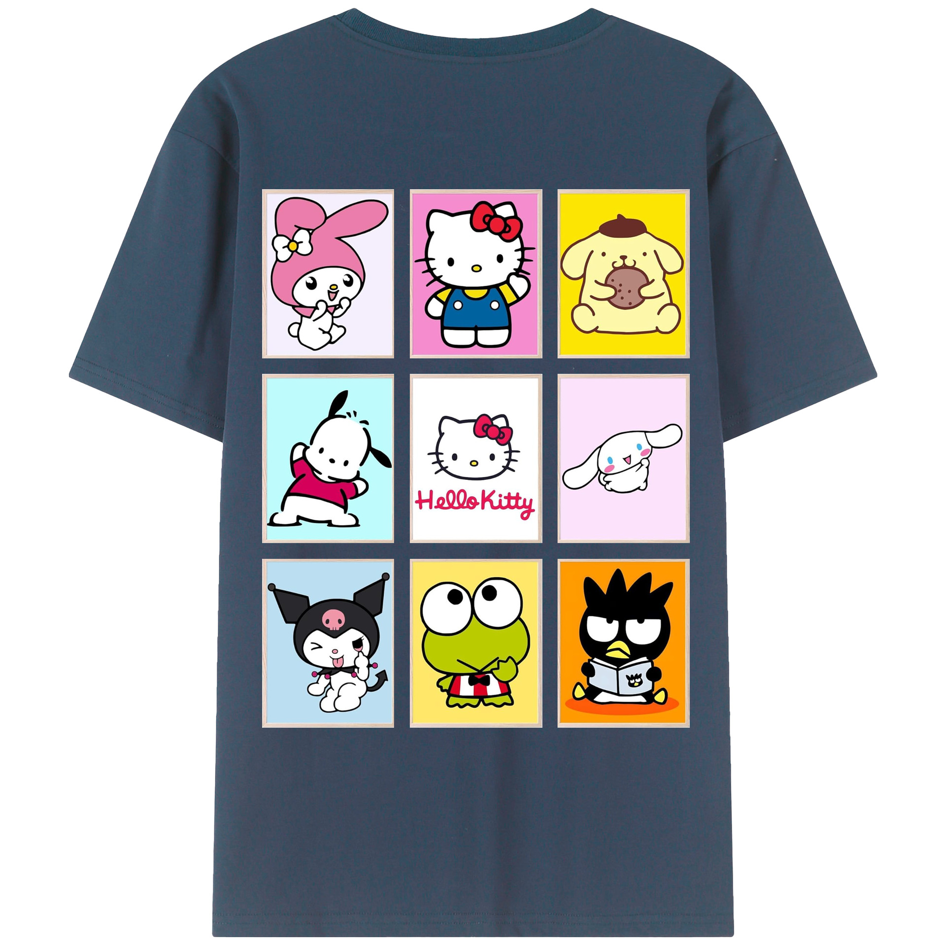 サンリオファミリー新作 - レディース半袖Tシャツ ・ 綿100% ・ バックプリント ・ 強化クルーネック ・ 二重折り袖口 ・ 快適 通気性 ・ フィットネス カジュアル 旅行用
