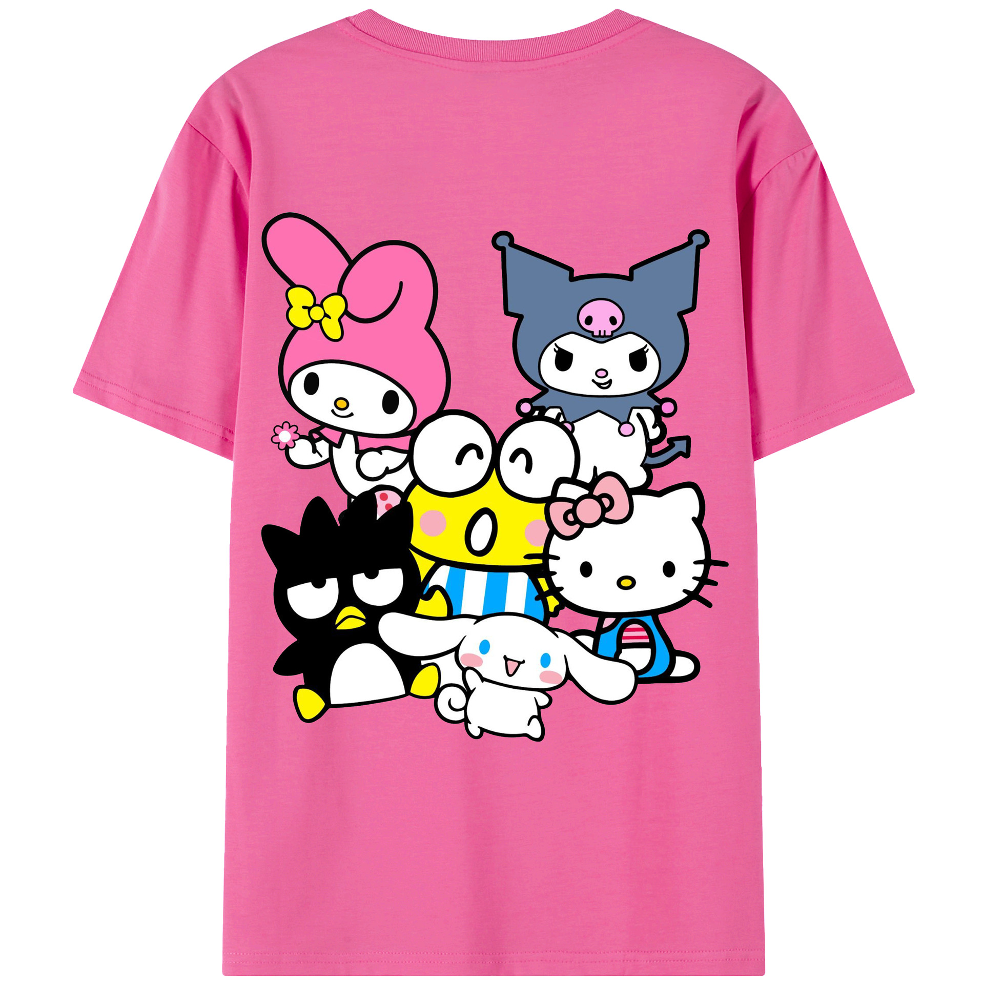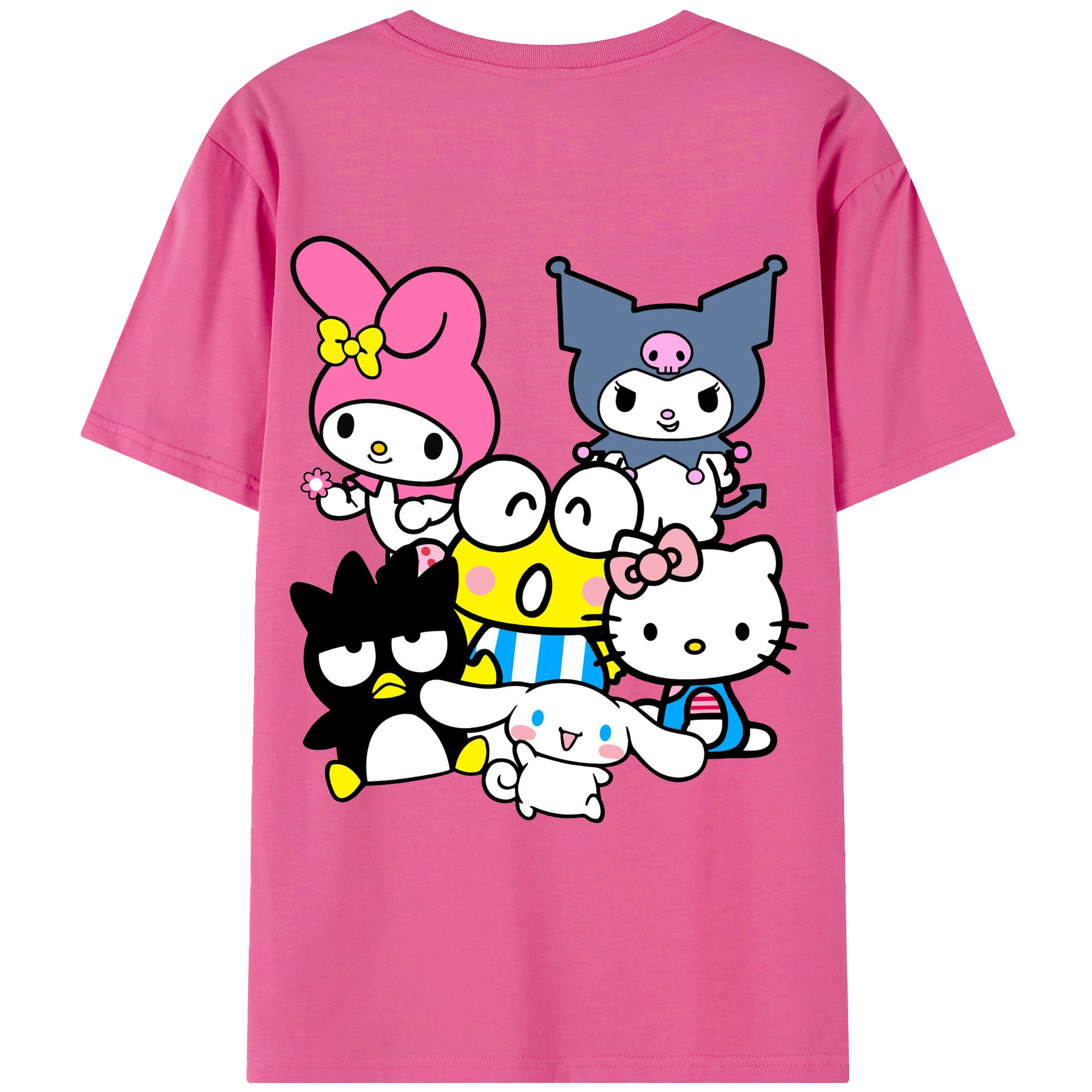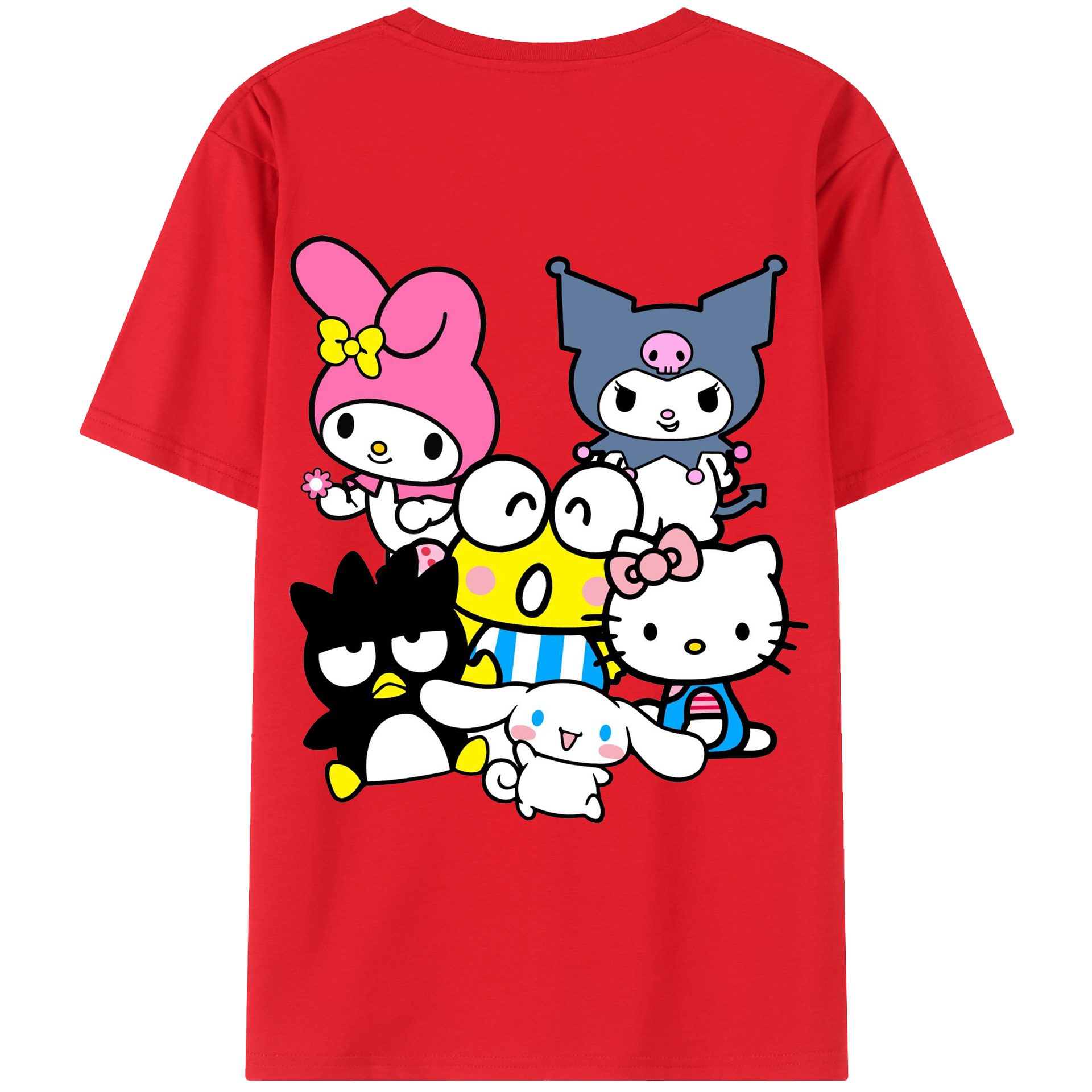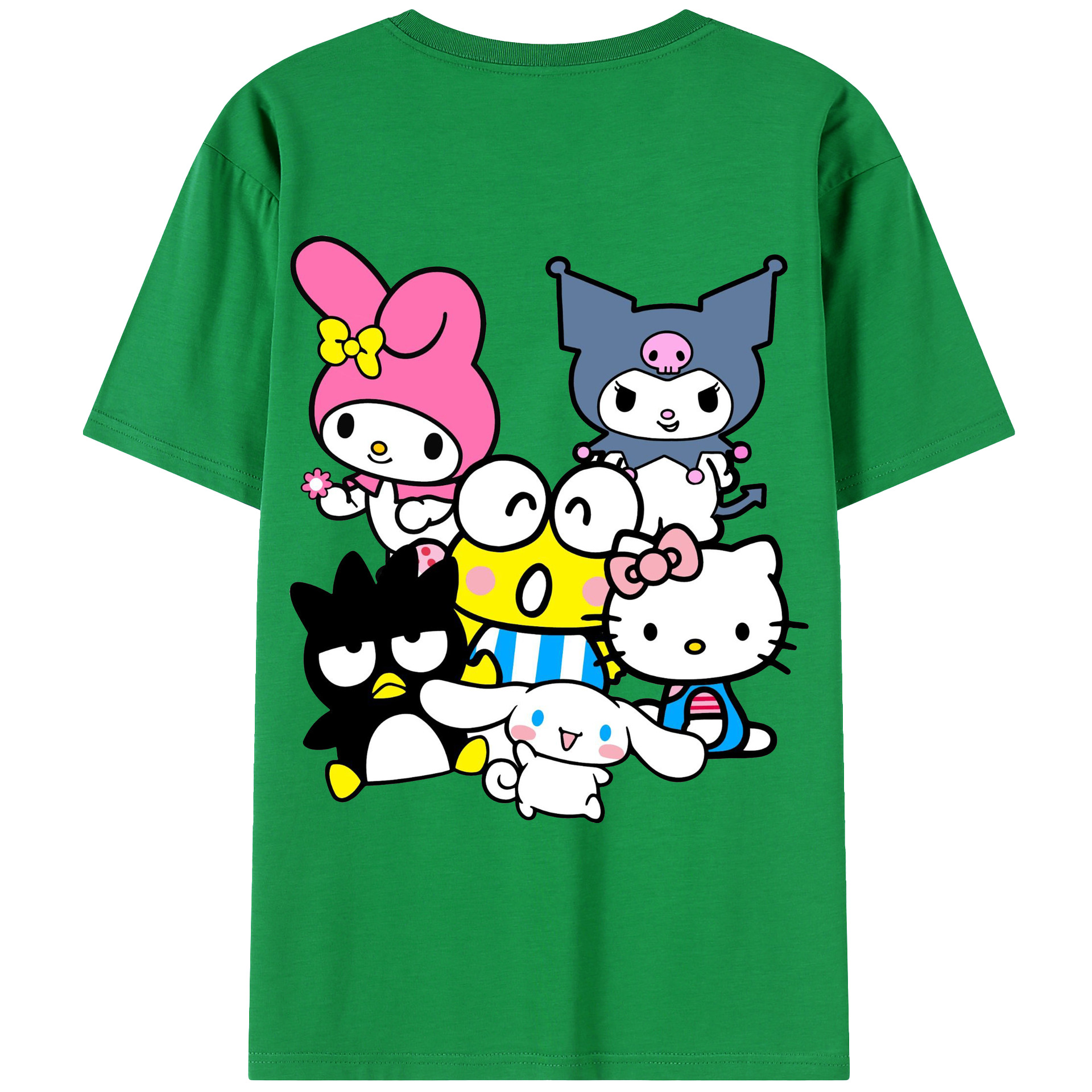 サンリオファミリー新作 - レディース半袖Tシャツ ・ 綿100% ・ バックプリント ・ 強化クルーネック ・ 二重折り袖口 ・ 快適 通気性 ・ フィットネス カジュアル 旅行用