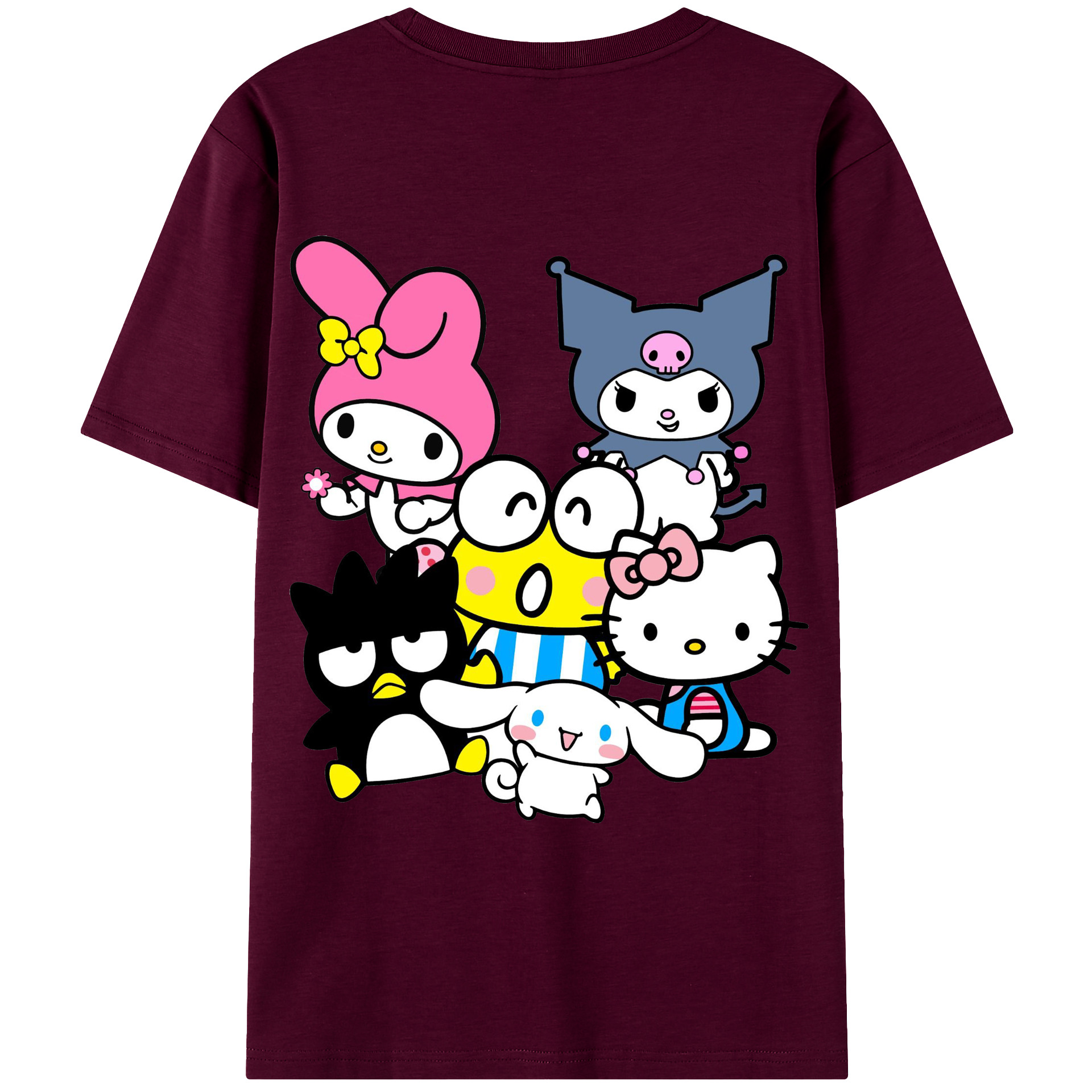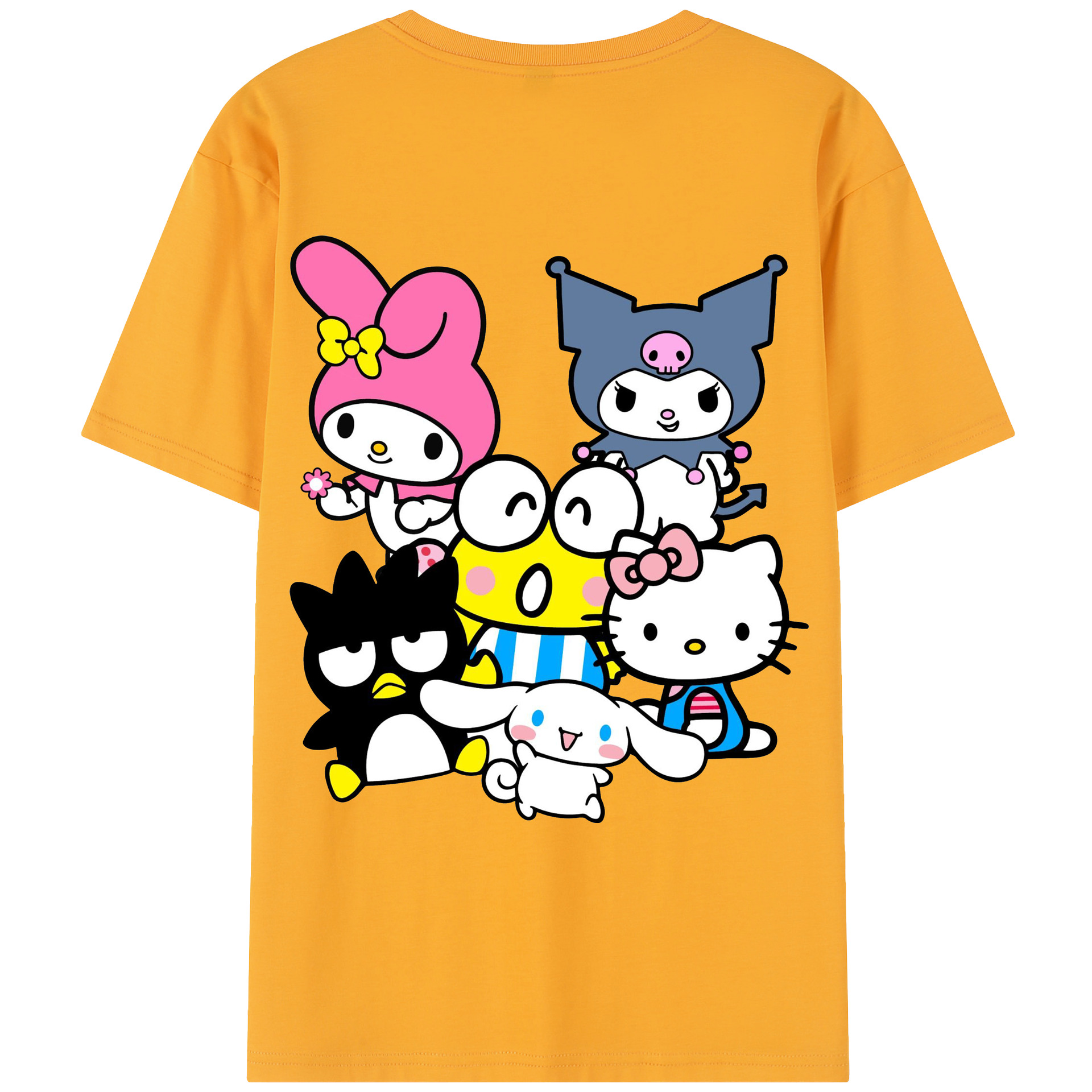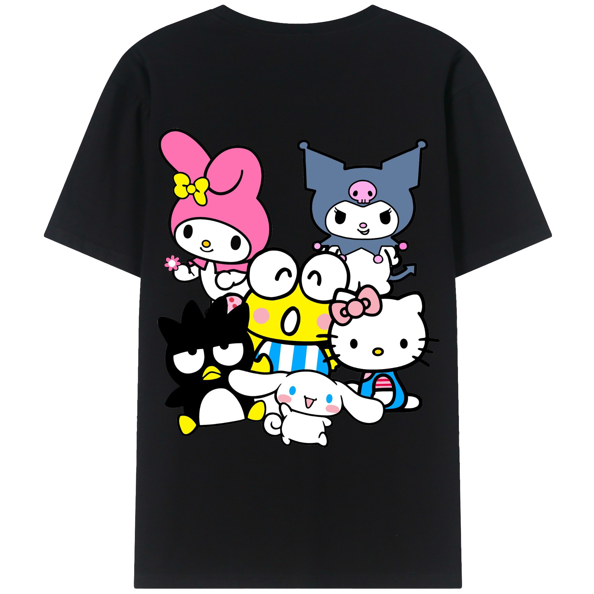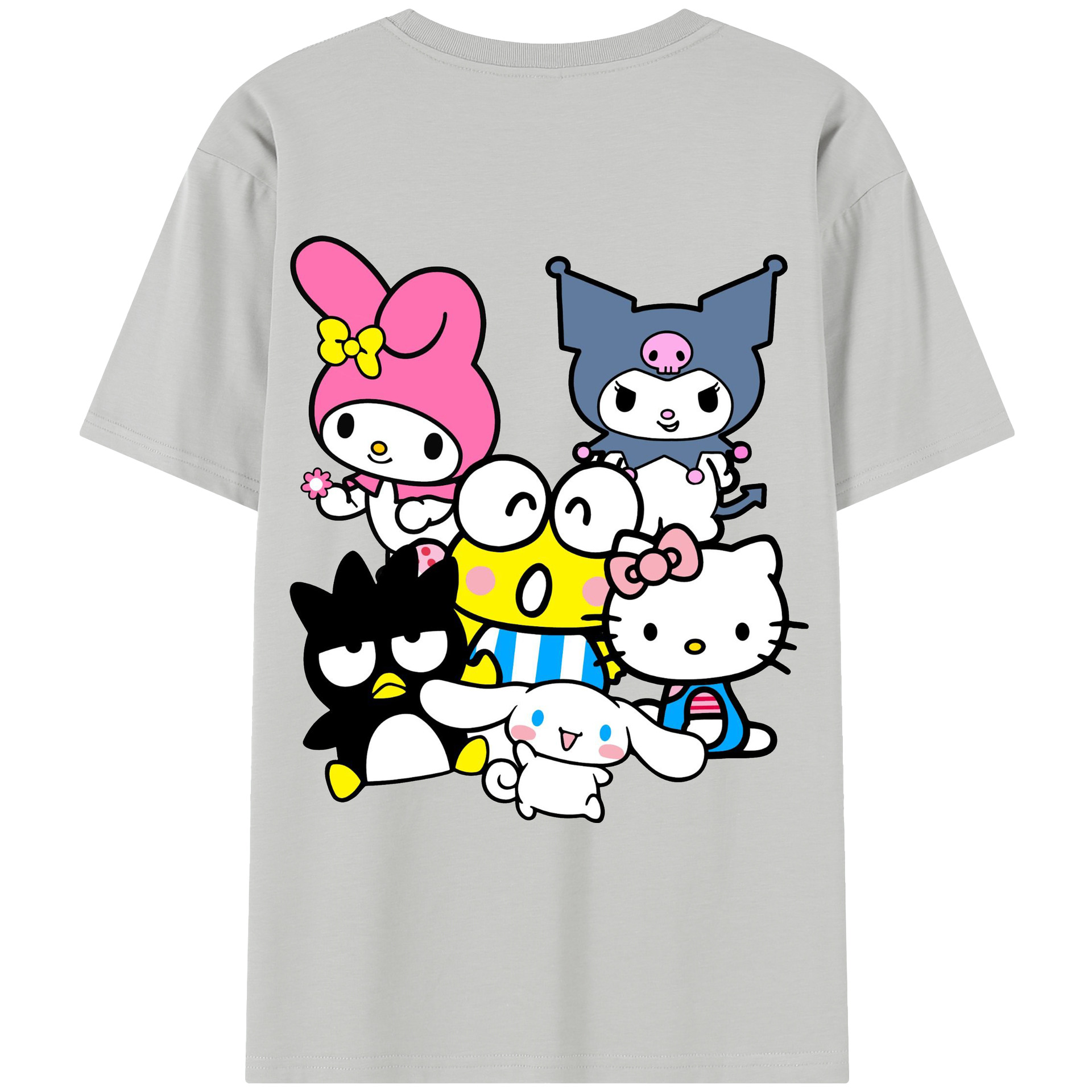 サンリオファミリー新作 - レディース半袖Tシャツ ・ 綿100% ・ バックプリント ・ 強化クルーネック ・ 二重折り袖口 ・ 快適 通気性 ・ フィットネス カジュアル 旅行用