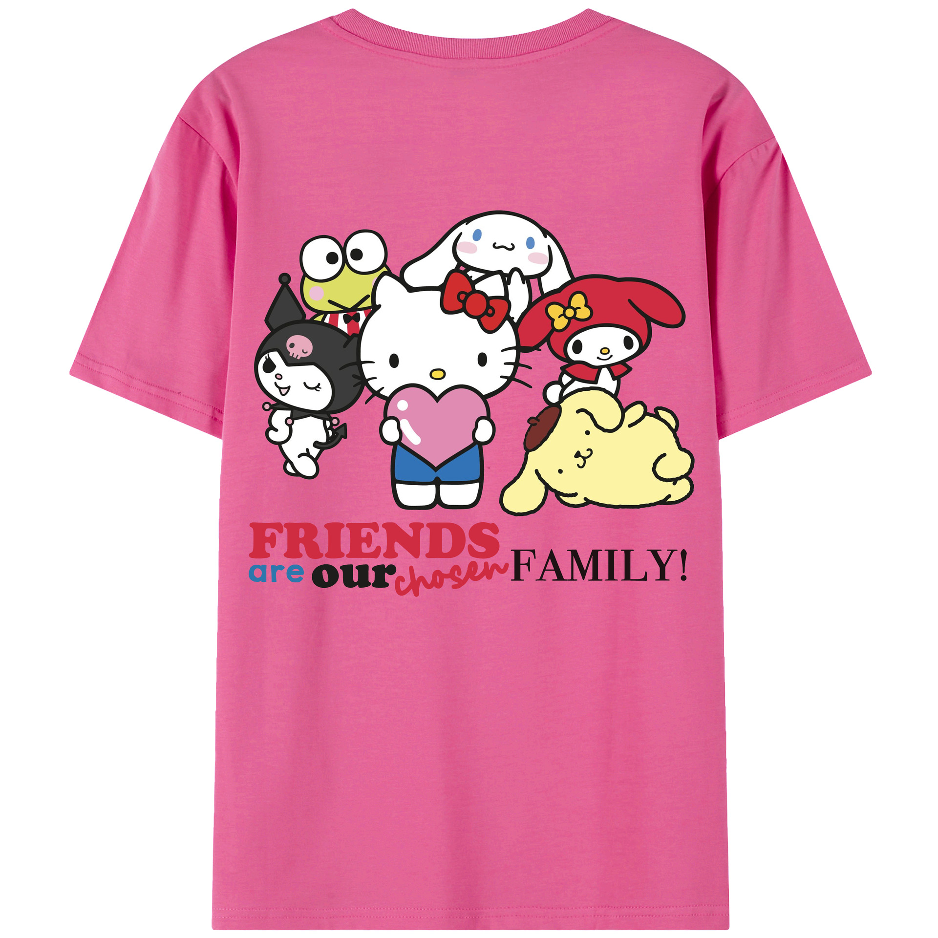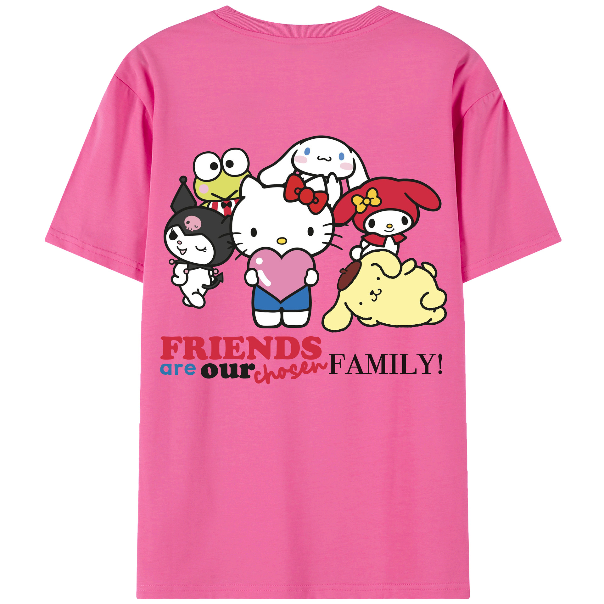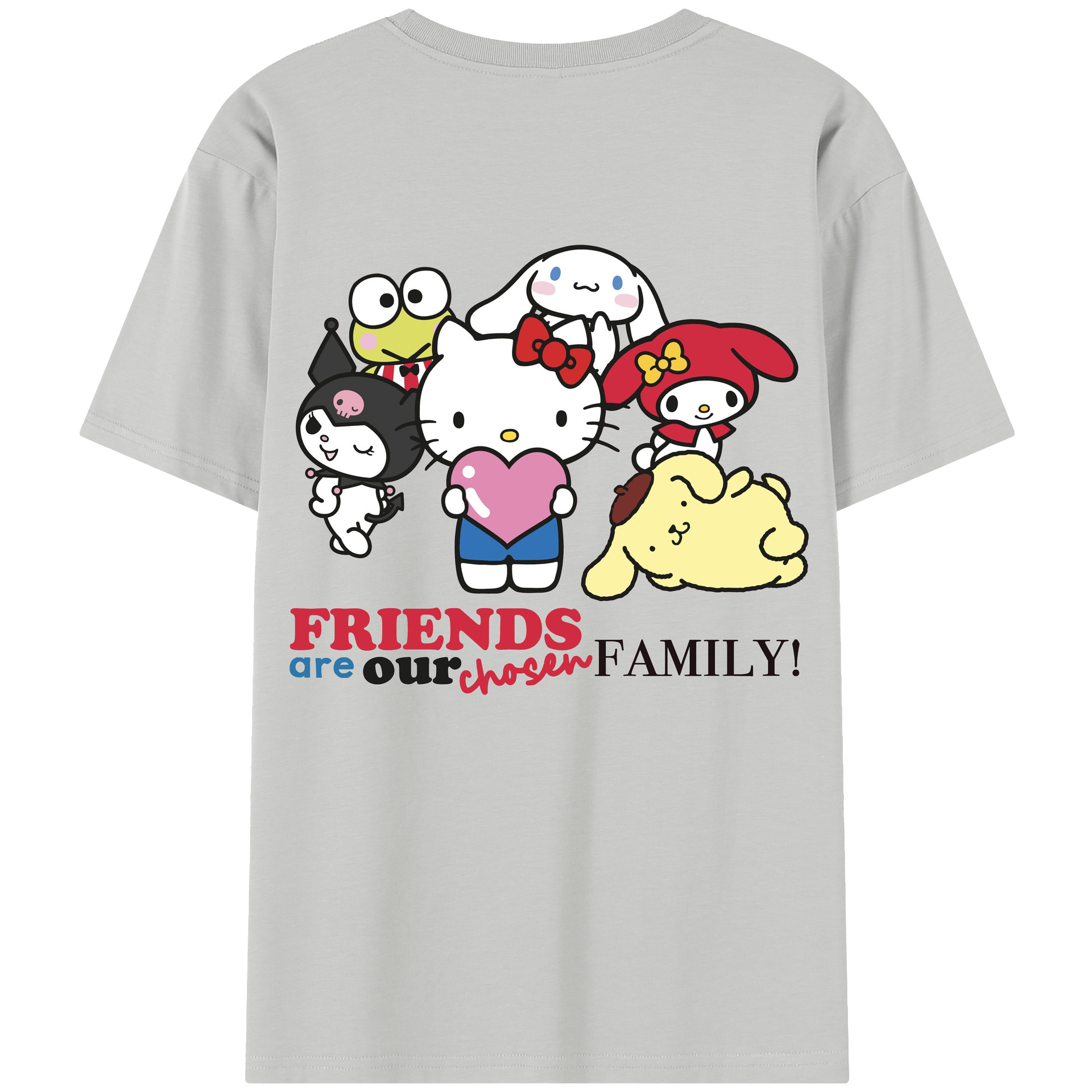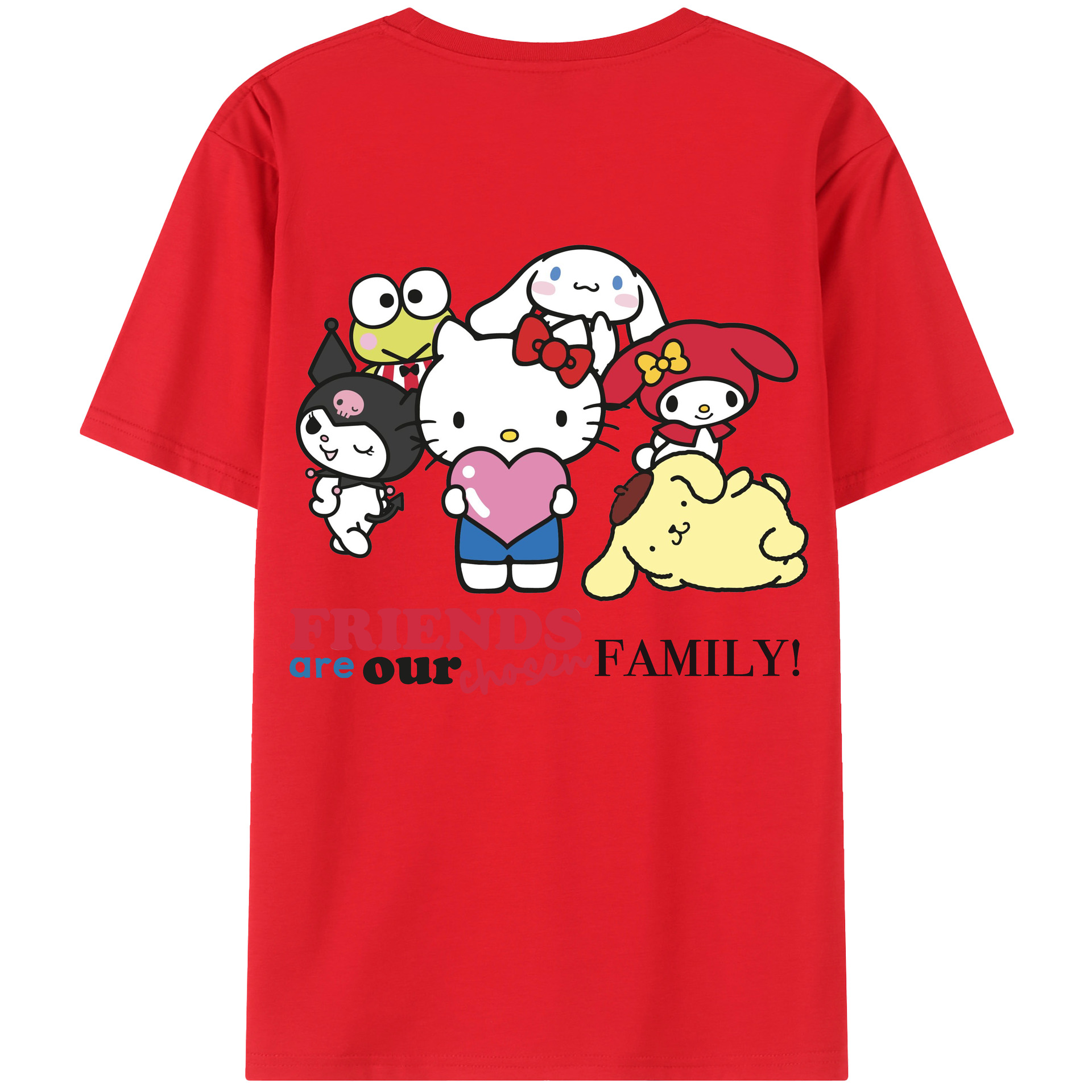 サンリオファミリー新作 - レディース半袖Tシャツ ・ 綿100% ・ バックプリント ・ 強化クルーネック ・ 二重折り袖口 ・ 快適 通気性 ・ フィットネス カジュアル 旅行用