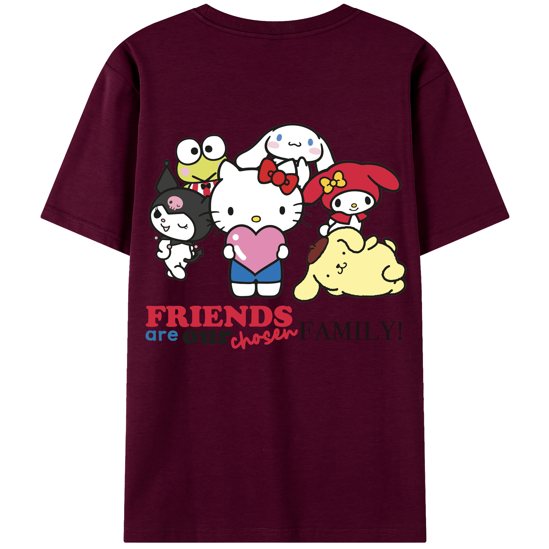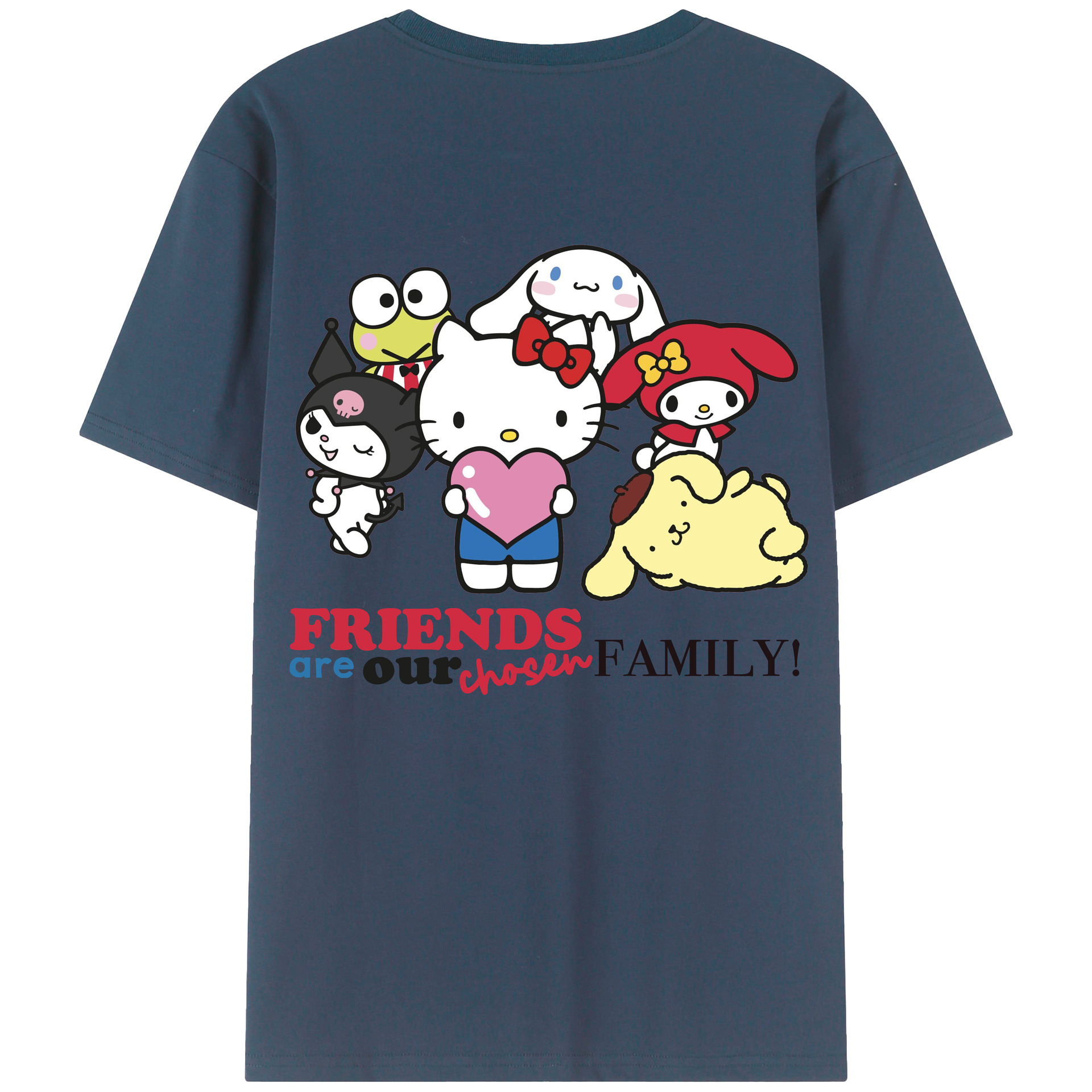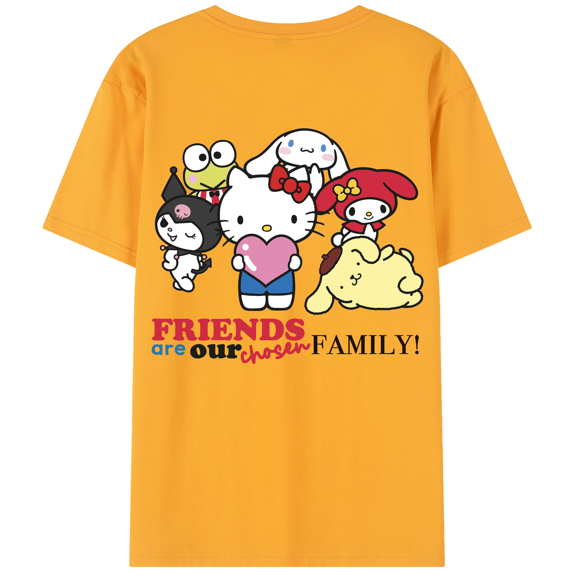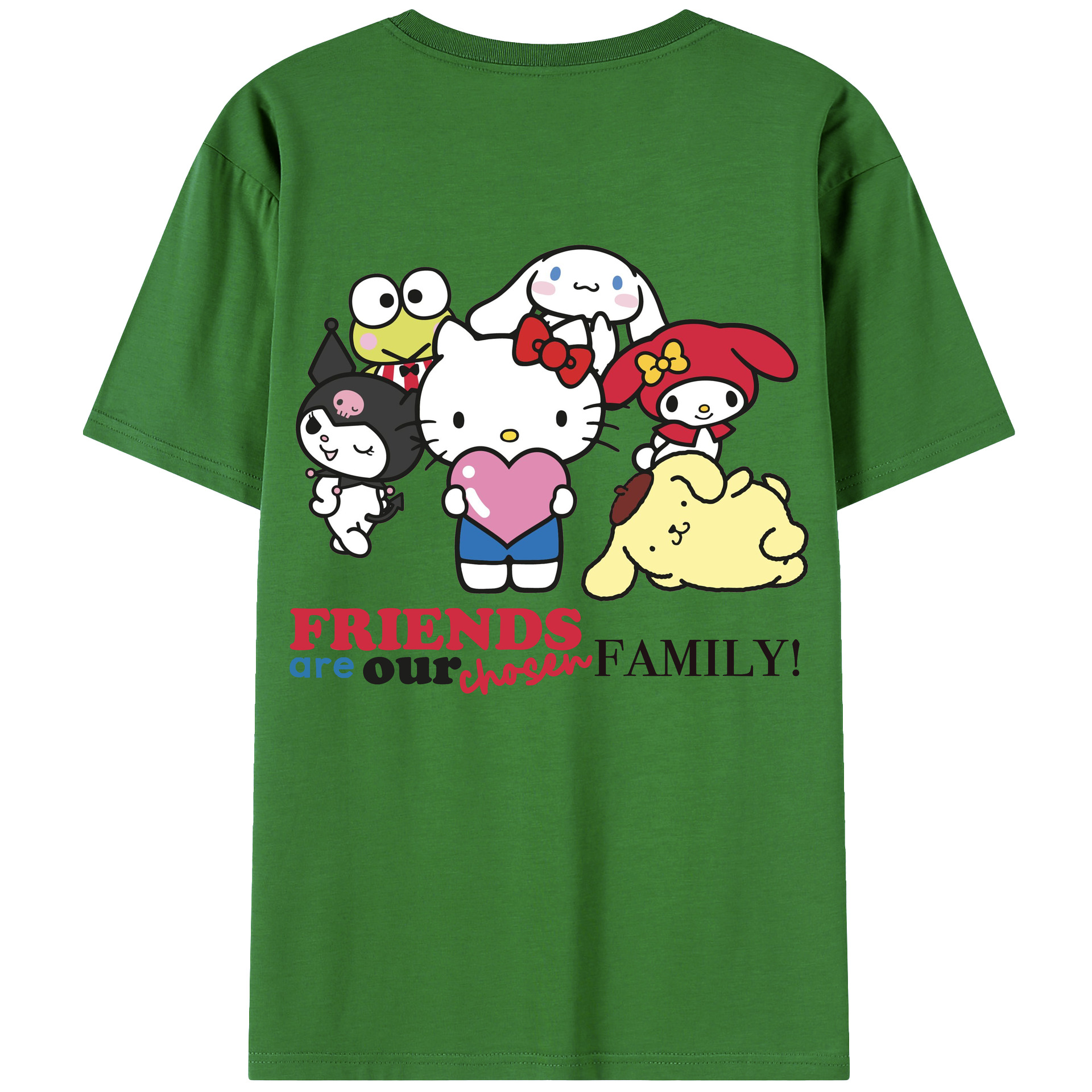 サンリオファミリー新作 - レディース半袖Tシャツ ・ 綿100% ・ バックプリント ・ 強化クルーネック ・ 二重折り袖口 ・ 快適 通気性 ・ フィットネス カジュアル 旅行用