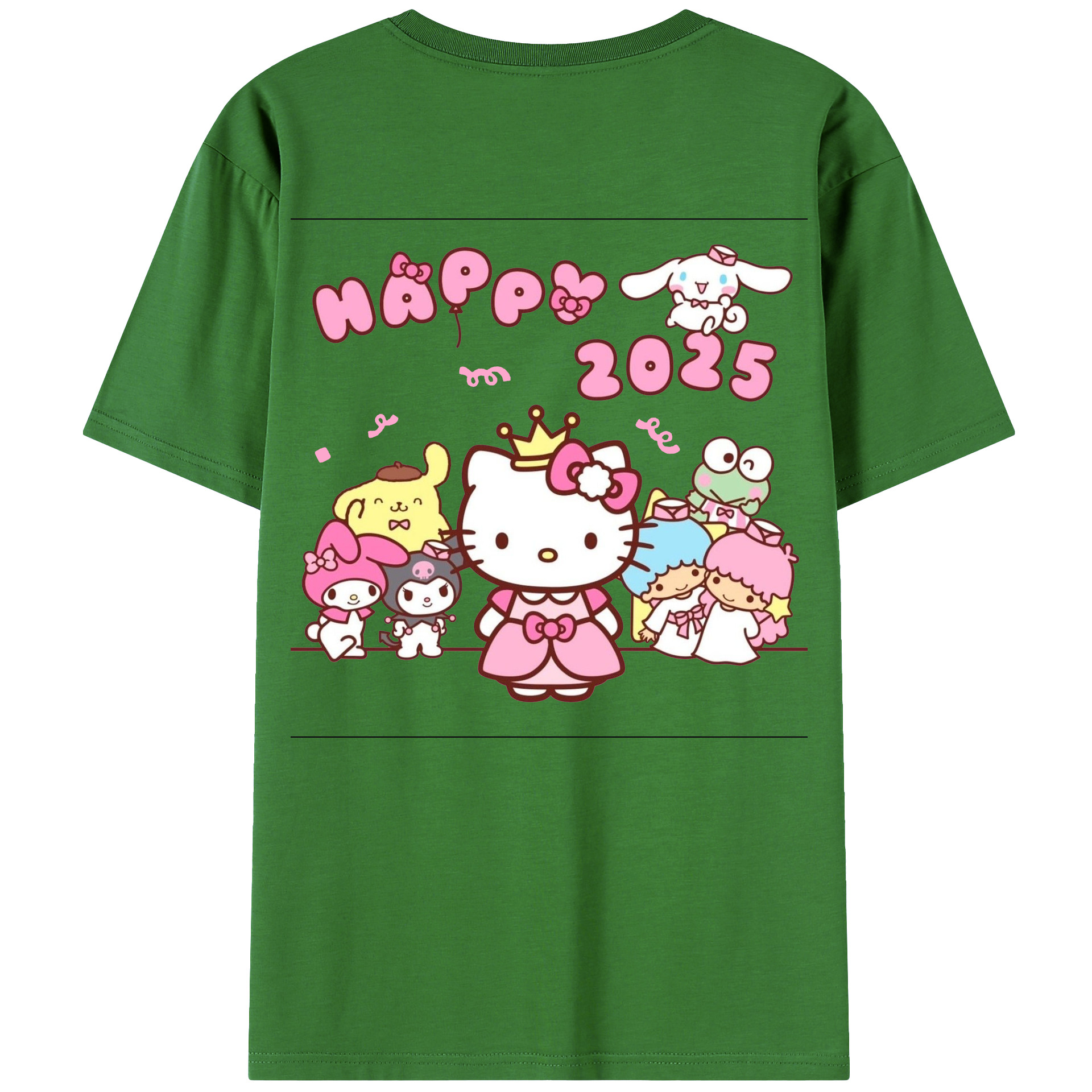 サンリオファミリー 2025年新作 - レディース半袖Tシャツ ・ 綿100% ・ バックプリント ・ 強化クルーネック ・ 二重折り袖口 ・ 快適 通気性 ・ フィットネス カジュアル 旅行用