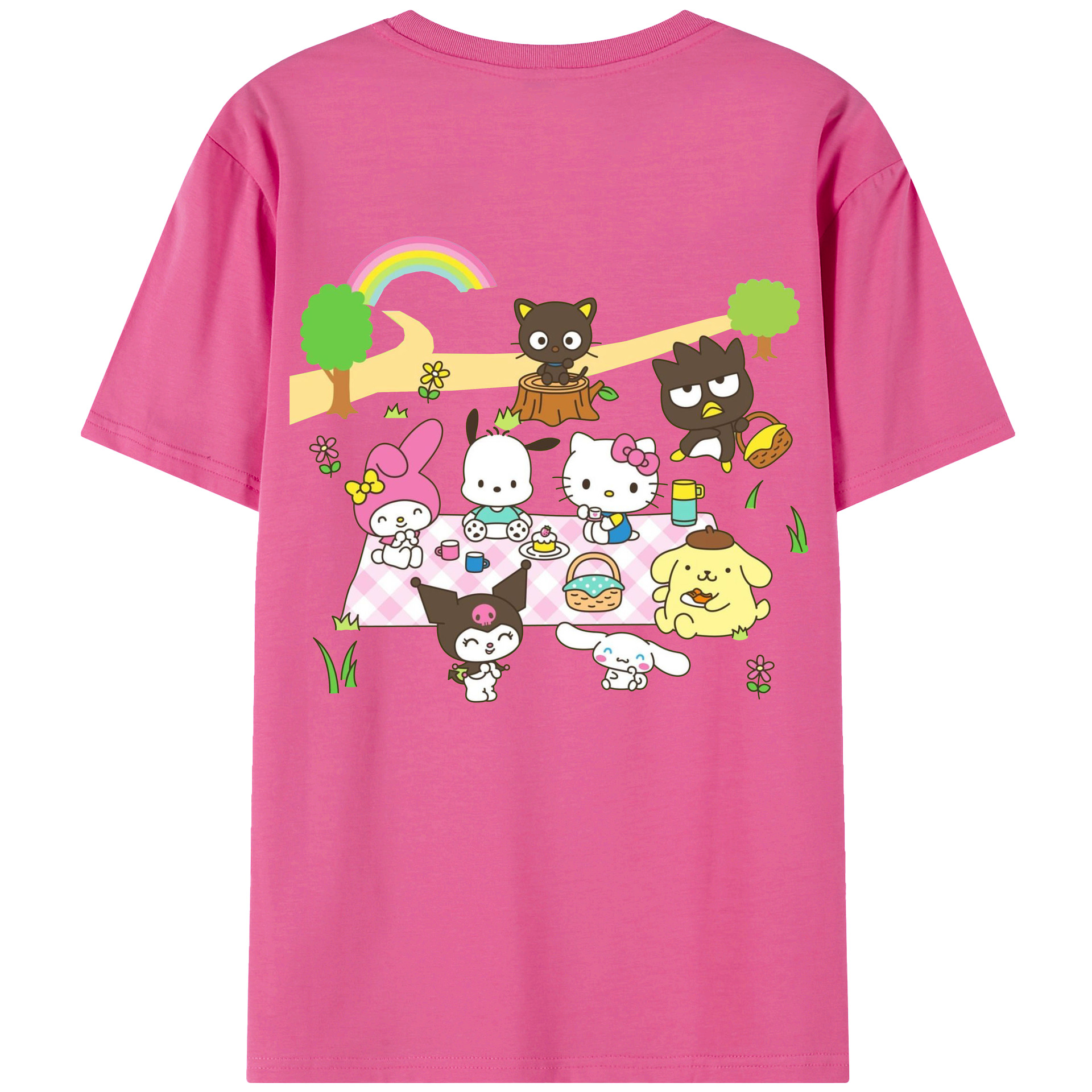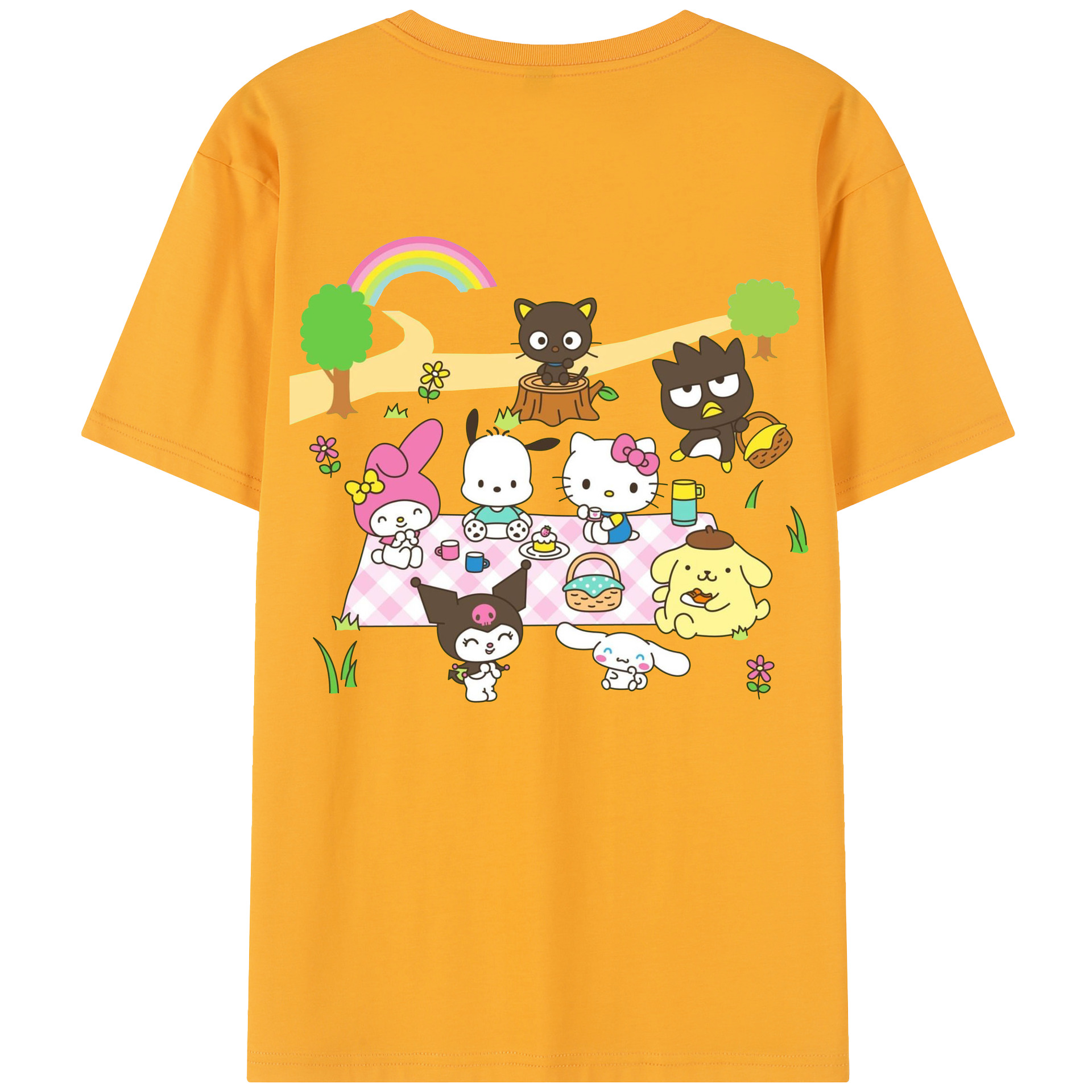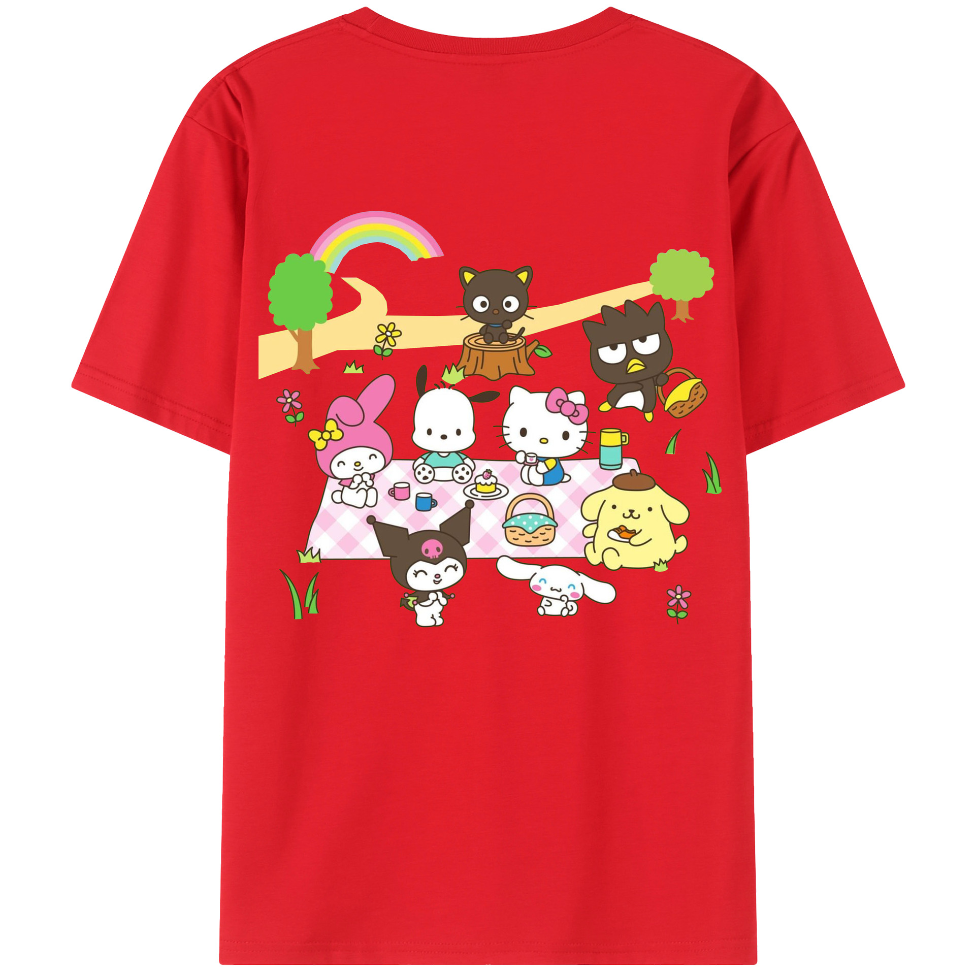 サンリオファミリー 2025年新作 - レディース半袖Tシャツ ・ 綿100% ・ バックプリント ・ 強化クルーネック ・ 二重折り袖口 ・ 快適 通気性 ・ フィットネス カジュアル 旅行用