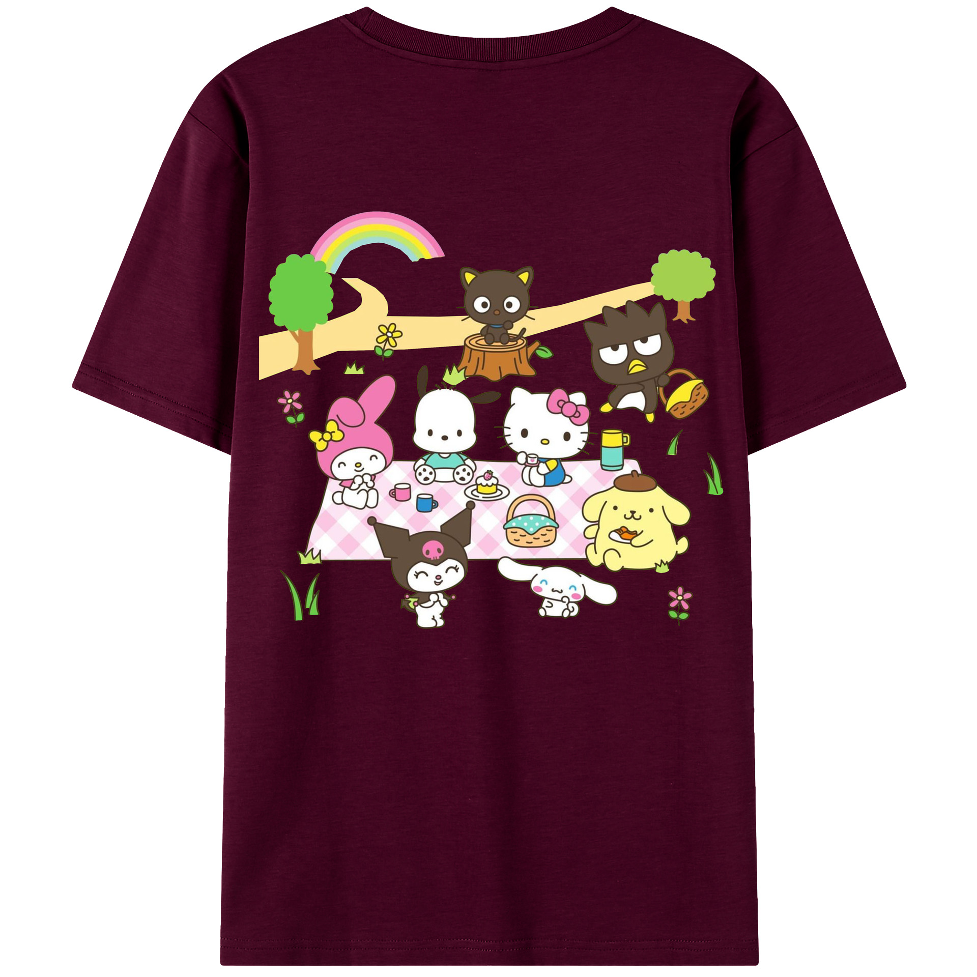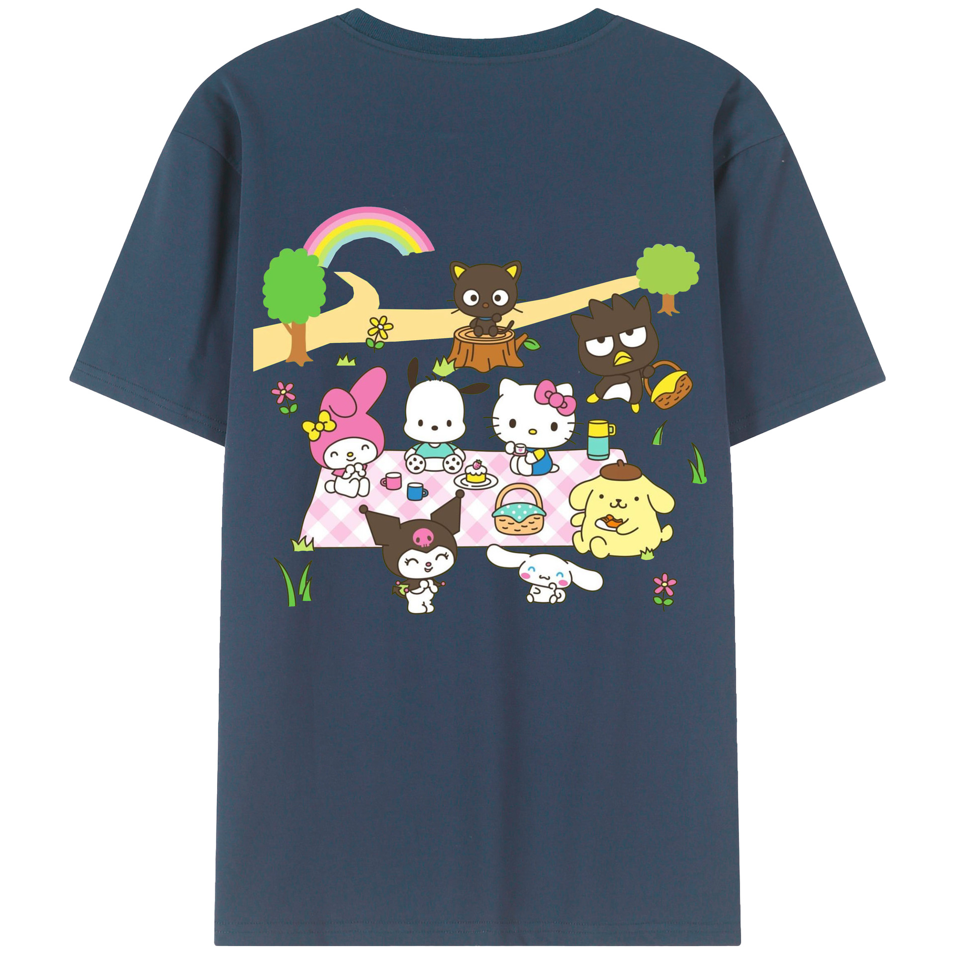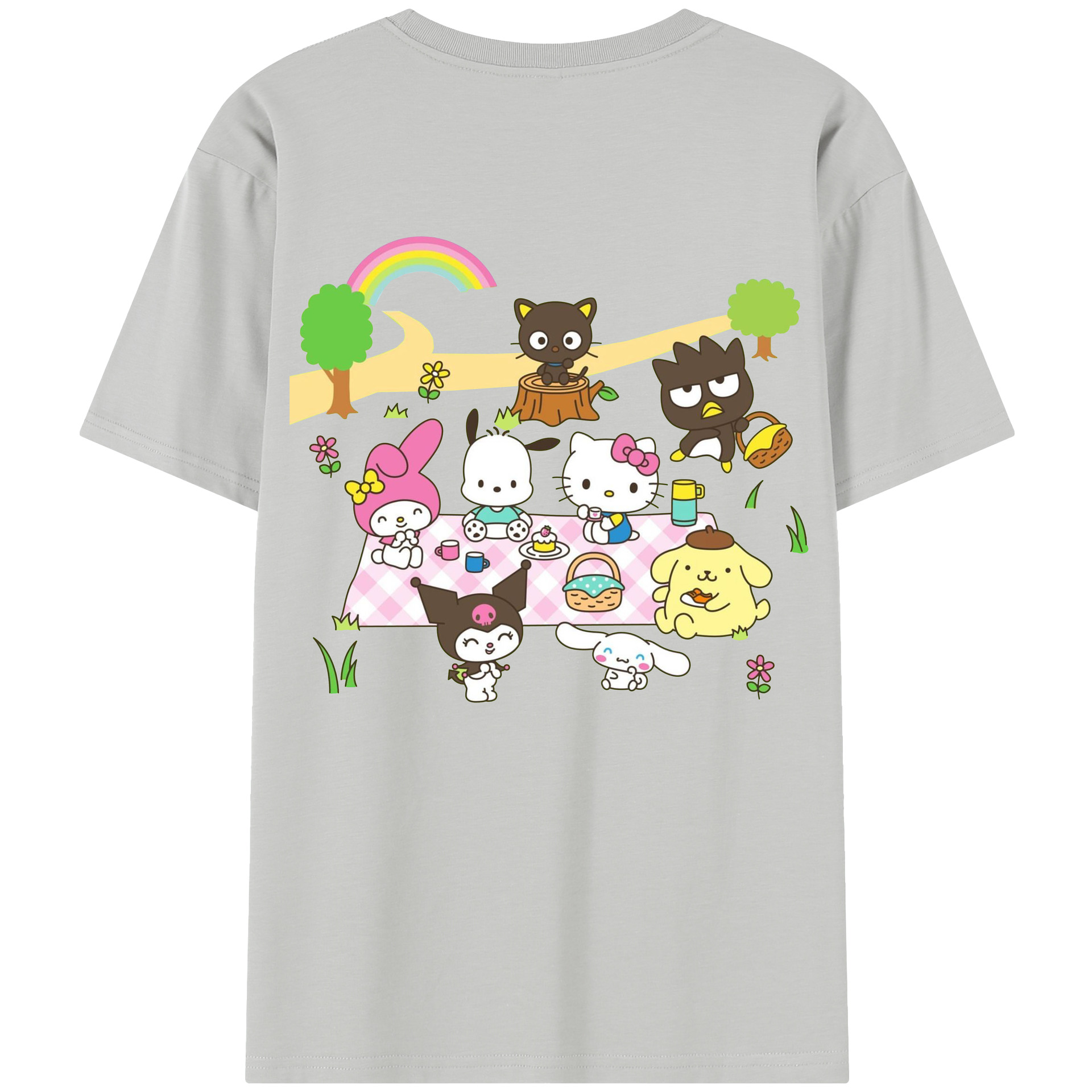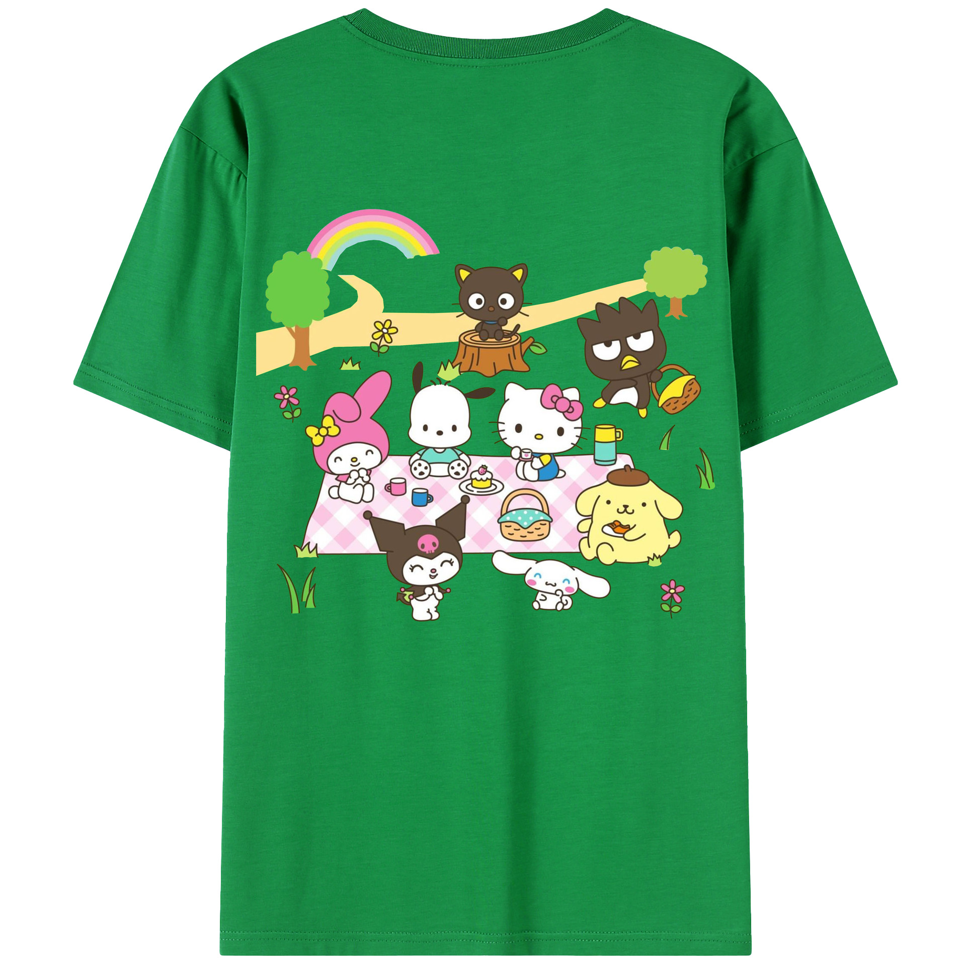 サンリオファミリー 2025年新作 - レディース半袖Tシャツ ・ 綿100% ・ バックプリント ・ 強化クルーネック ・ 二重折り袖口 ・ 快適 通気性 ・ フィットネス カジュアル 旅行用