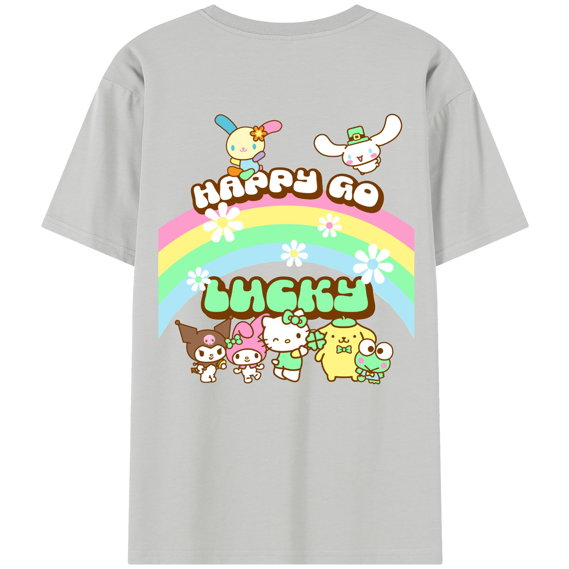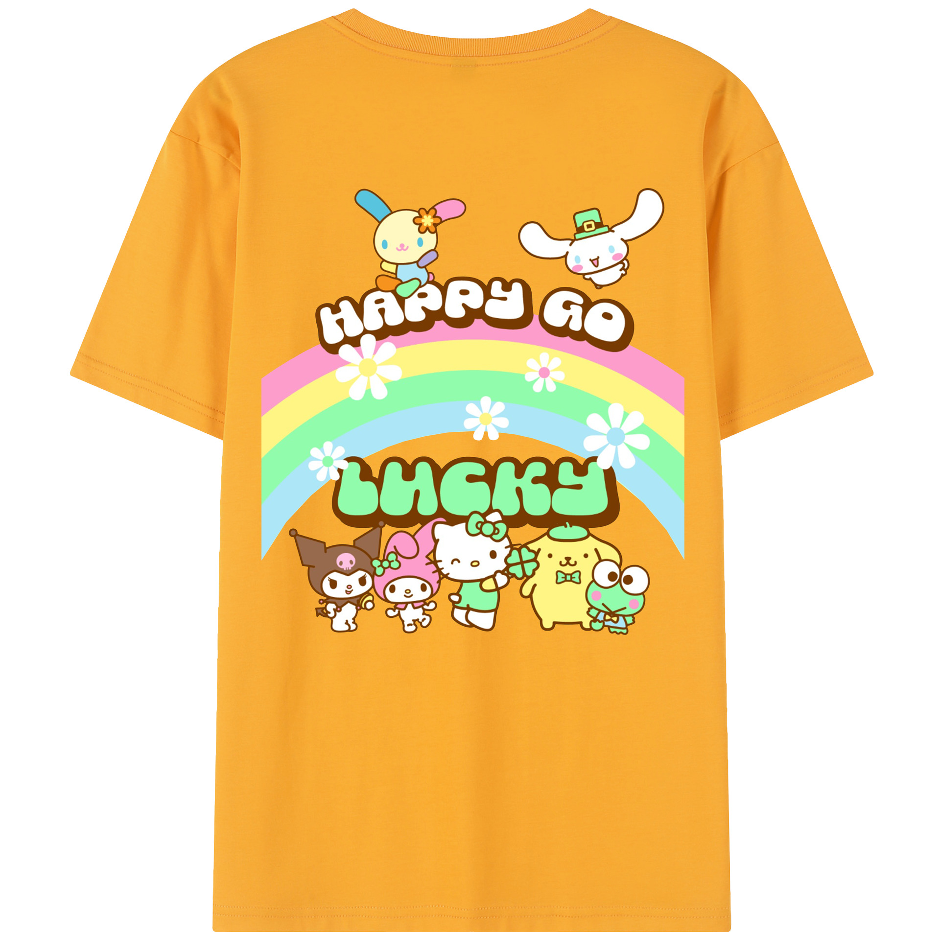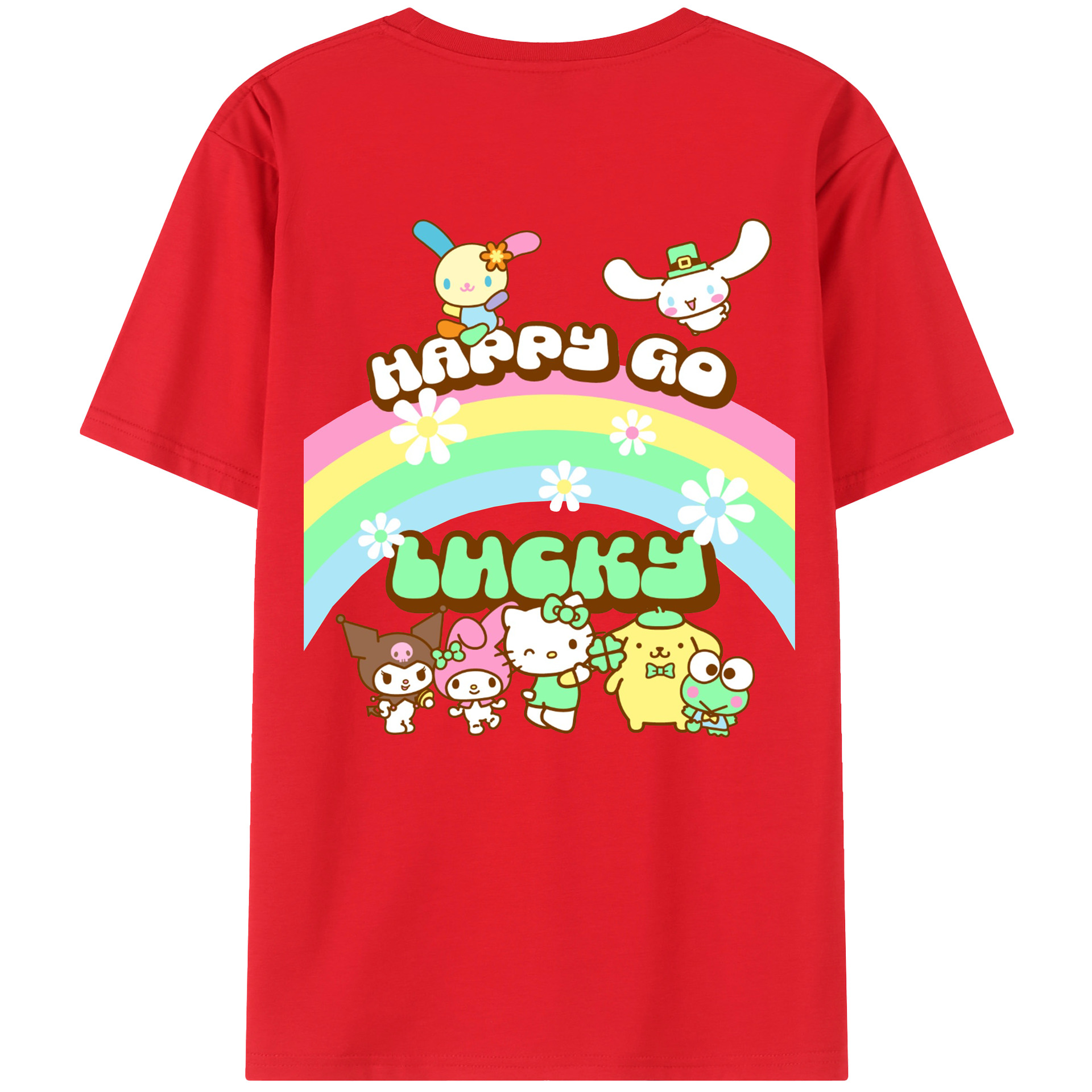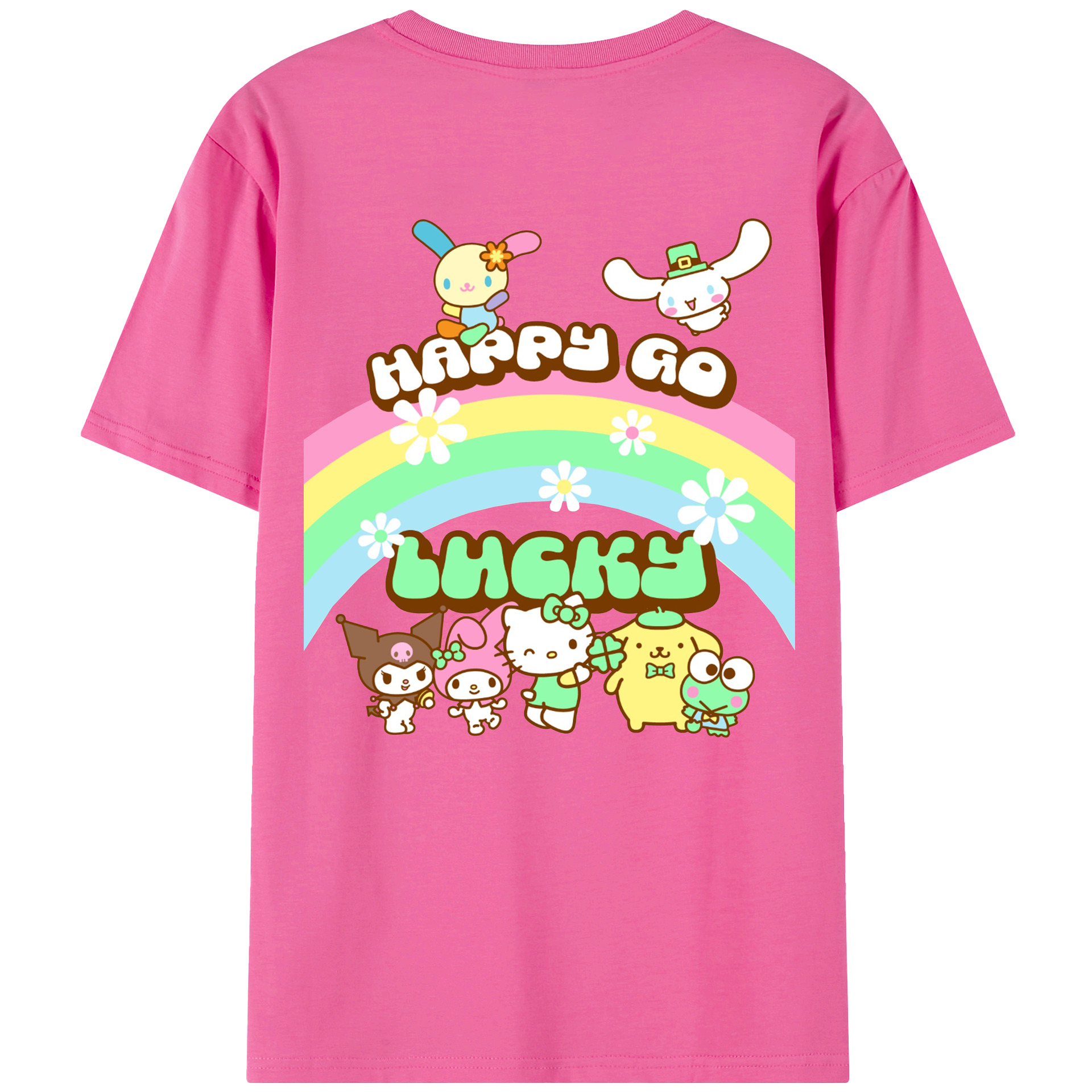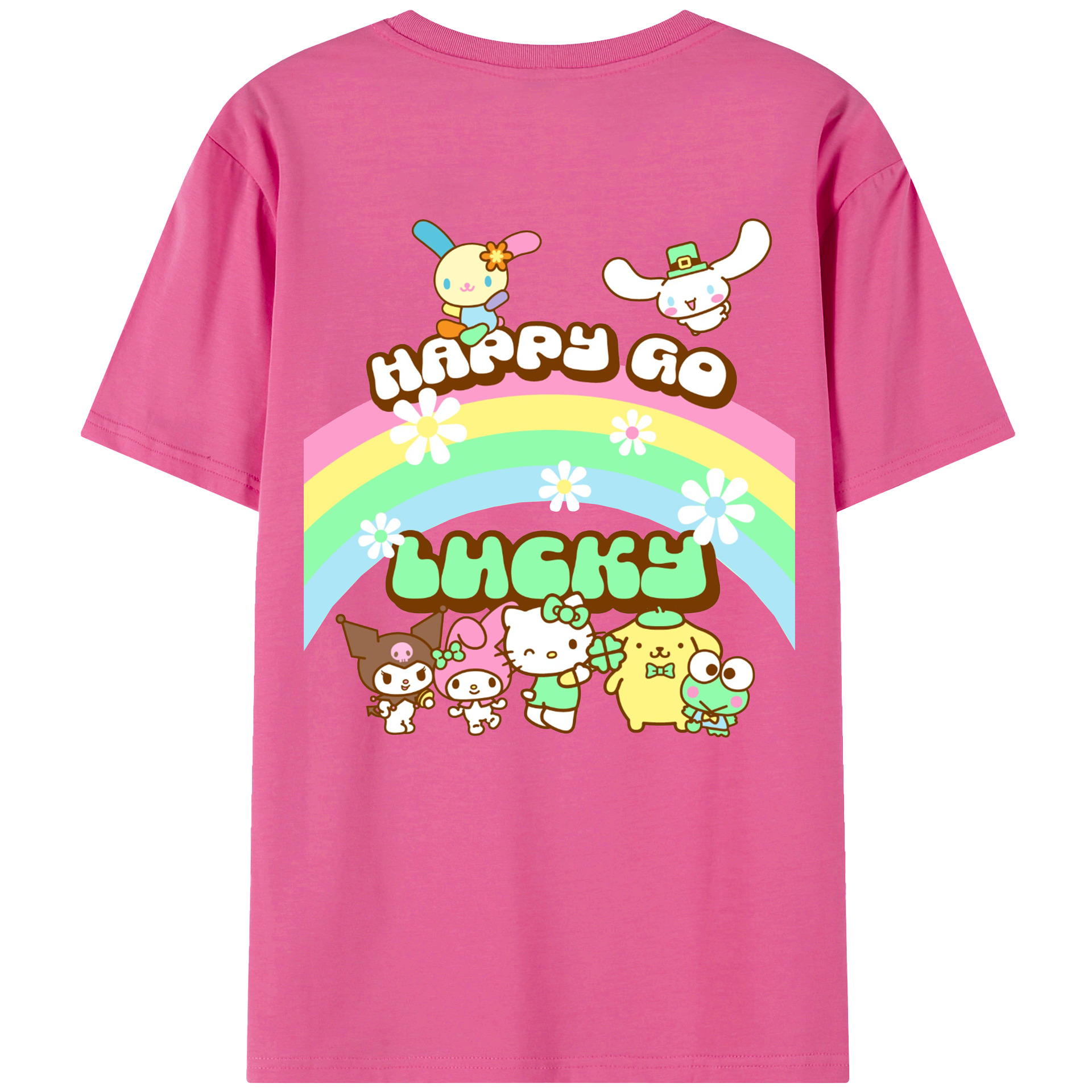 サンリオファミリー新作 - レディース半袖Tシャツ ・ 綿100% ・ バックプリント ・ 強化クルーネック ・ 二重折り袖口 ・ 快適 通気性 ・ フィットネス カジュアル 旅行用