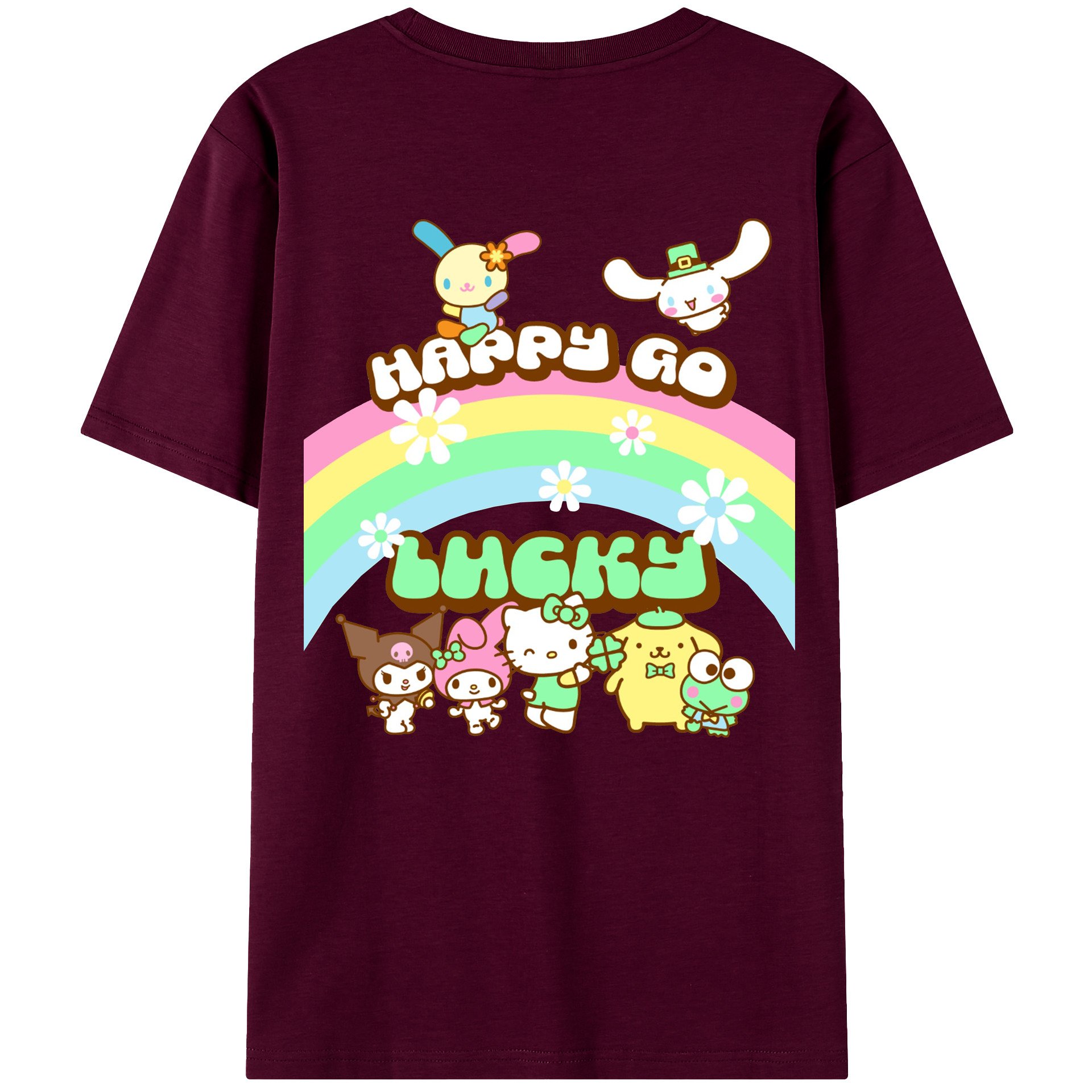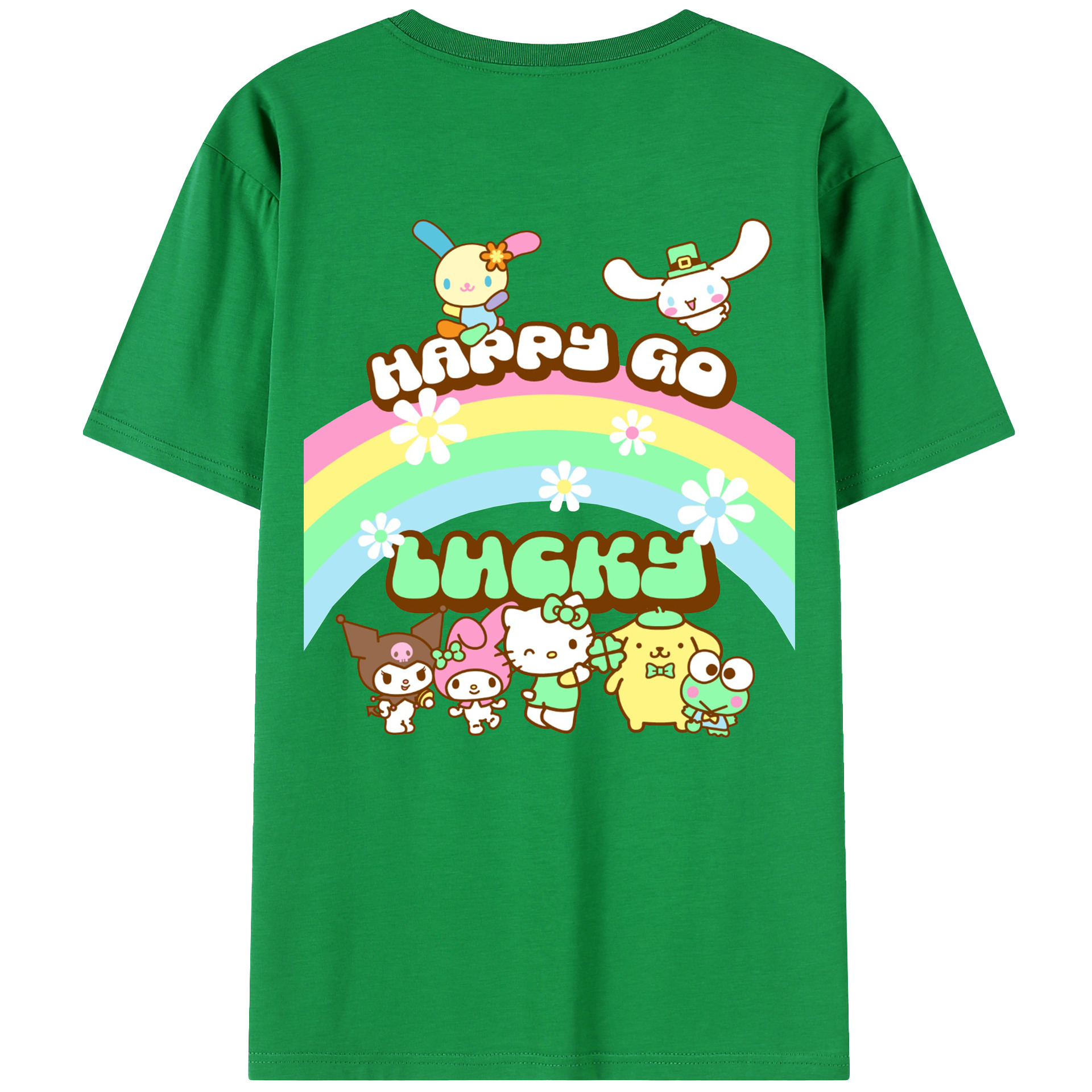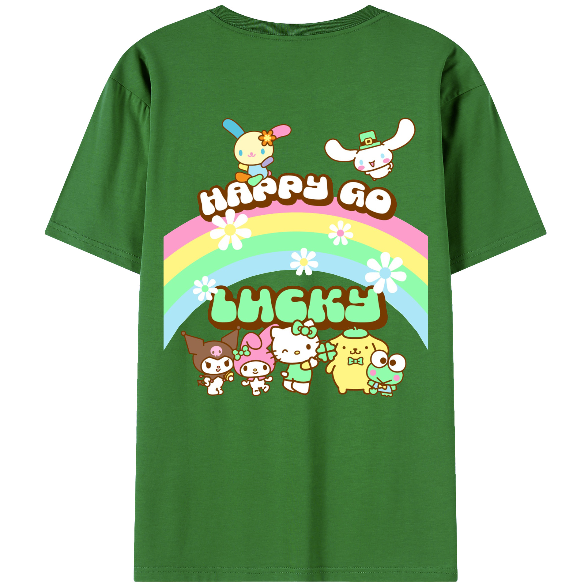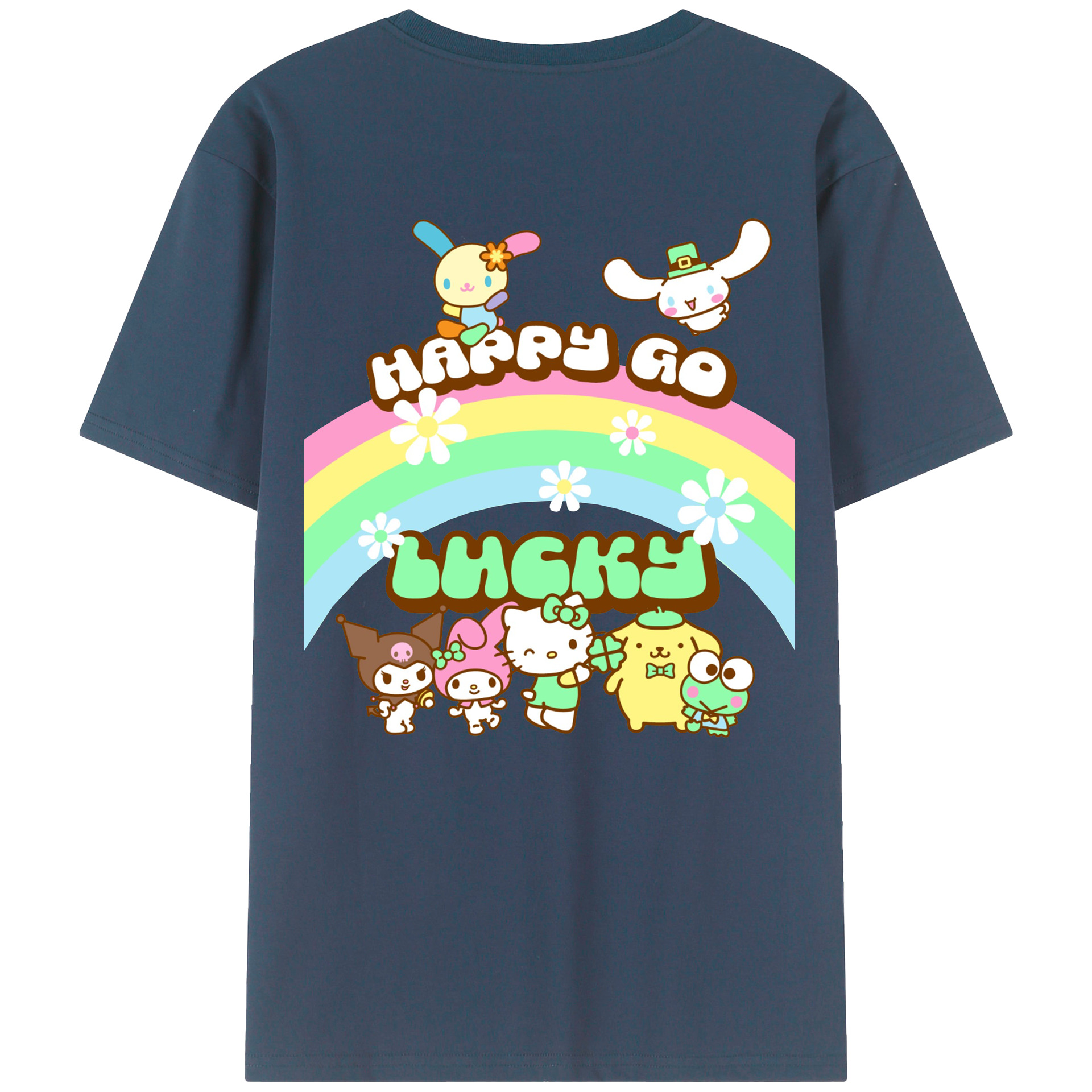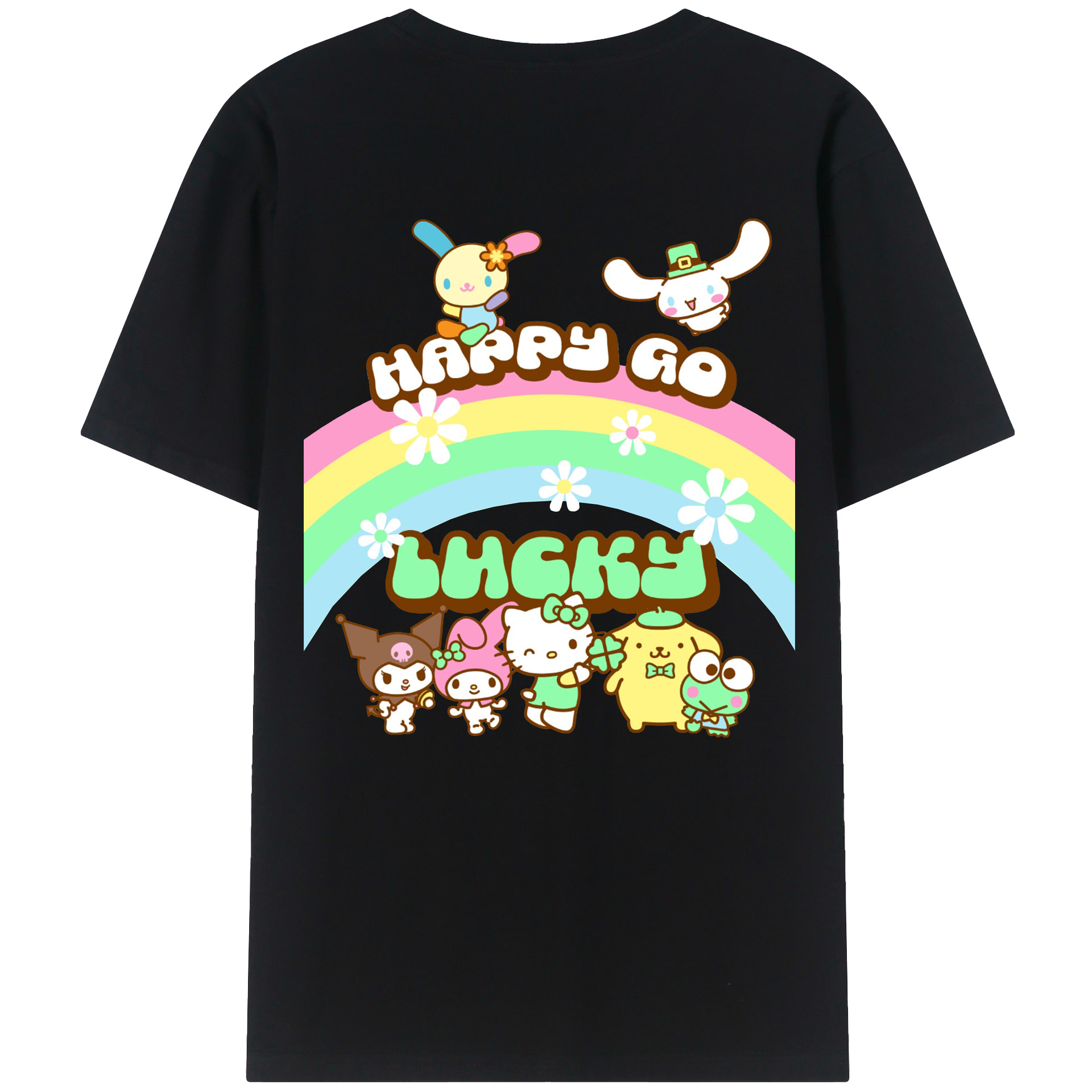 サンリオファミリー新作 - レディース半袖Tシャツ ・ 綿100% ・ バックプリント ・ 強化クルーネック ・ 二重折り袖口 ・ 快適 通気性 ・ フィットネス カジュアル 旅行用