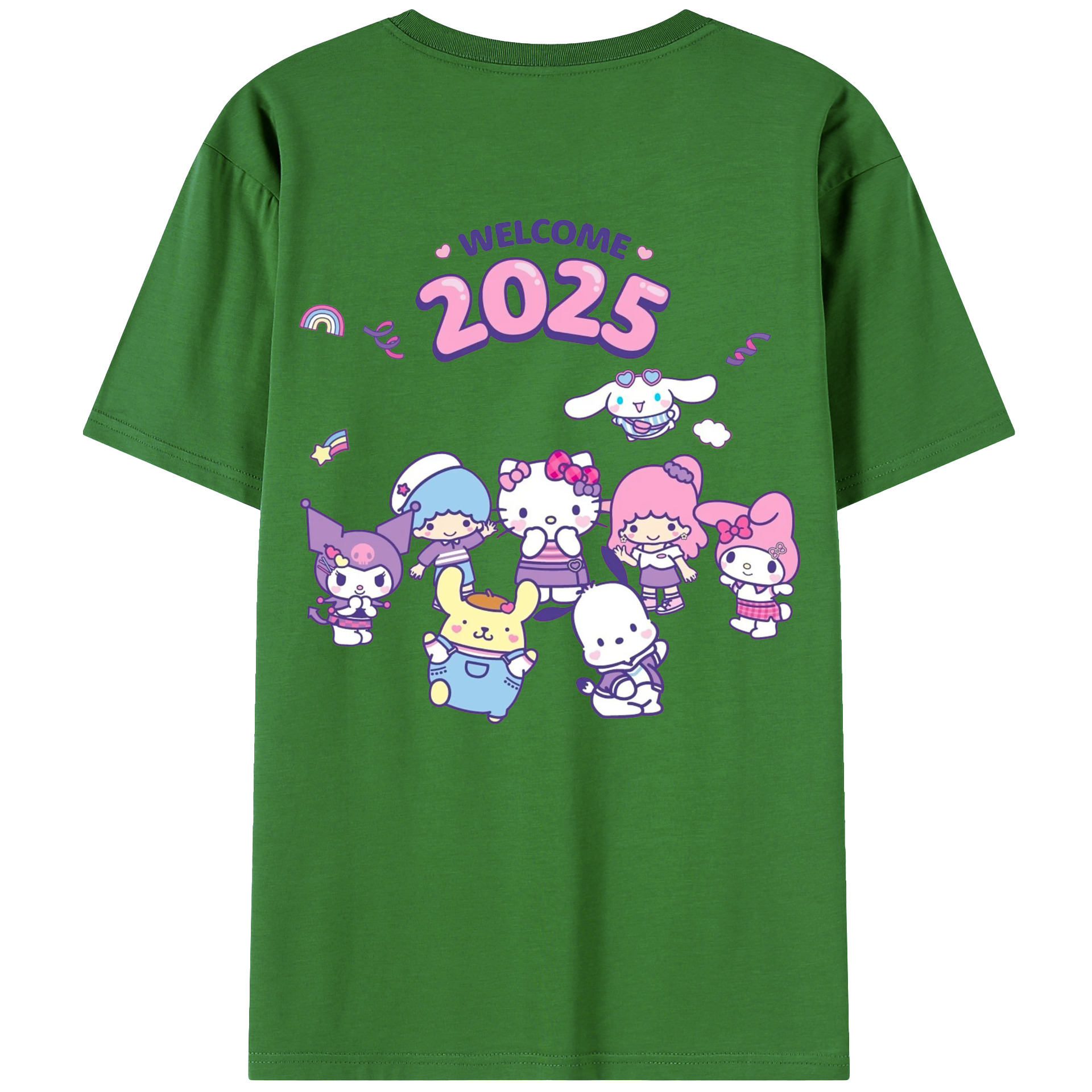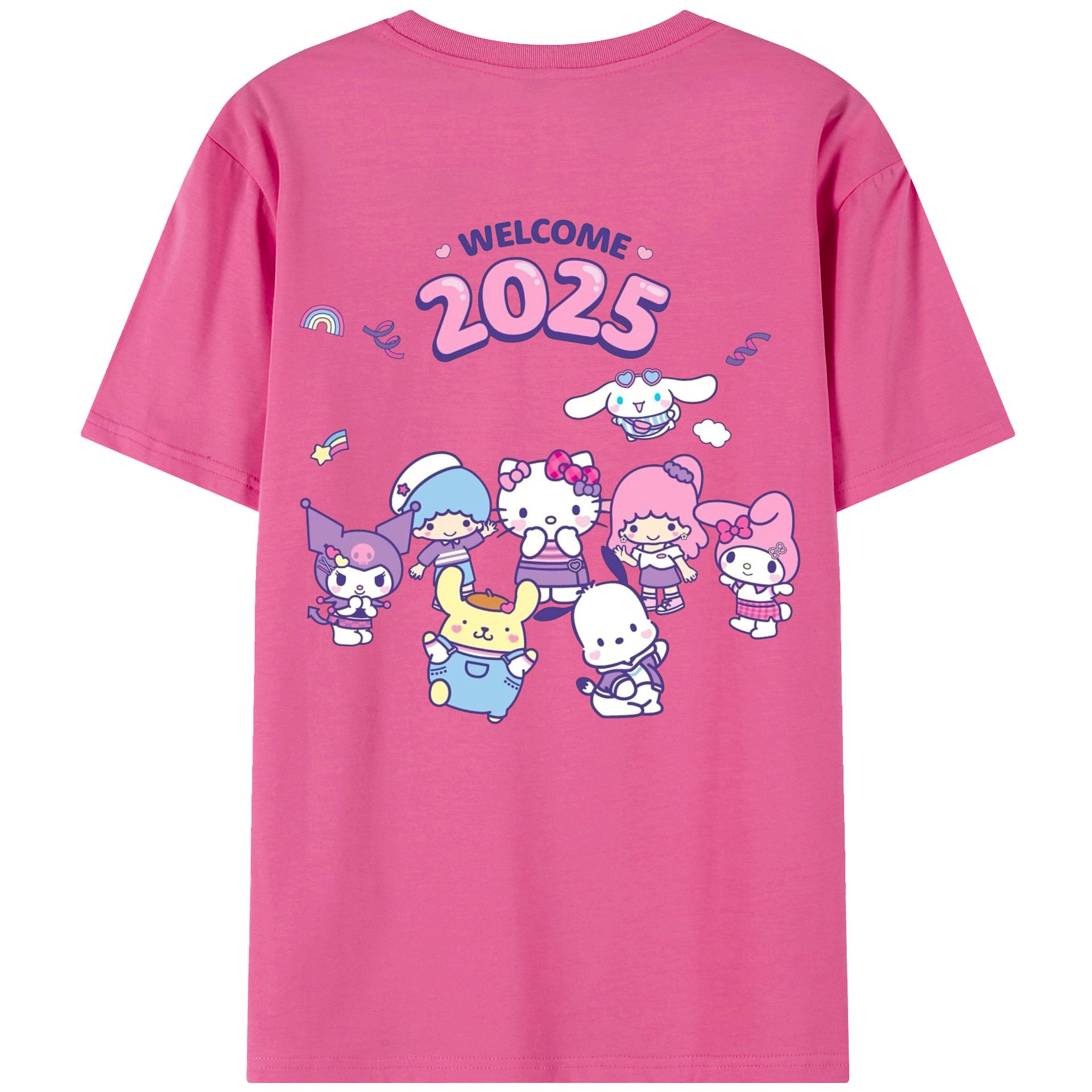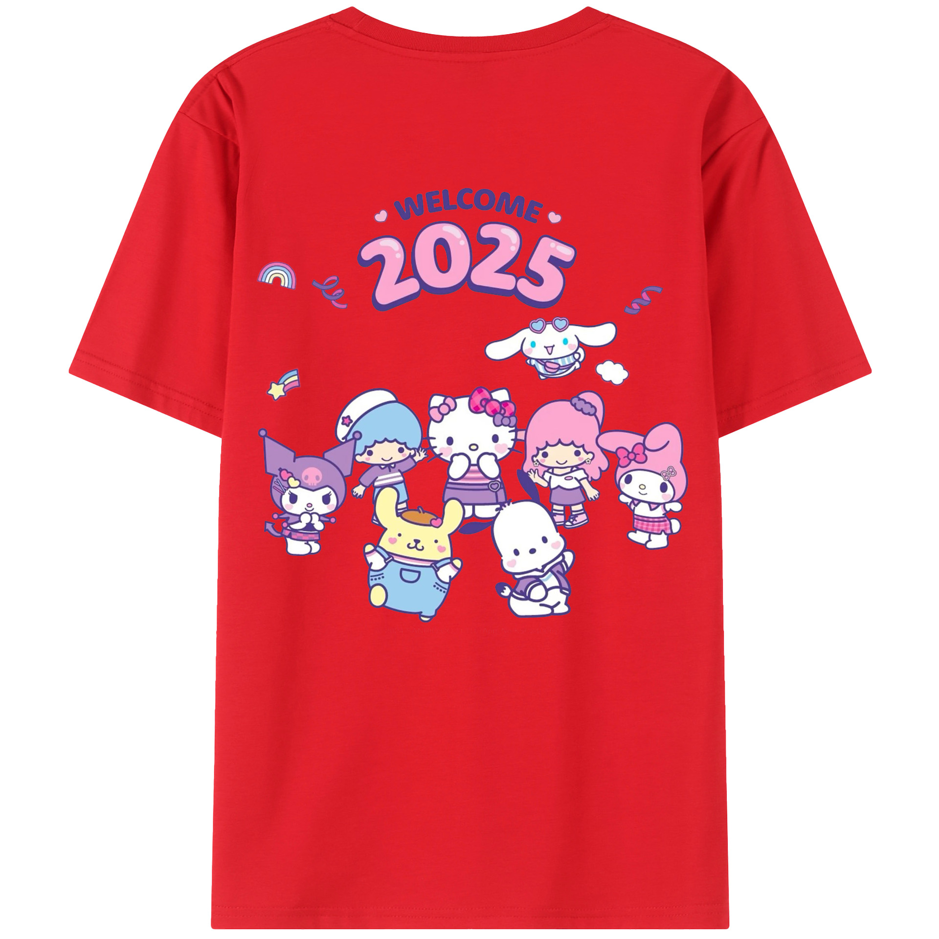 サンリオファミリー 2025年新作 - レディース半袖Tシャツ ・ 綿100% ・ バックプリント ・ 強化クルーネック ・ 二重折り袖口 ・ 快適 通気性 ・ フィットネス カジュアル 旅行用