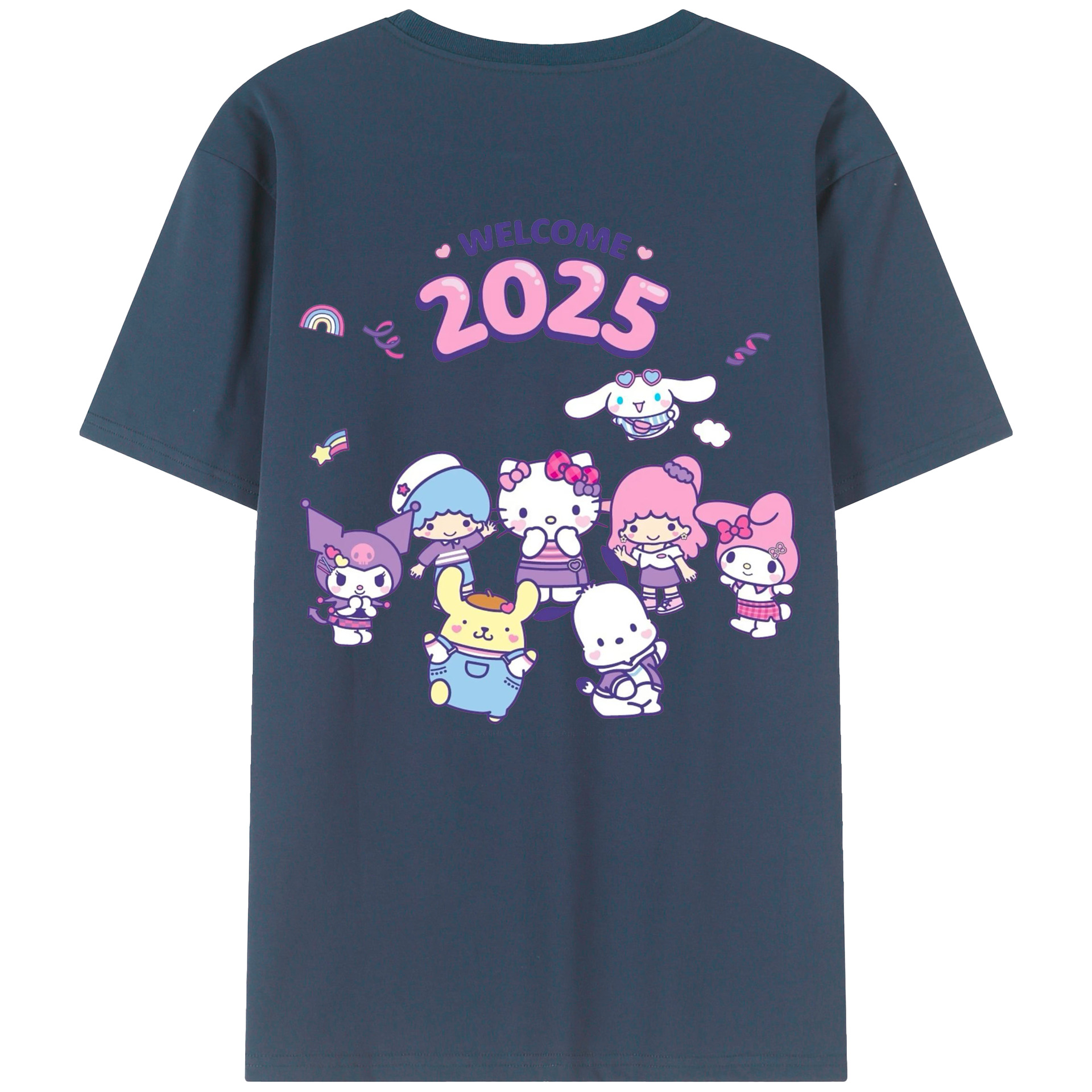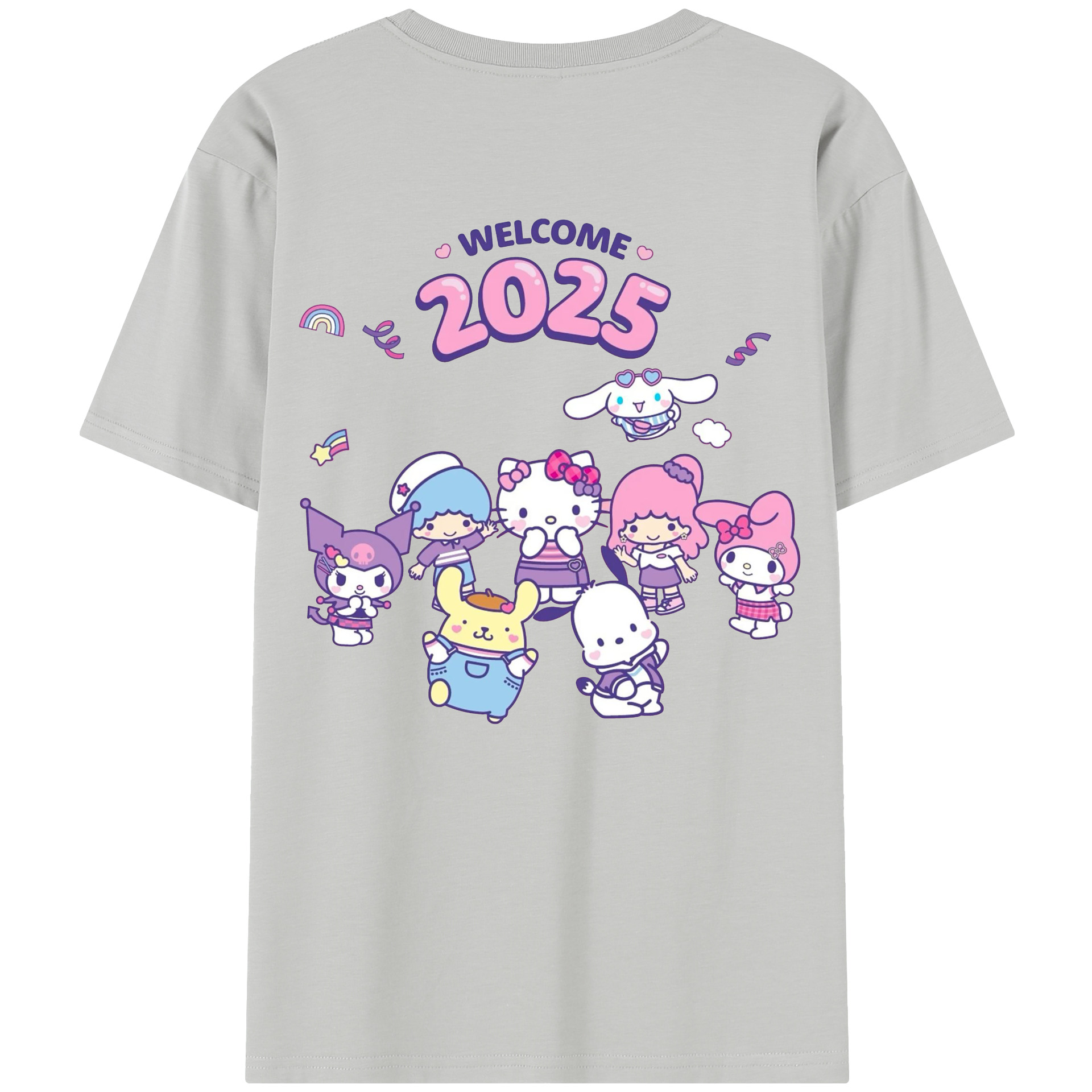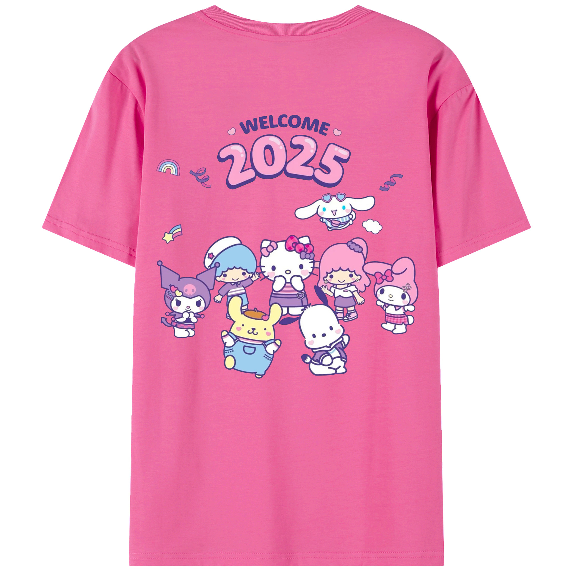サンリオファミリー 2025年新作 - レディース半袖Tシャツ ・ 綿100% ・ バックプリント ・ 強化クルーネック ・ 二重折り袖口 ・ 快適 通気性 ・ フィットネス カジュアル 旅行用