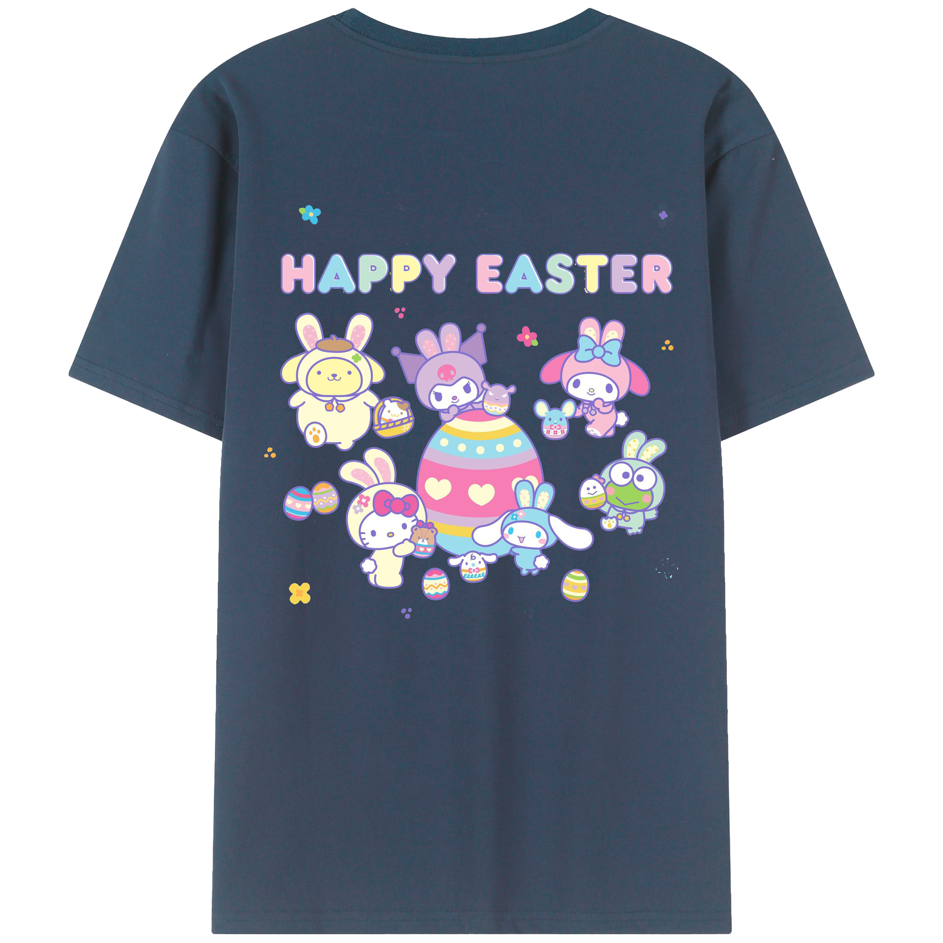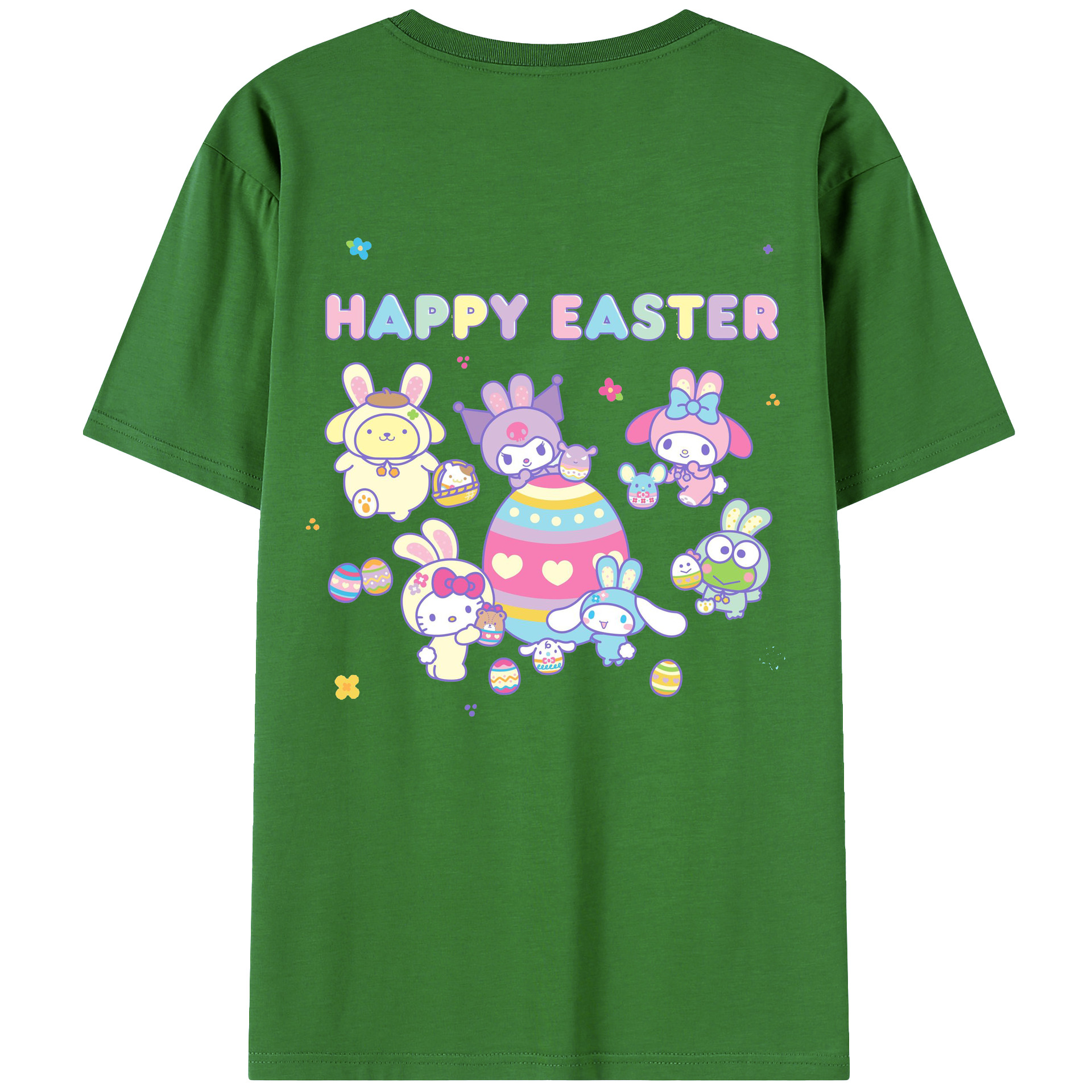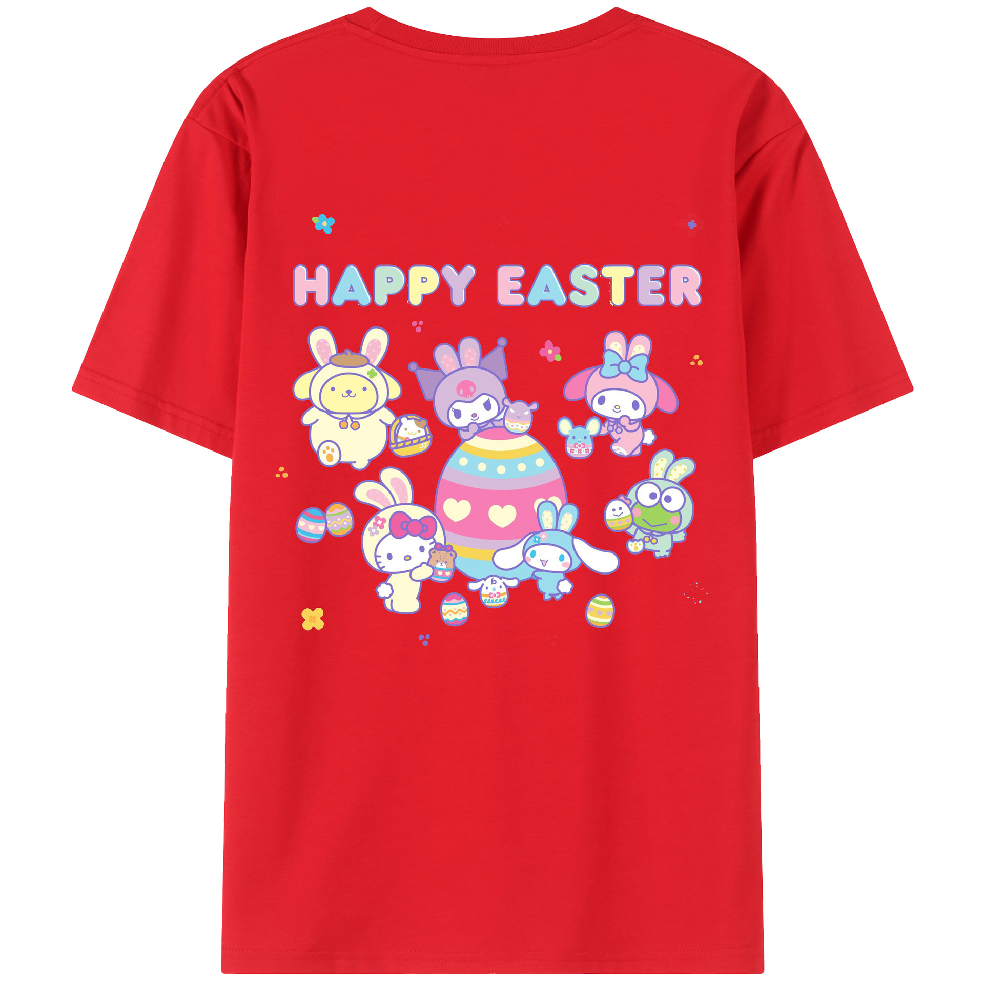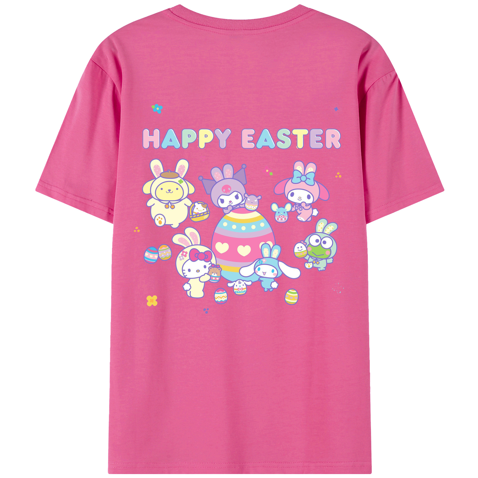 サンリオファミリー - レディース半袖Tシャツ ・ 綿100% ・ バックプリント ・ 強化クルーネック ・ 二重折り袖口 ・ 快適 通気性 ・ フィットネス カジュアル 旅行用