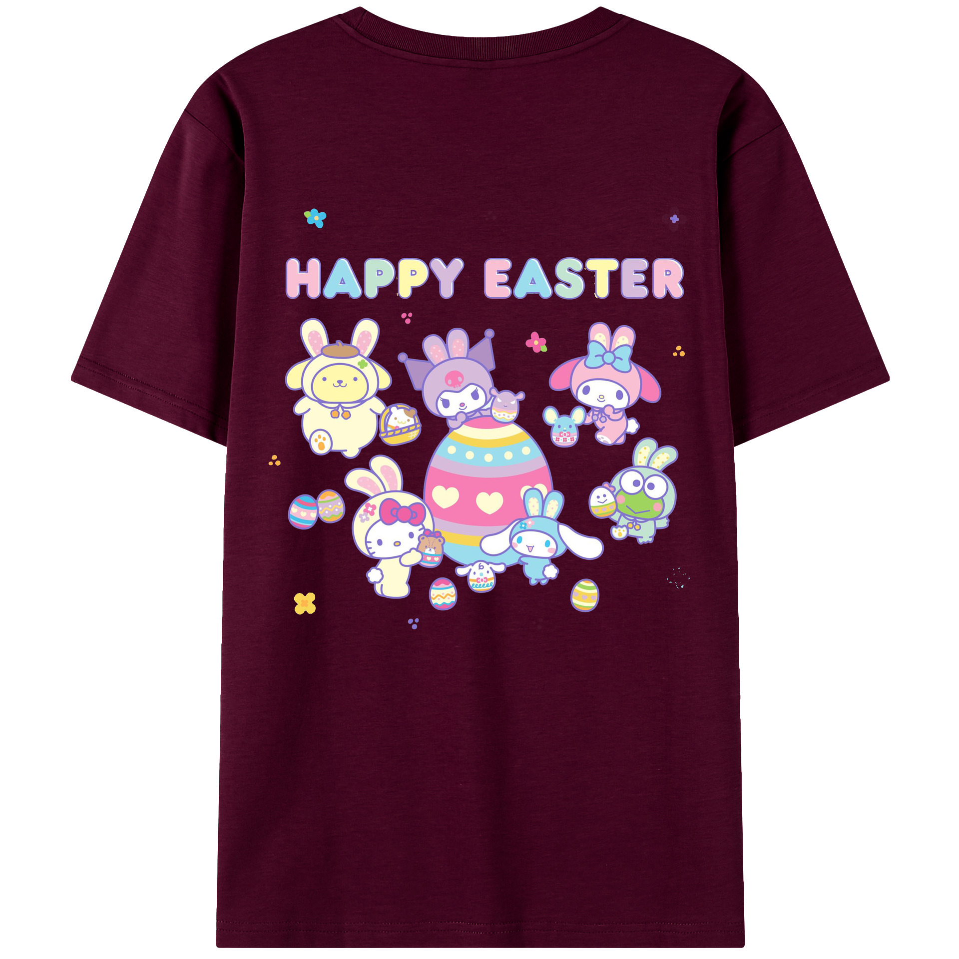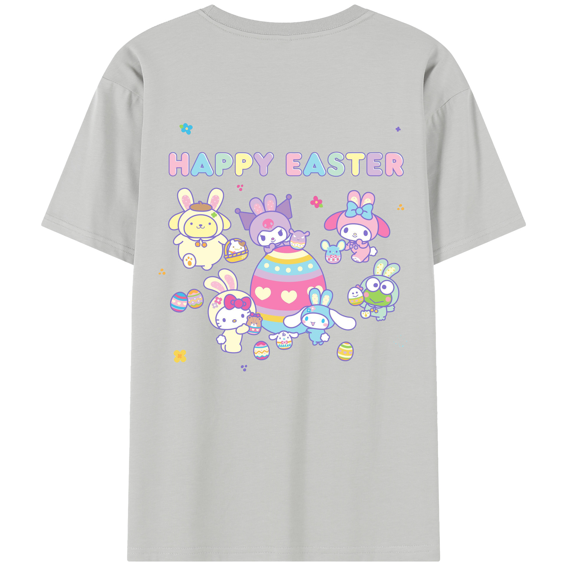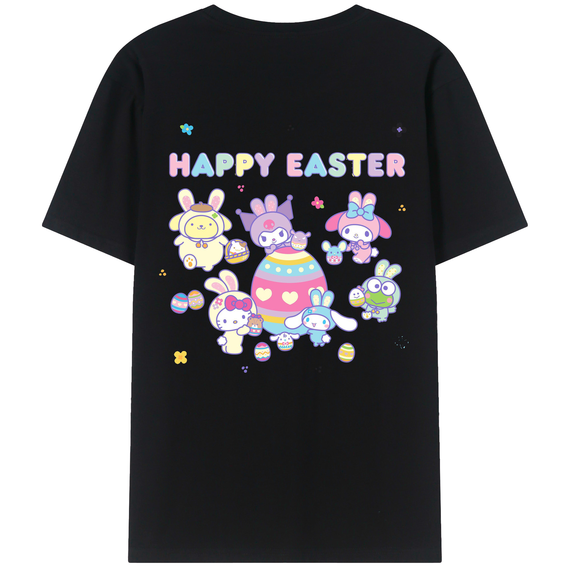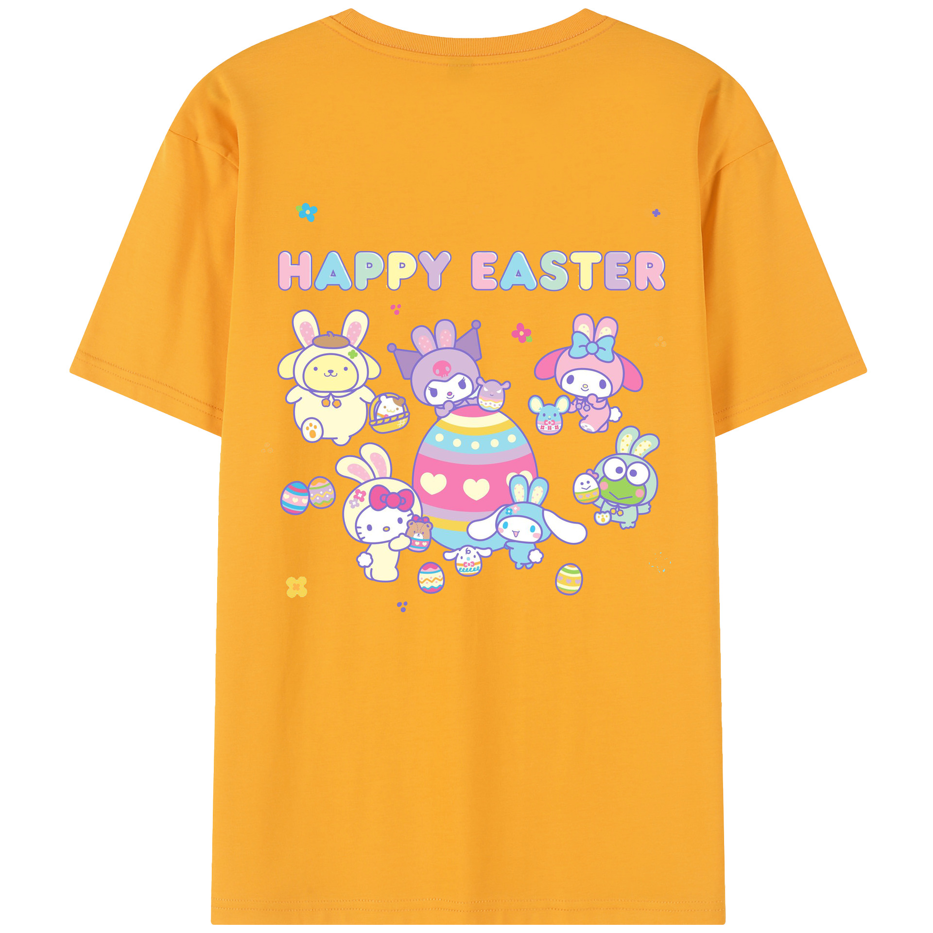 サンリオファミリー - レディース半袖Tシャツ ・ 綿100% ・ バックプリント ・ 強化クルーネック ・ 二重折り袖口 ・ 快適 通気性 ・ フィットネス カジュアル 旅行用