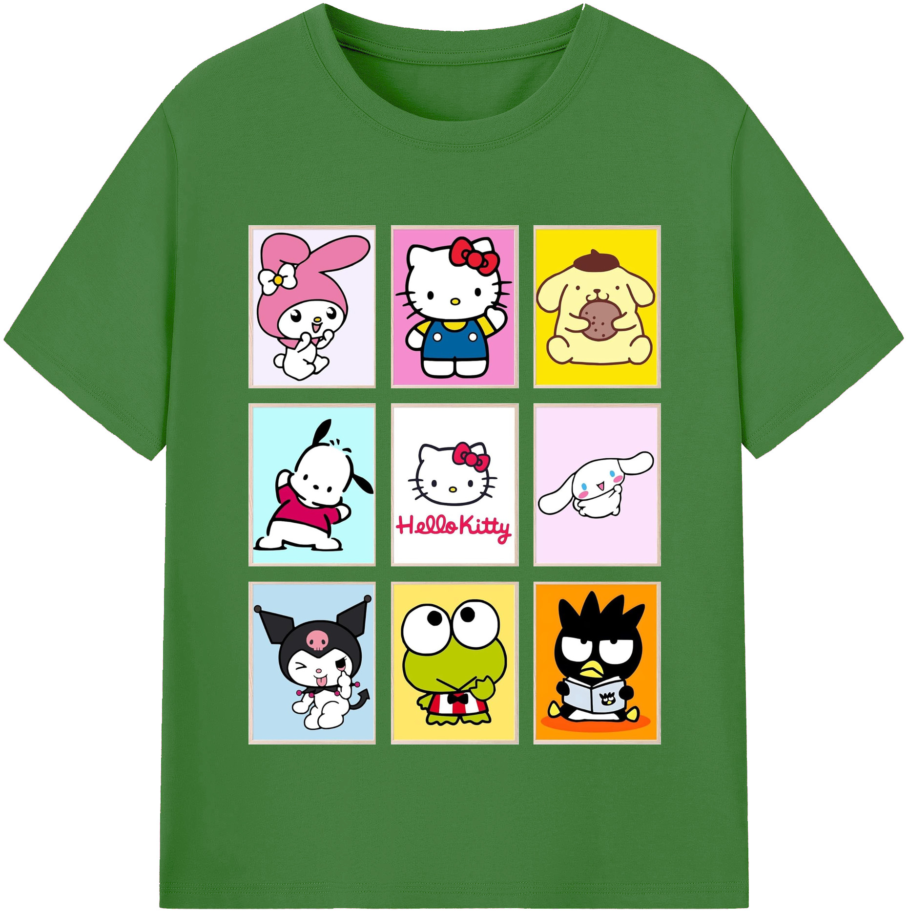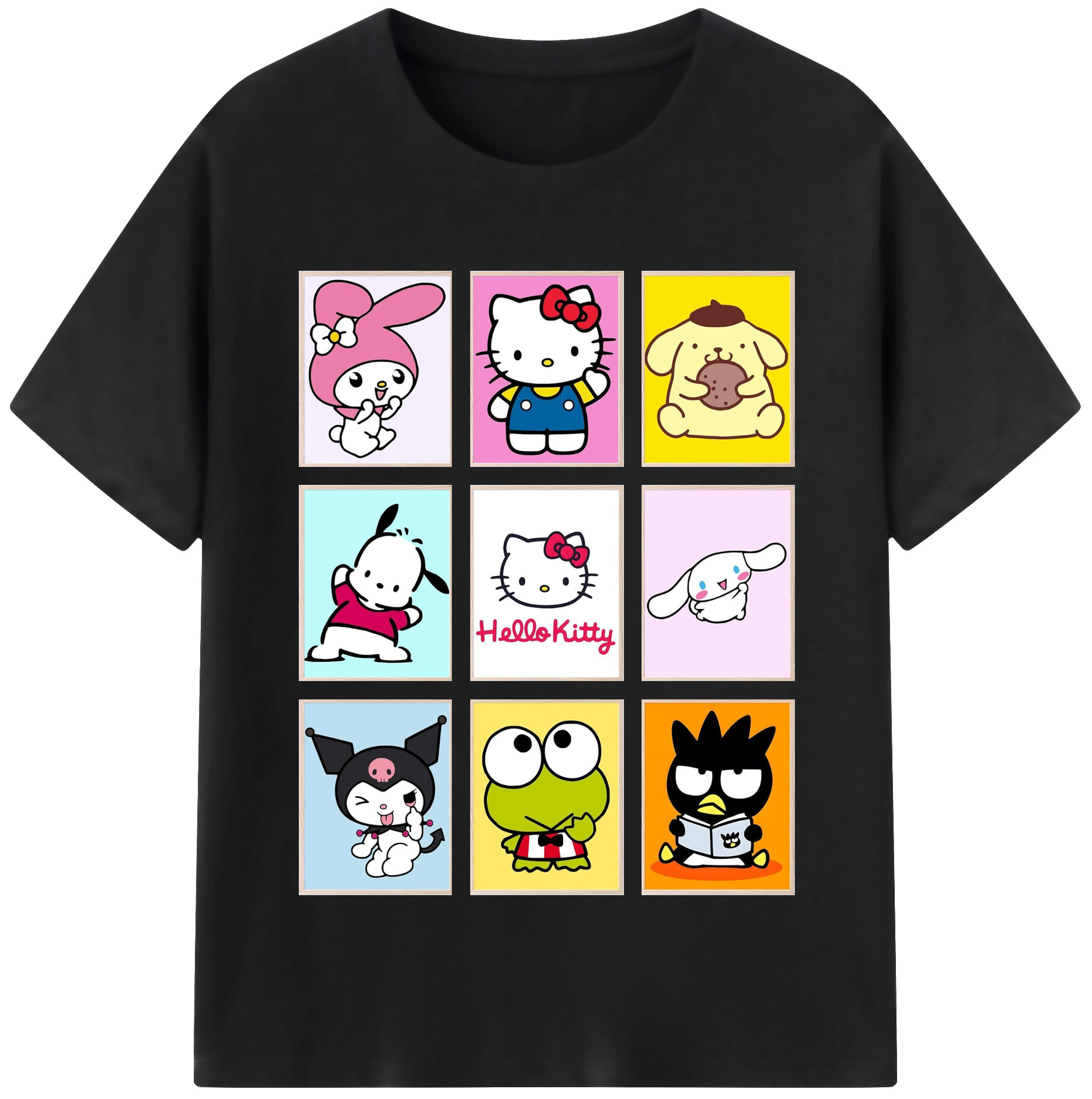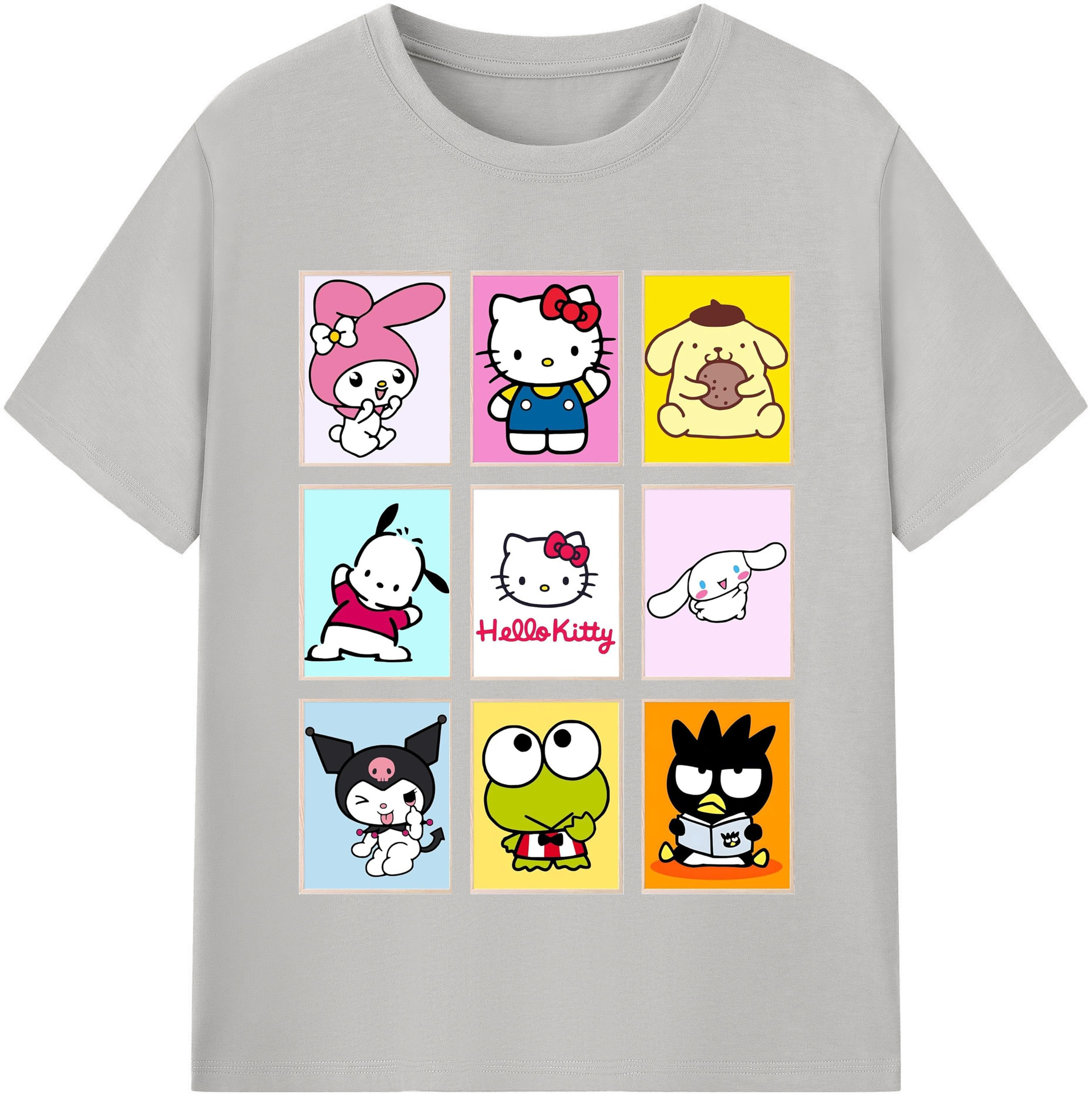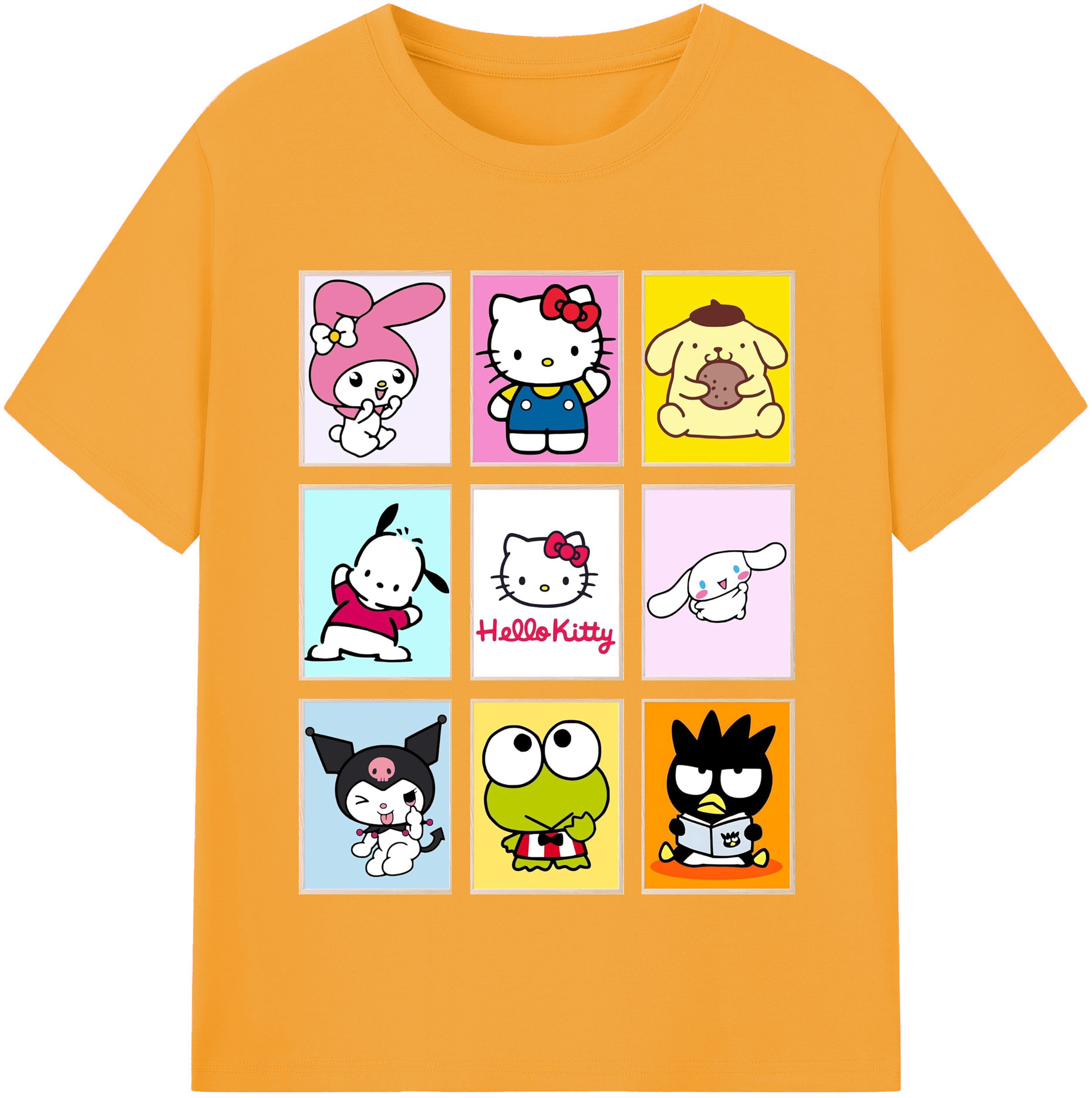 サンリオファミリー新作 - レディースカジュアルプリントTシャツ ・ 綿100% ・ クルーネック ・ フロントプリント ・ 柔らかく快適 ・ フィットネス カジュアル 旅行用