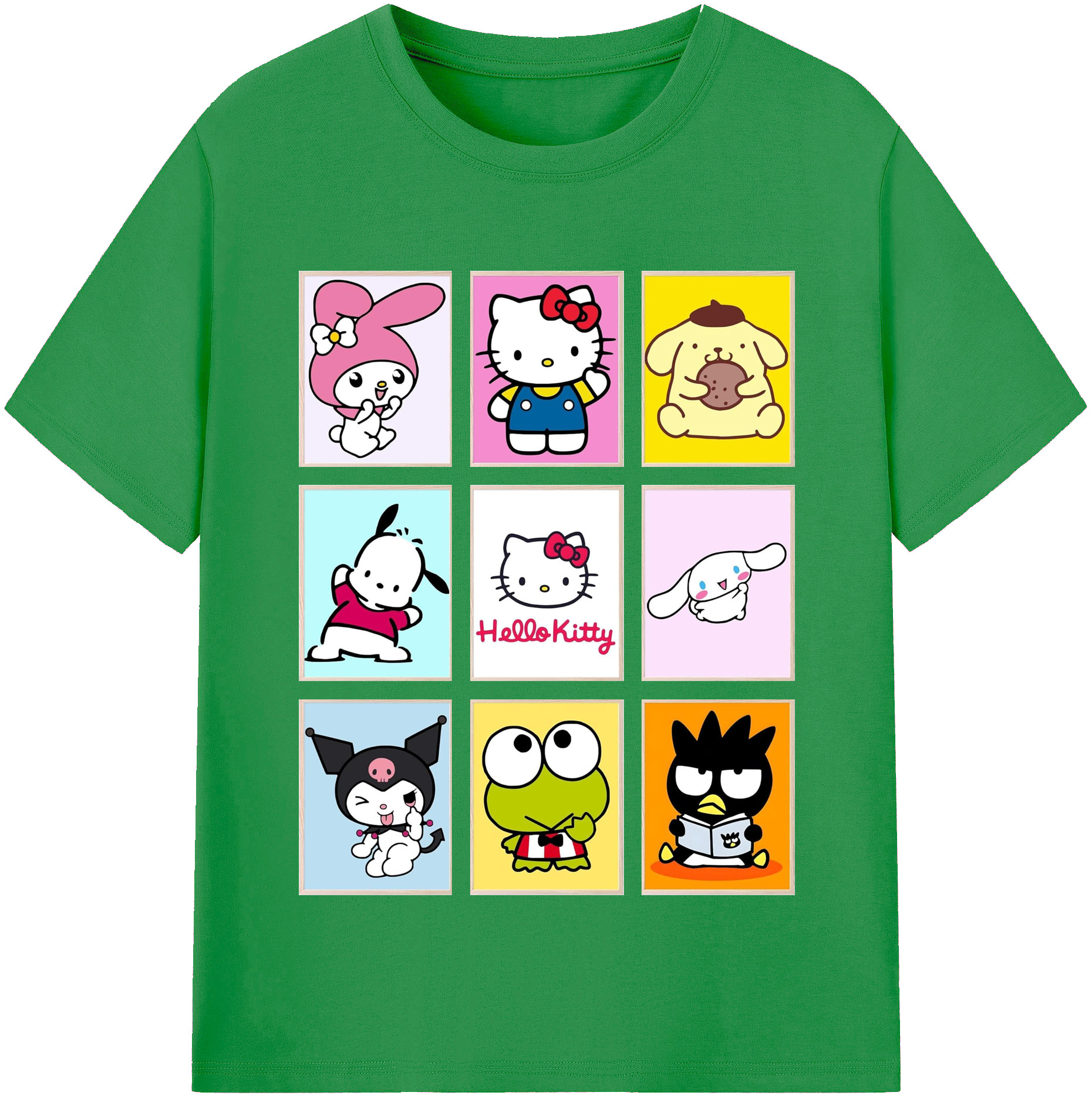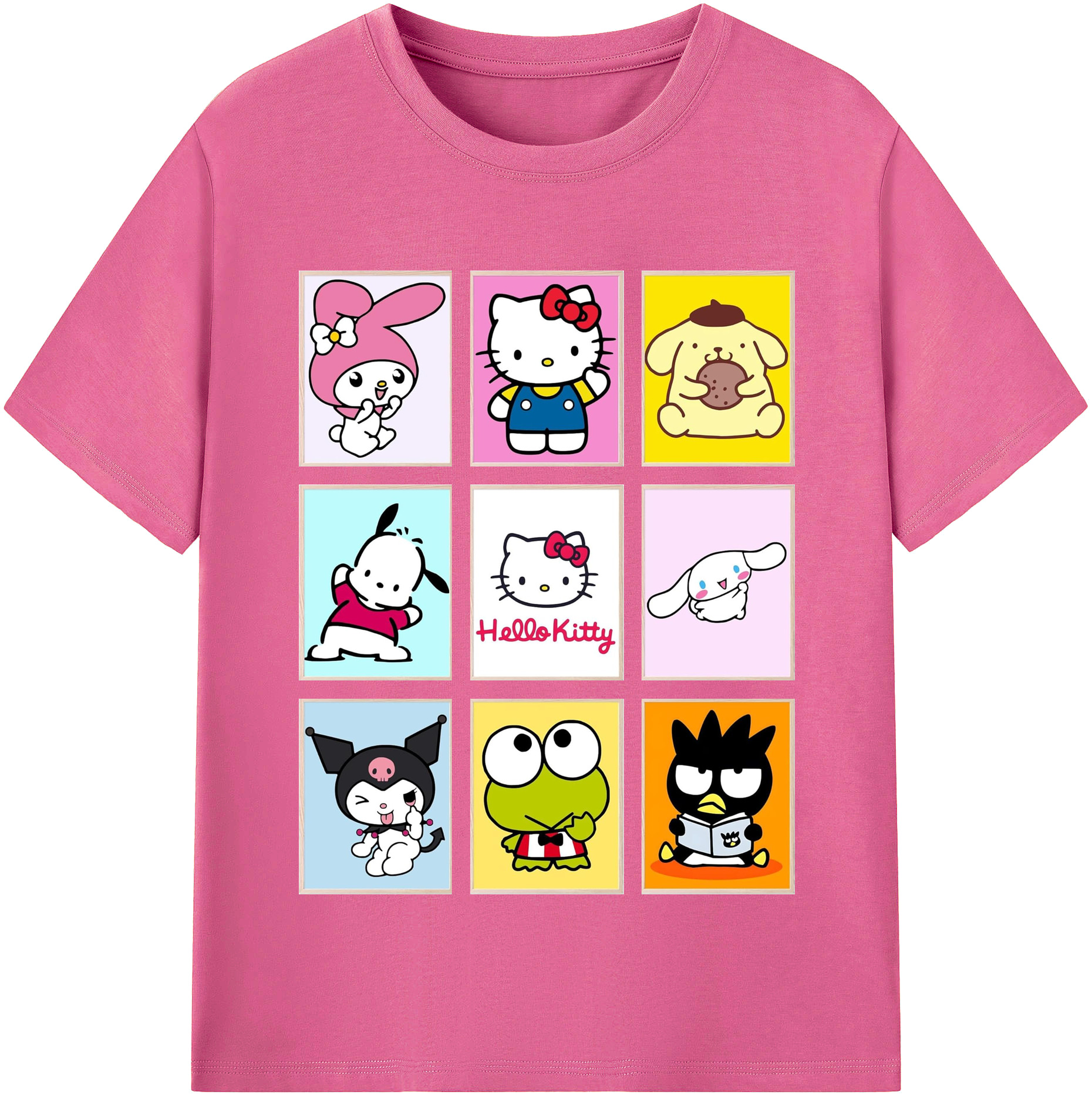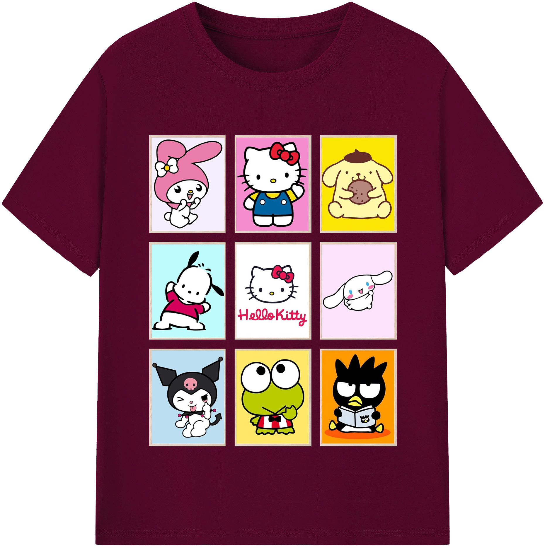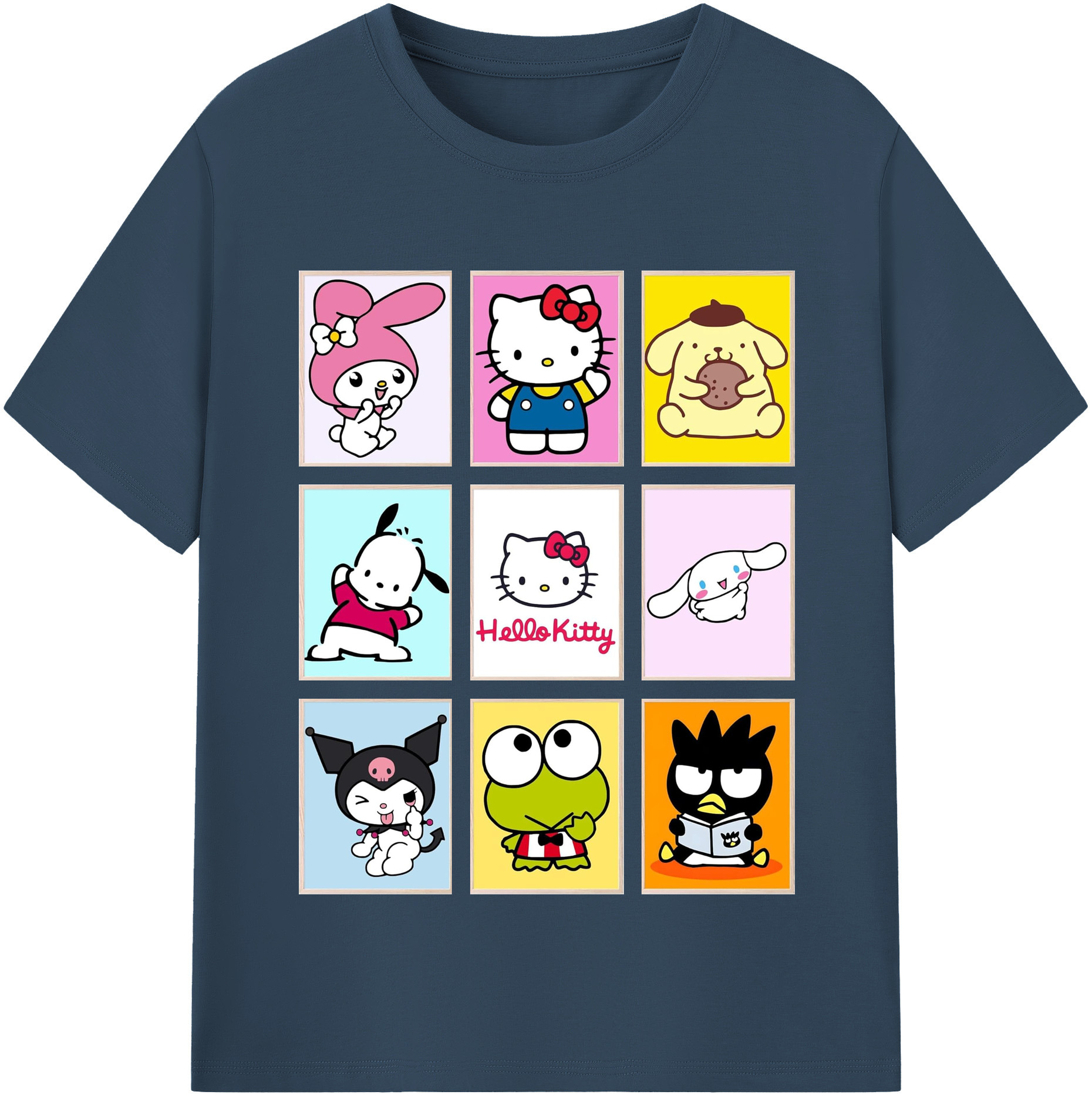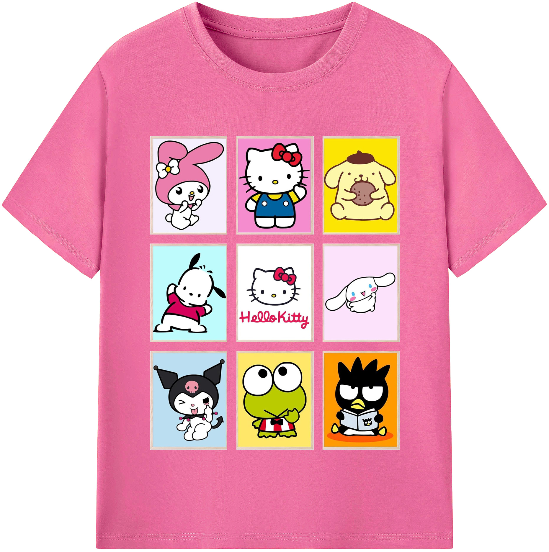 サンリオファミリー新作 - レディースカジュアルプリントTシャツ ・ 綿100% ・ クルーネック ・ フロントプリント ・ 柔らかく快適 ・ フィットネス カジュアル 旅行用
