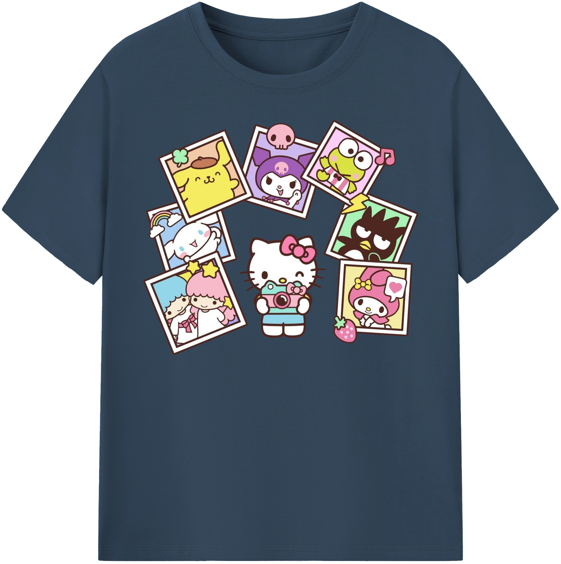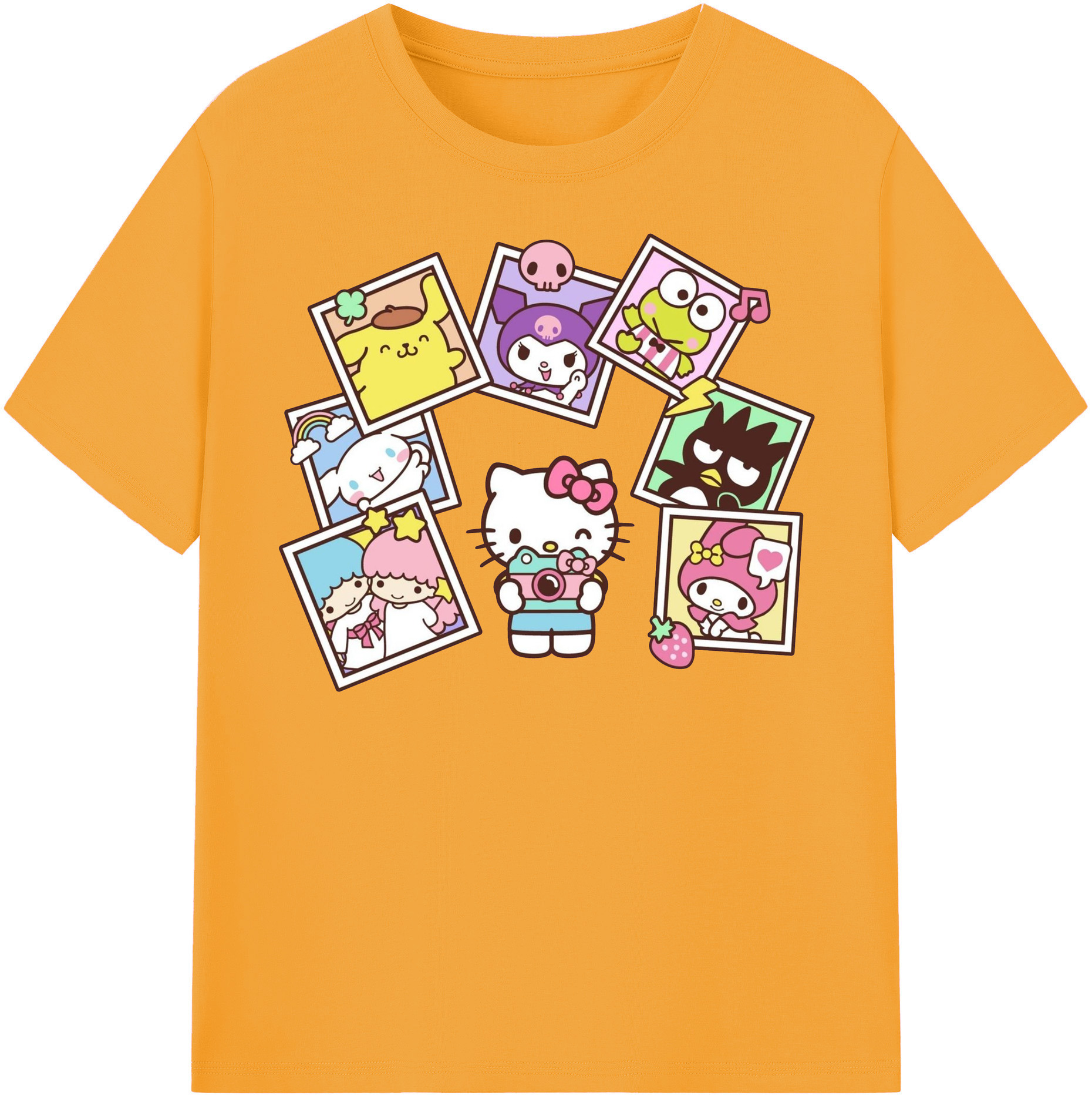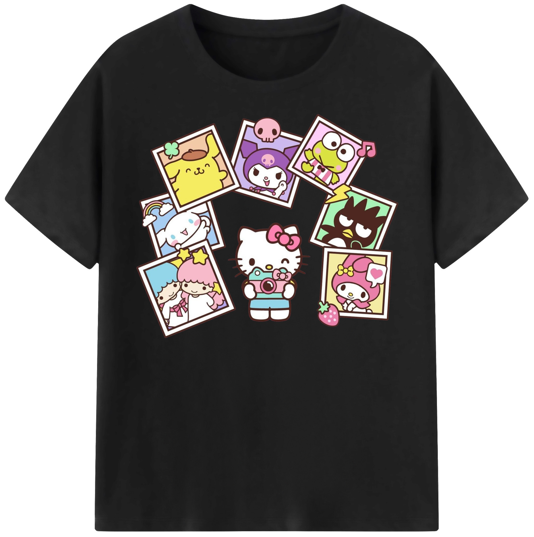 サンリオファミリー新作 - 綿100% ヴィンテージ風 半袖Tシャツ ・ フロントプリント ・ 柔らか肌触り ・ 通気性 快適 ・ スポーツ カジュアル 外出用