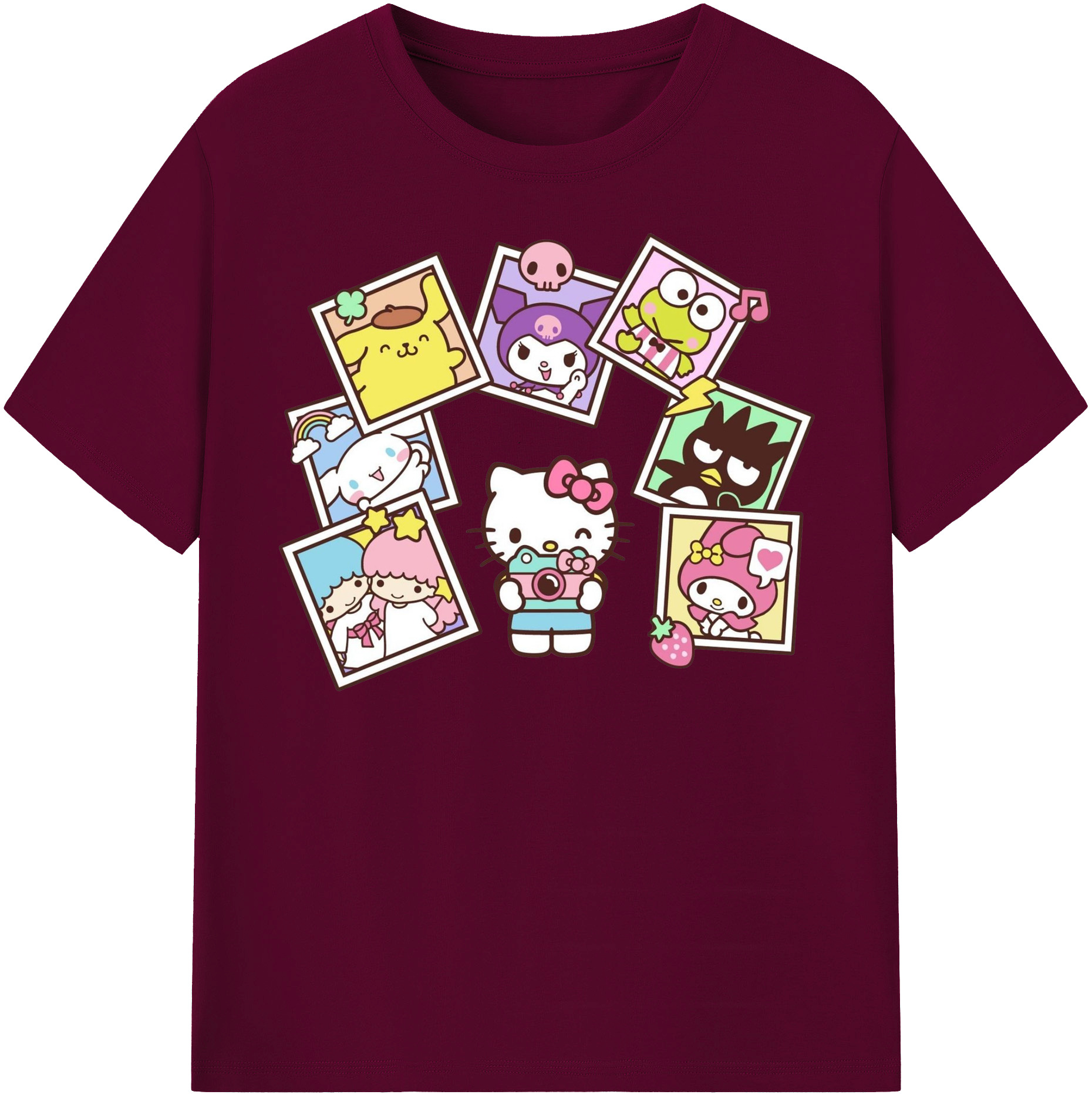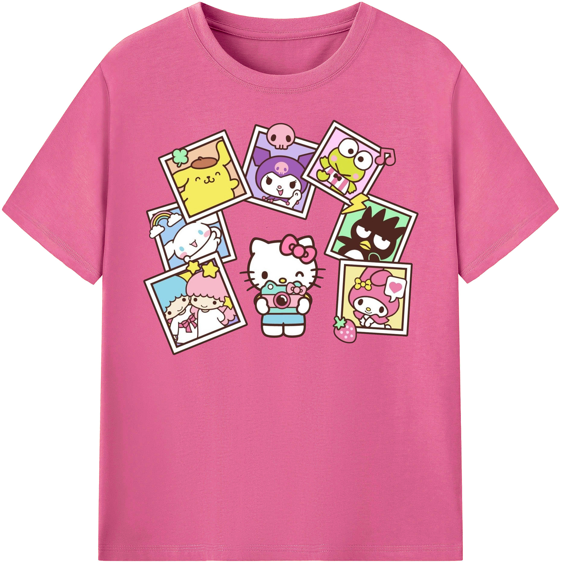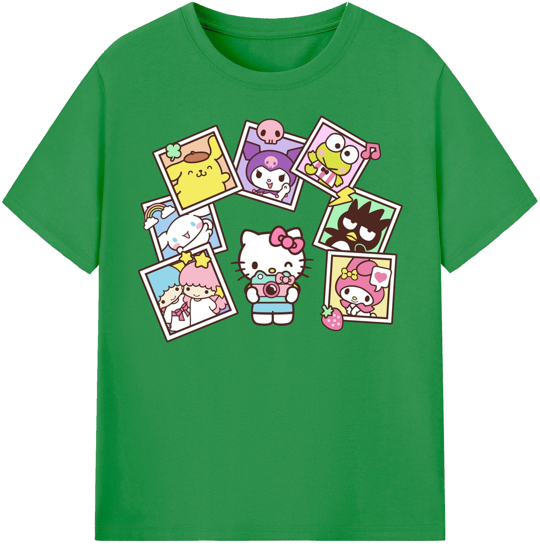 サンリオファミリー新作 - 綿100% ヴィンテージ風 半袖Tシャツ ・ フロントプリント ・ 柔らか肌触り ・ 通気性 快適 ・ スポーツ カジュアル 外出用