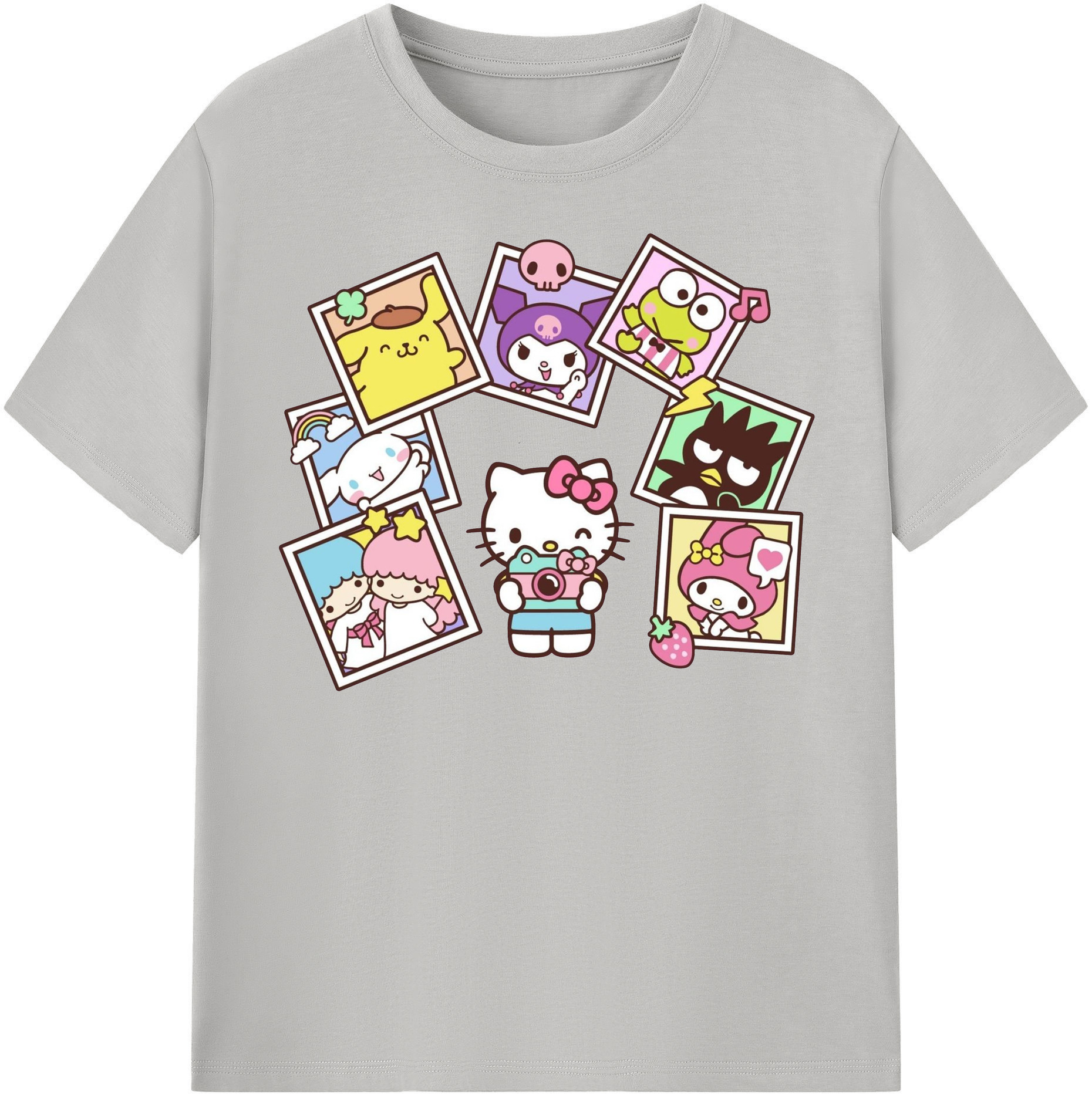 サンリオファミリー新作 - 綿100% ヴィンテージ風 半袖Tシャツ ・ 背面プリント ・ 柔らか肌触り ・ 通気性 快適 ・ スポーツ カジュアル 外出用
