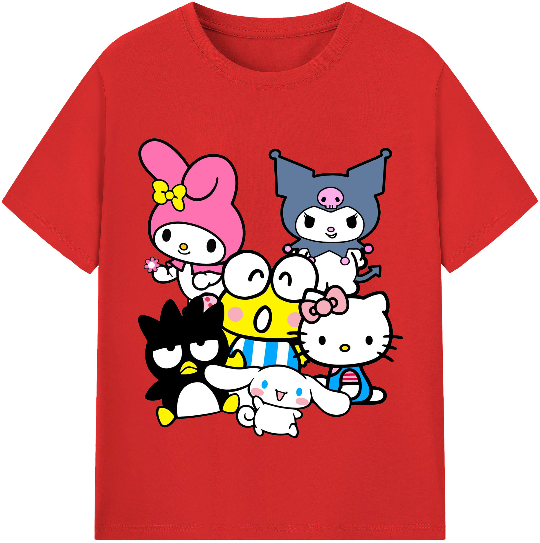 サンリオファミリー新作 - レディースカジュアルプリントTシャツ ・ 綿100% ・ クルーネック ・ フロントプリント ・ 柔らかく快適 ・ フィットネス カジュアル 旅行用