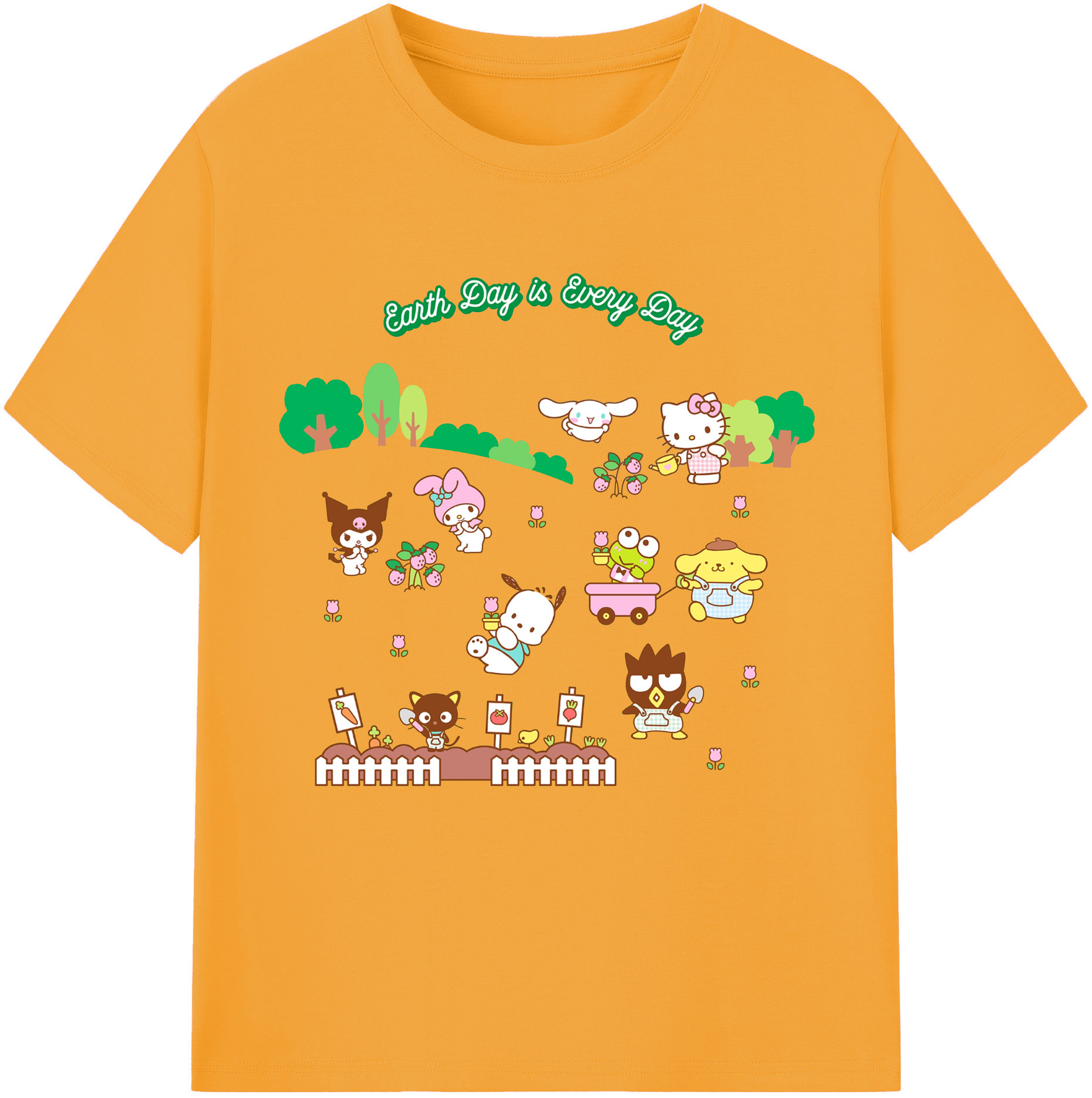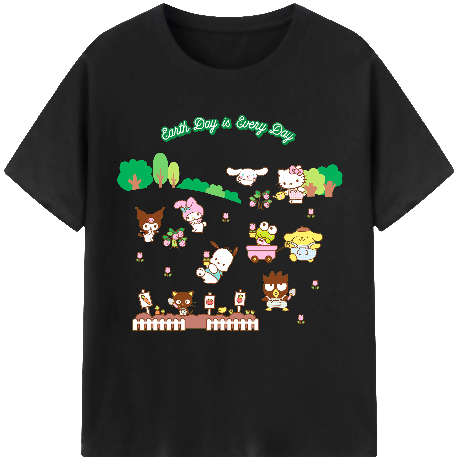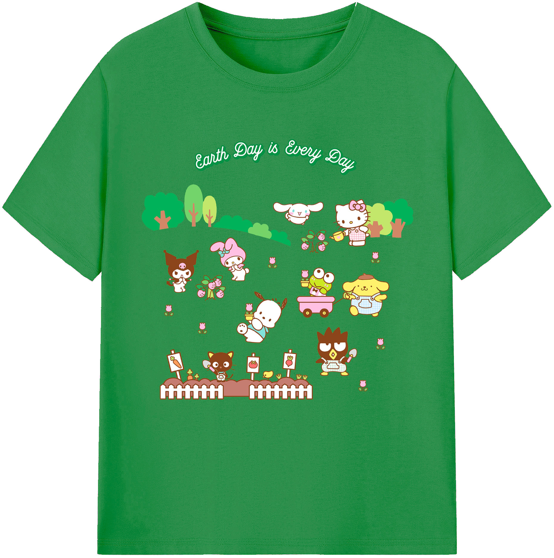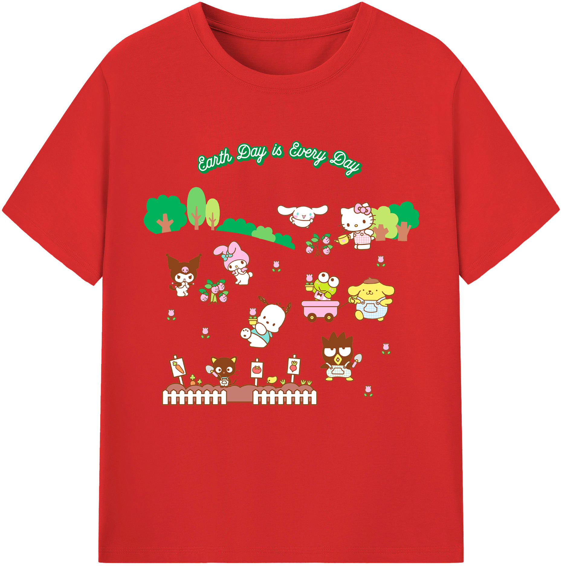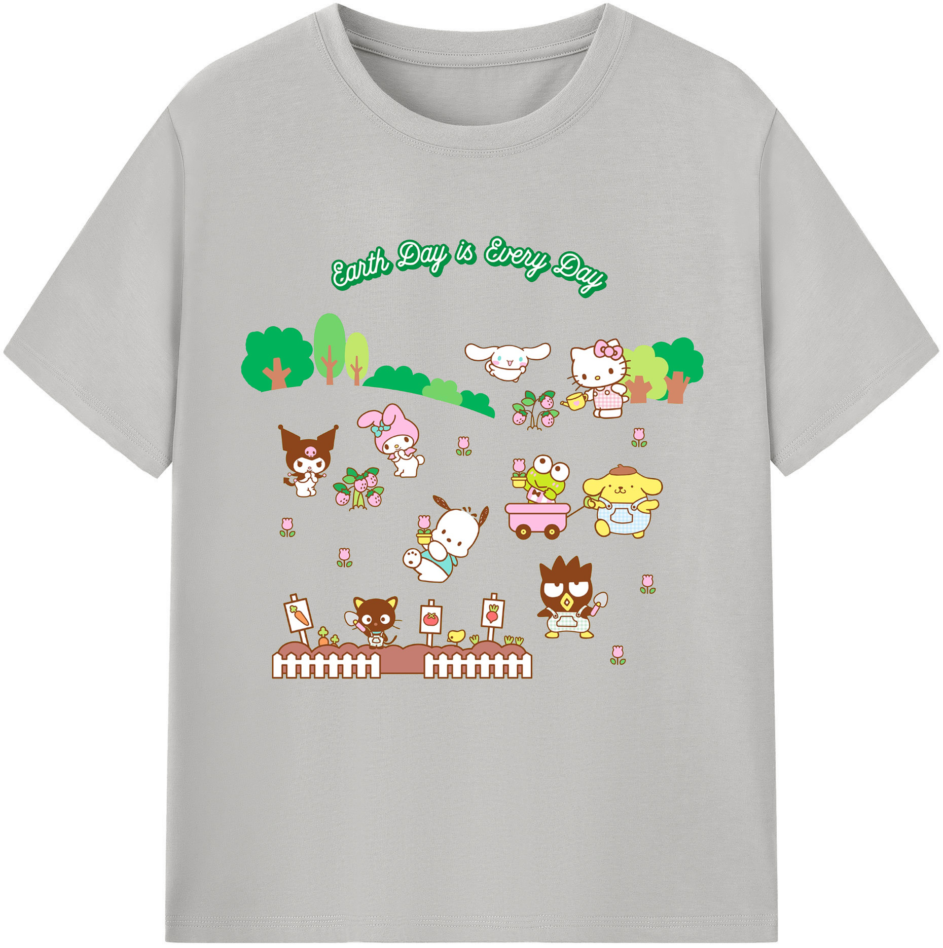 サンリオファミリー新作 - レディースカジュアルプリントTシャツ ・ 綿100% ・ クルーネック ・ フロントプリント ・ 柔らかく快適 ・ フィットネス カジュアル 旅行用