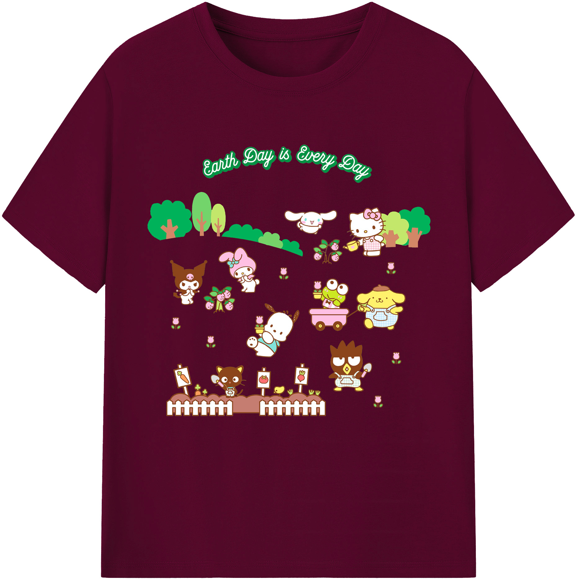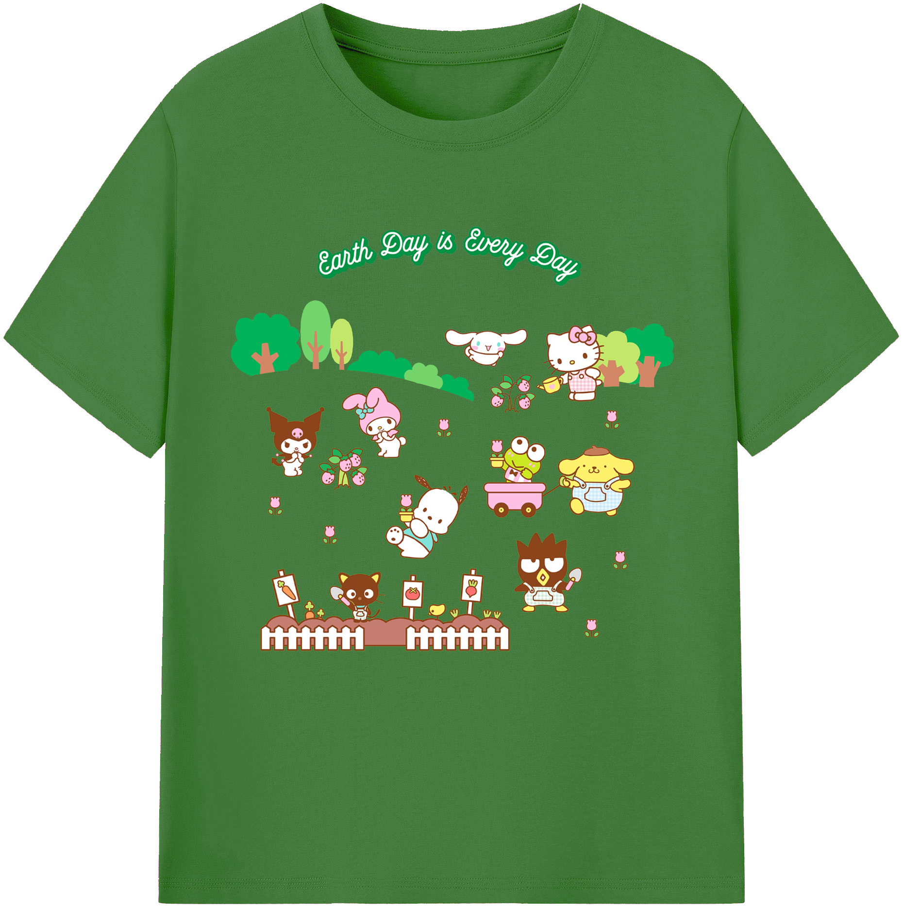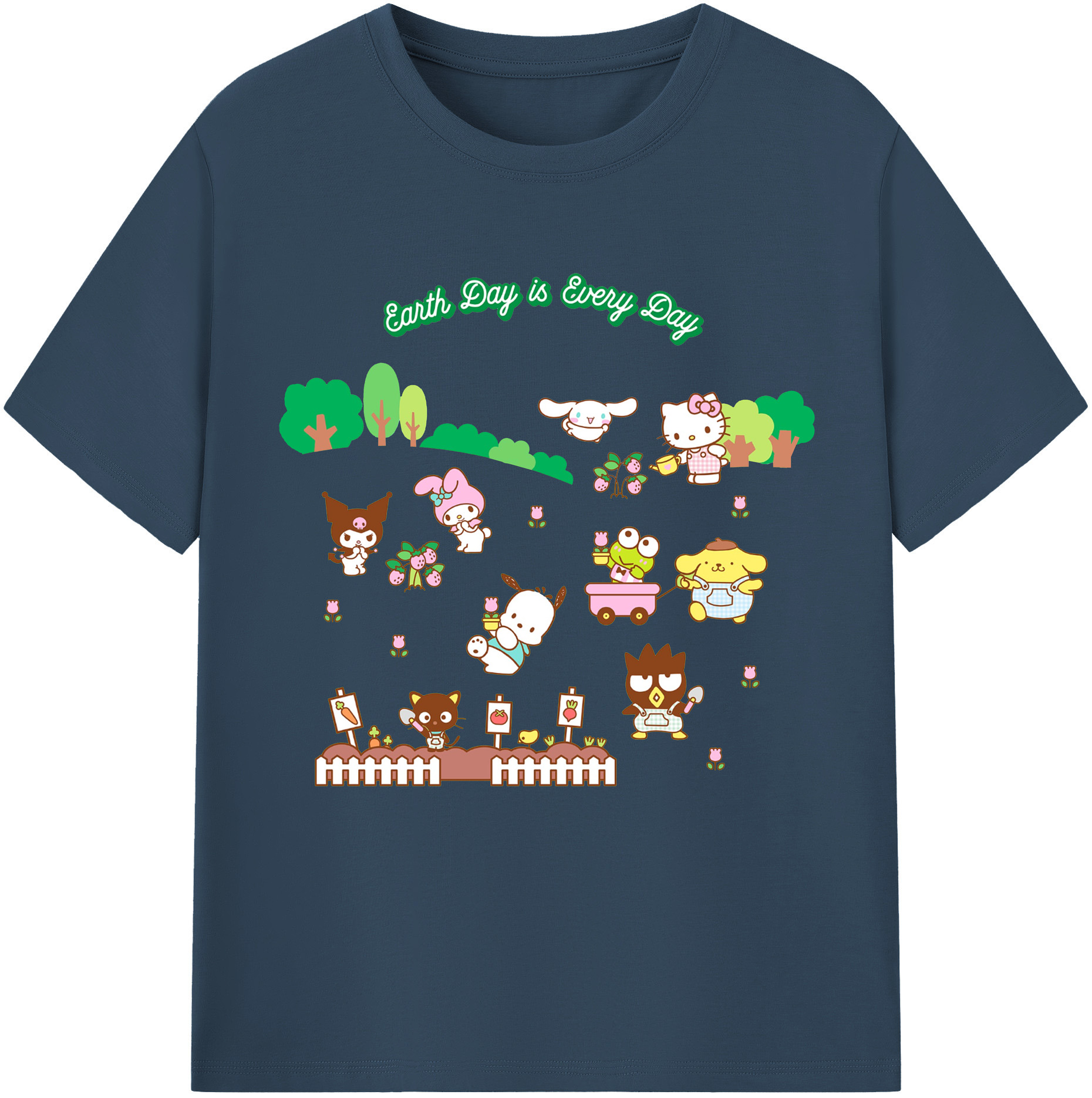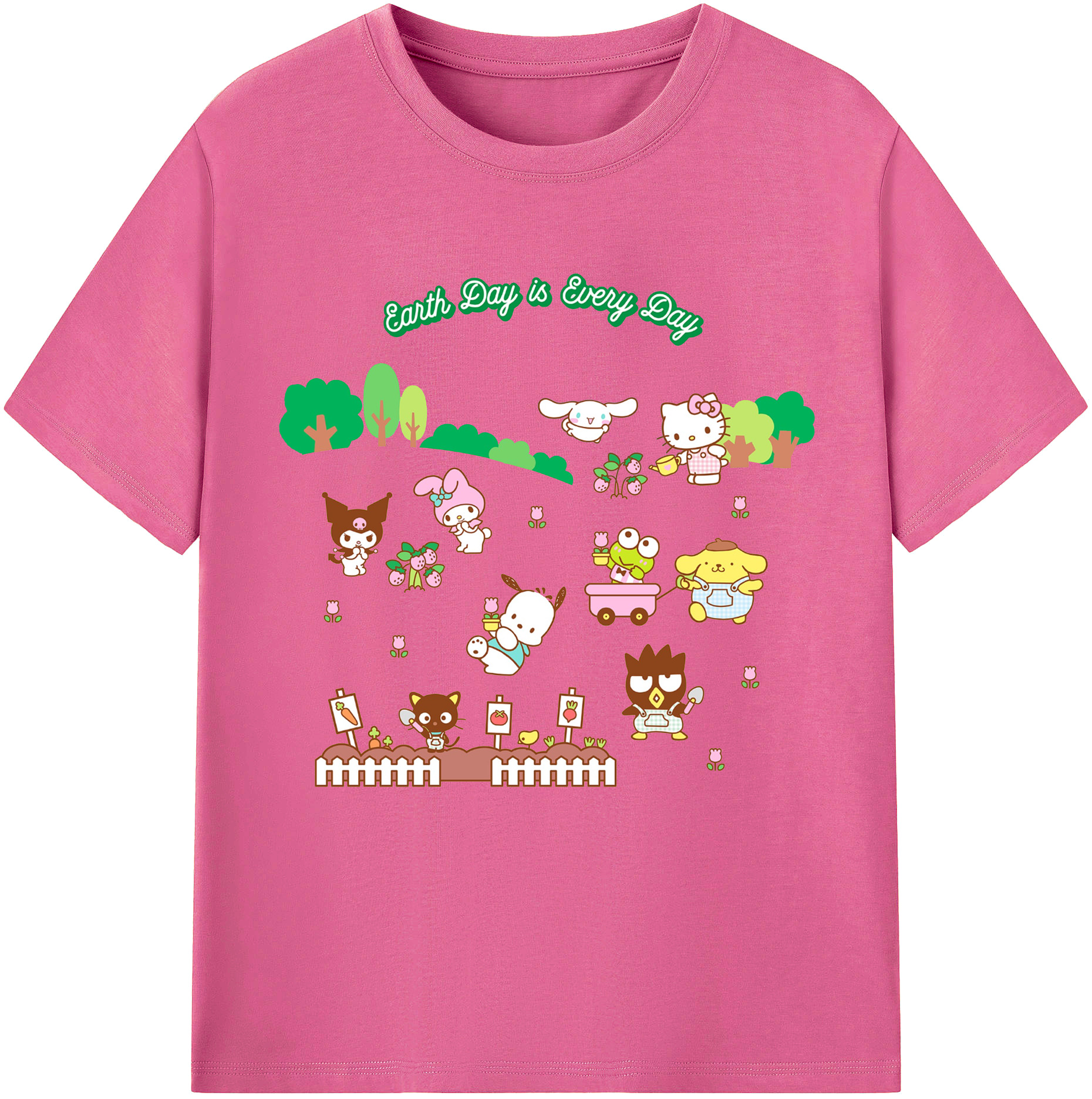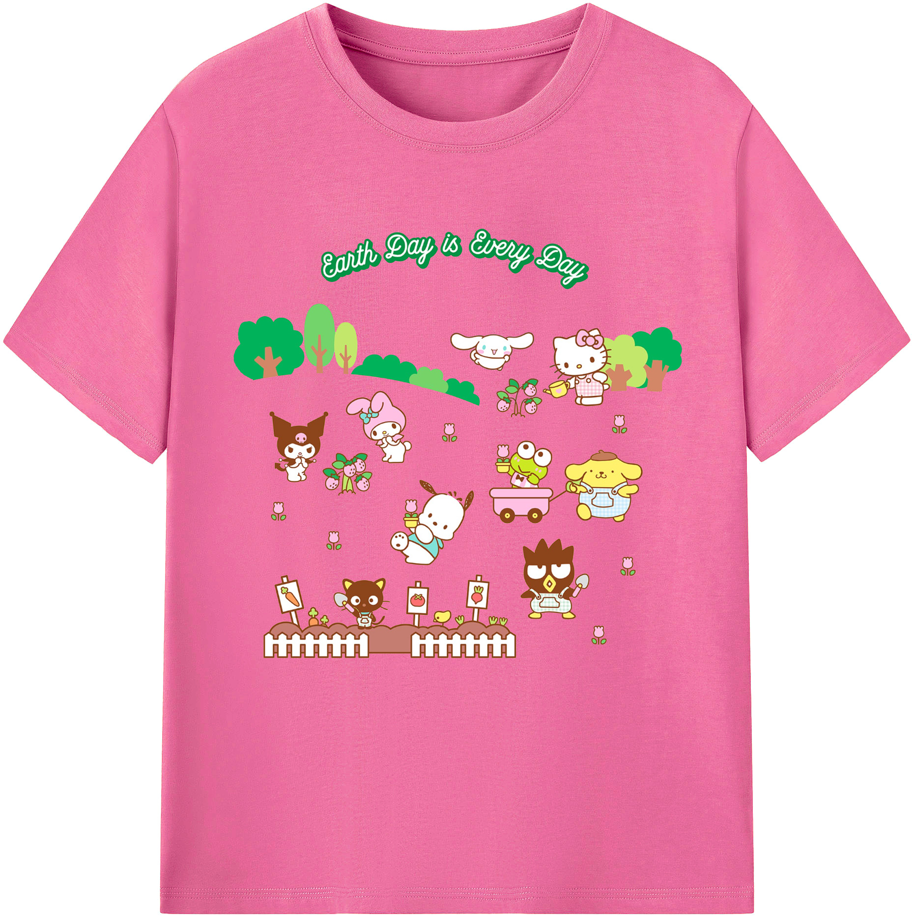 サンリオファミリー新作 - レディースカジュアルプリントTシャツ ・ 綿100% ・ クルーネック ・ フロントプリント ・ 柔らかく快適 ・ フィットネス カジュアル 旅行用