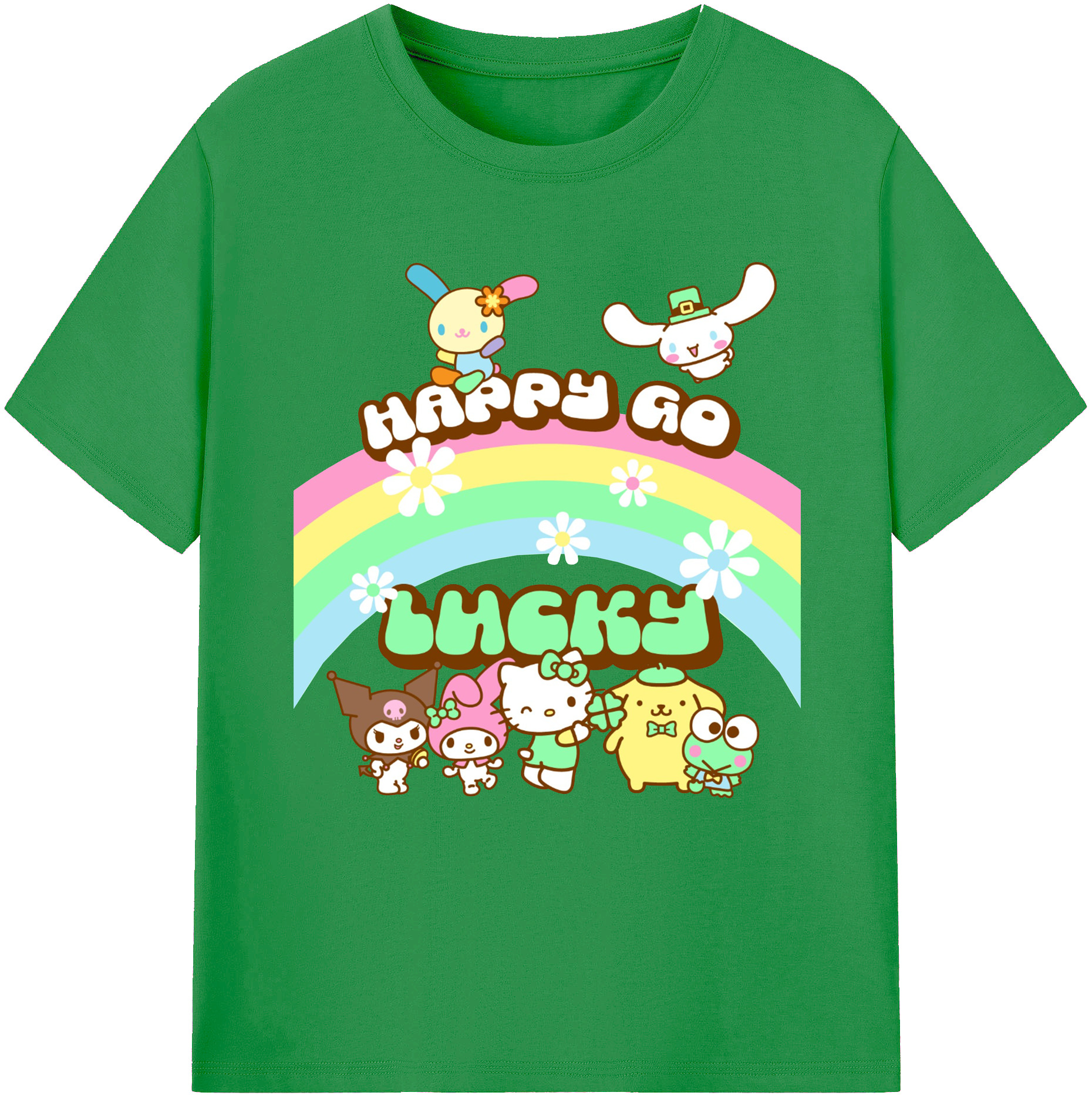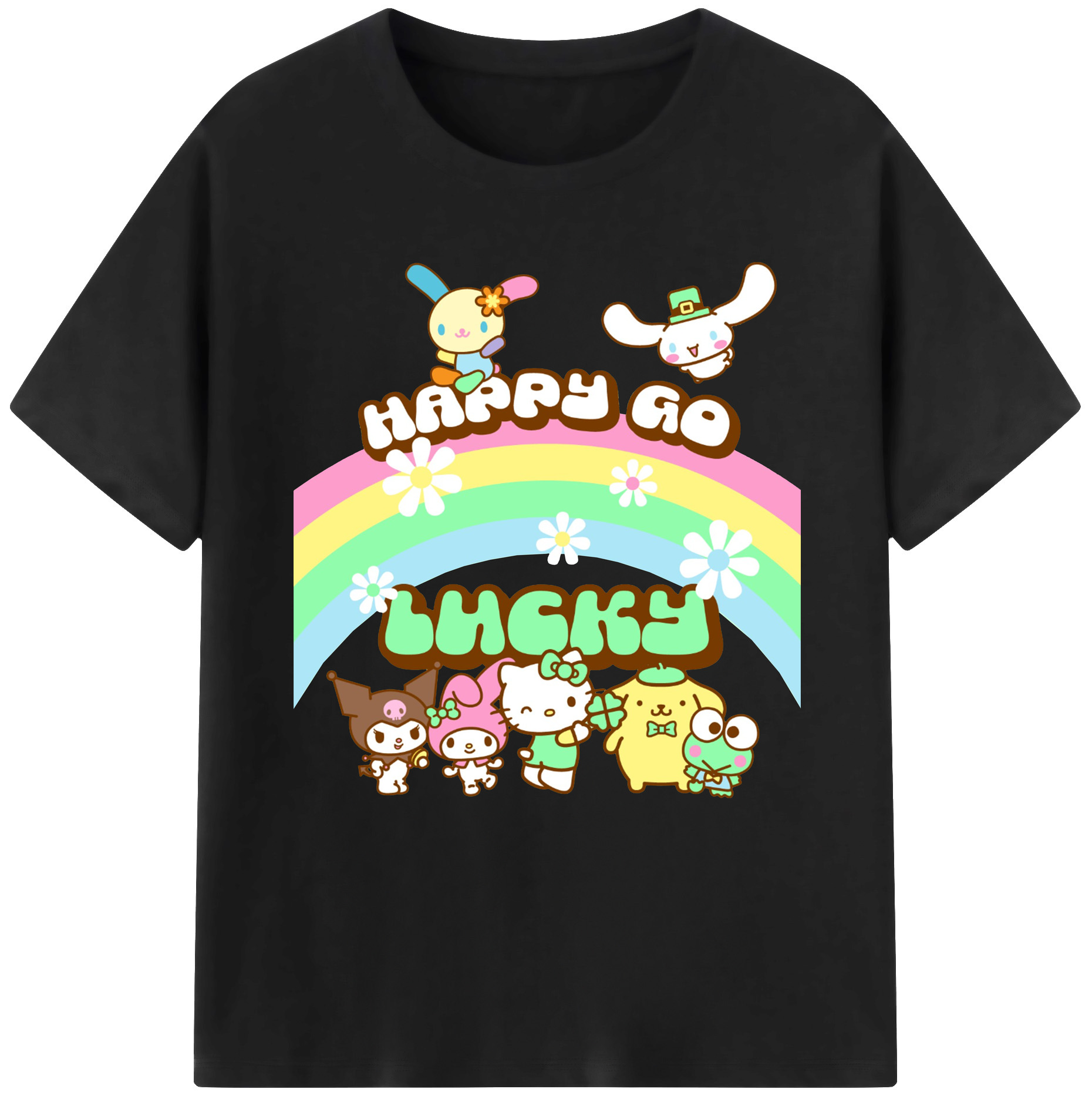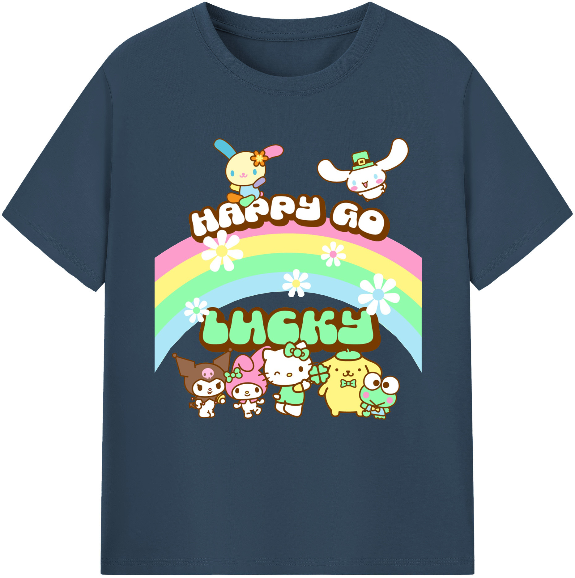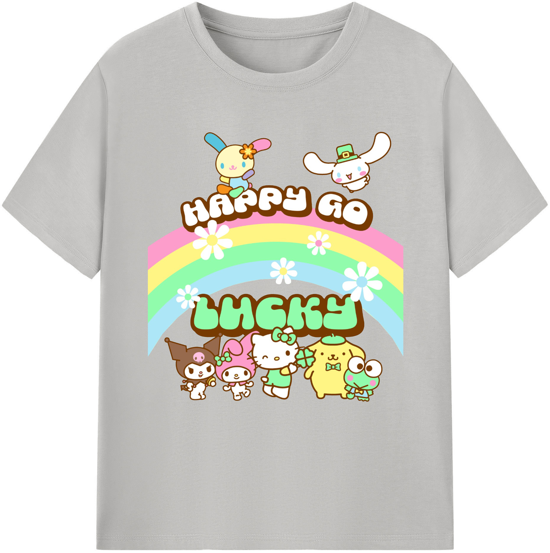サンリオファミリー新作 - レディースカジュアルプリントTシャツ ・ 綿100% ・ クルーネック ・ フロントプリント ・ 柔らかく快適 ・ フィットネス カジュアル 旅行用