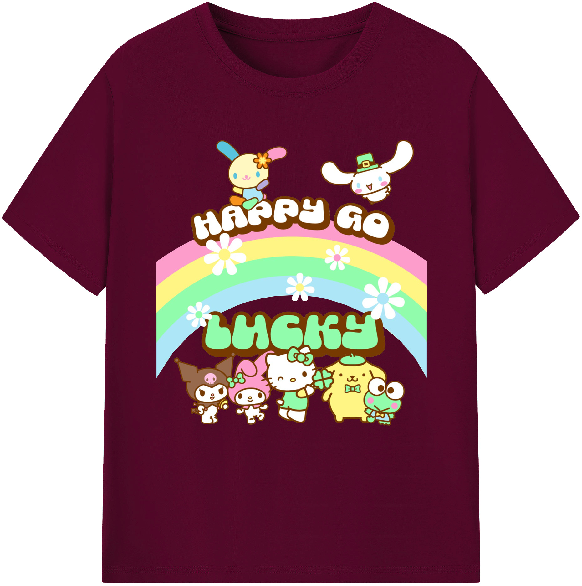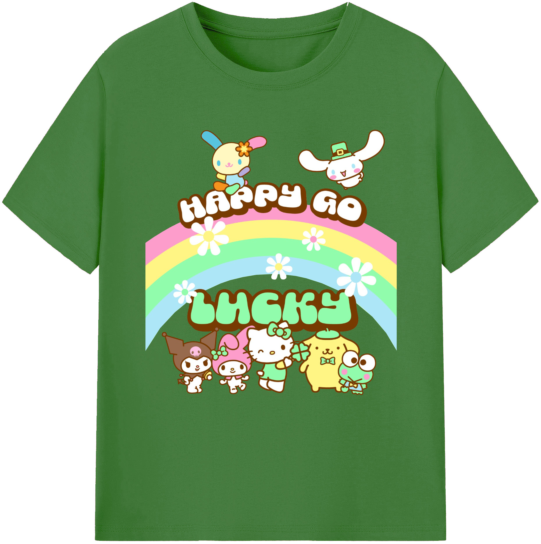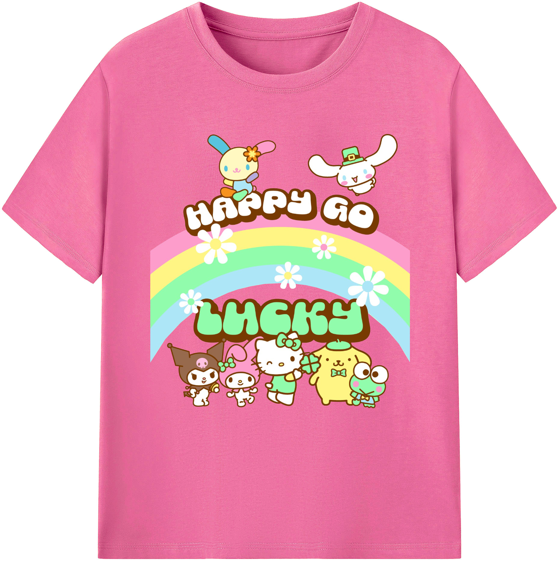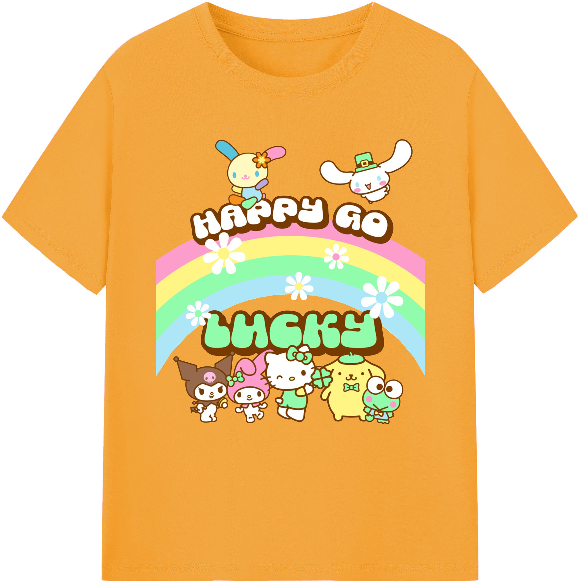 サンリオファミリー新作 - レディースカジュアルプリントTシャツ ・ 綿100% ・ クルーネック ・ フロントプリント ・ 柔らかく快適 ・ フィットネス カジュアル 旅行用
