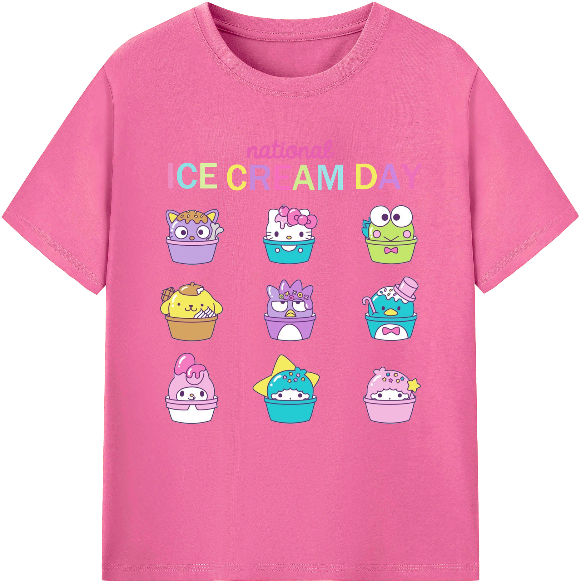 サンリオファミリー - 綿100% キッズTシャツ ・ フロントプリント ・ 快適 通気性 ・ スポーツ カジュアル 散歩用