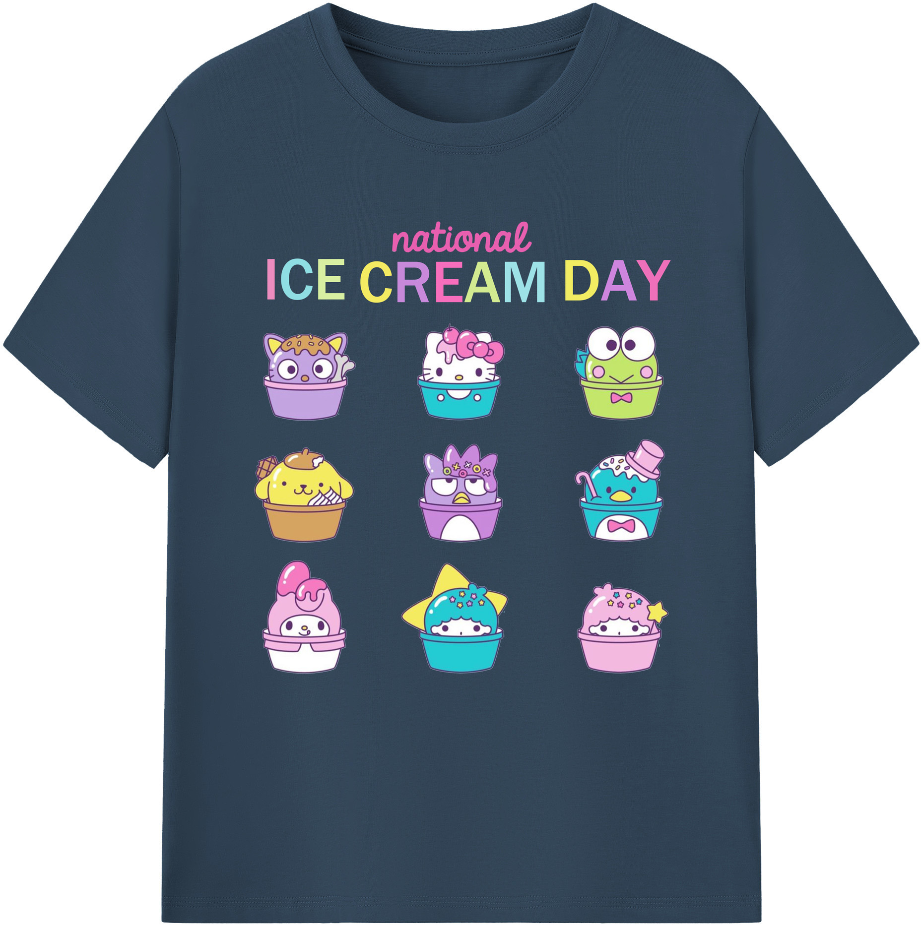 サンリオファミリー - 綿100% ヴィンテージ風 半袖Tシャツ ・ フロントプリント ・ 柔らか肌触り ・ 通気性 快適 ・ スポーツ カジュアル 外出用