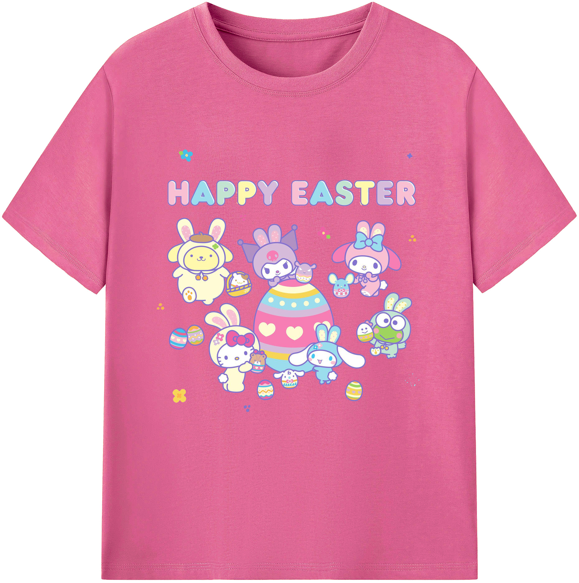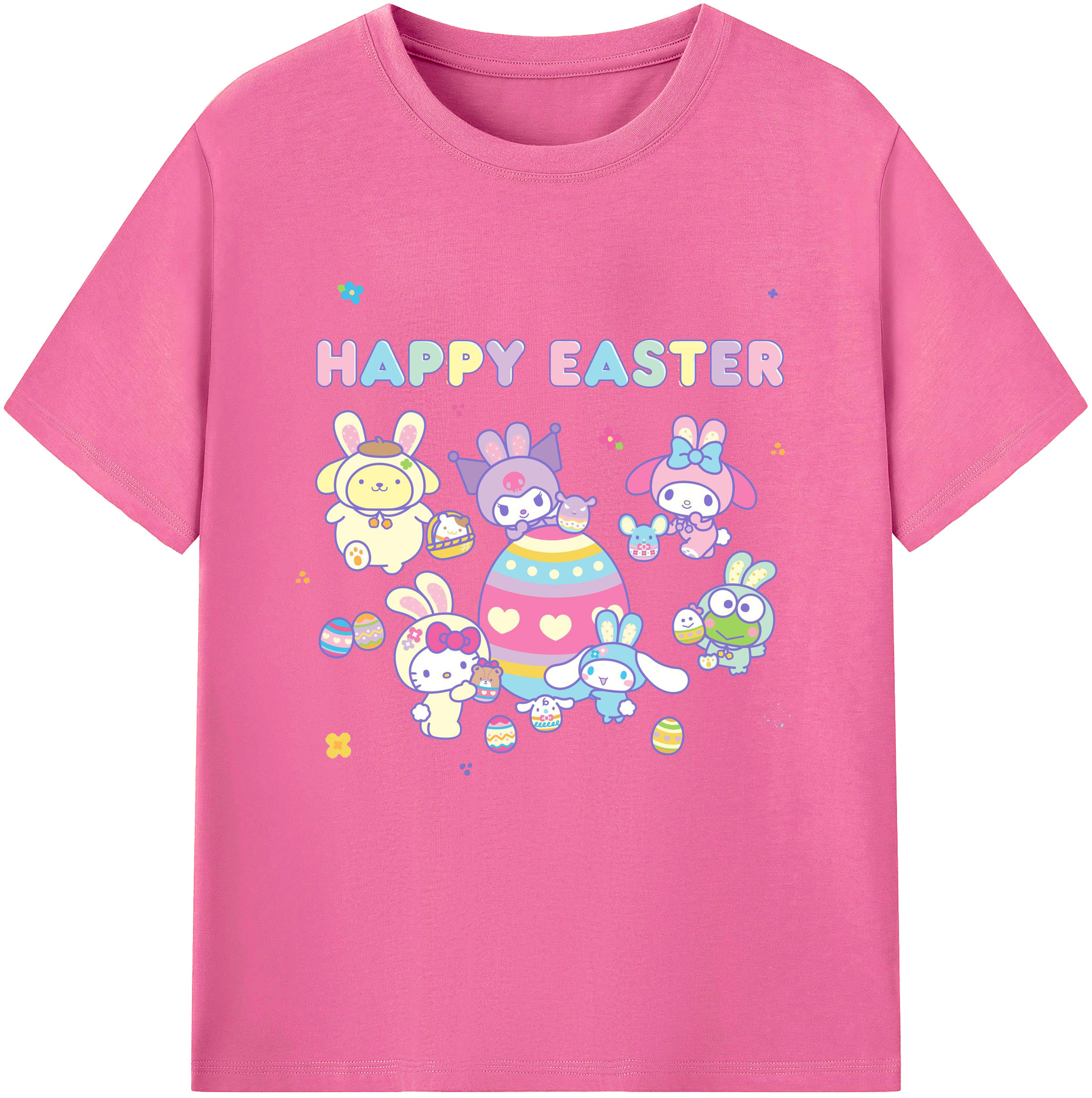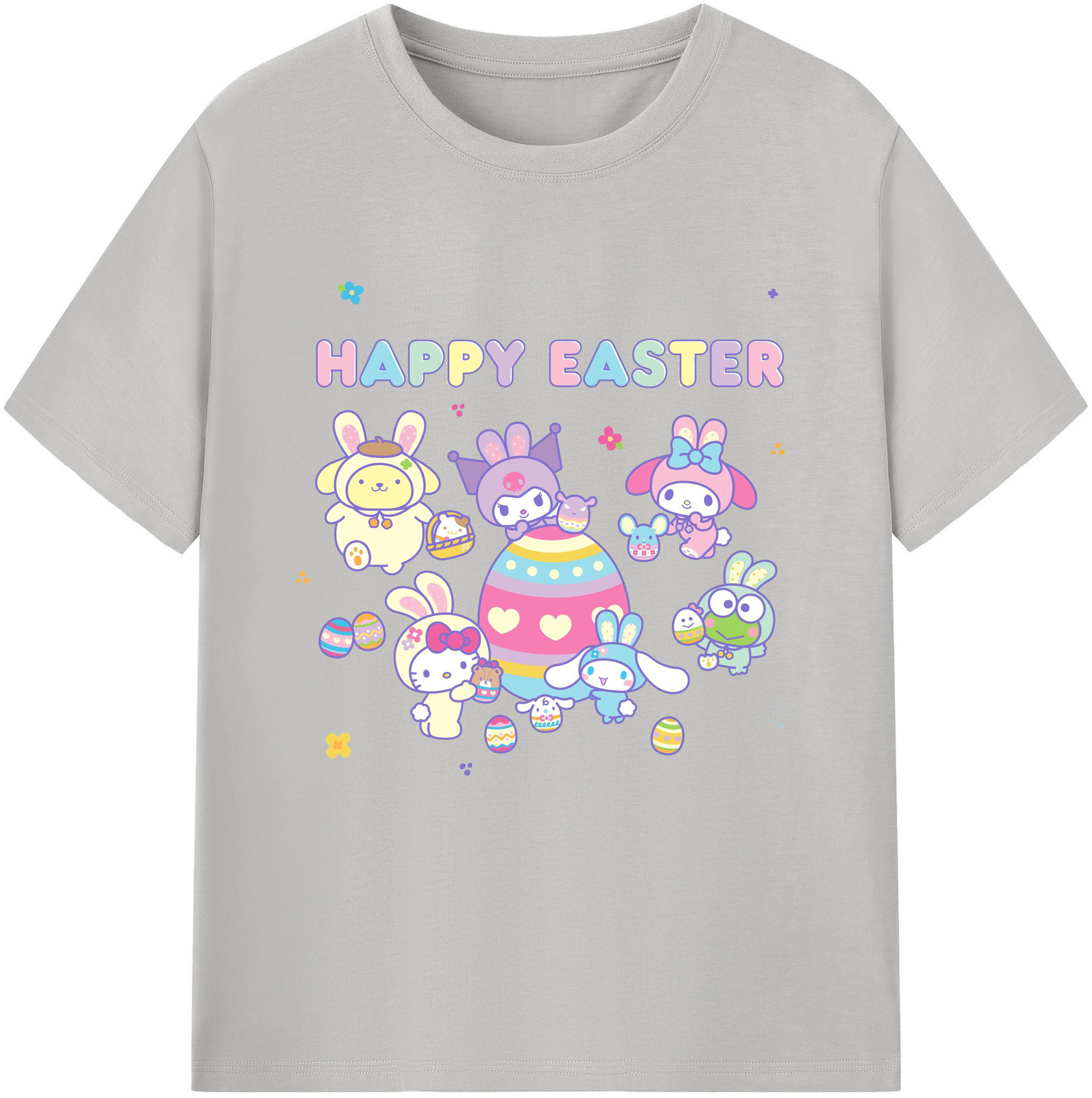 サンリオファミリー - レディースカジュアルプリントTシャツ ・ 綿100% ・ クルーネック ・ フロントプリント ・ 柔らかく快適 ・ フィットネス カジュアル 旅行用