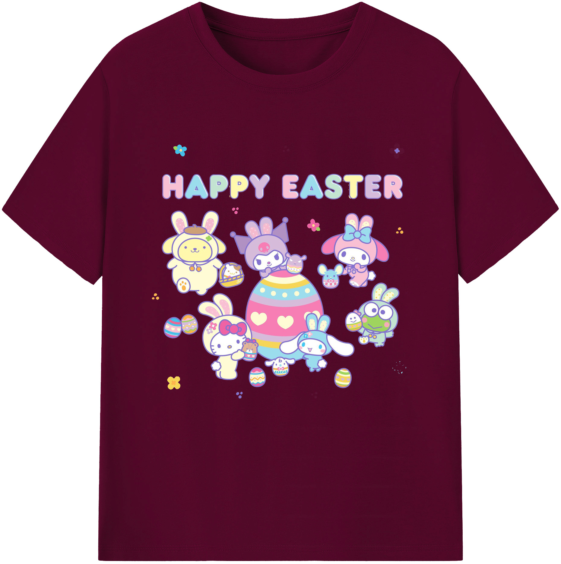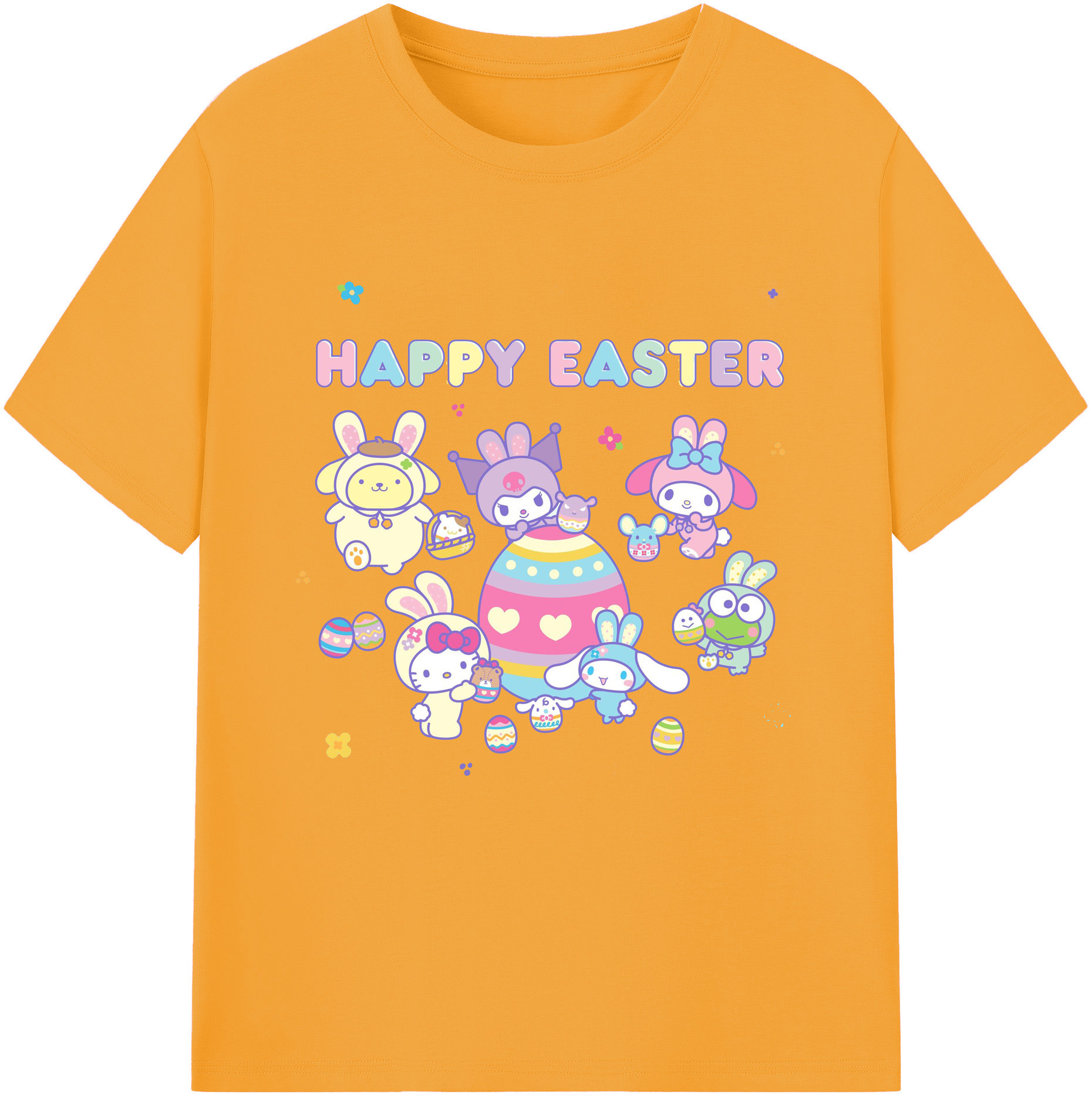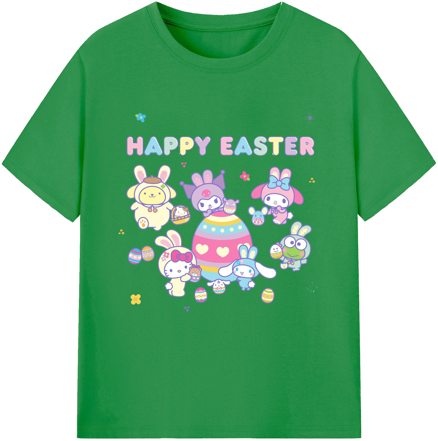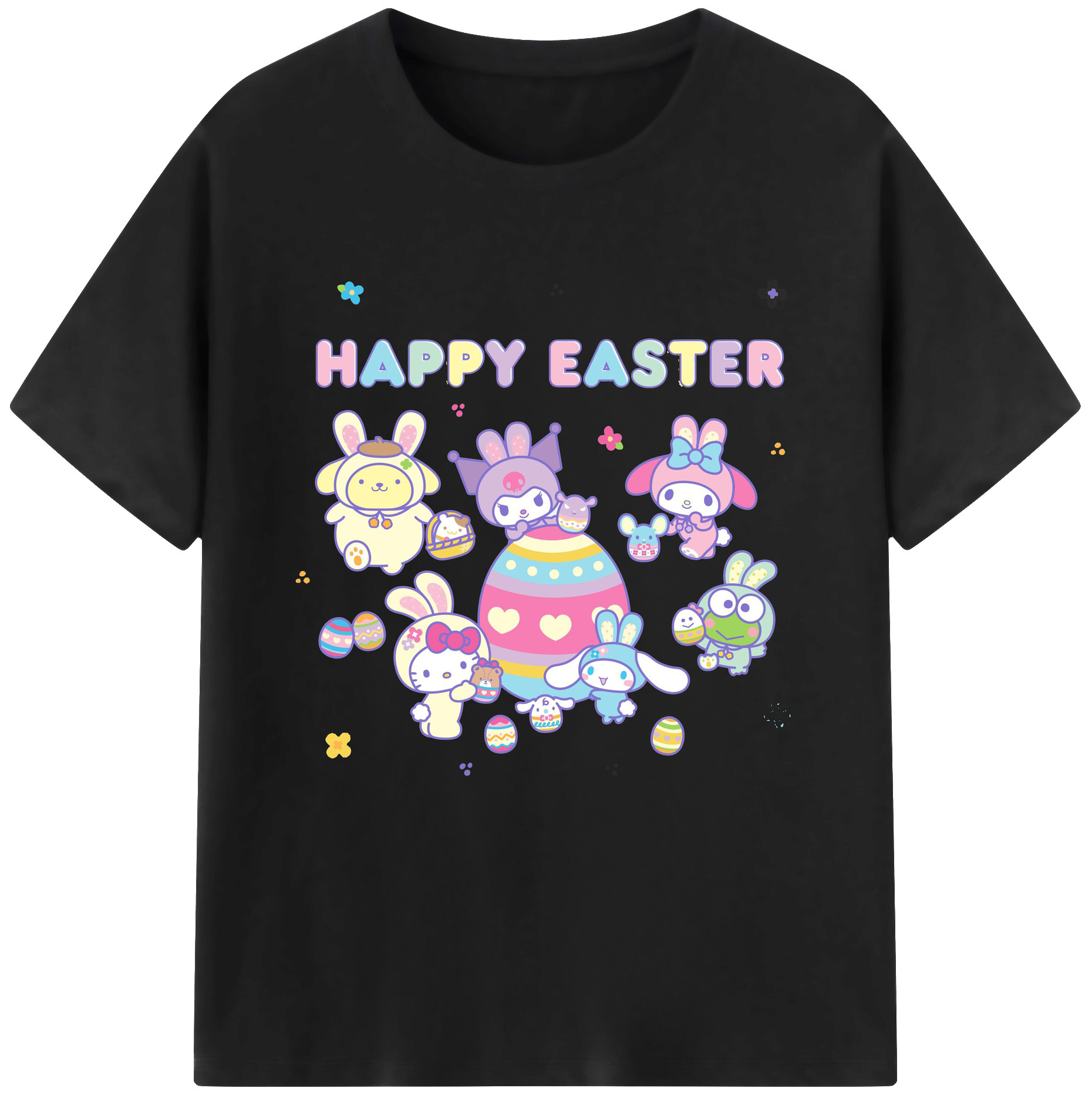 サンリオファミリー - レディースカジュアルプリントTシャツ ・ 綿100% ・ クルーネック ・ フロントプリント ・ 柔らかく快適 ・ フィットネス カジュアル 旅行用
