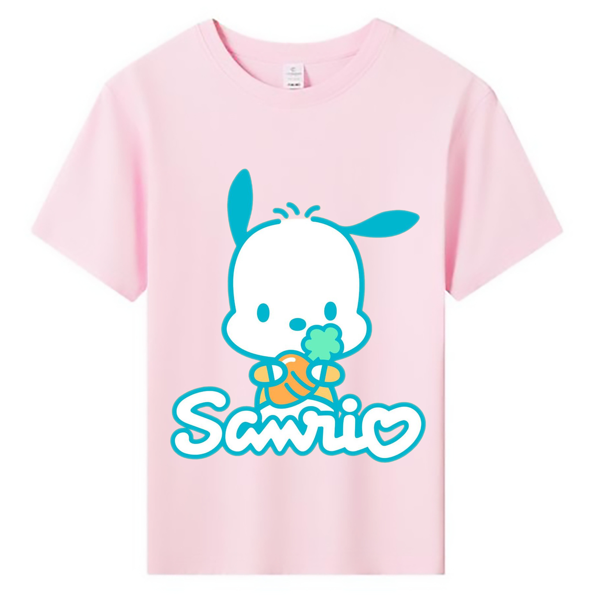 サンリオファミリー - 綿100% キッズTシャツ ・ フロントプリント ・ 快適 通気性 ・ スポーツ カジュアル 散歩用