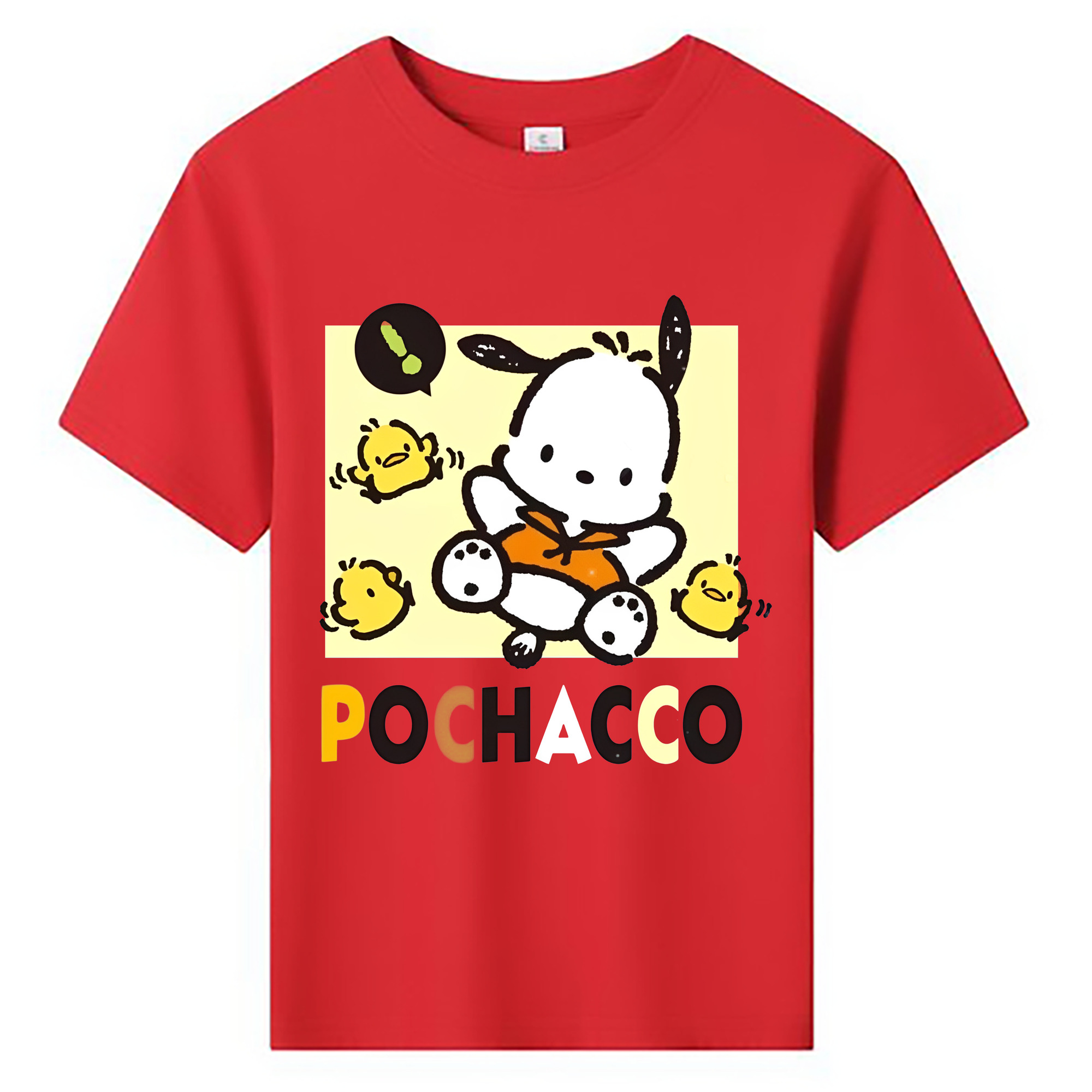 サンリオポチャッコ - 綿100% ヴィンテージ風 半袖Tシャツ ・ フロントプリント ・ 柔らか肌触り ・ 通気性 快適 ・ スポーツ カジュアル 外出用