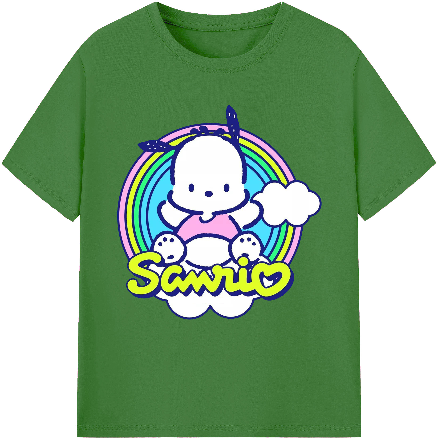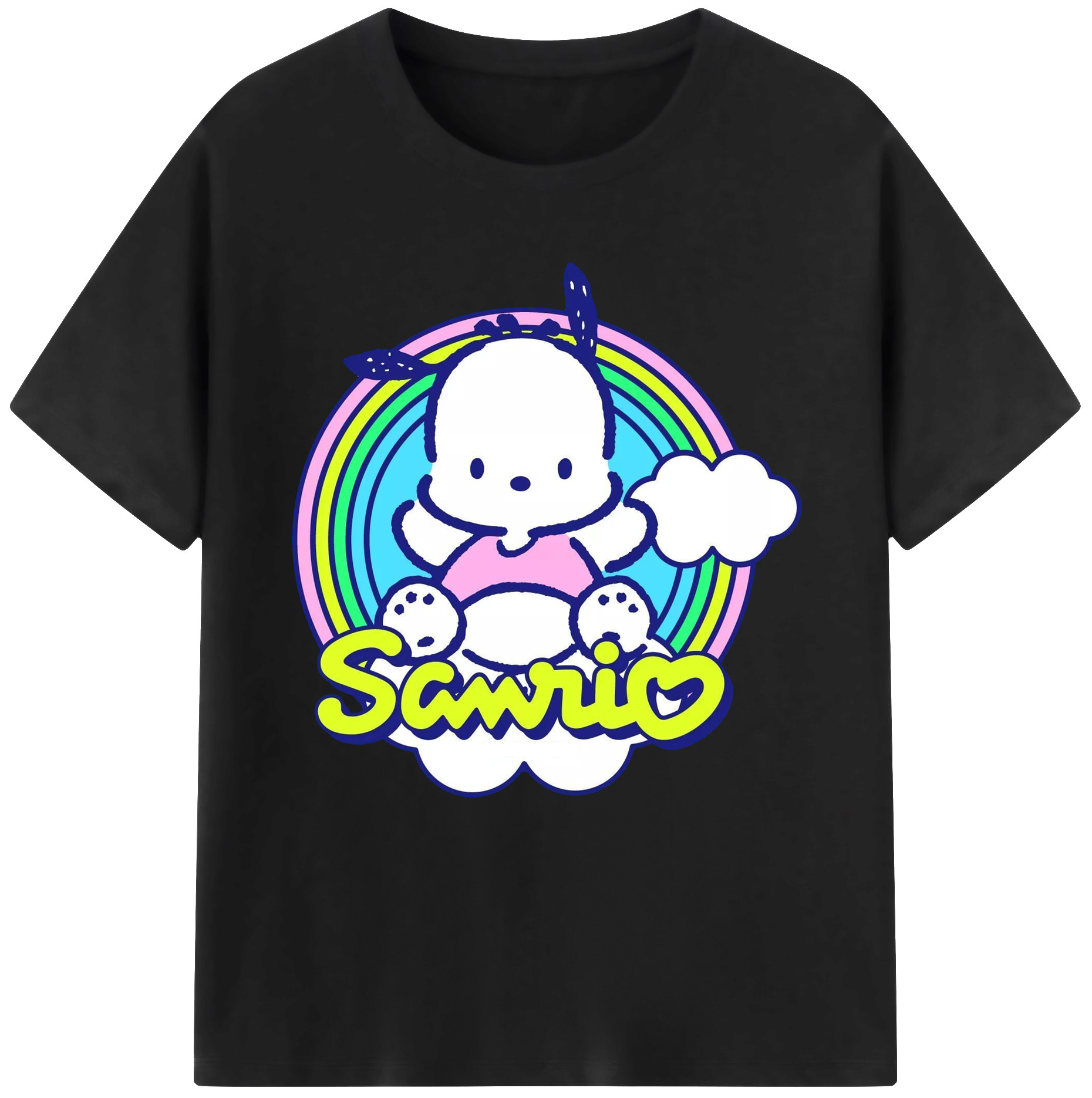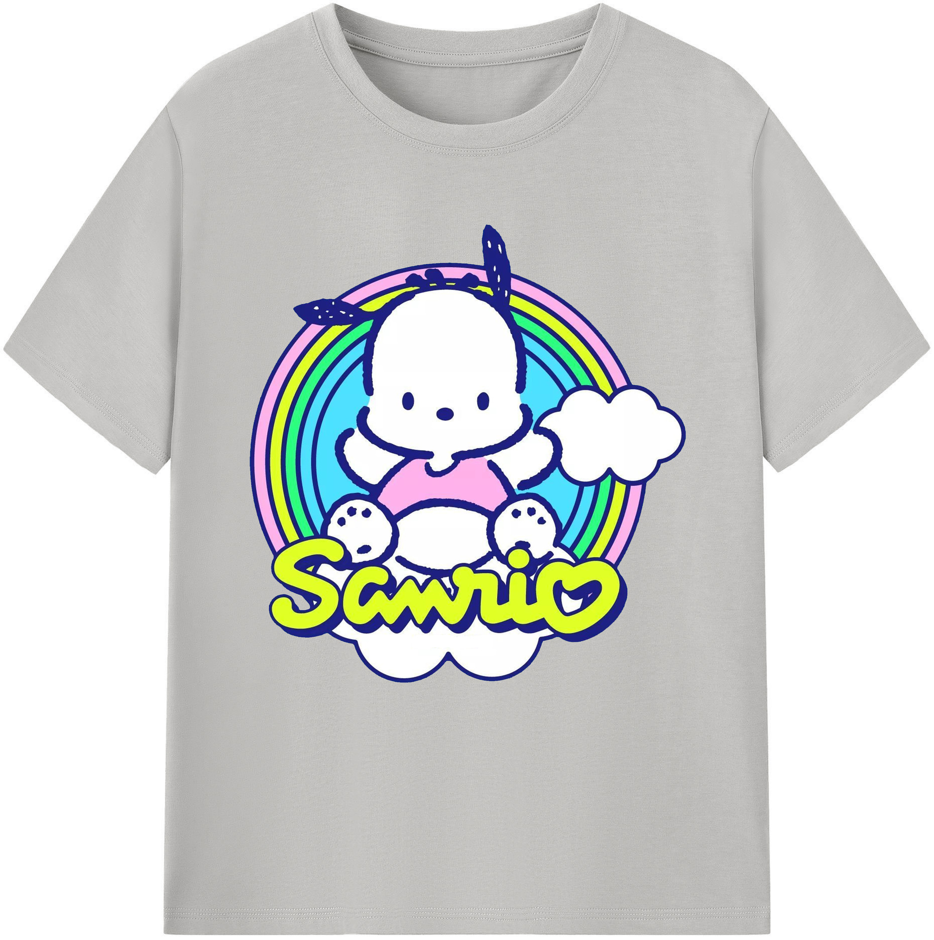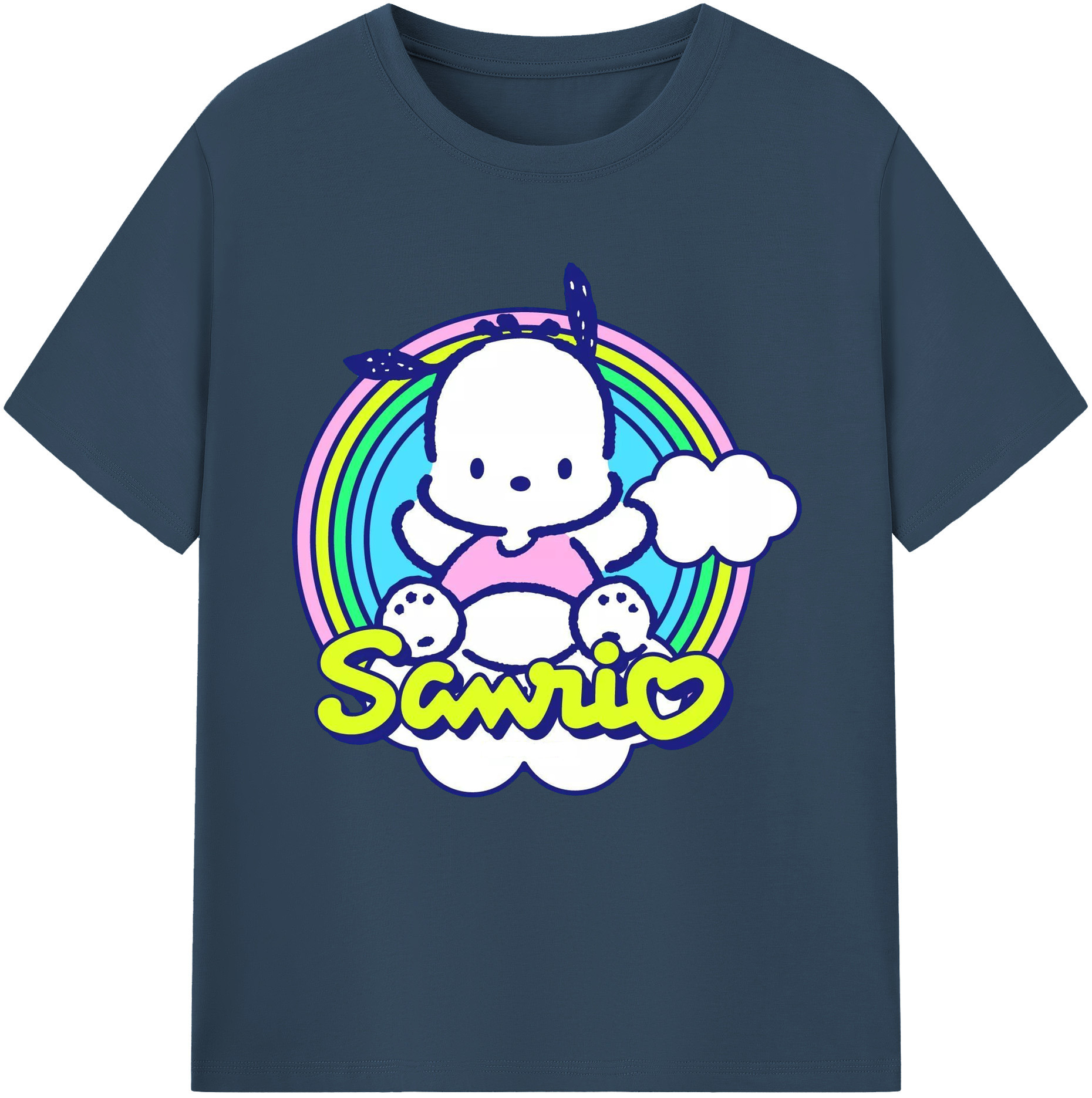 サンリオポチャッコ - レディースカジュアルプリントTシャツ ・ 綿100% ・ クルーネック ・ フロントプリント ・ 柔らかく快適 ・ フィットネス カジュアル 旅行用