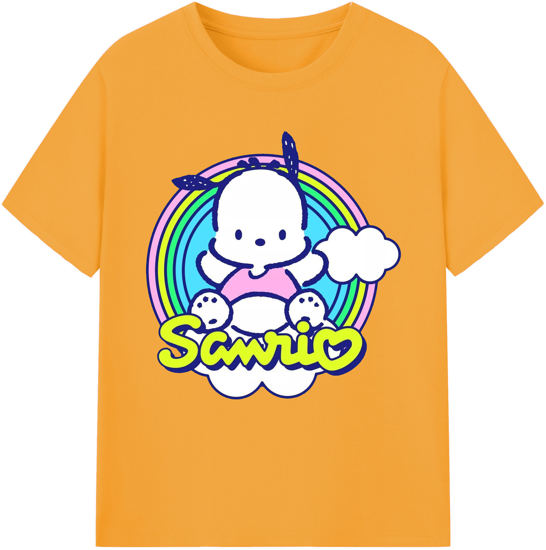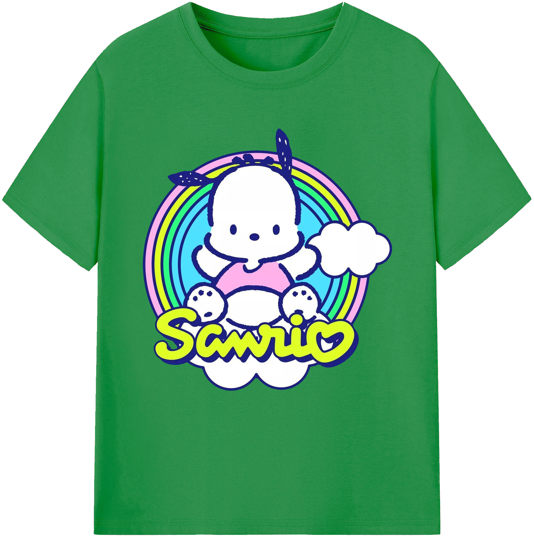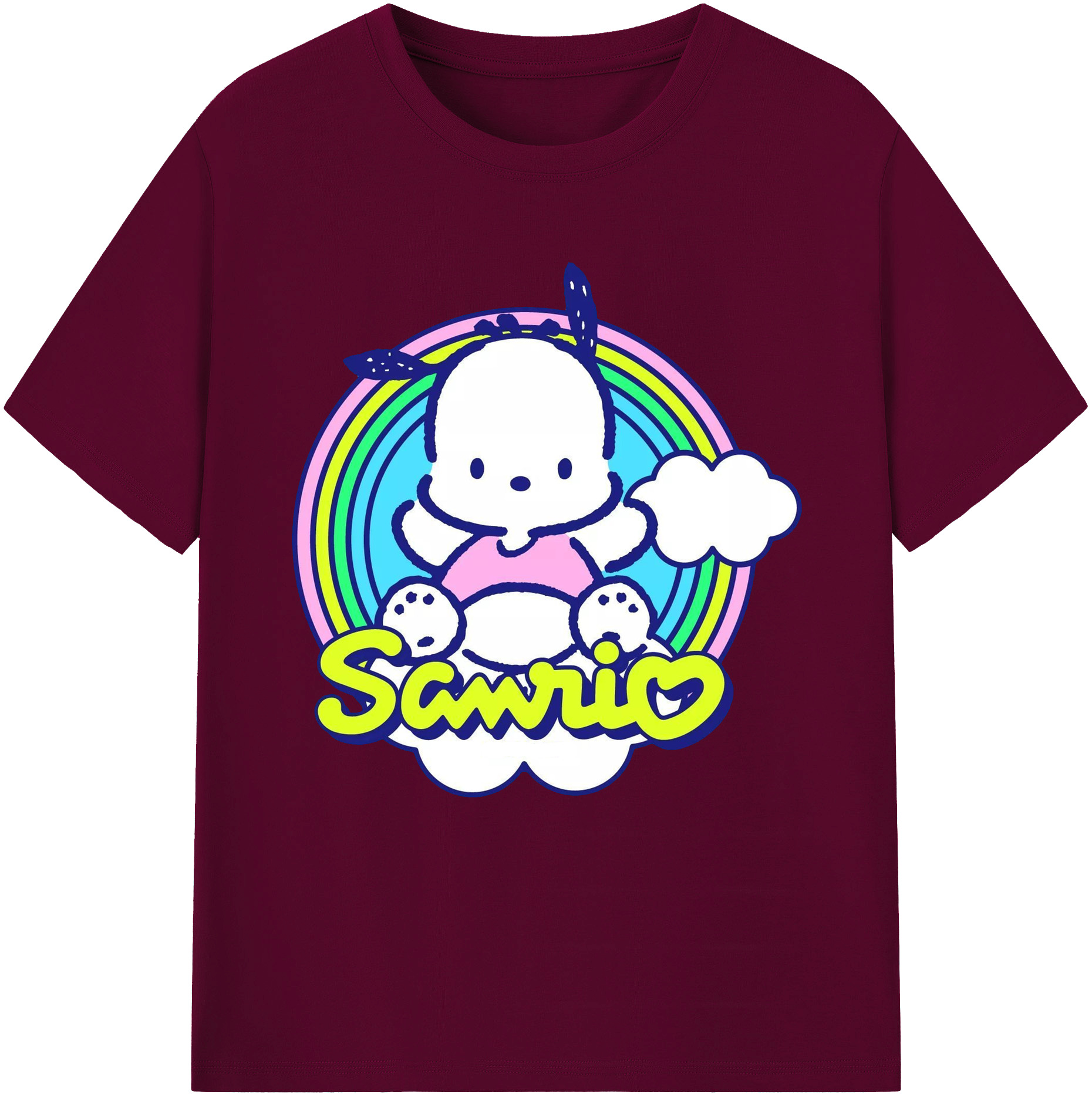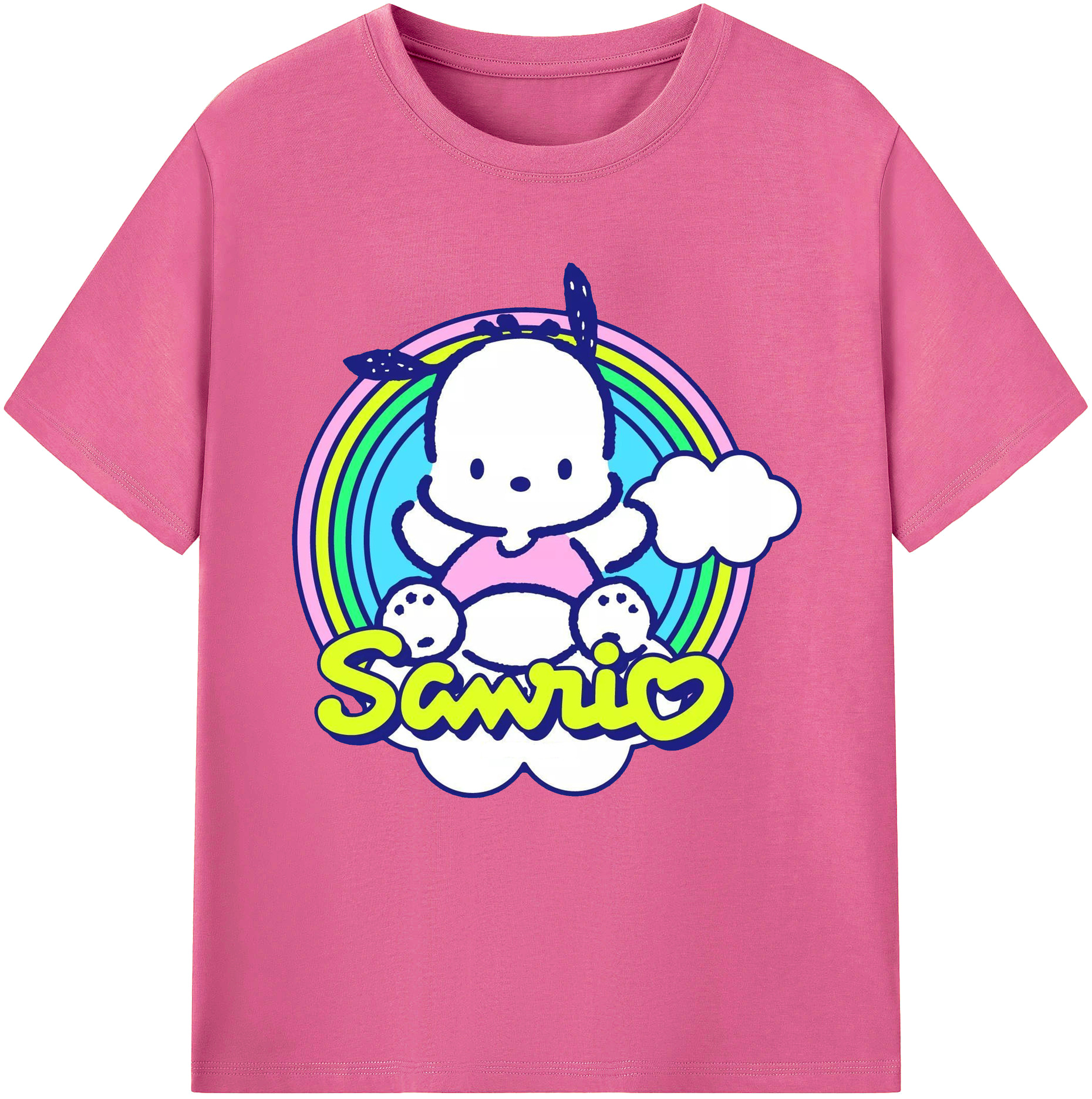 サンリオポチャッコ - レディースカジュアルプリントTシャツ ・ 綿100% ・ クルーネック ・ フロントプリント ・ 柔らかく快適 ・ フィットネス カジュアル 旅行用