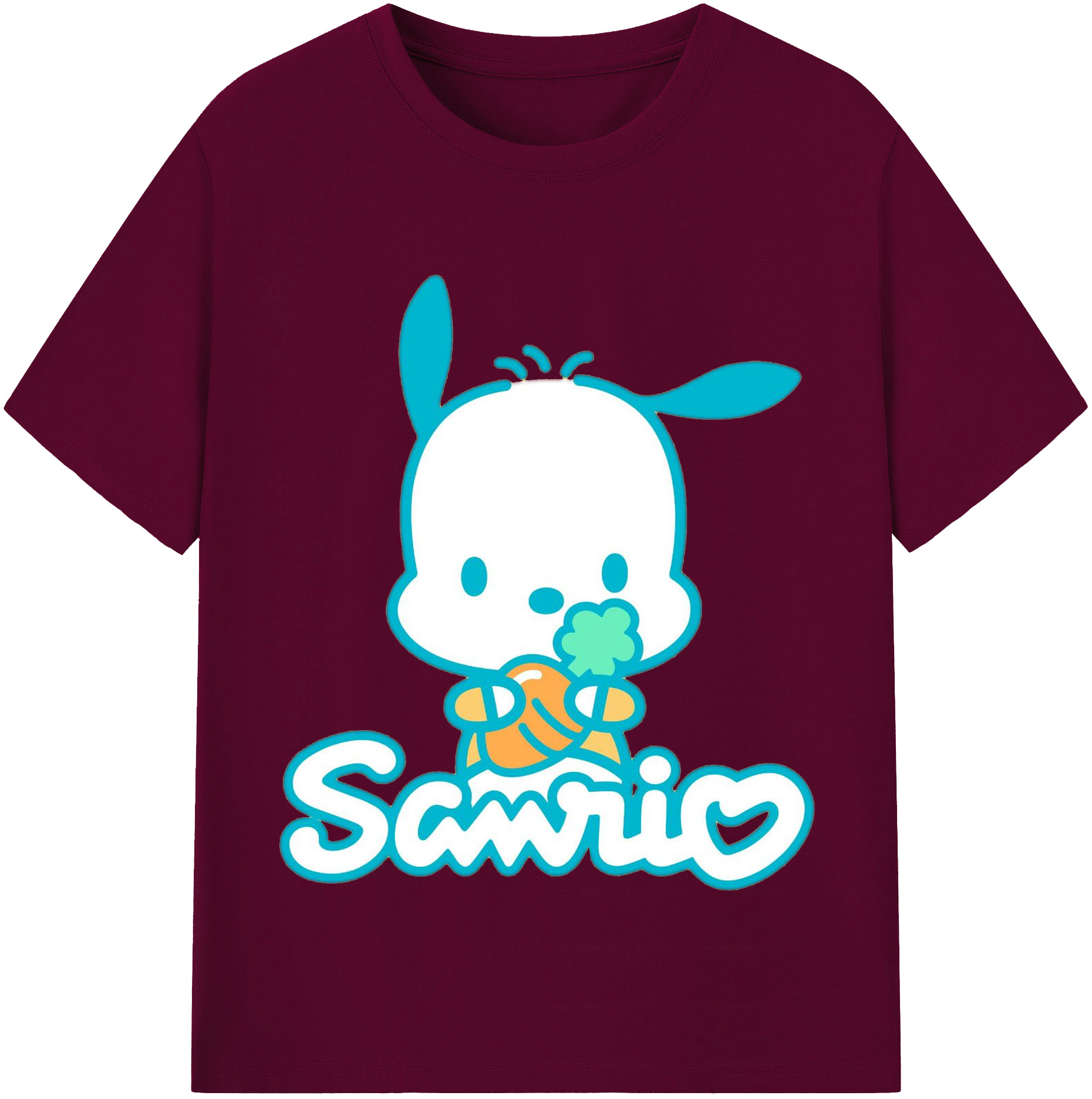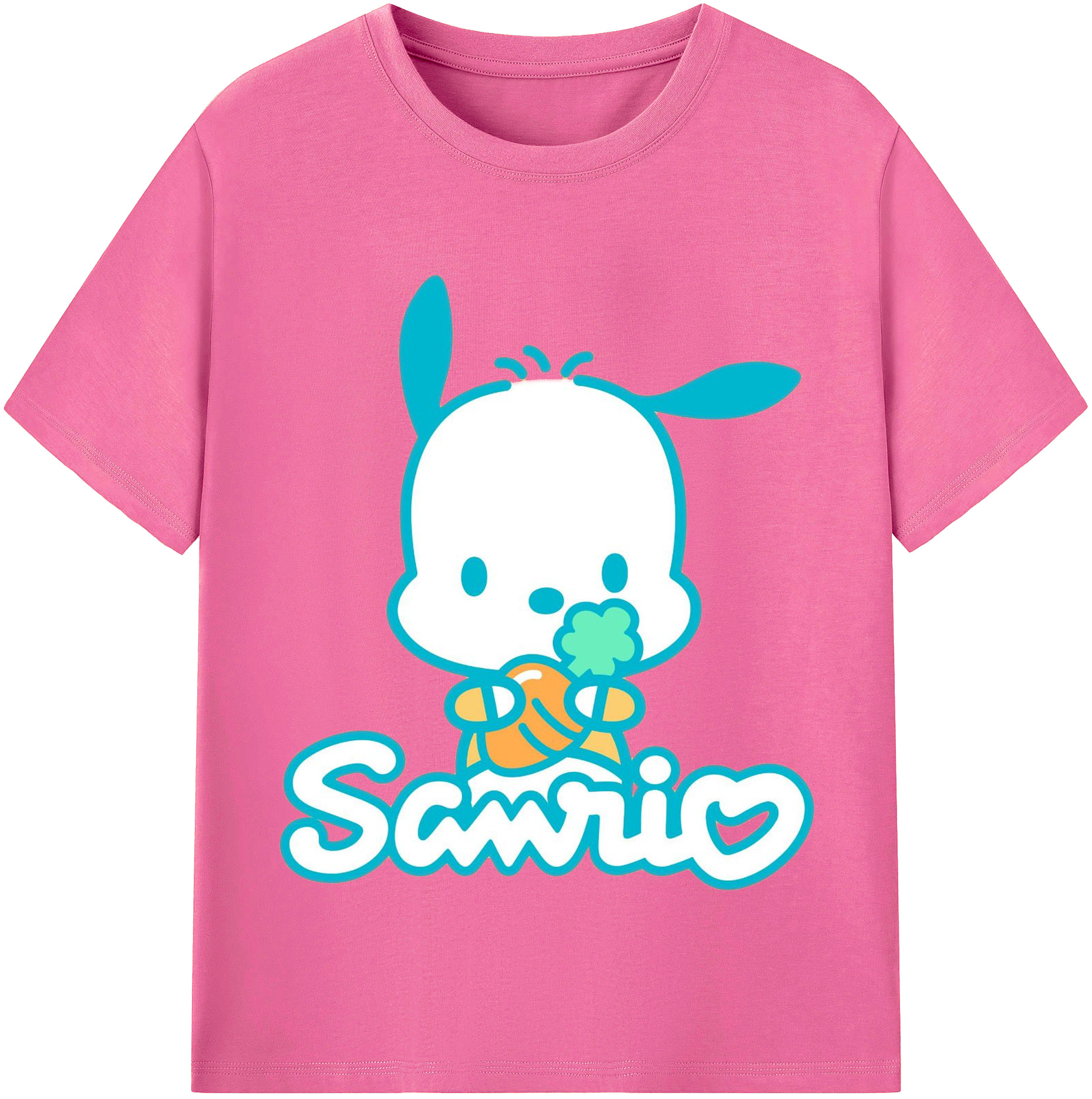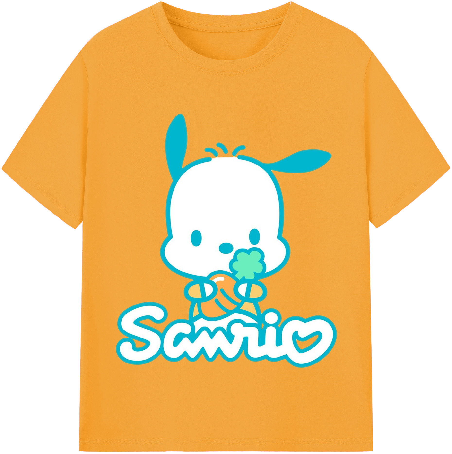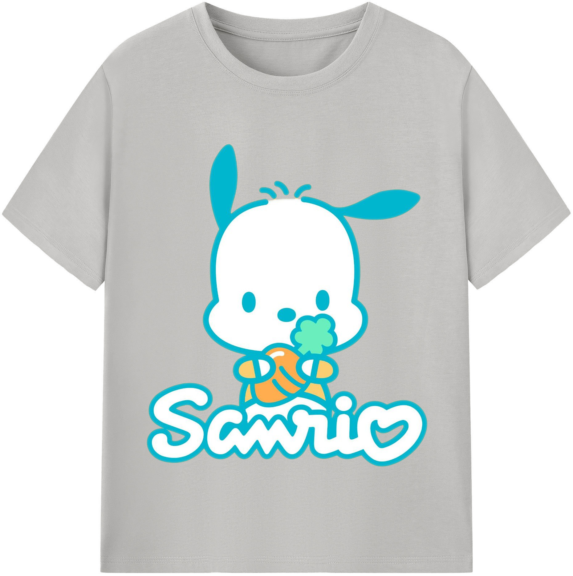 サンリオポチャッコ - レディースカジュアルプリントTシャツ ・ 綿100% ・ クルーネック ・ フロントプリント ・ 柔らかく快適 ・ フィットネス カジュアル 旅行用