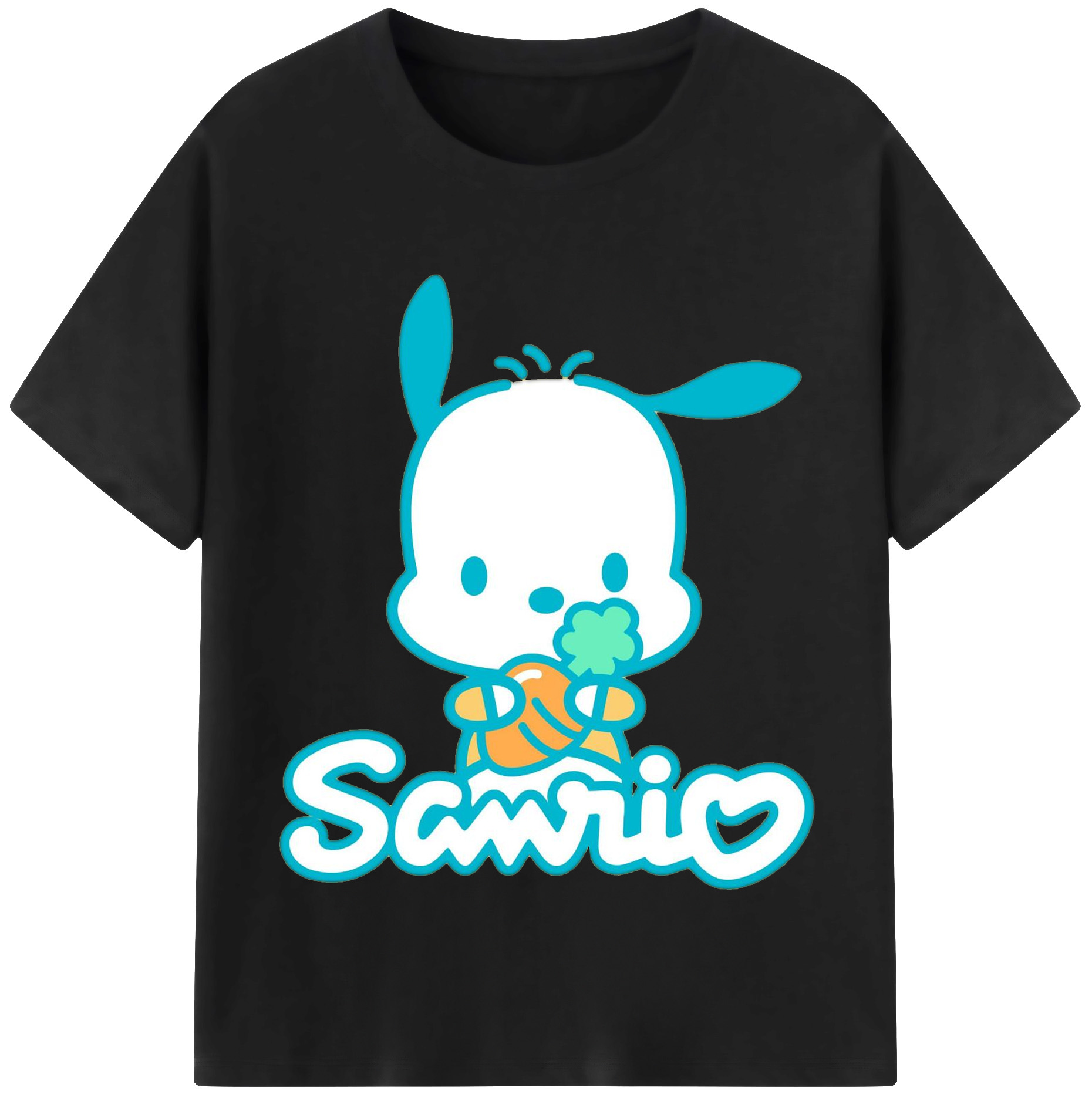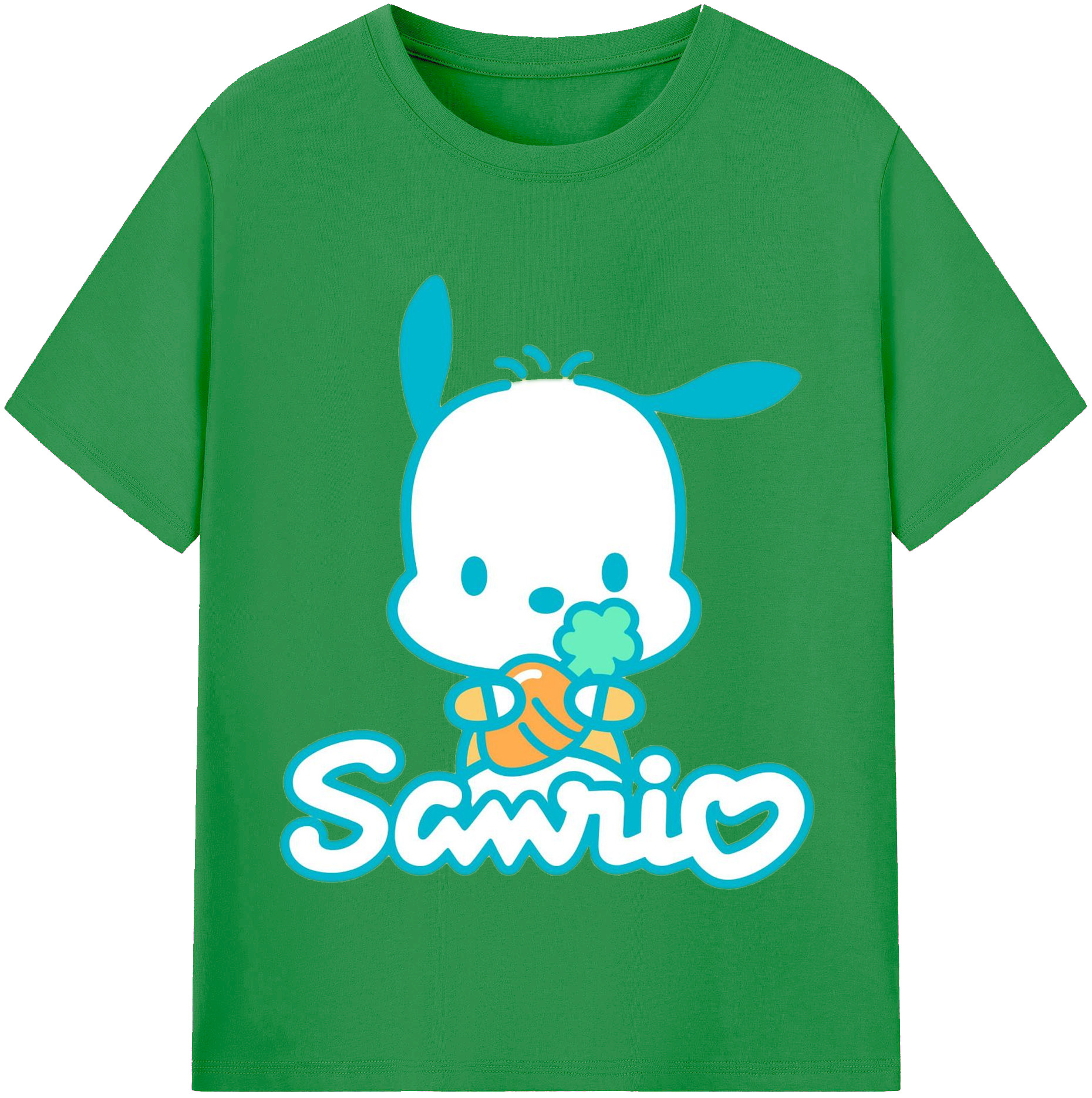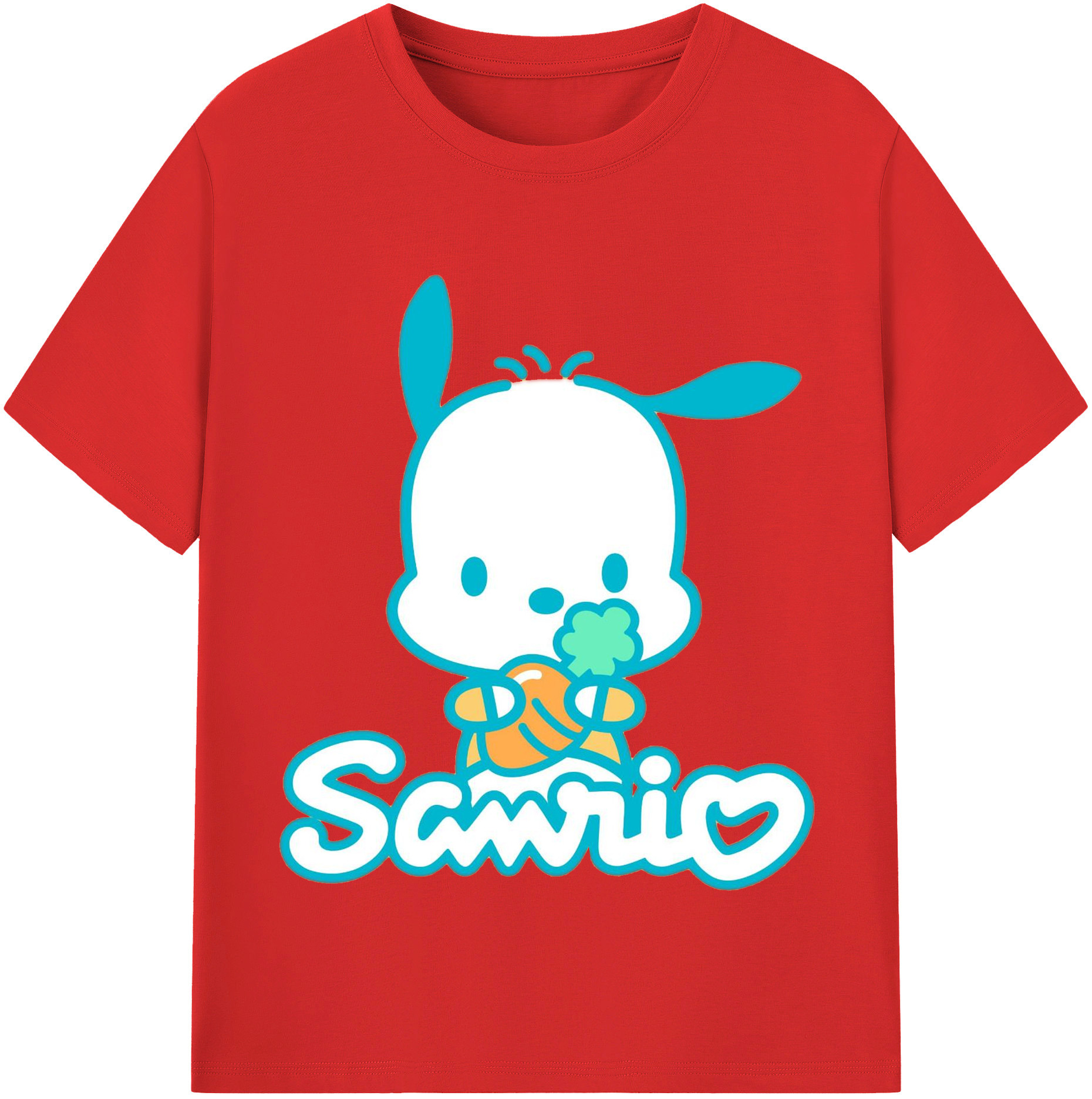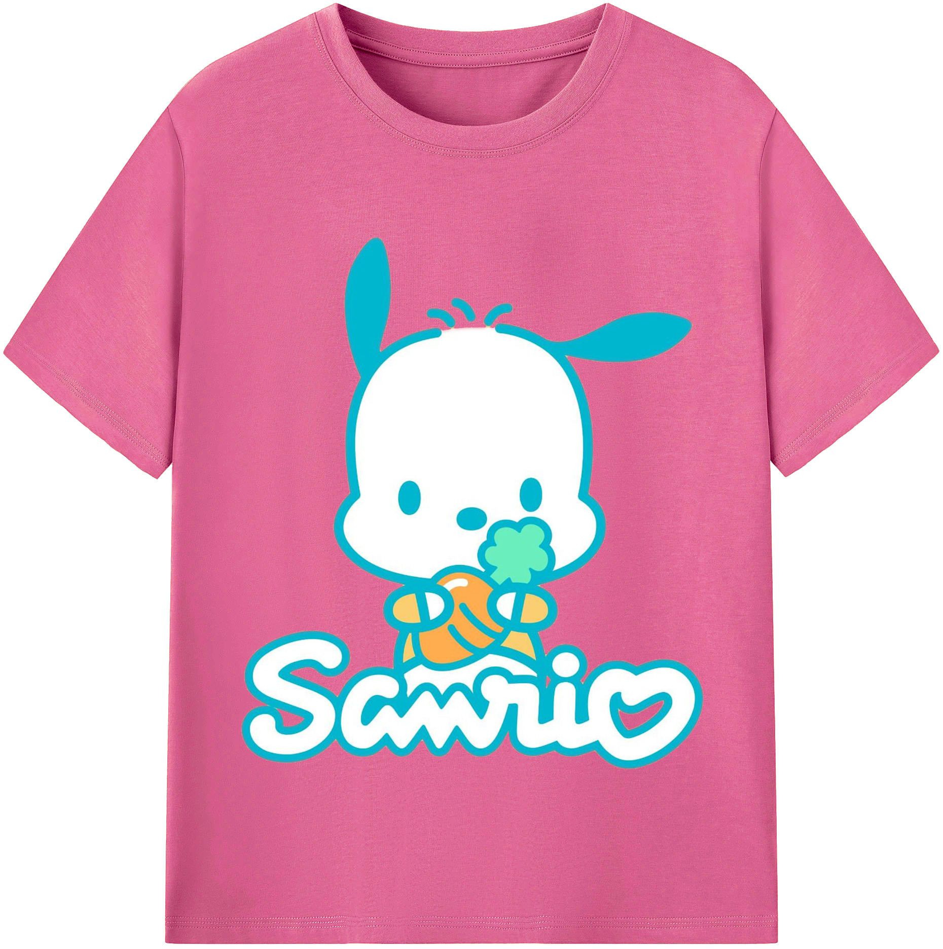 サンリオポチャッコ - レディースカジュアルプリントTシャツ ・ 綿100% ・ クルーネック ・ フロントプリント ・ 柔らかく快適 ・ フィットネス カジュアル 旅行用