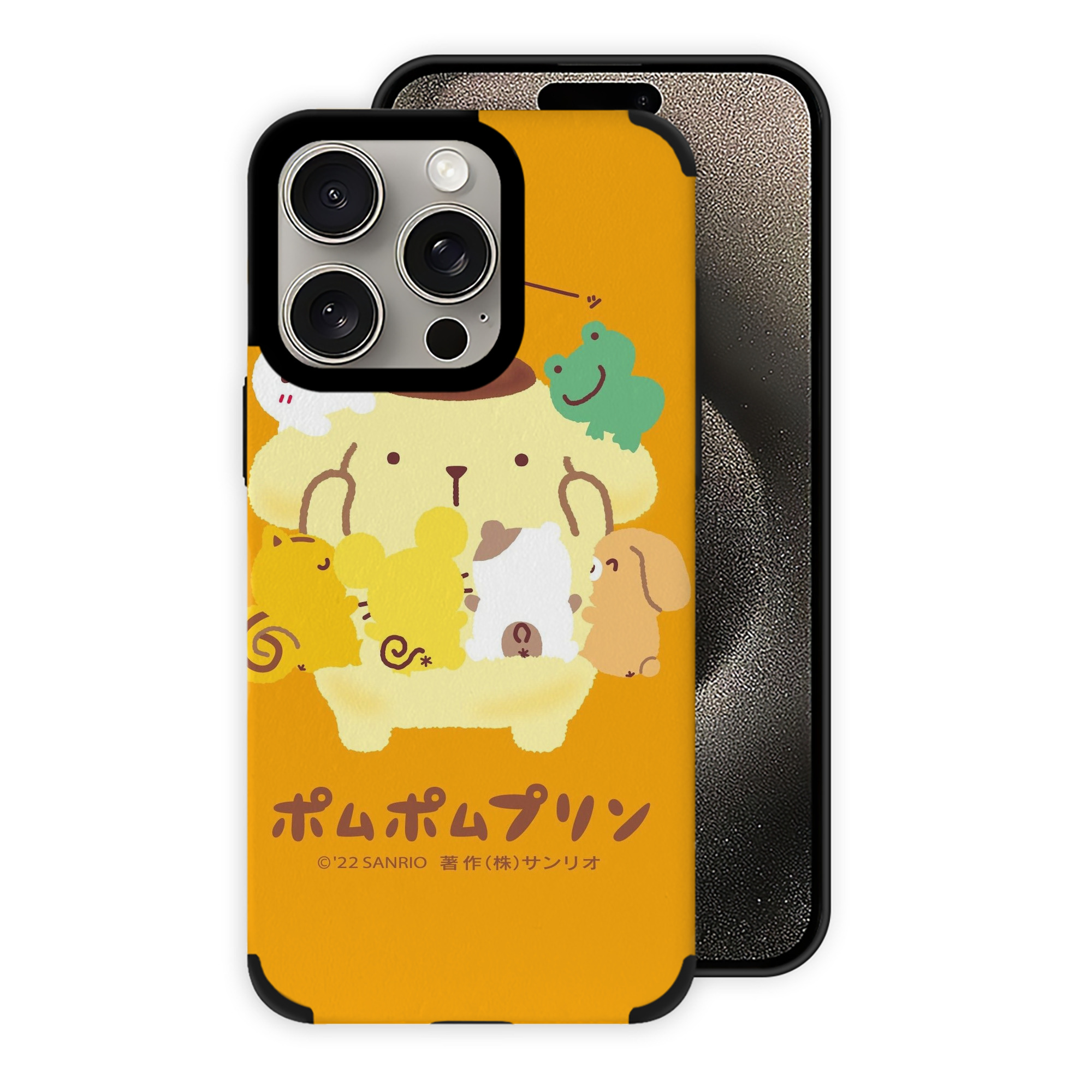 サンリオポムポムプリン - IPhone15ProMax対応 ・ PUレザースマホケース ・ 耐衝撃 ・ 黄変防止 ・ 360度全面保護 ・ 柔らか手触り ・ 3D立体ボタン