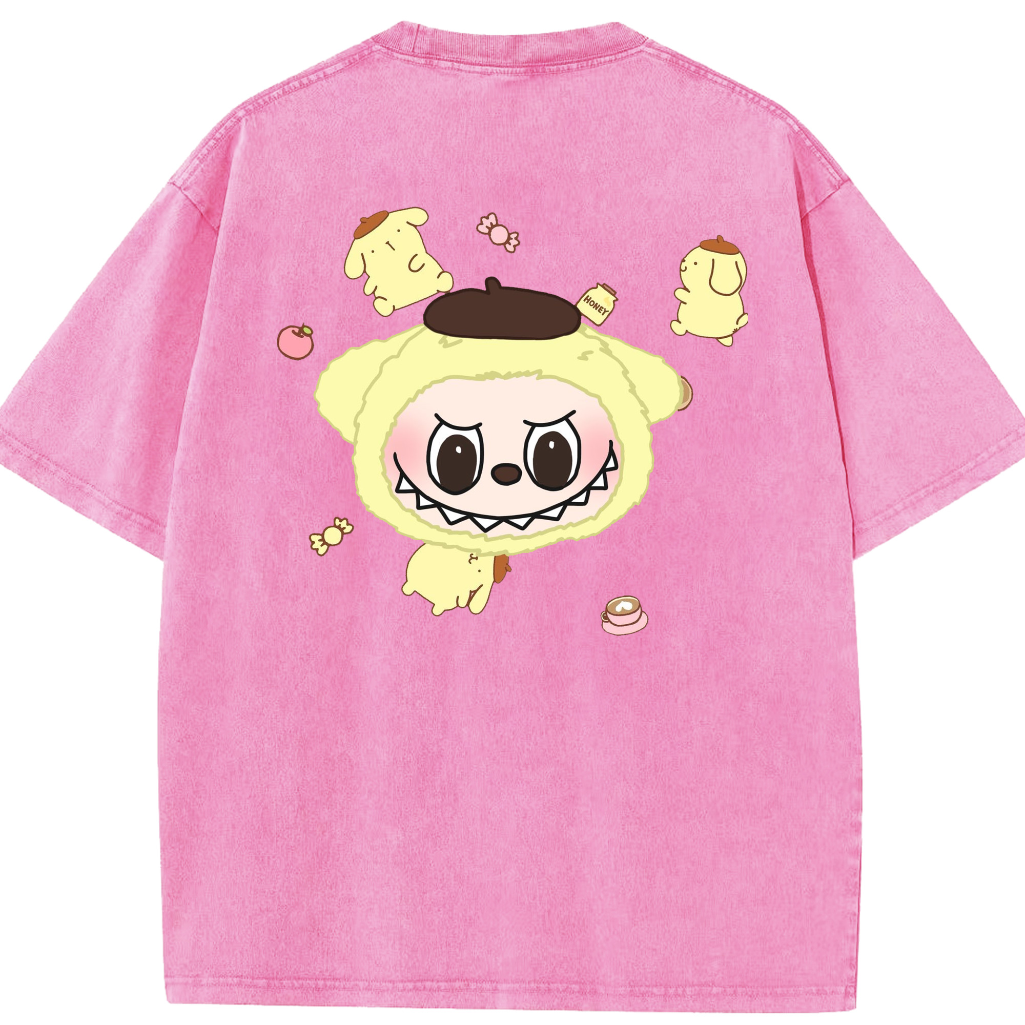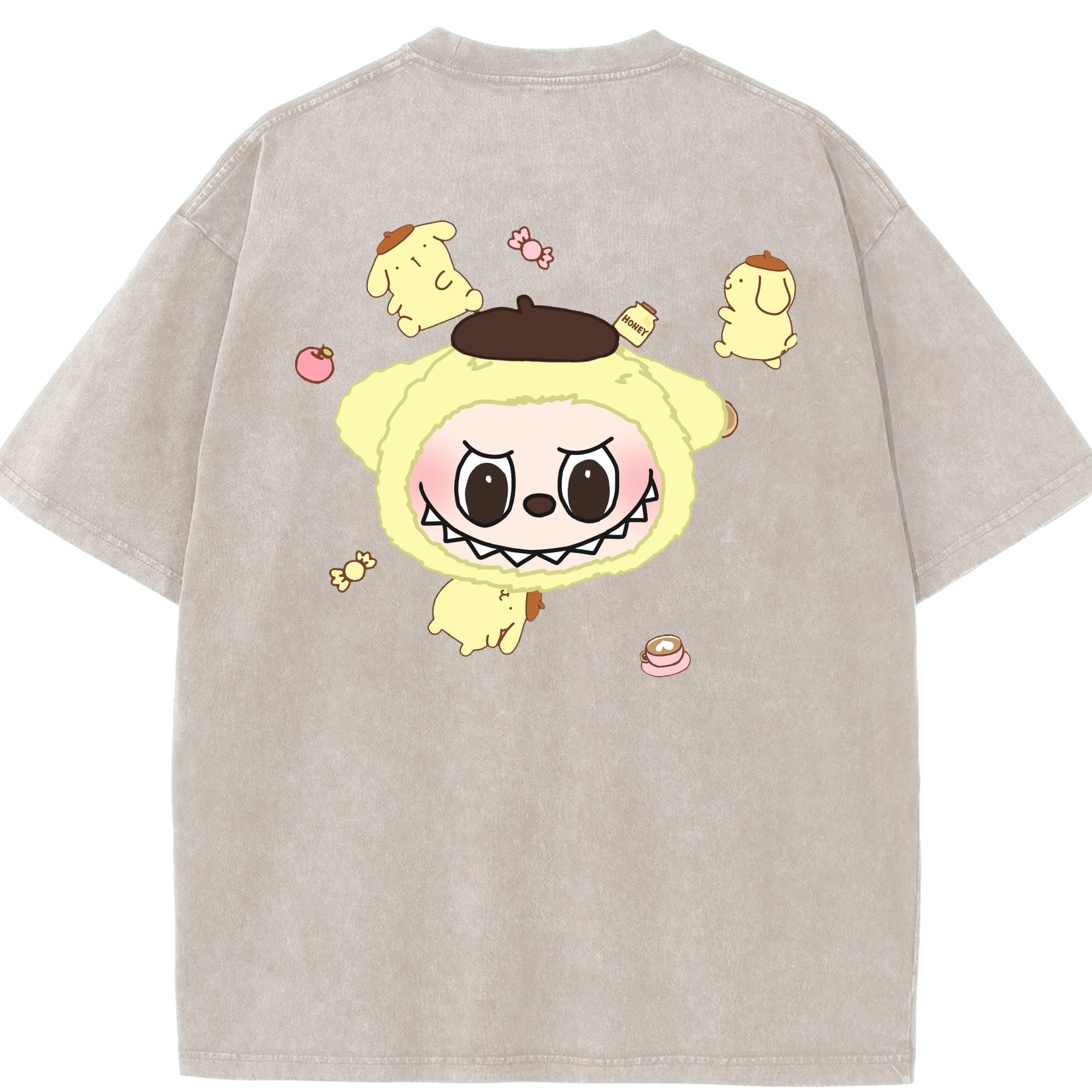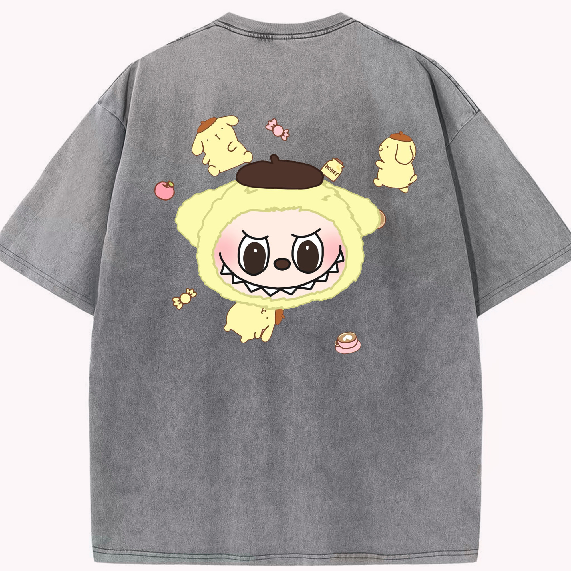 サンリオポムポムプリン&LABUBU ラブブ - 綿100% ヴィンテージ風 半袖Tシャツ ・ フロントプリント ・ 柔らか肌触り ・ 通気性 快適 ・ スポーツ カジュアル 外出用