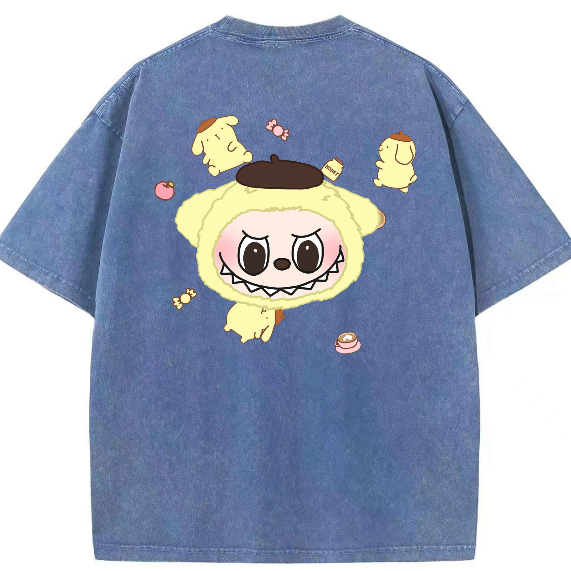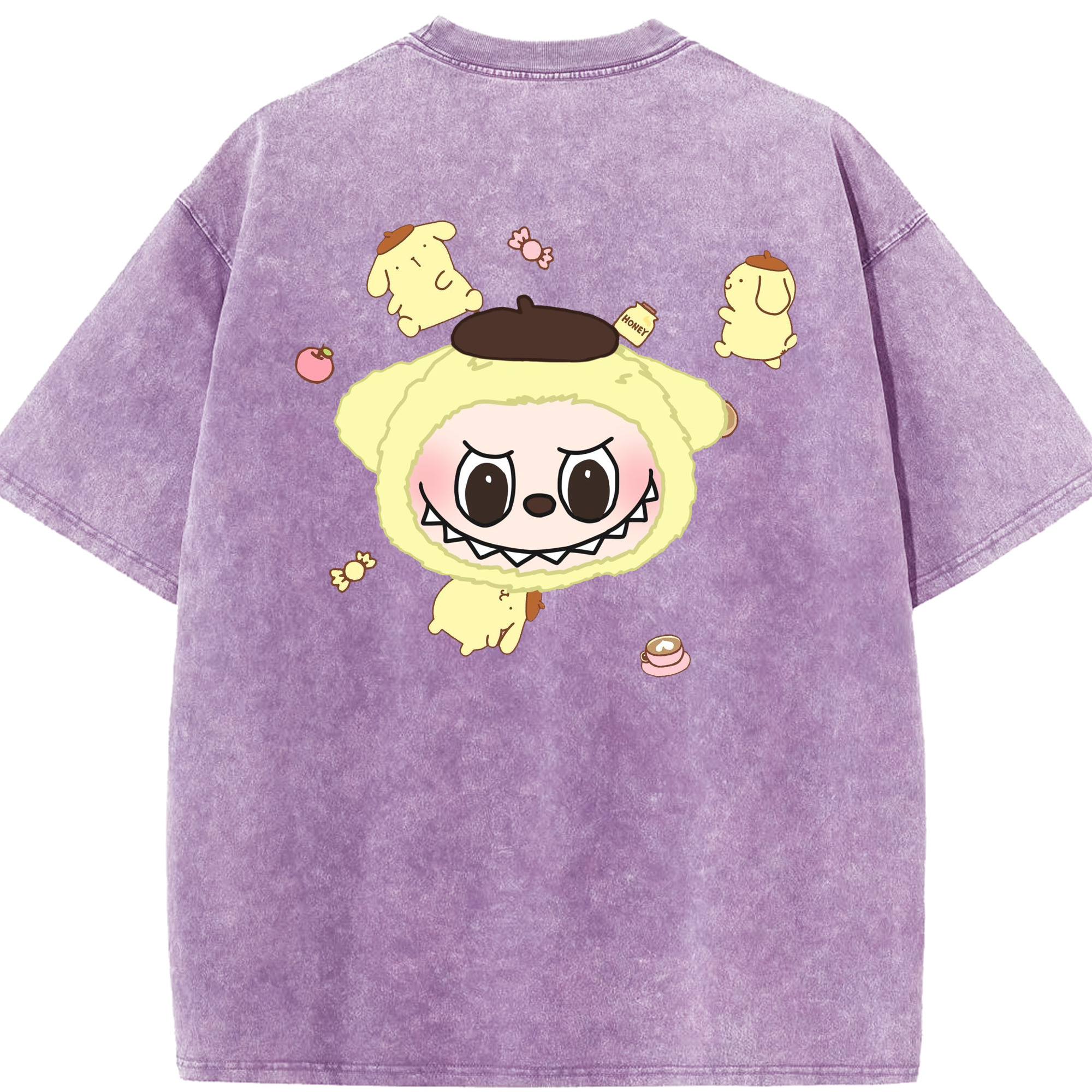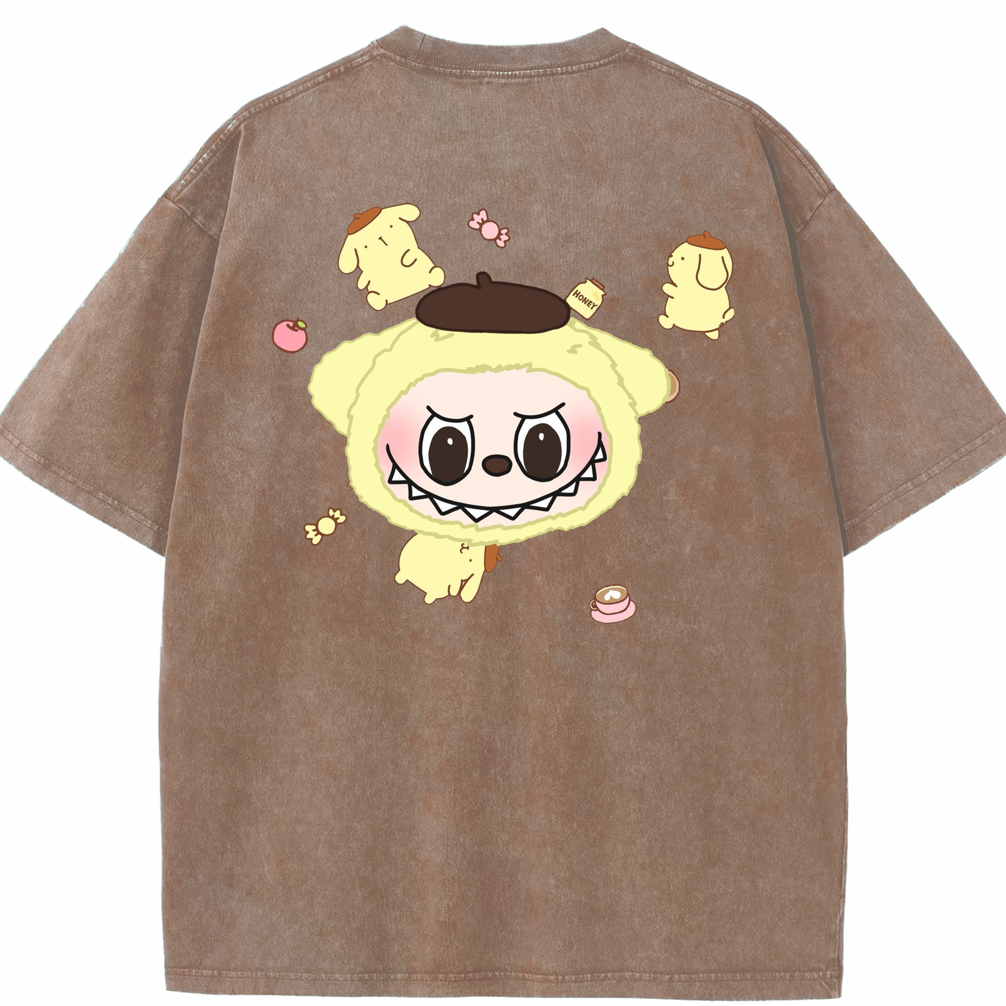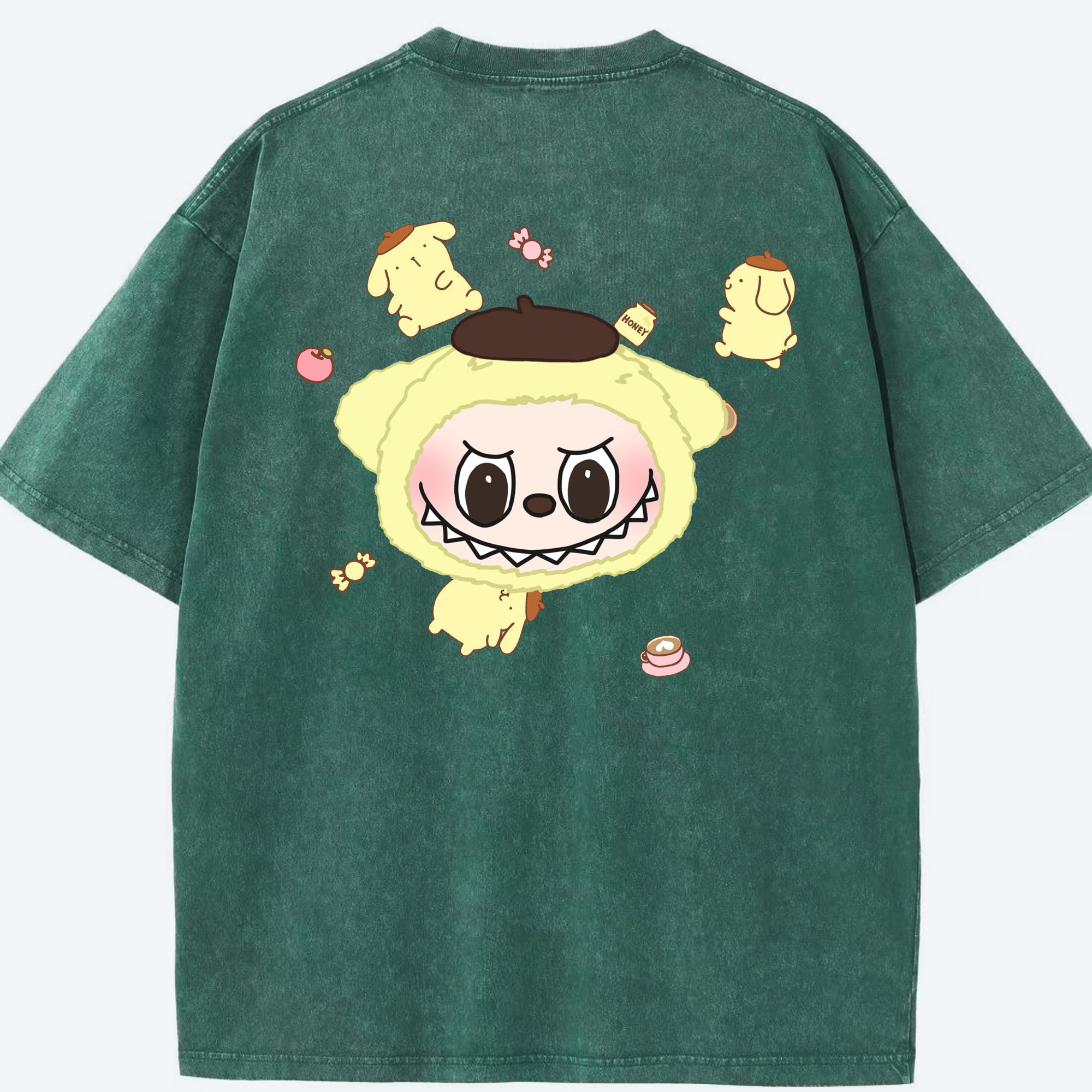 サンリオポムポムプリン&LABUBU ラブブ - 綿100% ヴィンテージ風 半袖Tシャツ ・ フロントプリント ・ 柔らか肌触り ・ 通気性 快適 ・ スポーツ カジュアル 外出用
