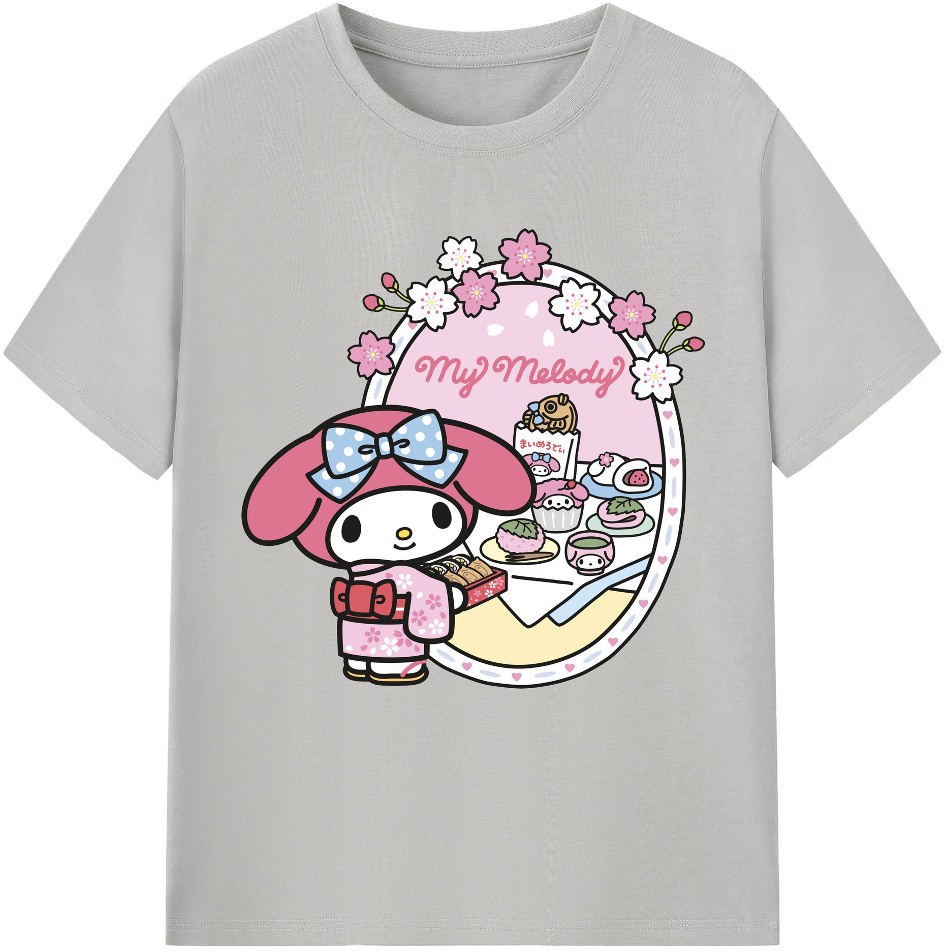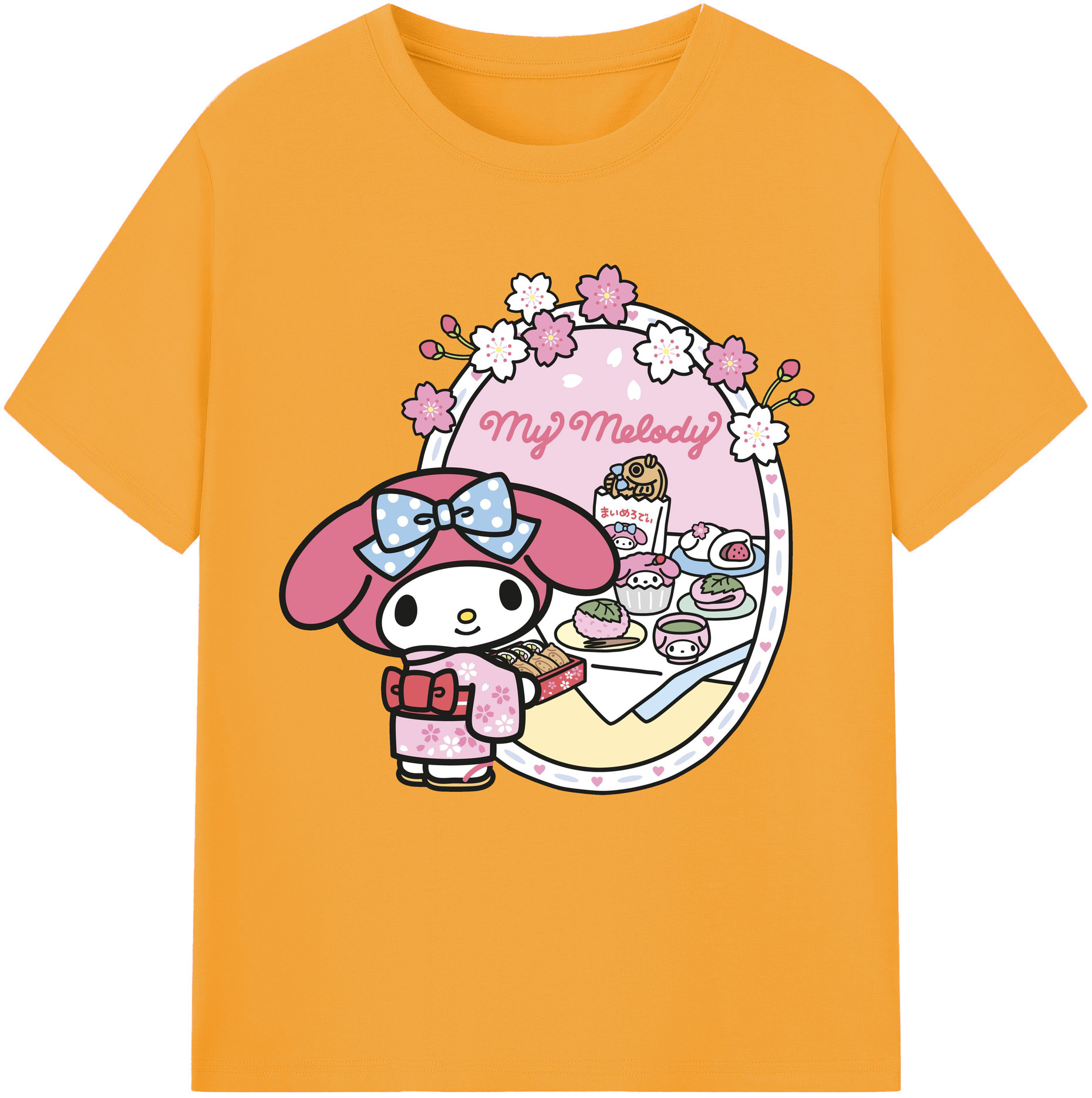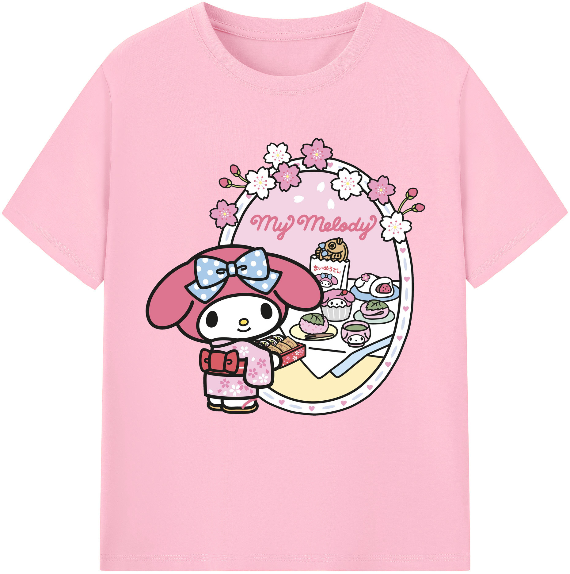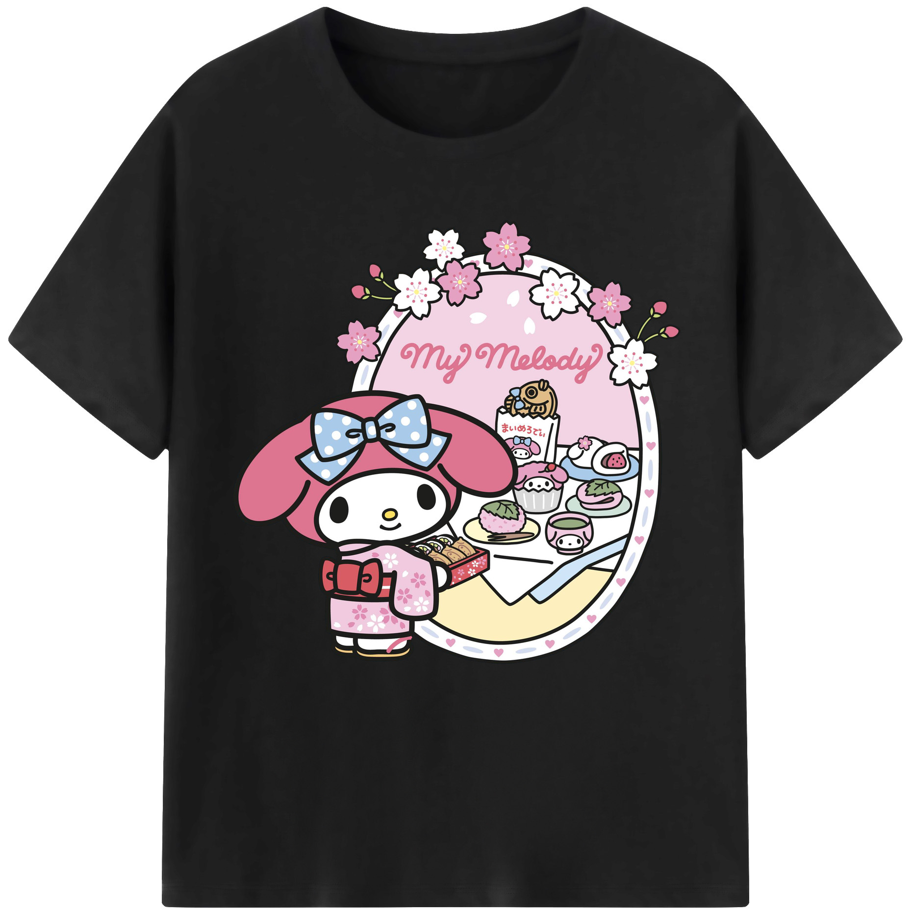 サンリオマイメロディ - 綿100% 半袖Tシャツ ・ バックプリント ・ 快適 通気性 ・ 日常使い 散歩 スポーツ用