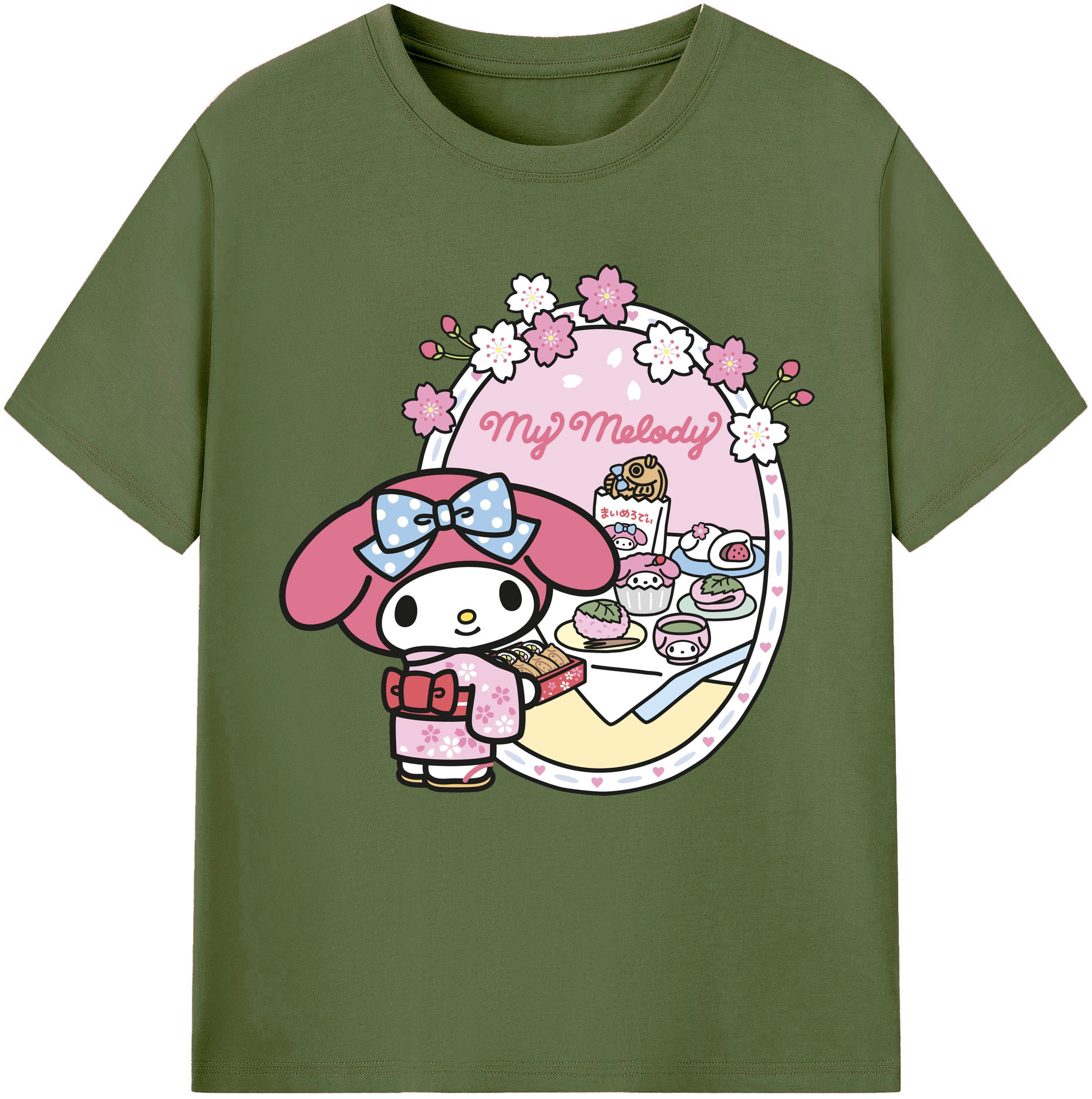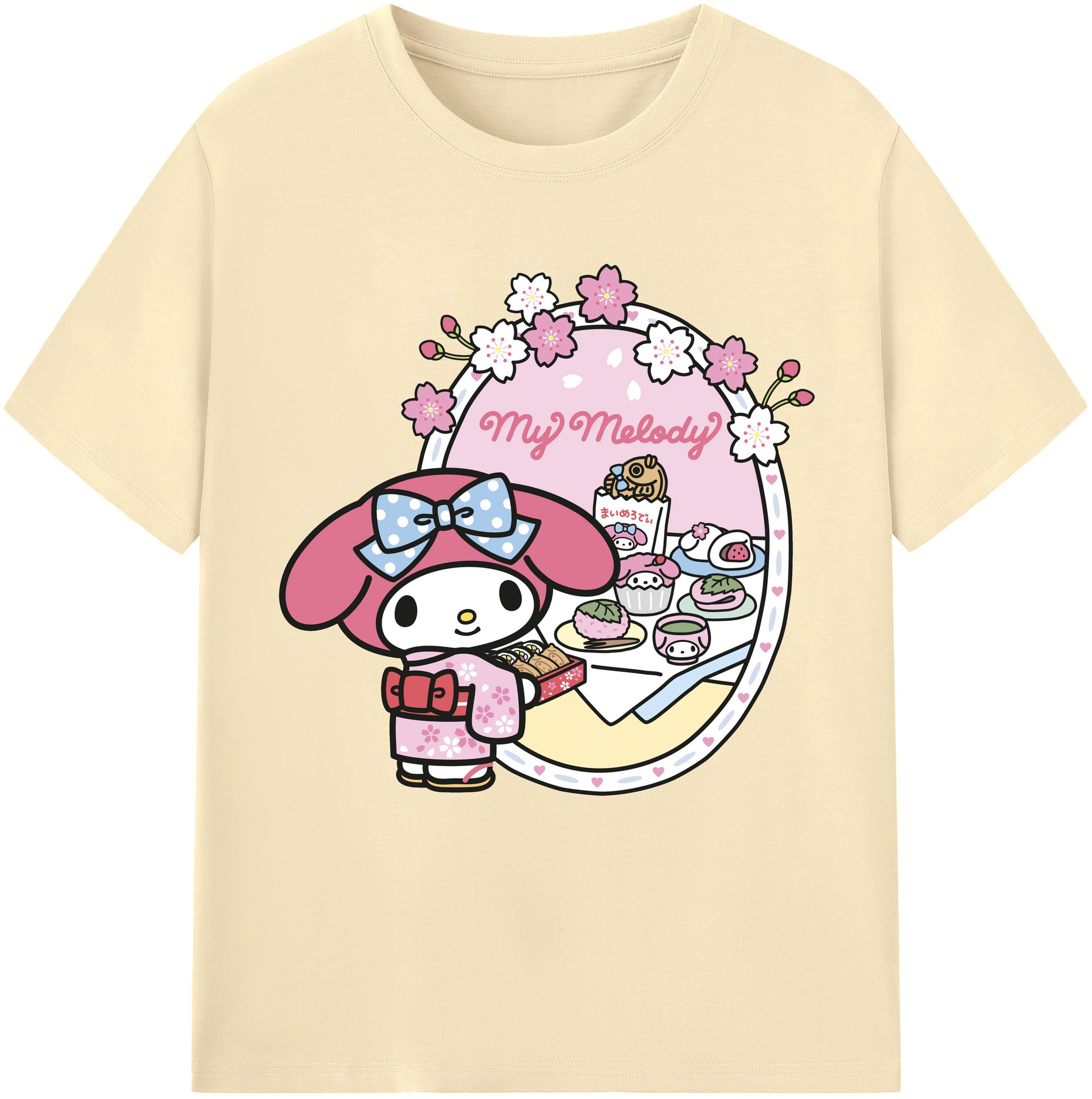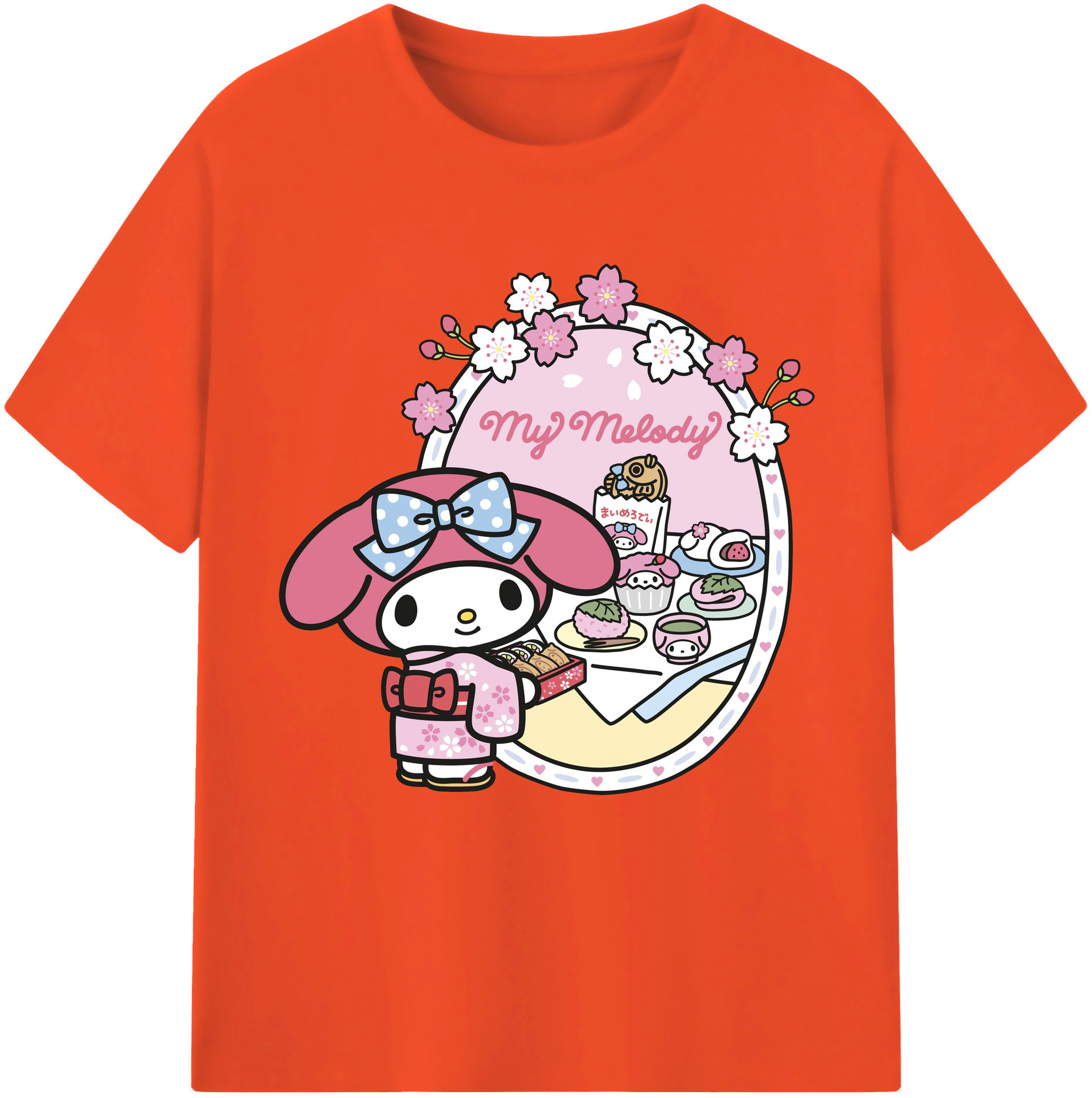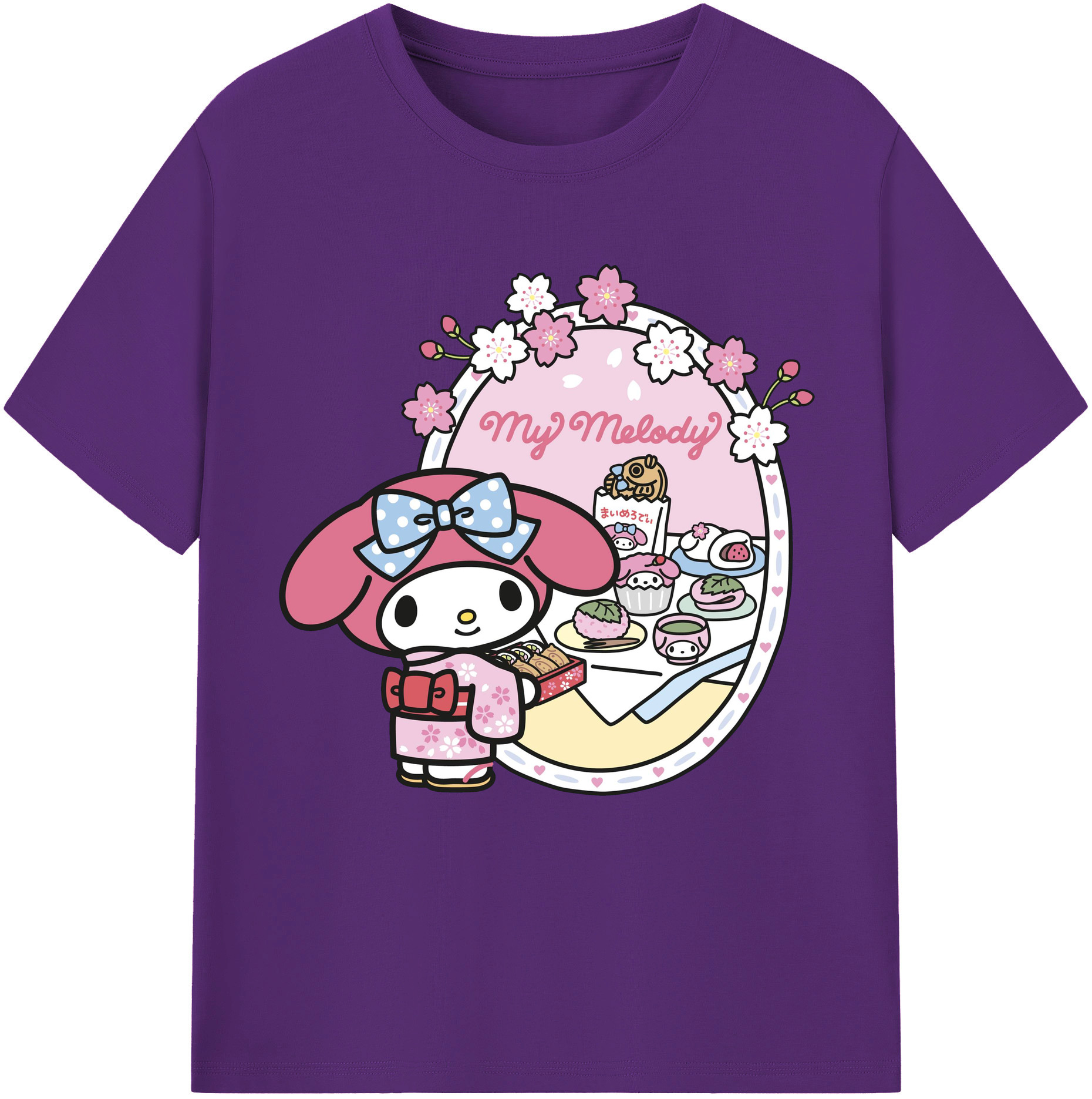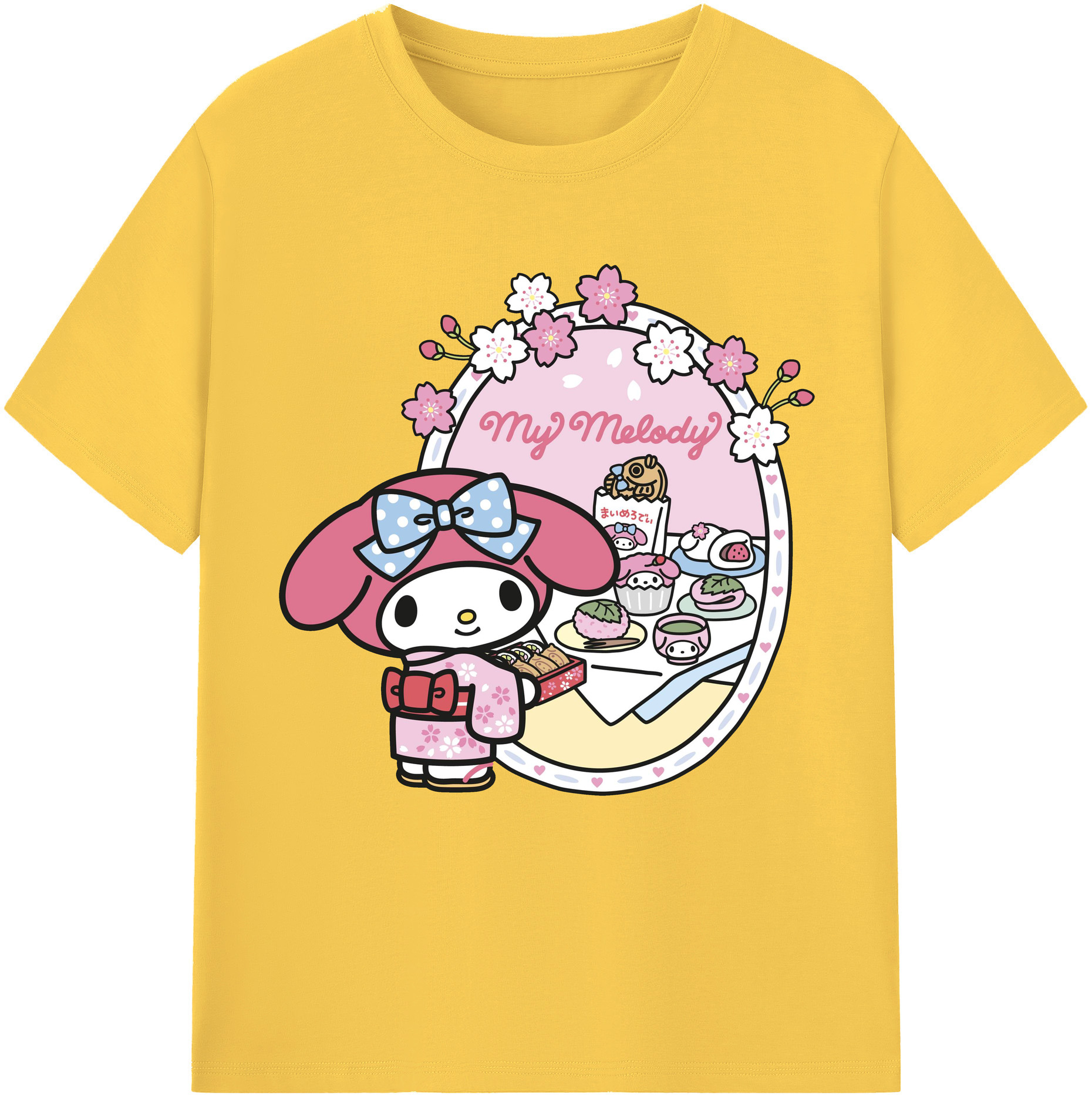 サンリオマイメロディ - 綿100% 半袖Tシャツ ・ バックプリント ・ 快適 通気性 ・ 日常使い 散歩 スポーツ用