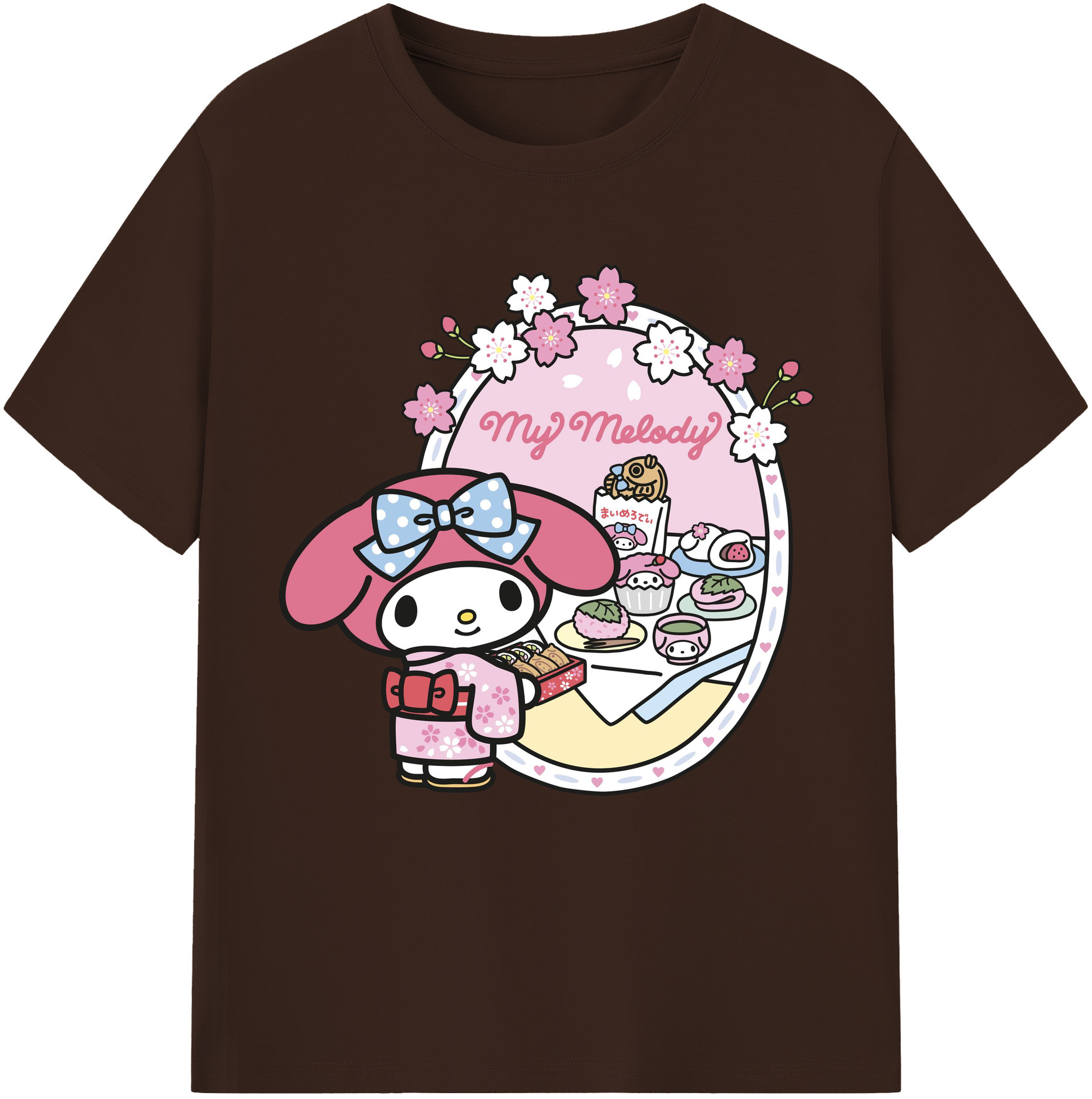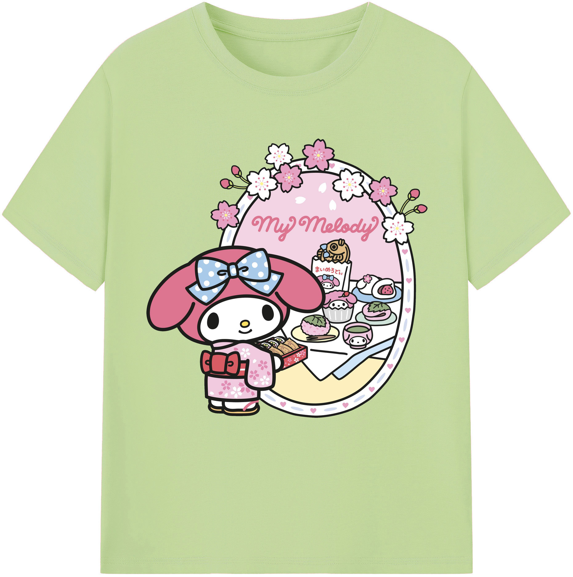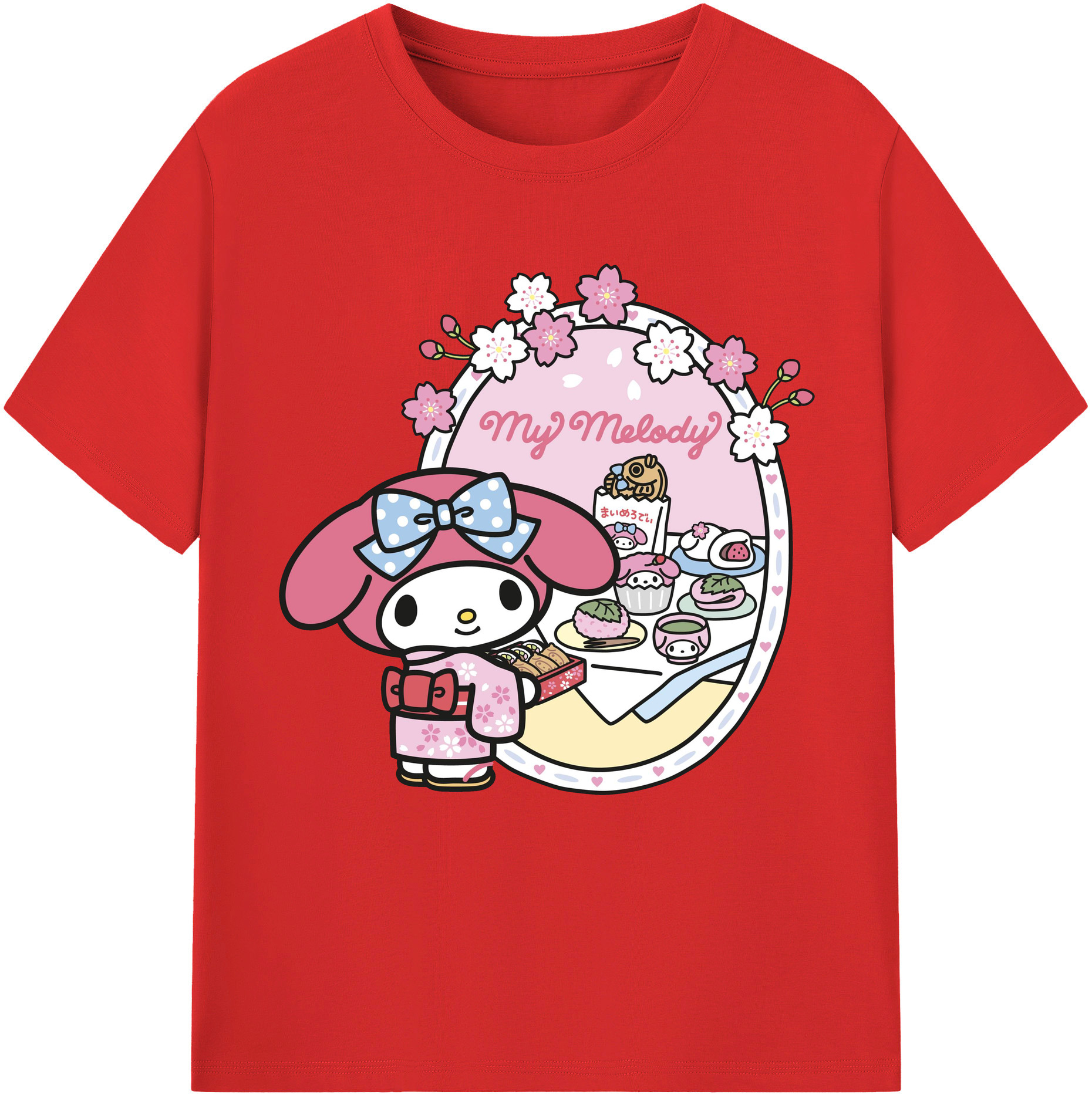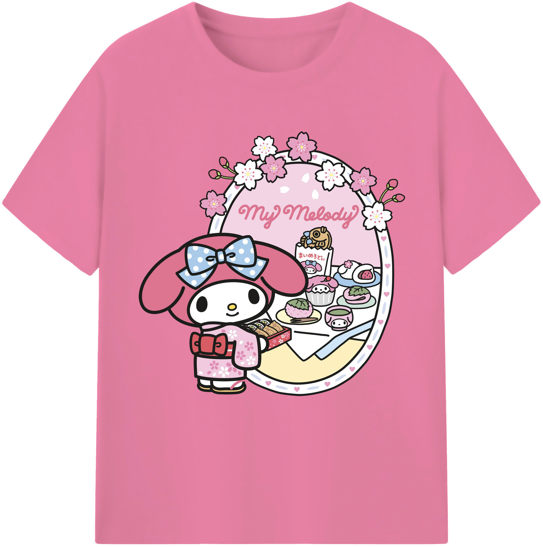 サンリオマイメロディ - 綿100% 半袖Tシャツ ・ フロントプリント ・ 快適 通気性 ・ 日常使い 散歩 スポーツ用