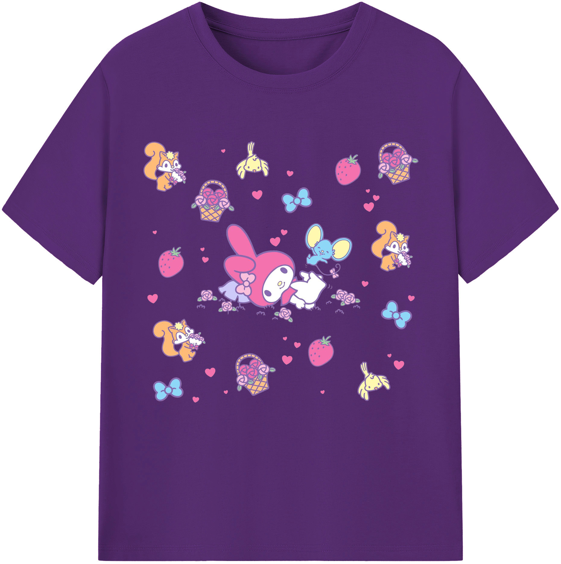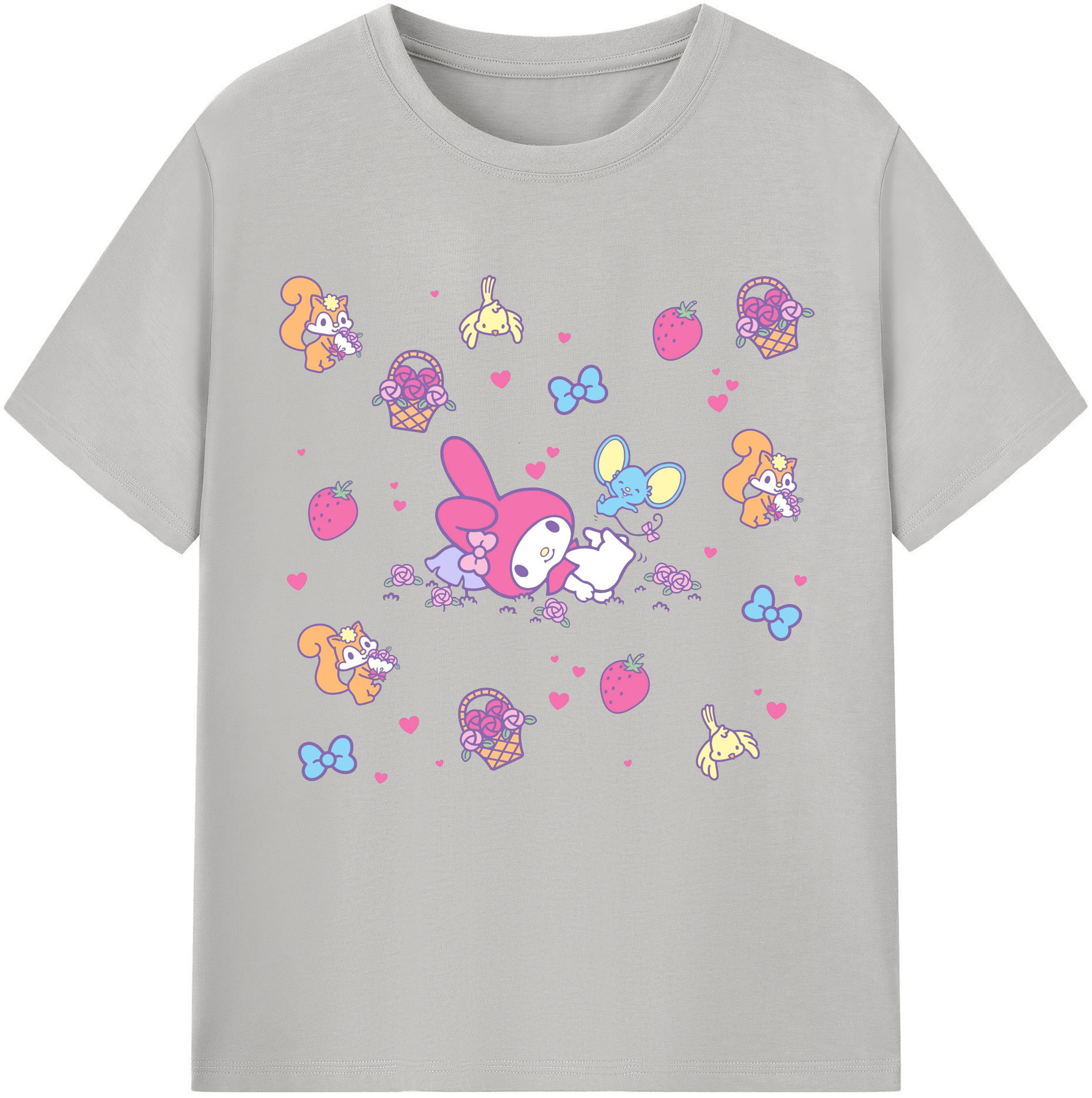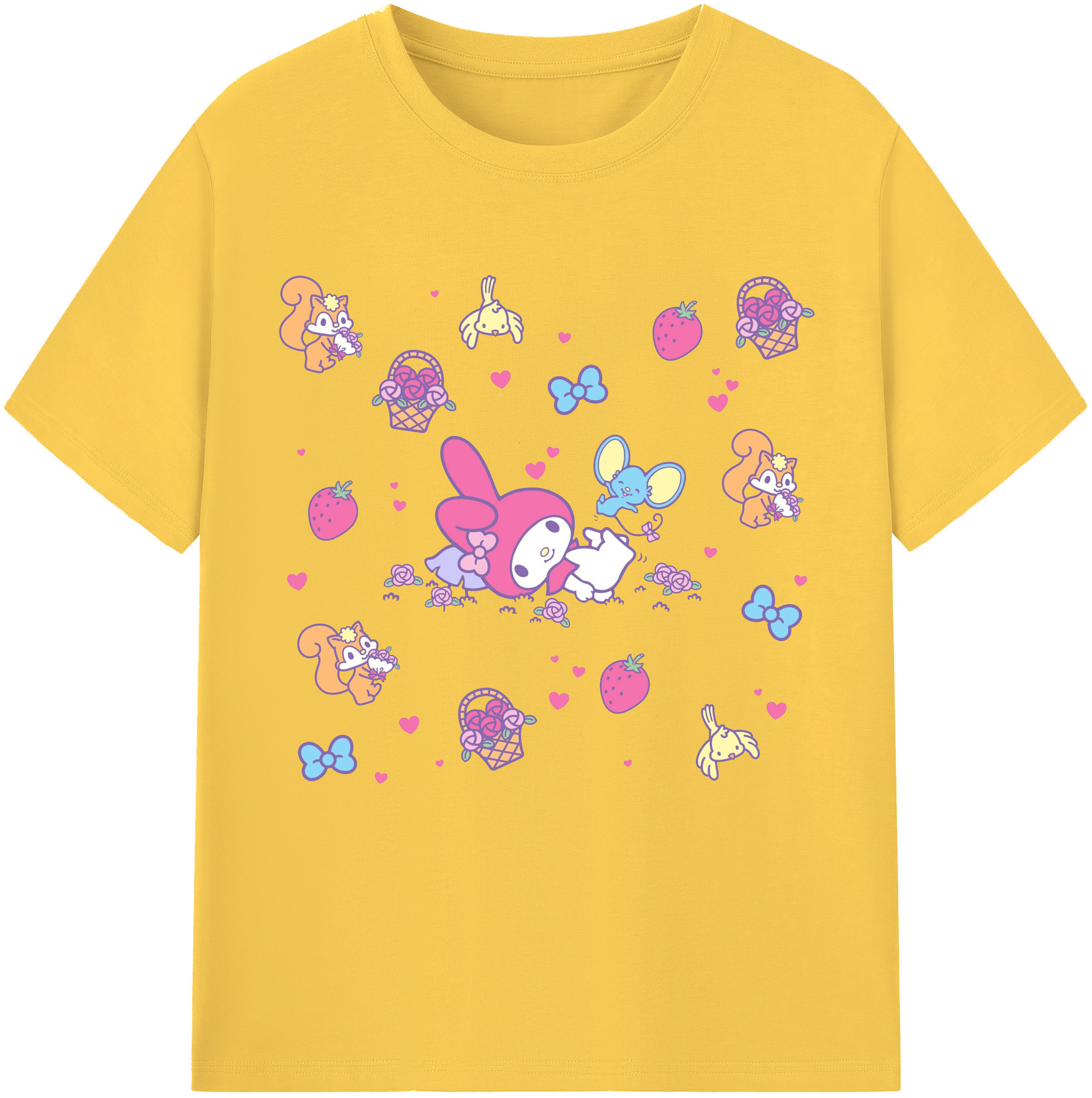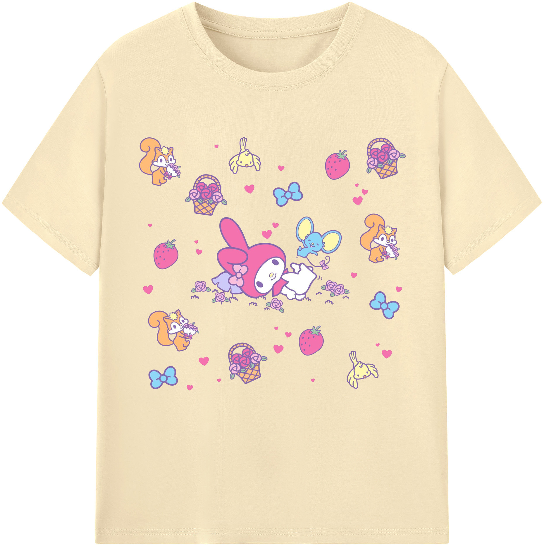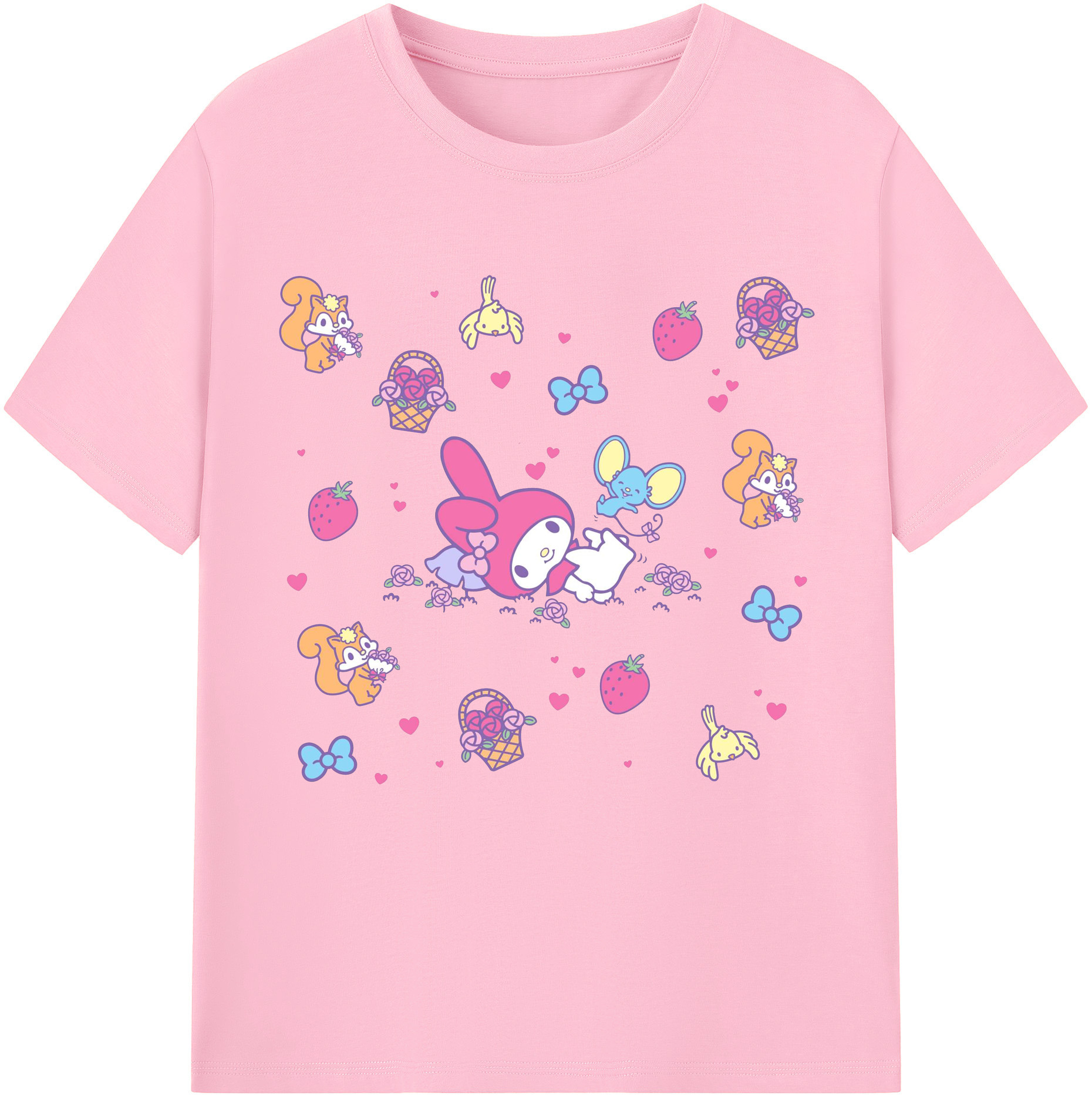 サンリオマイメロディ - 綿100% 半袖Tシャツ ・ バックプリント ・ 快適 通気性 ・ 日常使い 散歩 スポーツ用