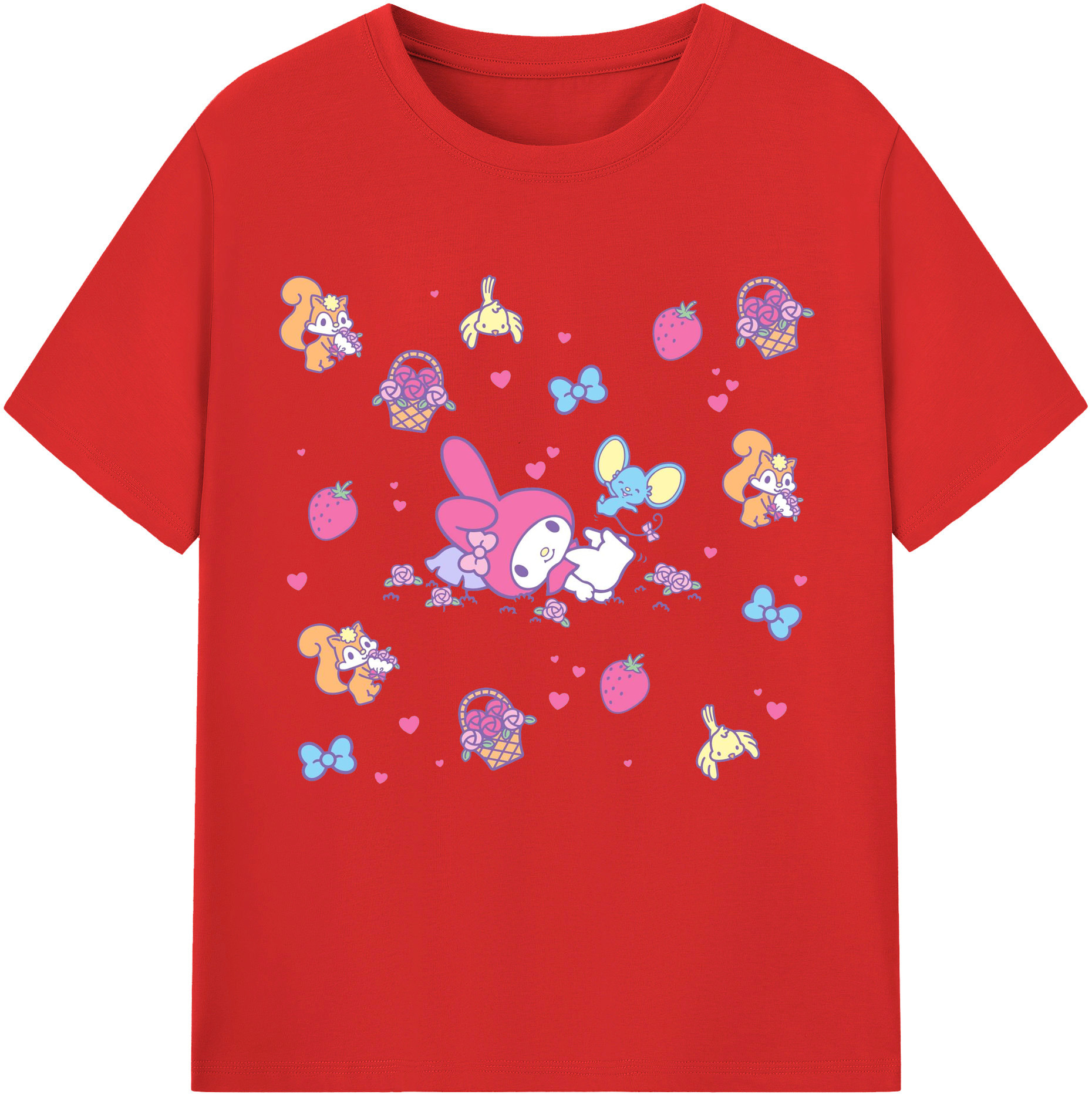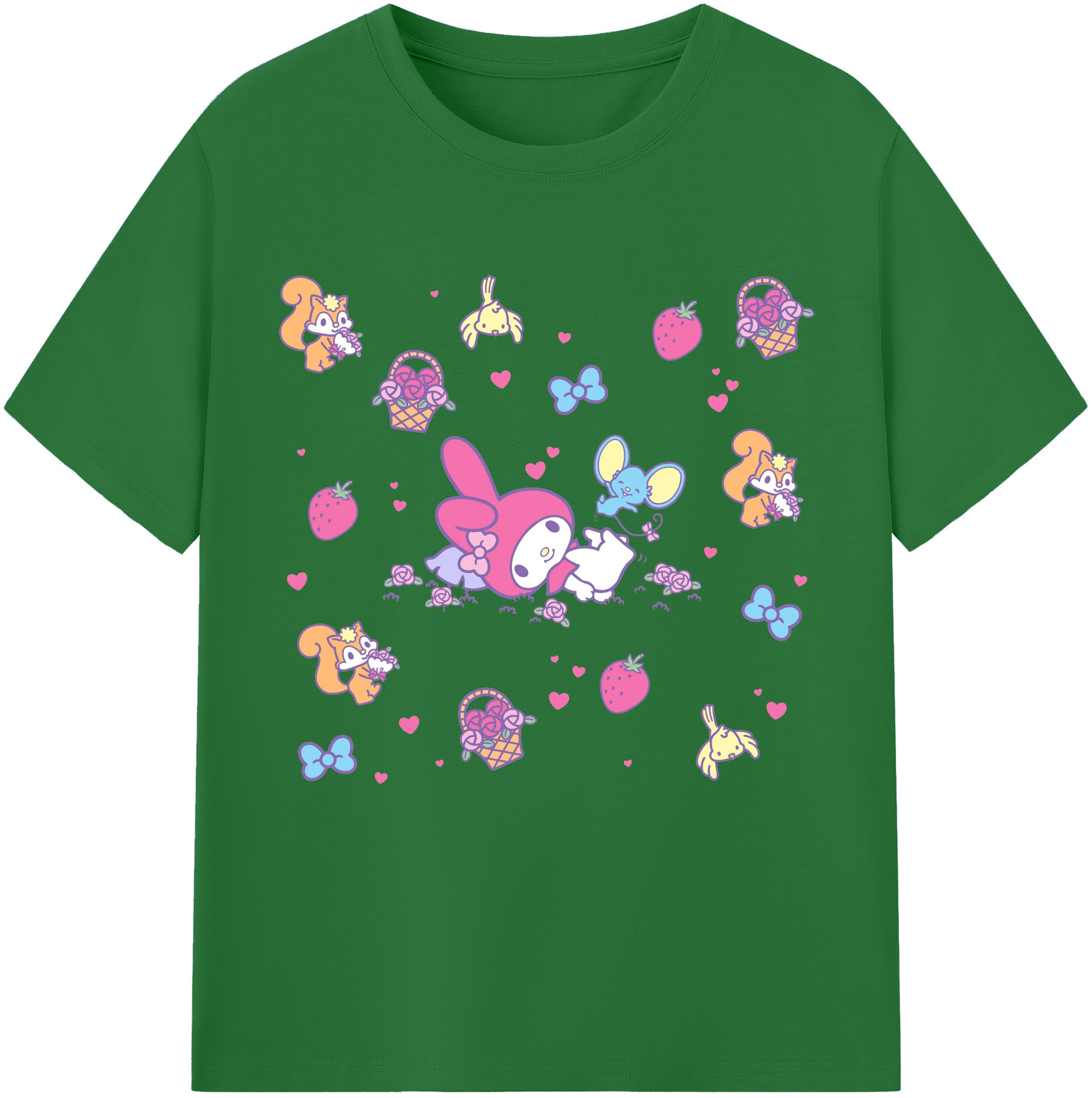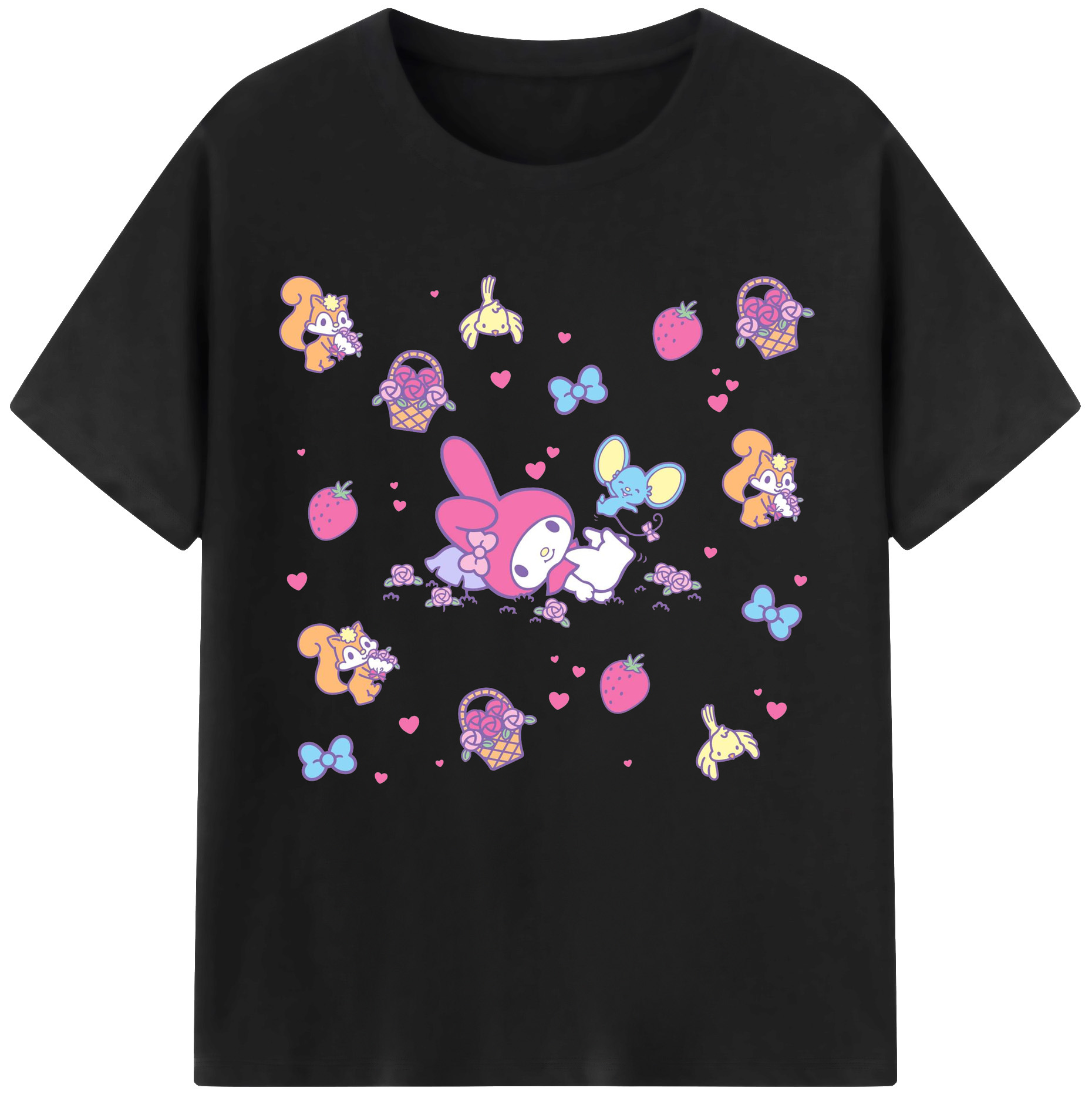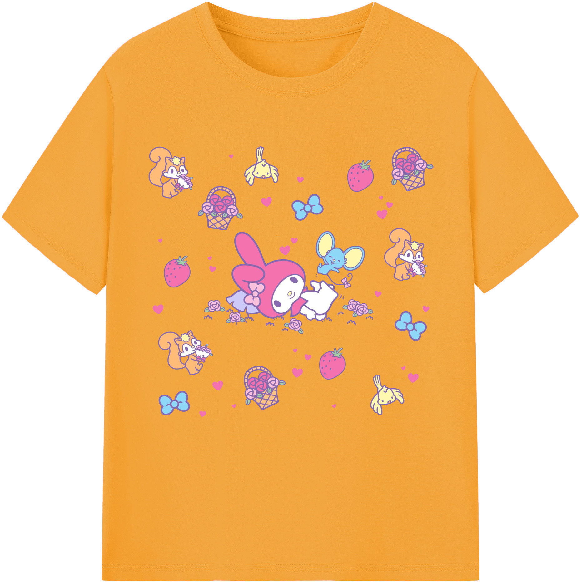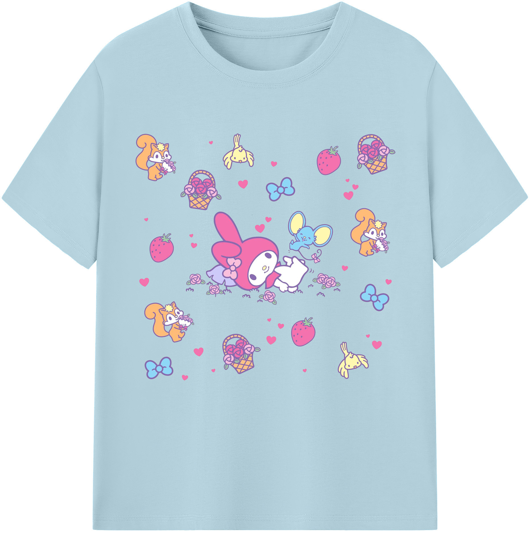 サンリオマイメロディ - 綿100% 半袖Tシャツ ・ バックプリント ・ 快適 通気性 ・ 日常使い 散歩 スポーツ用