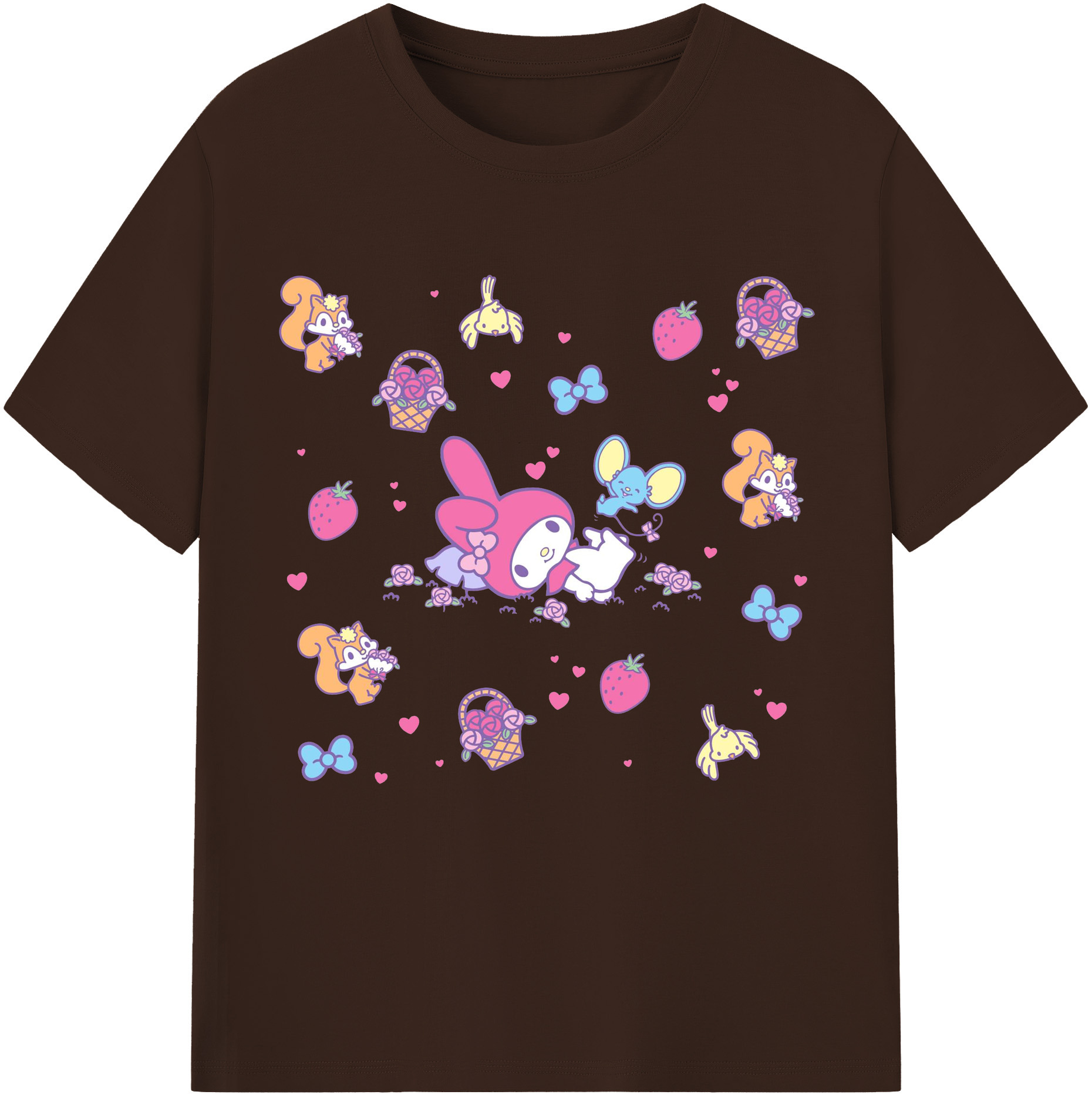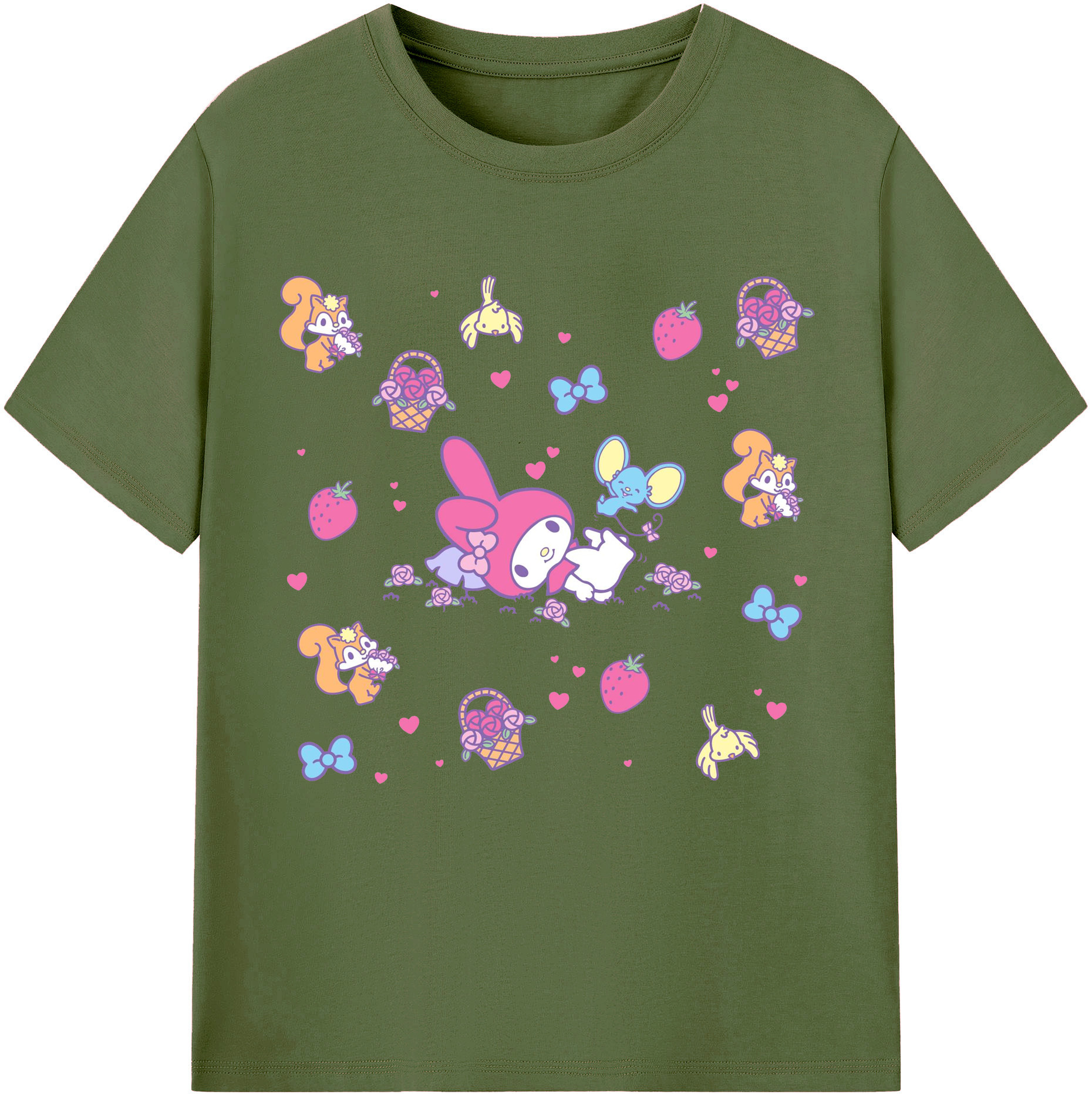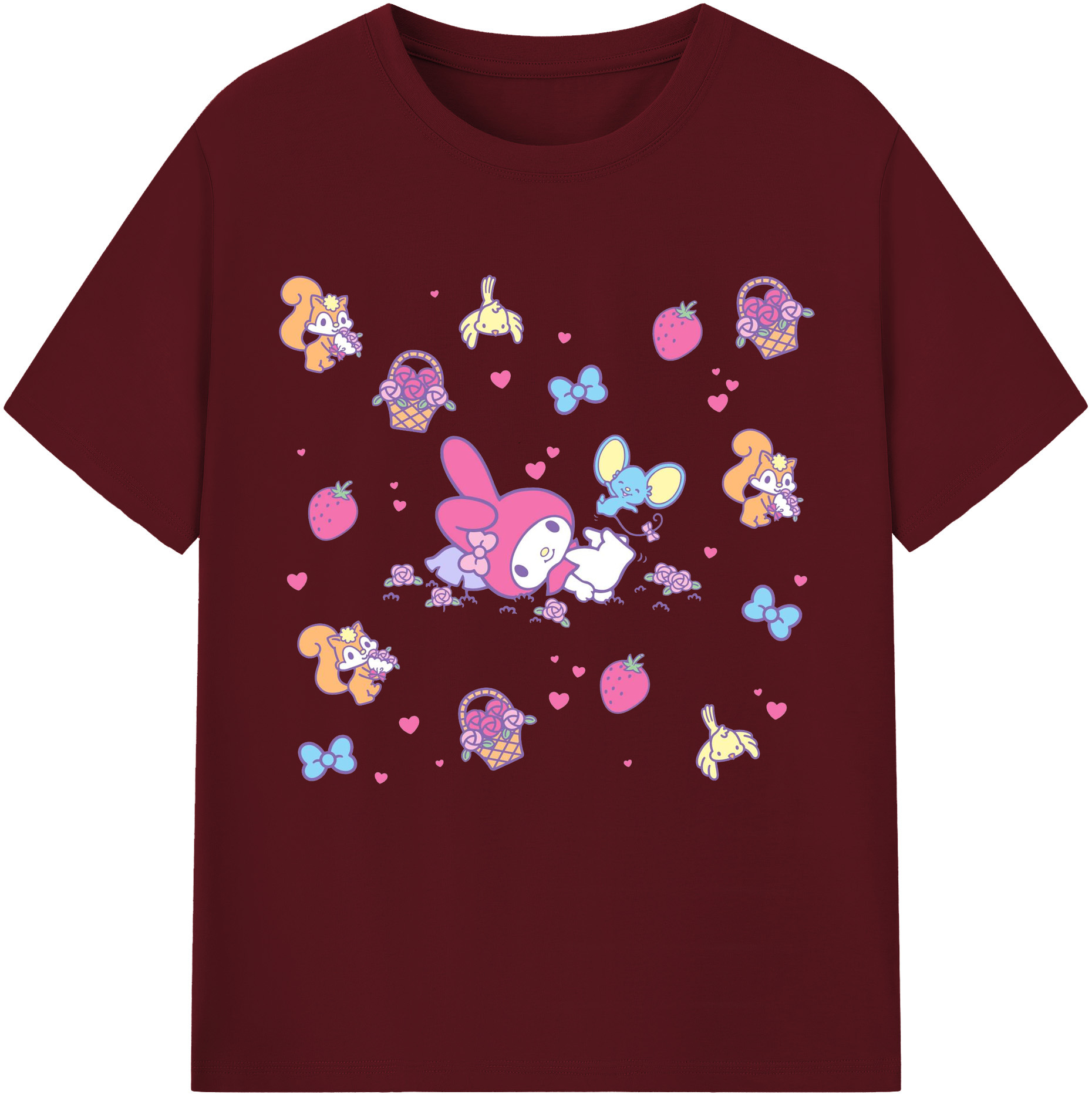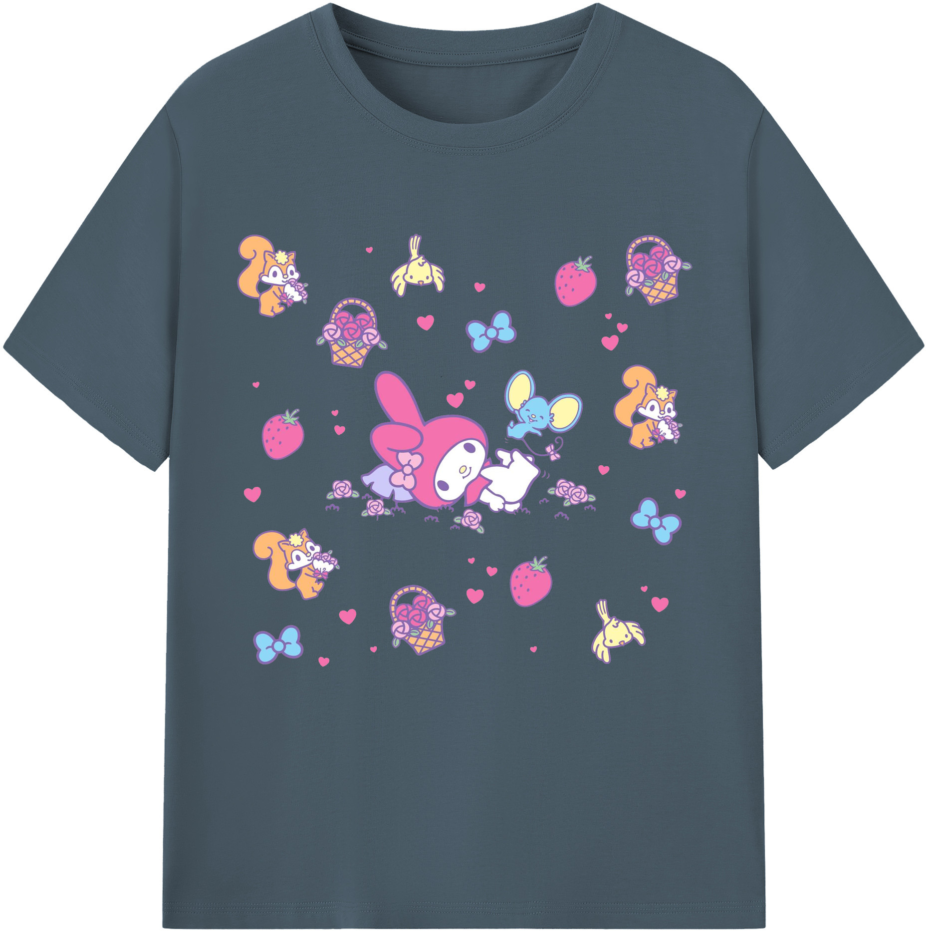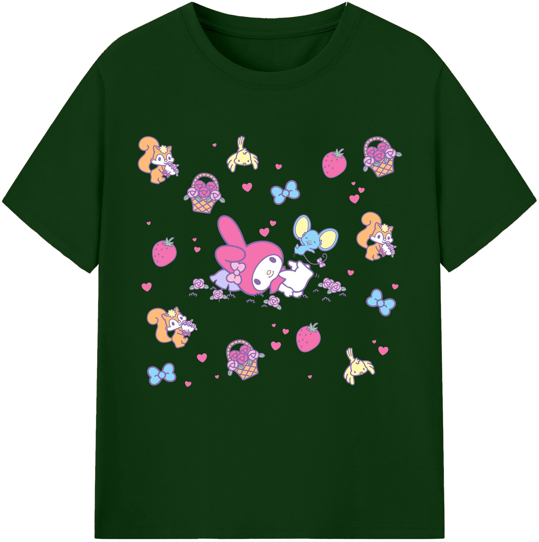 サンリオマイメロディ - 綿100% 半袖Tシャツ ・ バックプリント ・ 快適 通気性 ・ 日常使い 散歩 スポーツ用