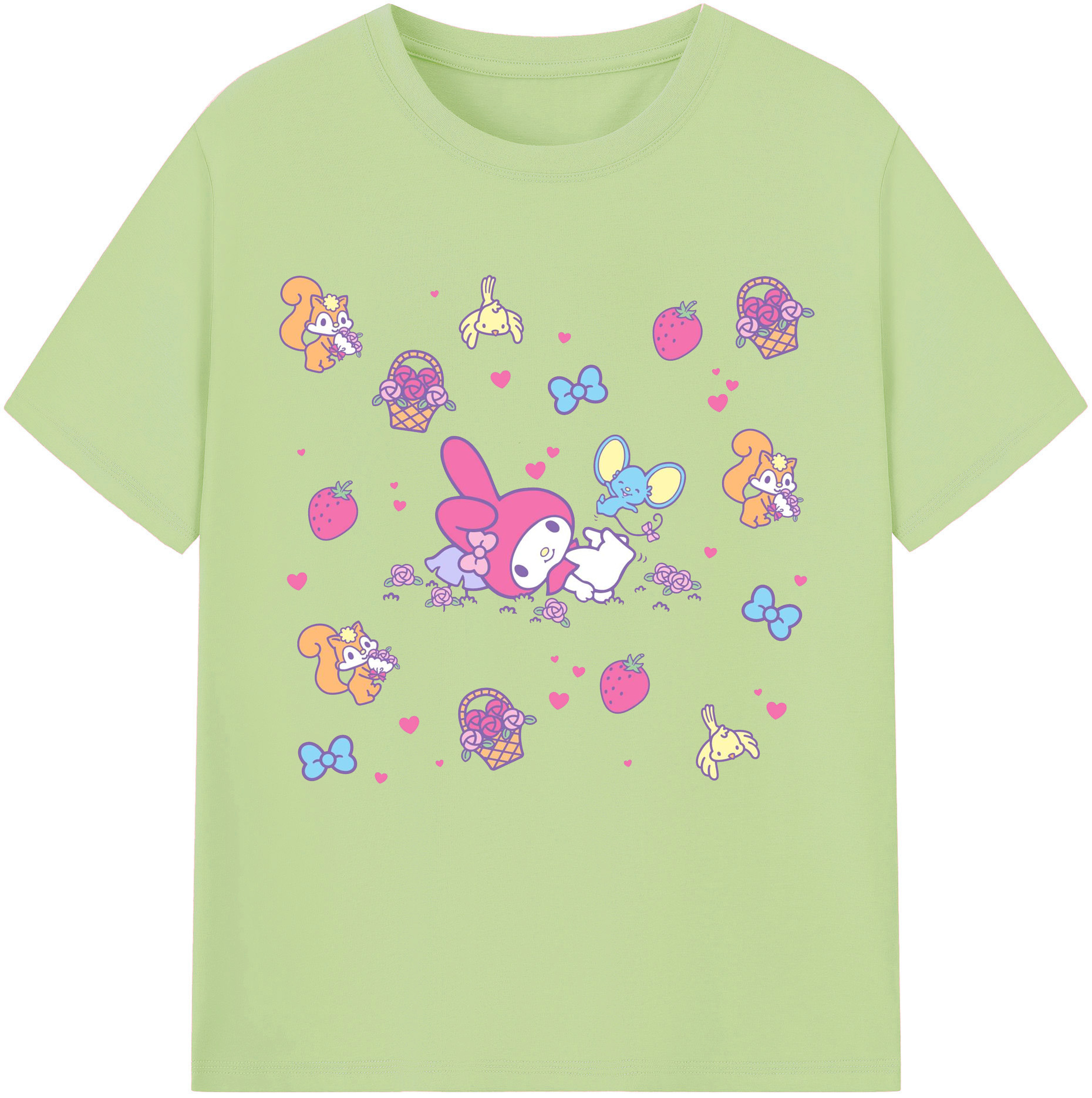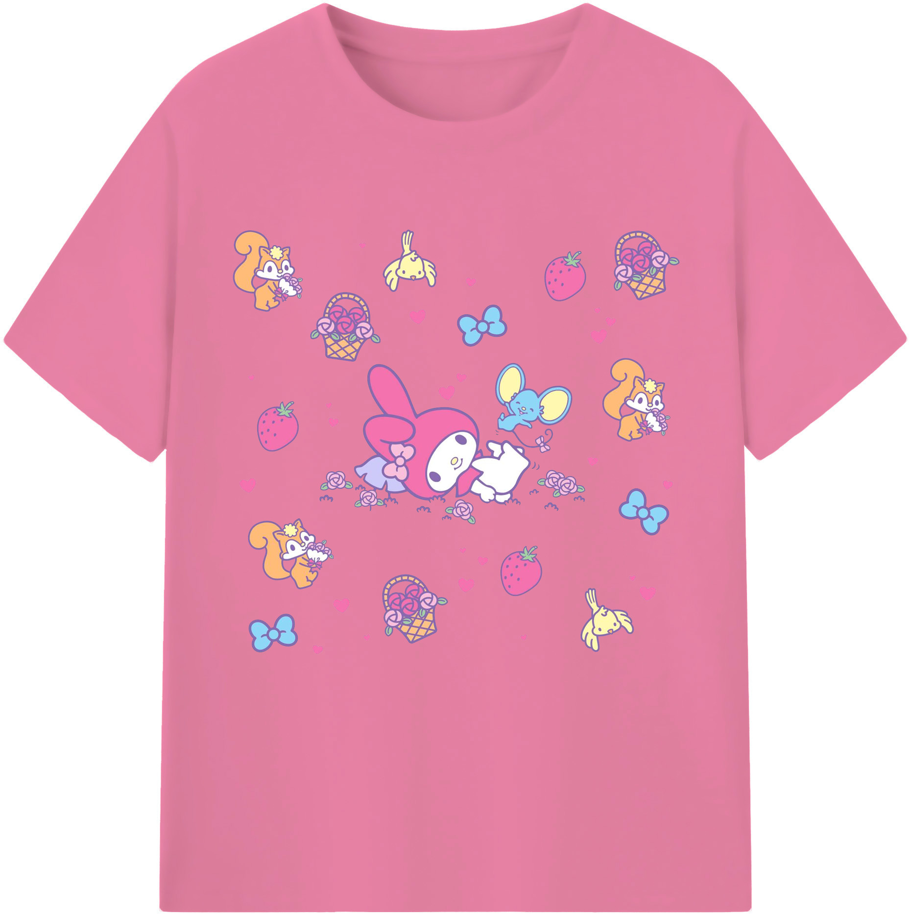 サンリオマイメロディ - 綿100% 半袖Tシャツ ・ フロントプリント ・ 快適 通気性 ・ 日常使い 散歩 スポーツ用