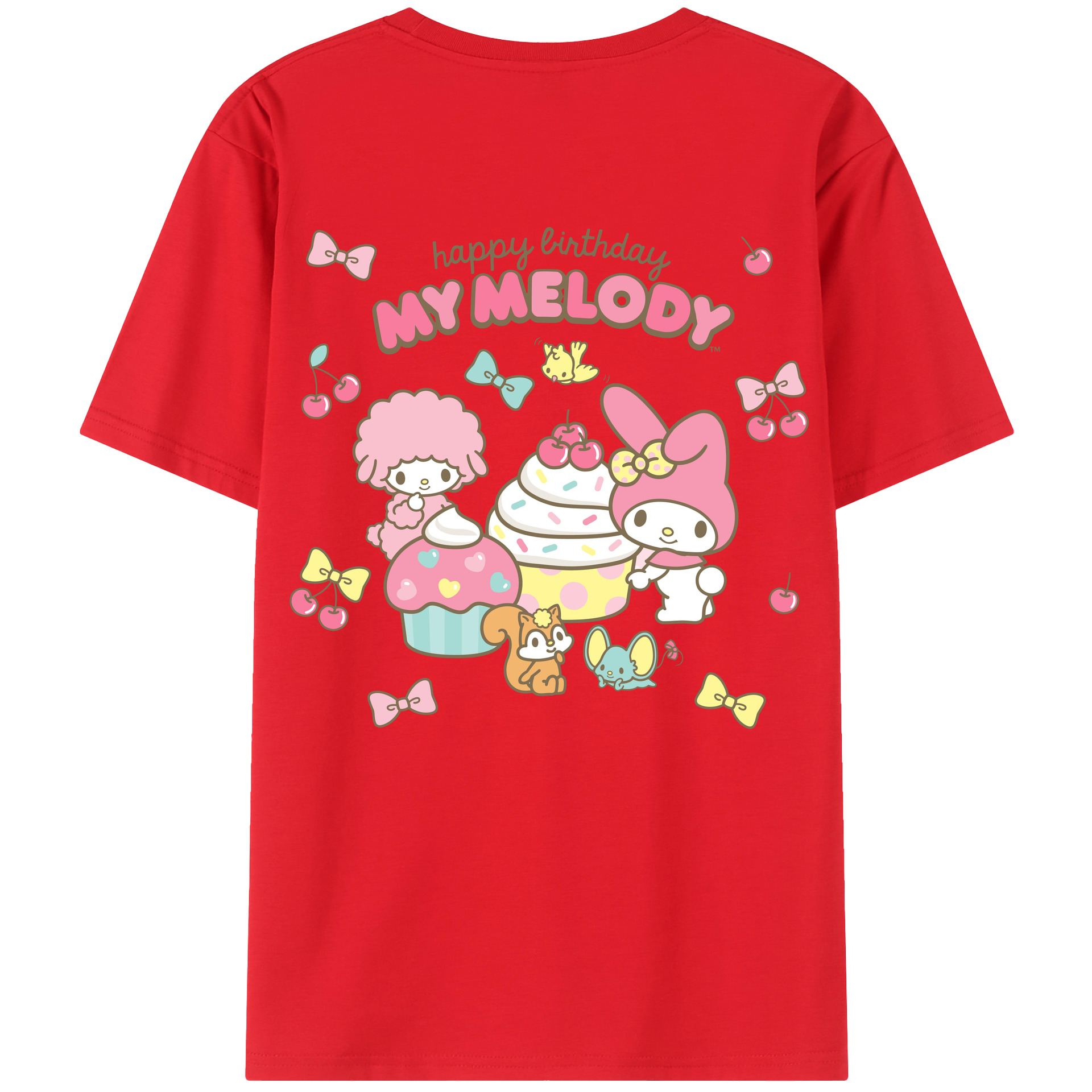 スイートなマイメロディ - 綿100% 半袖Tシャツ ・ バックプリント ・ 快適 通気性 ・ 日常使い 散歩 スポーツ用