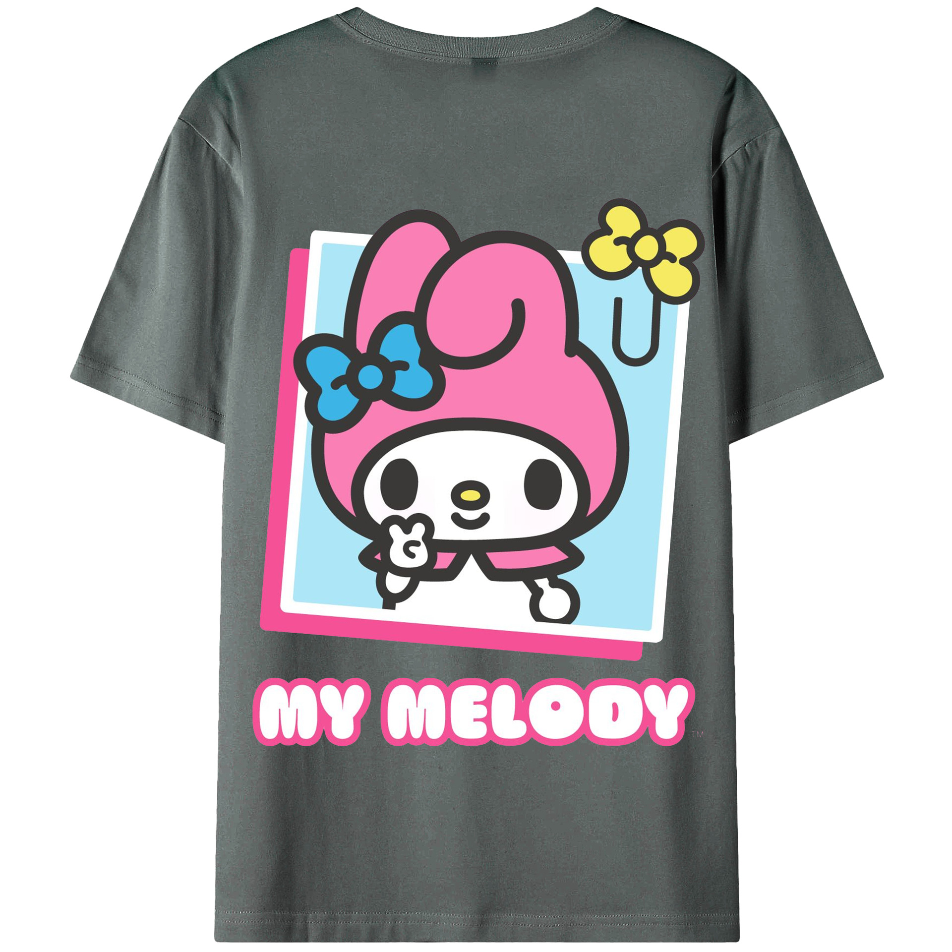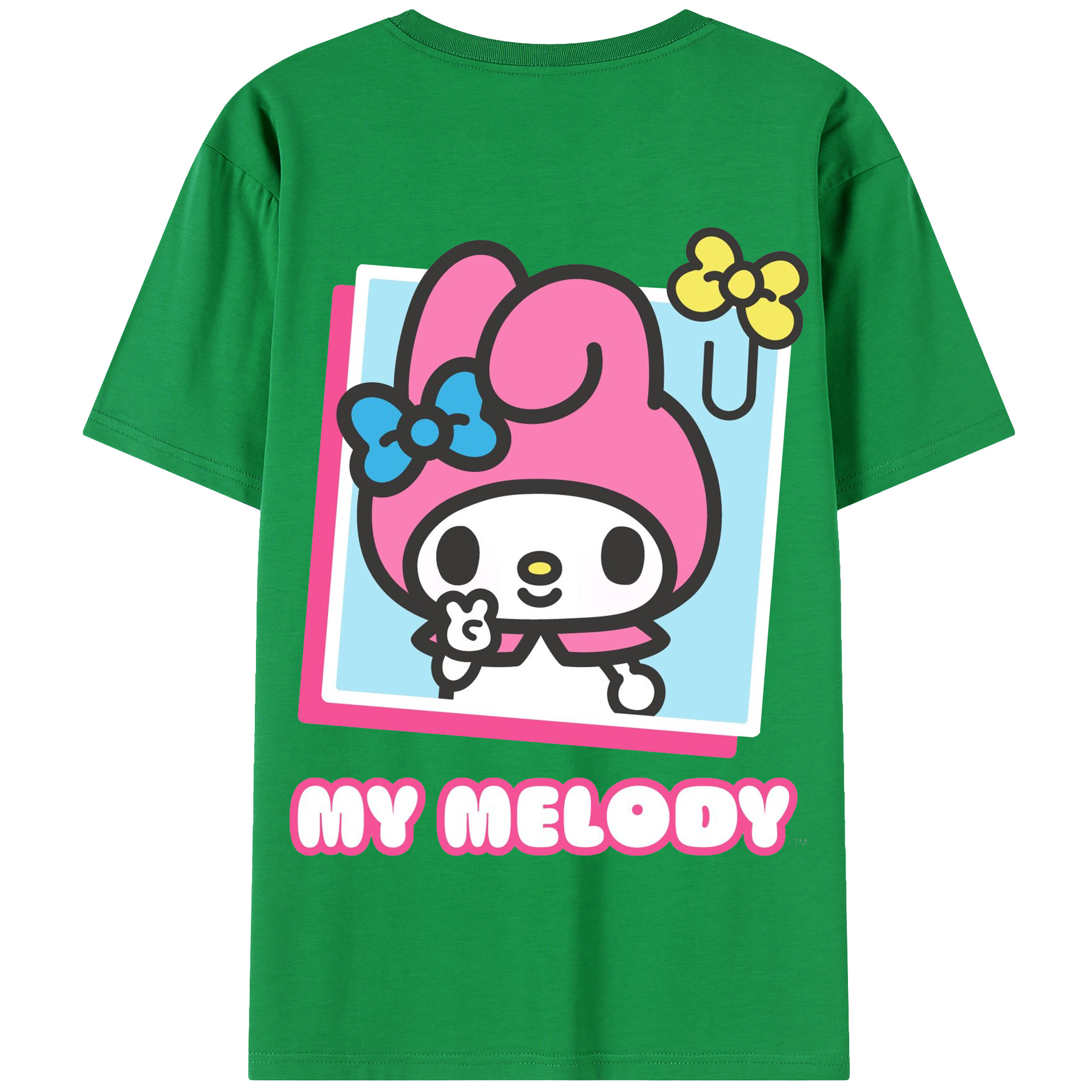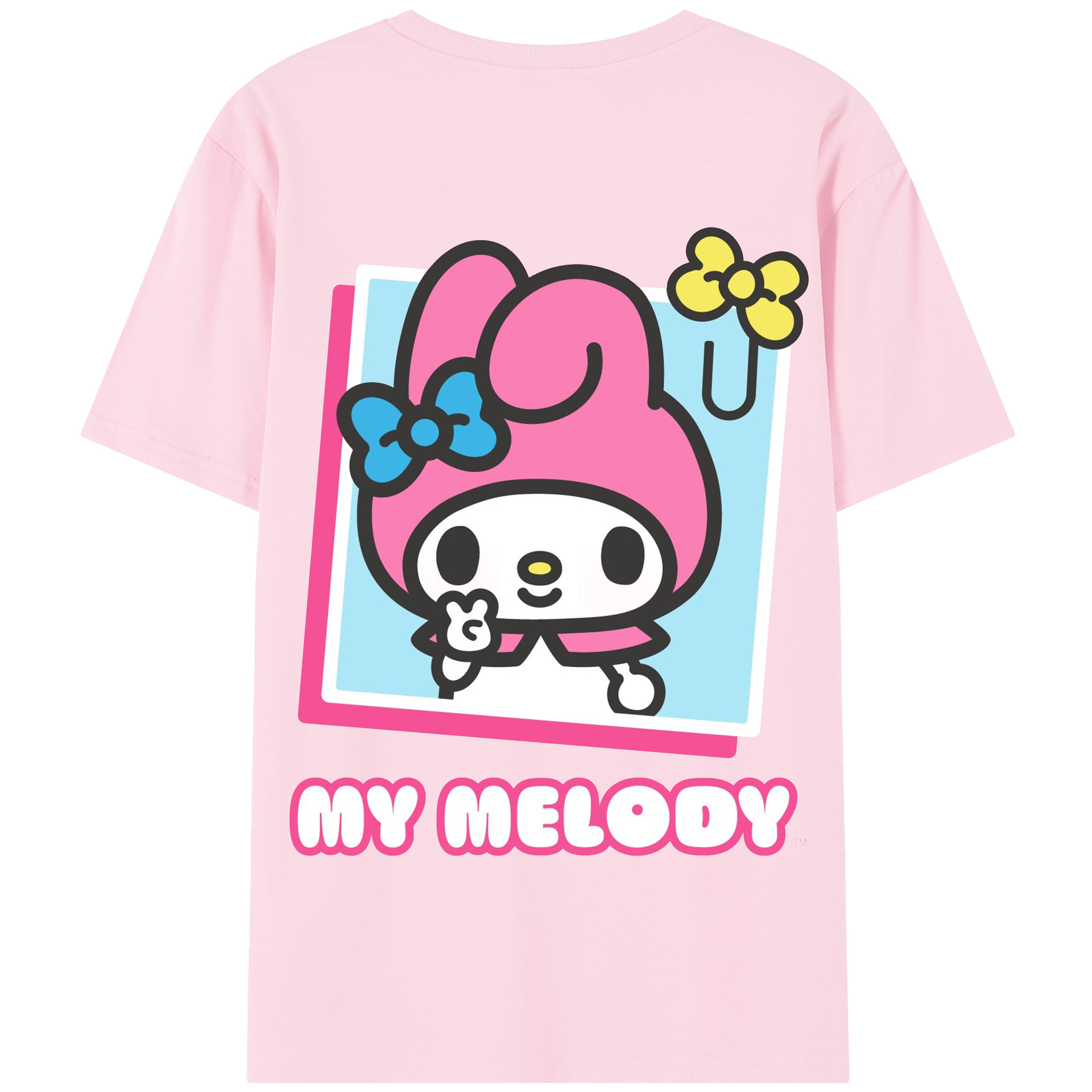 サンリオマイメロディ - 綿100% 半袖Tシャツ ・ バックプリント ・ 快適 通気性 ・ 日常使い 散歩 スポーツ用