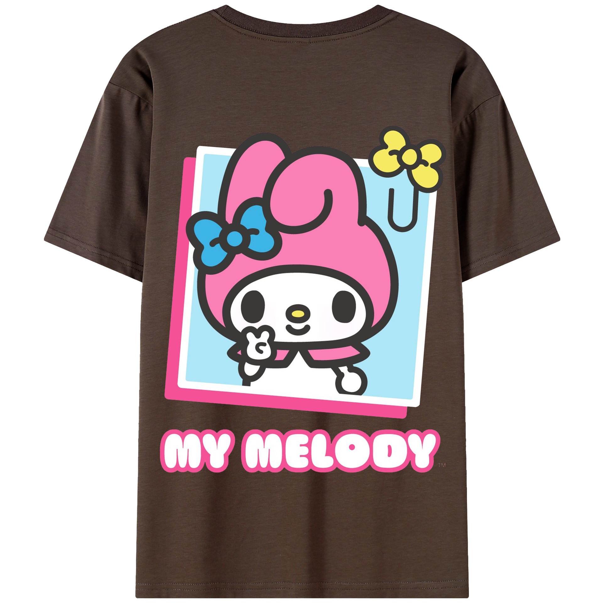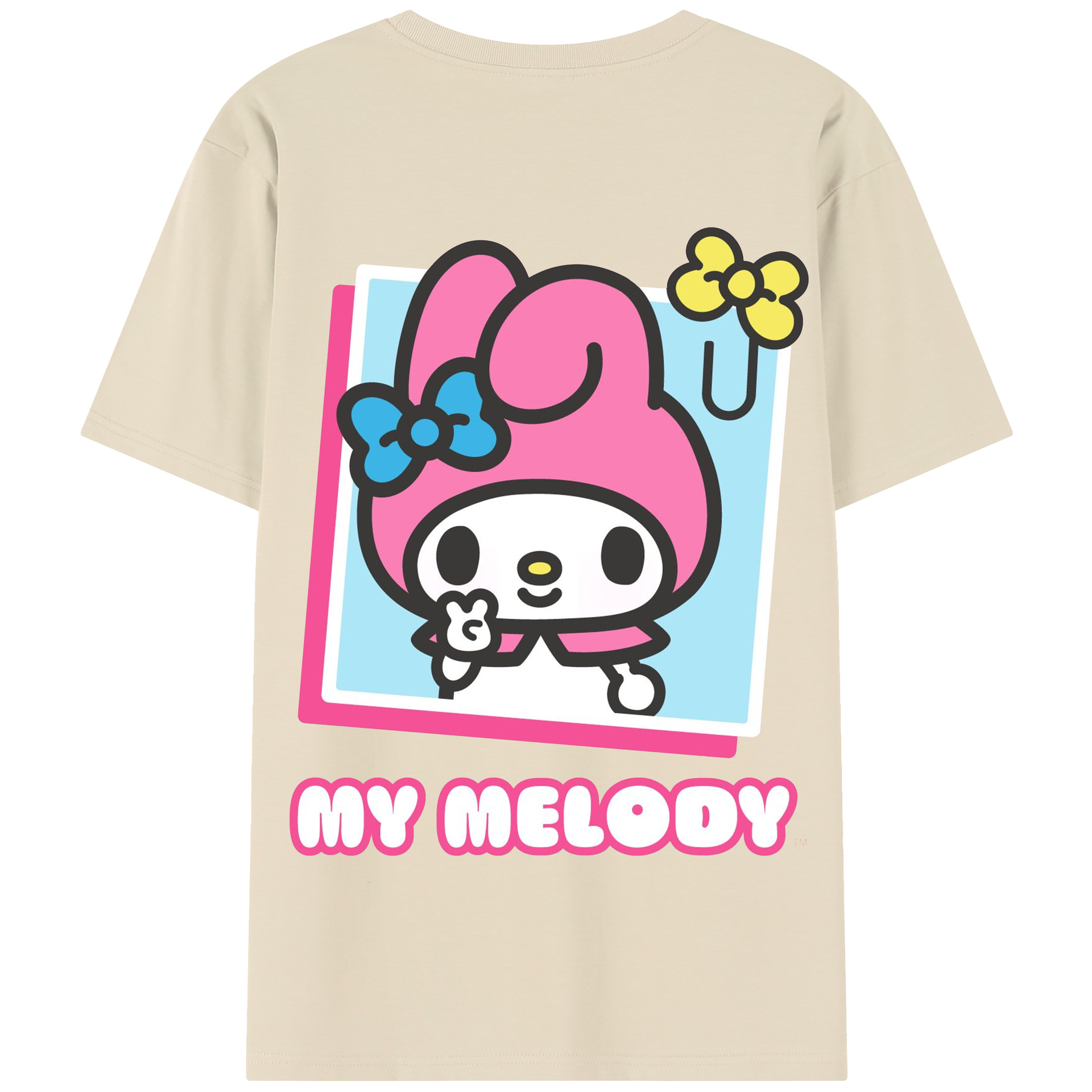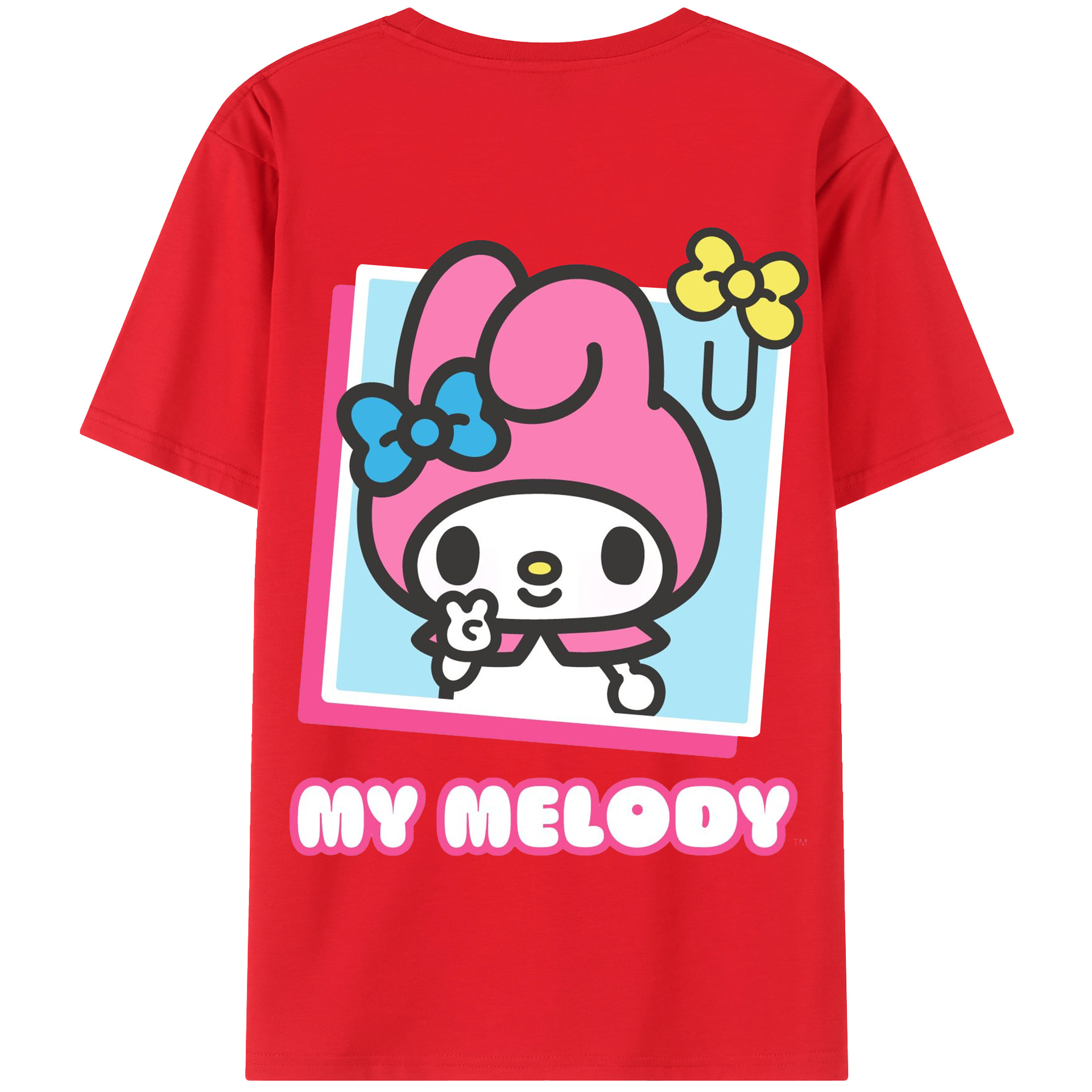 サンリオマイメロディ - 綿100% 半袖Tシャツ ・ バックプリント ・ 快適 通気性 ・ 日常使い 散歩 スポーツ用